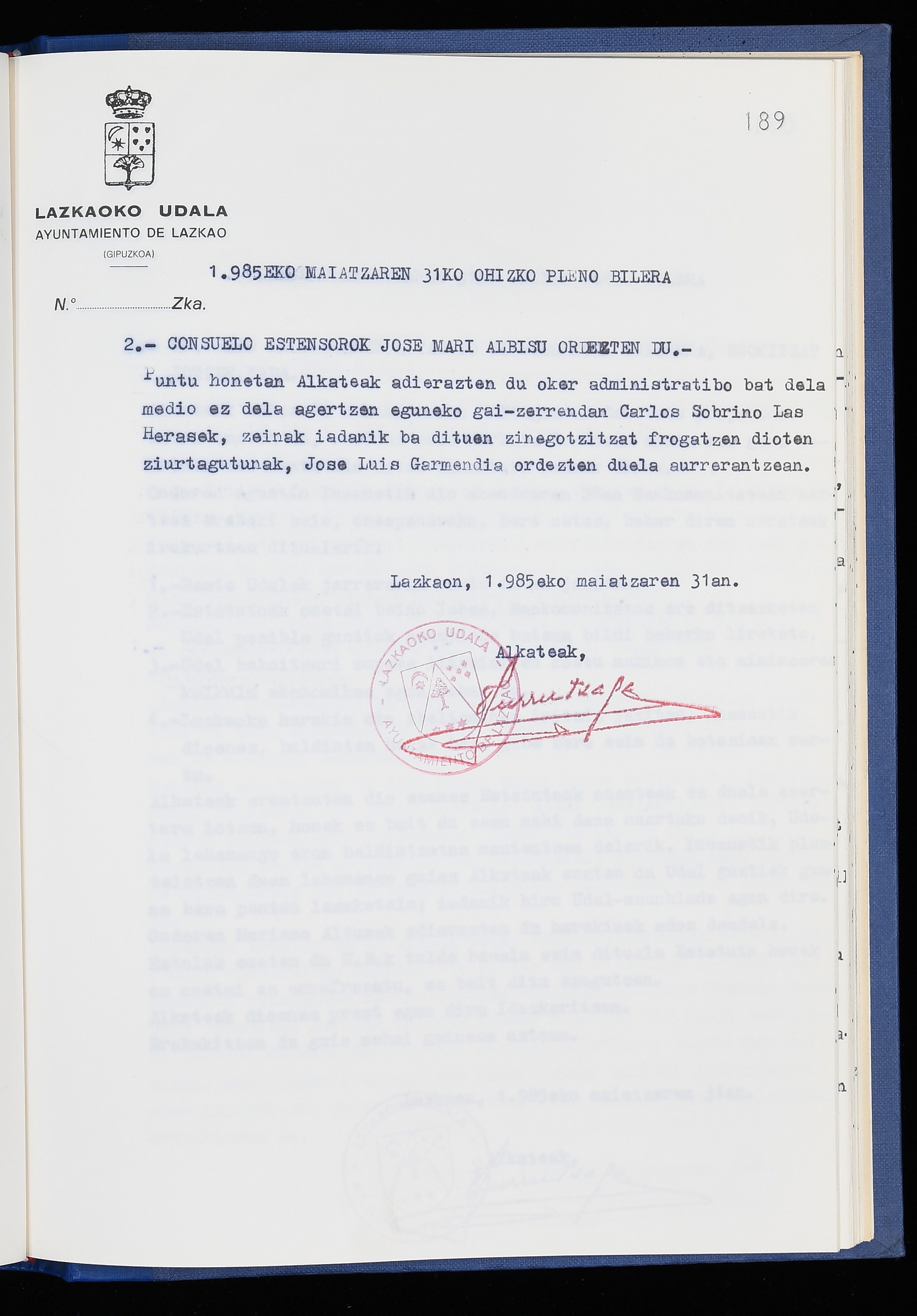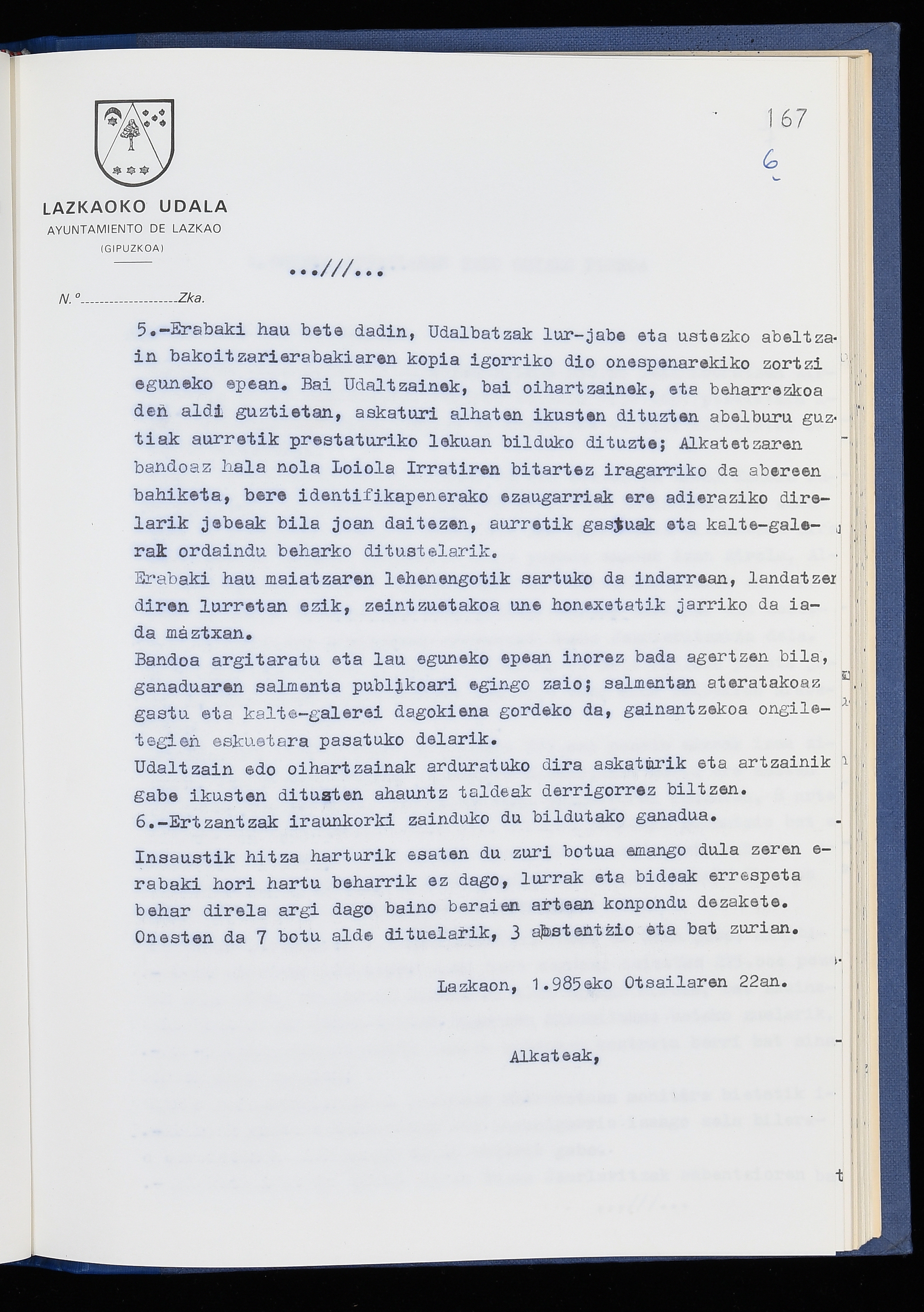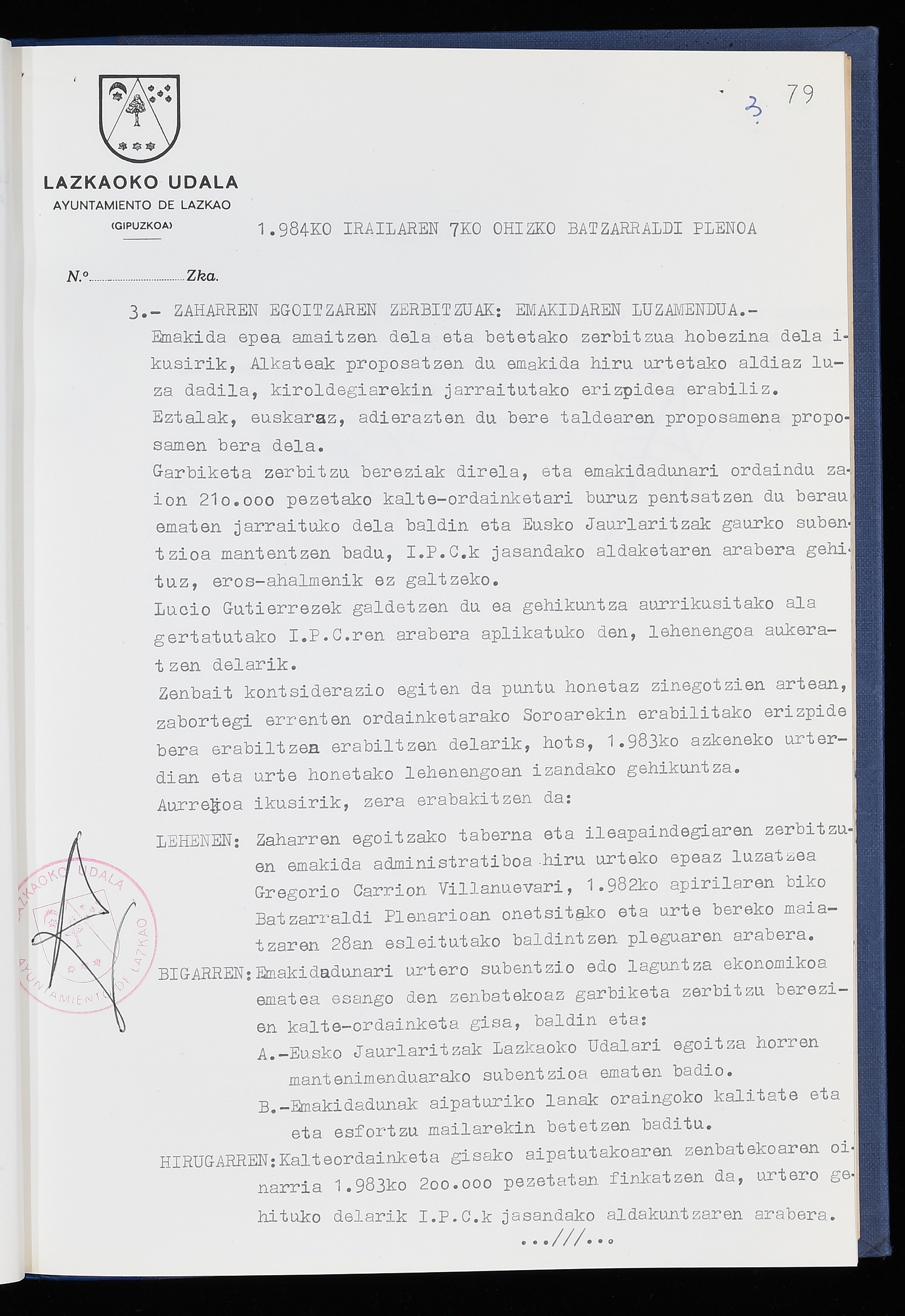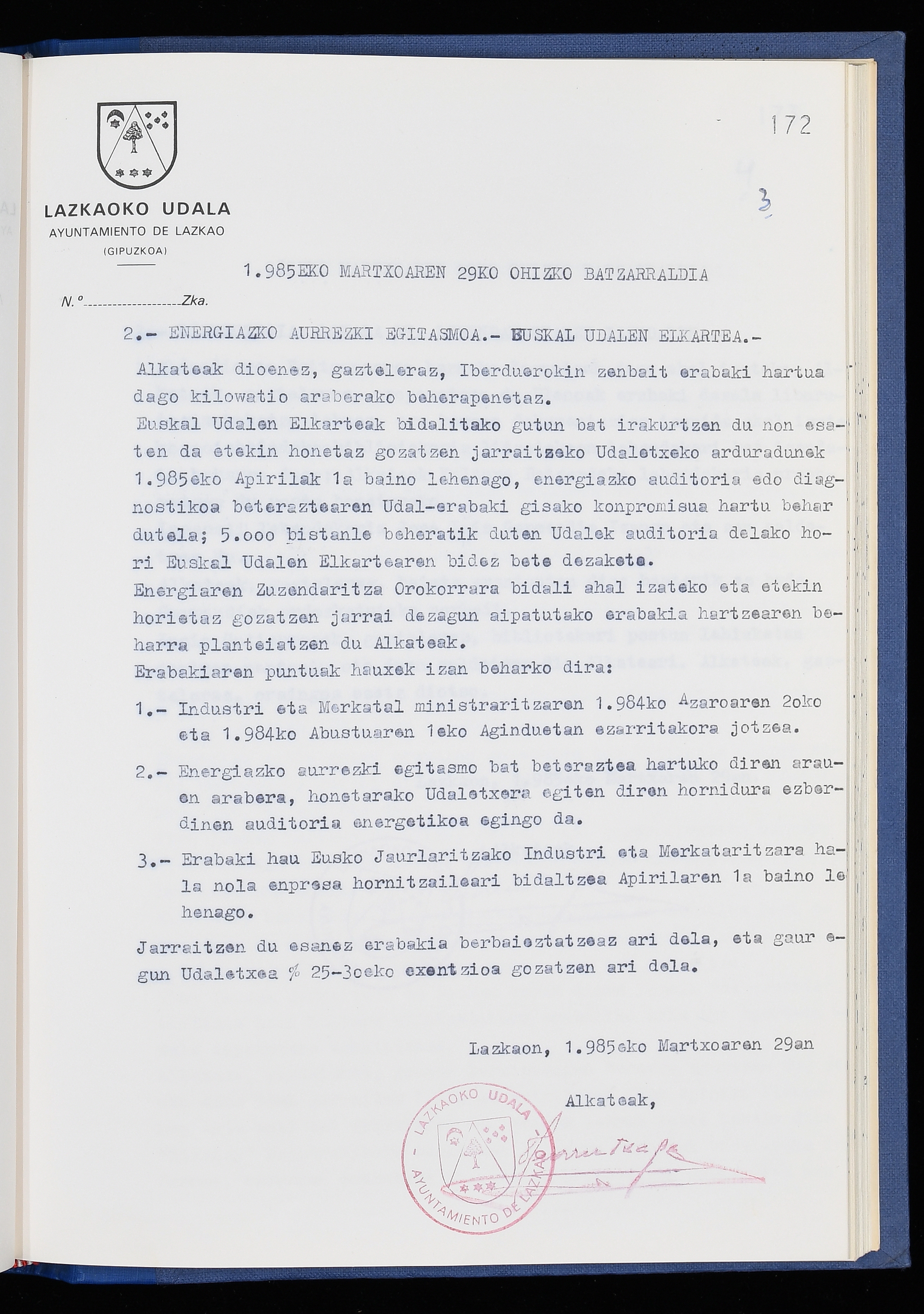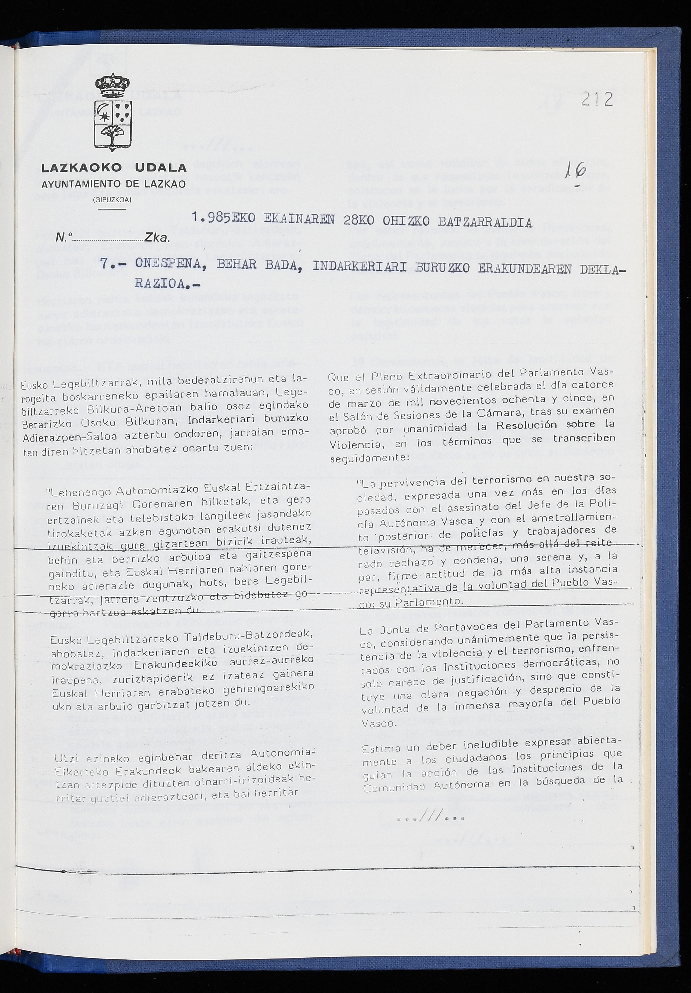 Log in to post commentsEdukiakSailkapenaFuntsaLazkaoko Udal ArtxiboaAtalakUdal AktakSailkapena1.1.4. Osoko Bilkuraren akta liburuakSailkapen berriaOsoko Bilkurako akta liburuakMultimediaIrudiakIdentifikazioaSignaturaakta liburua I-036Hasiera1984-06-01Amaiera1985-06-28AutoritateakTokiaLazkaoLog in to post commentsAkta eratu