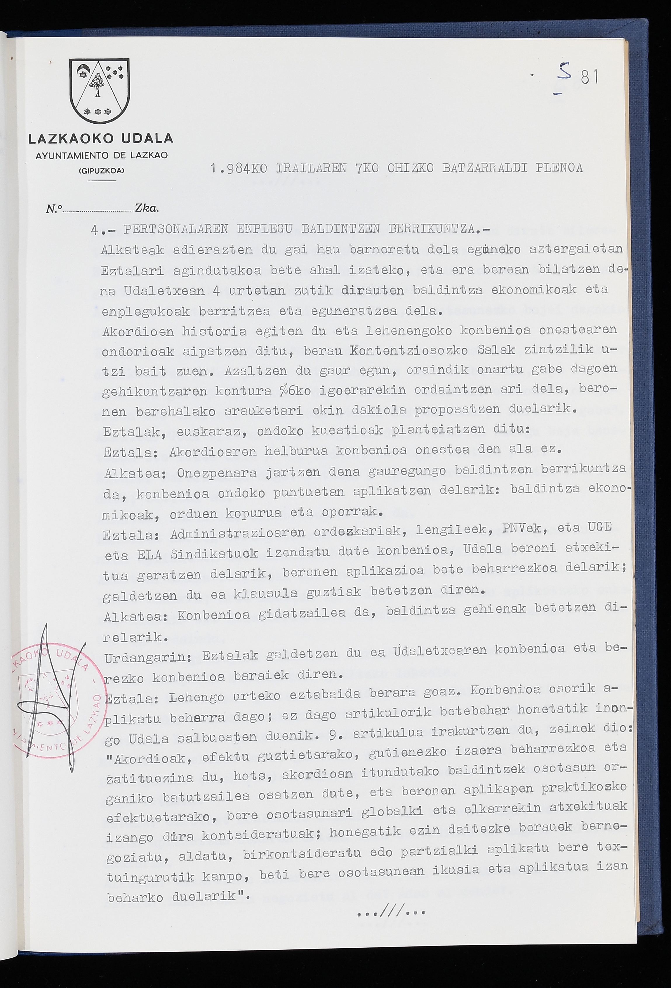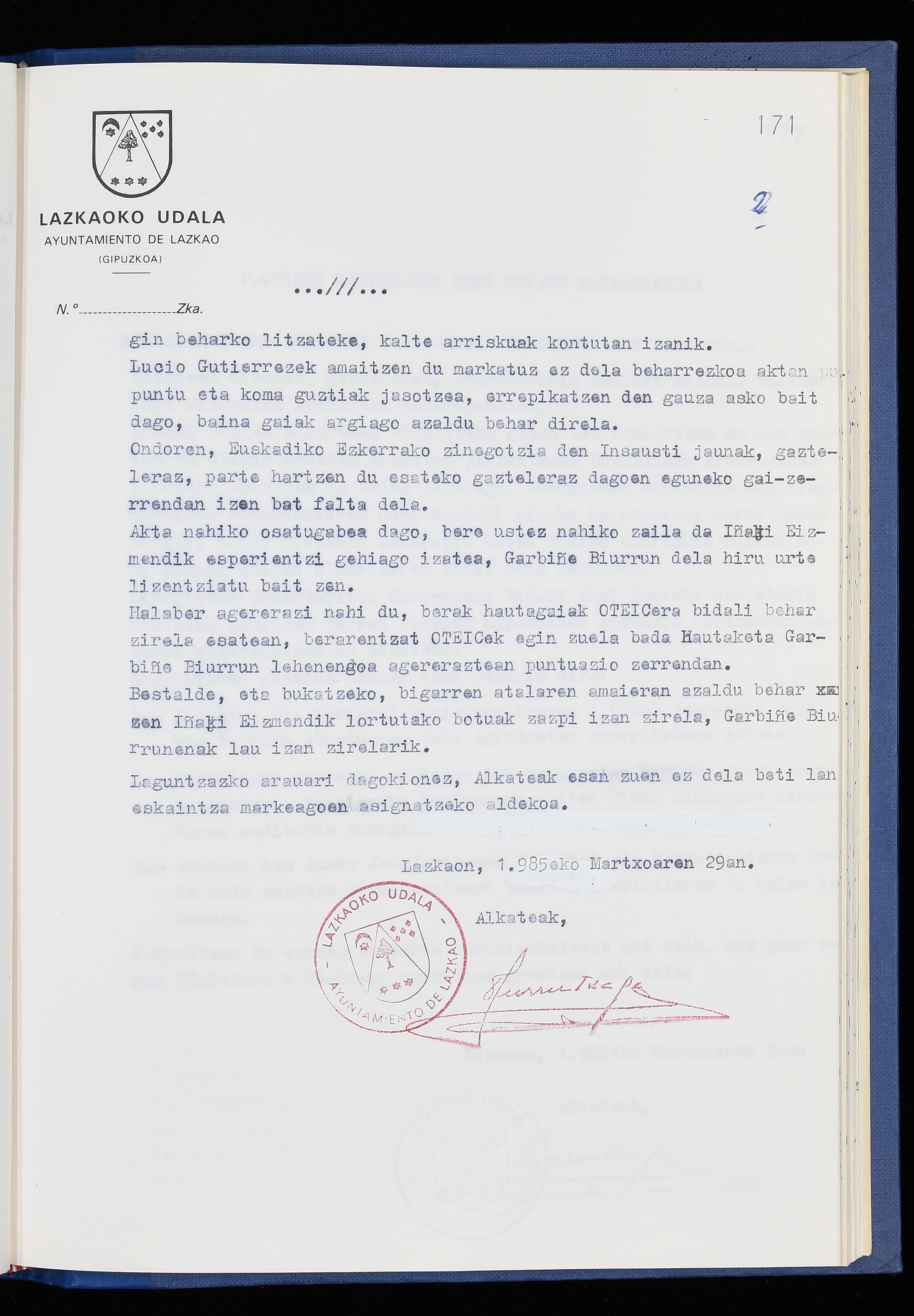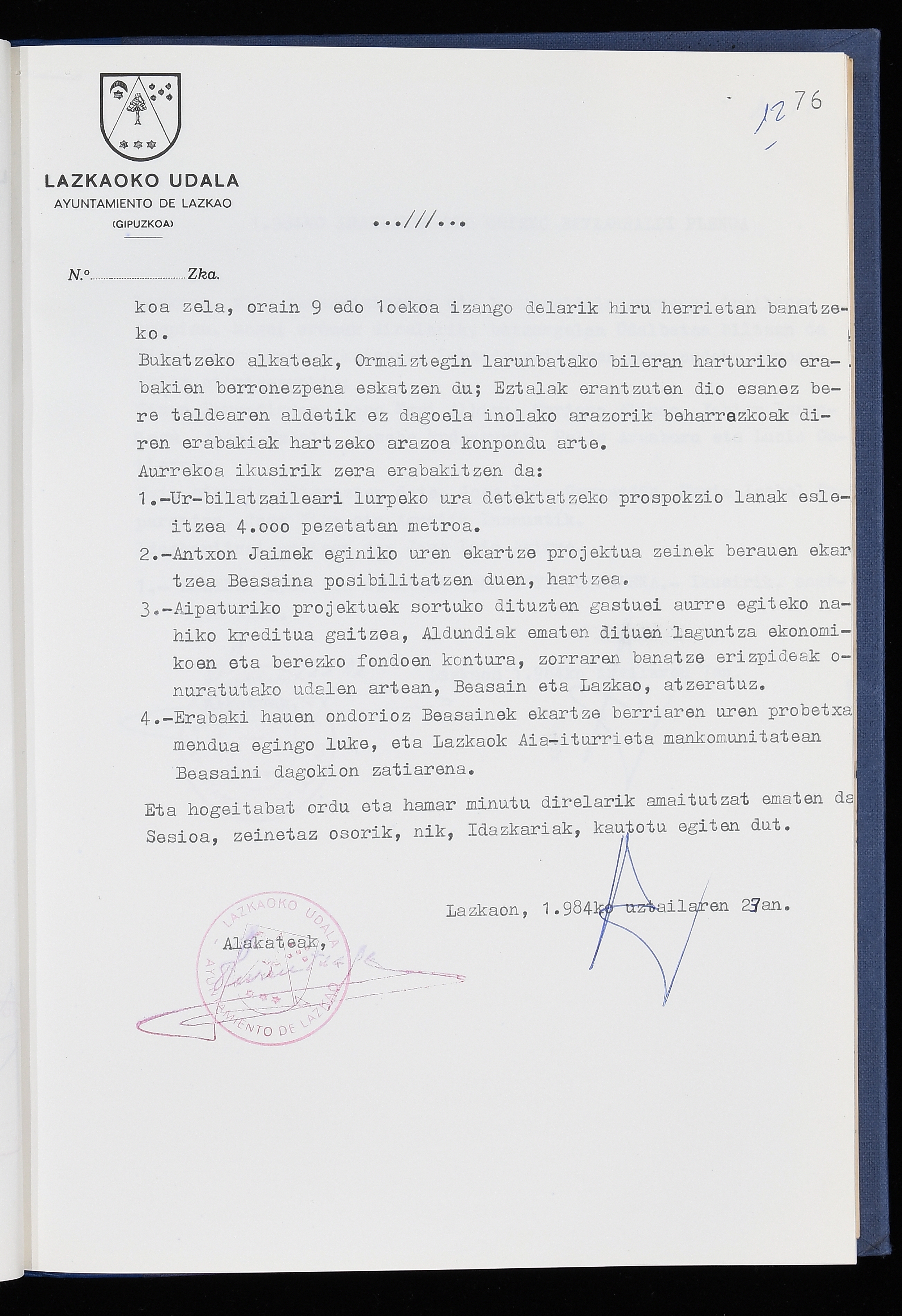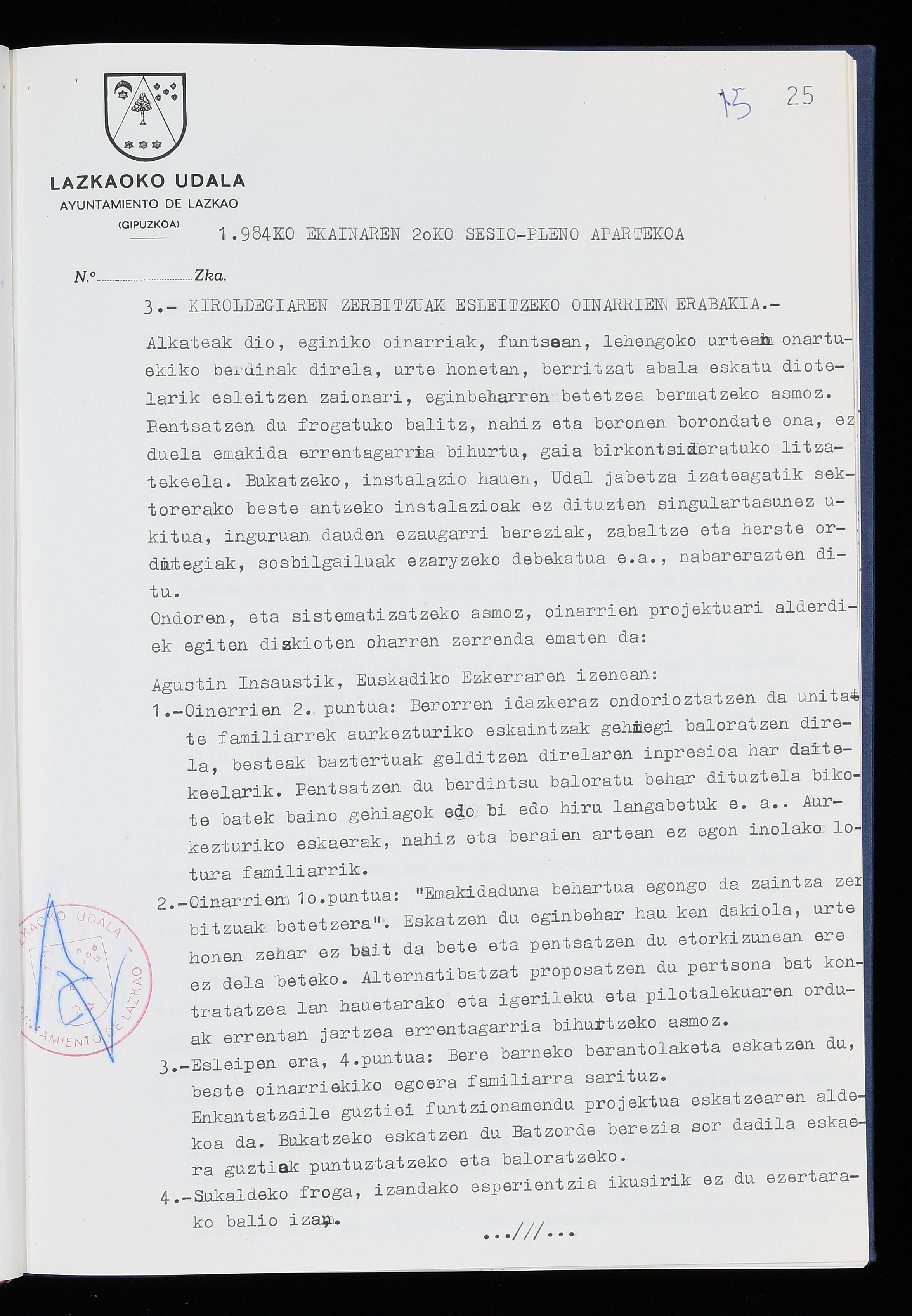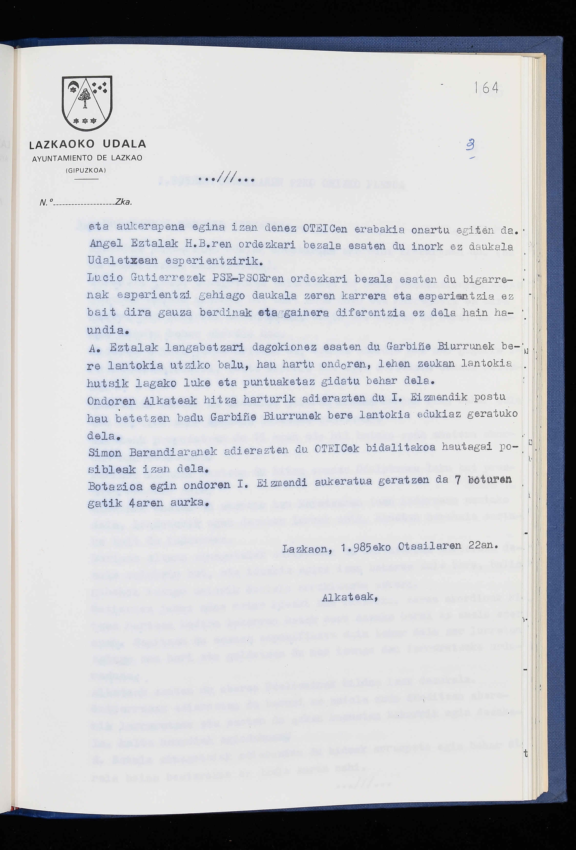 Log in to post commentsEdukiakSailkapenaFuntsaLazkaoko Udal ArtxiboaAtalakUdal AktakSailkapena1.1.4. Osoko Bilkuraren akta liburuakSailkapen berriaOsoko Bilkurako akta liburuakMultimediaIrudiakIdentifikazioaSignaturaakta liburua I-036Hasiera1984-06-01Amaiera1985-06-28AutoritateakTokiaLazkaoLog in to post commentsAkta eratu
