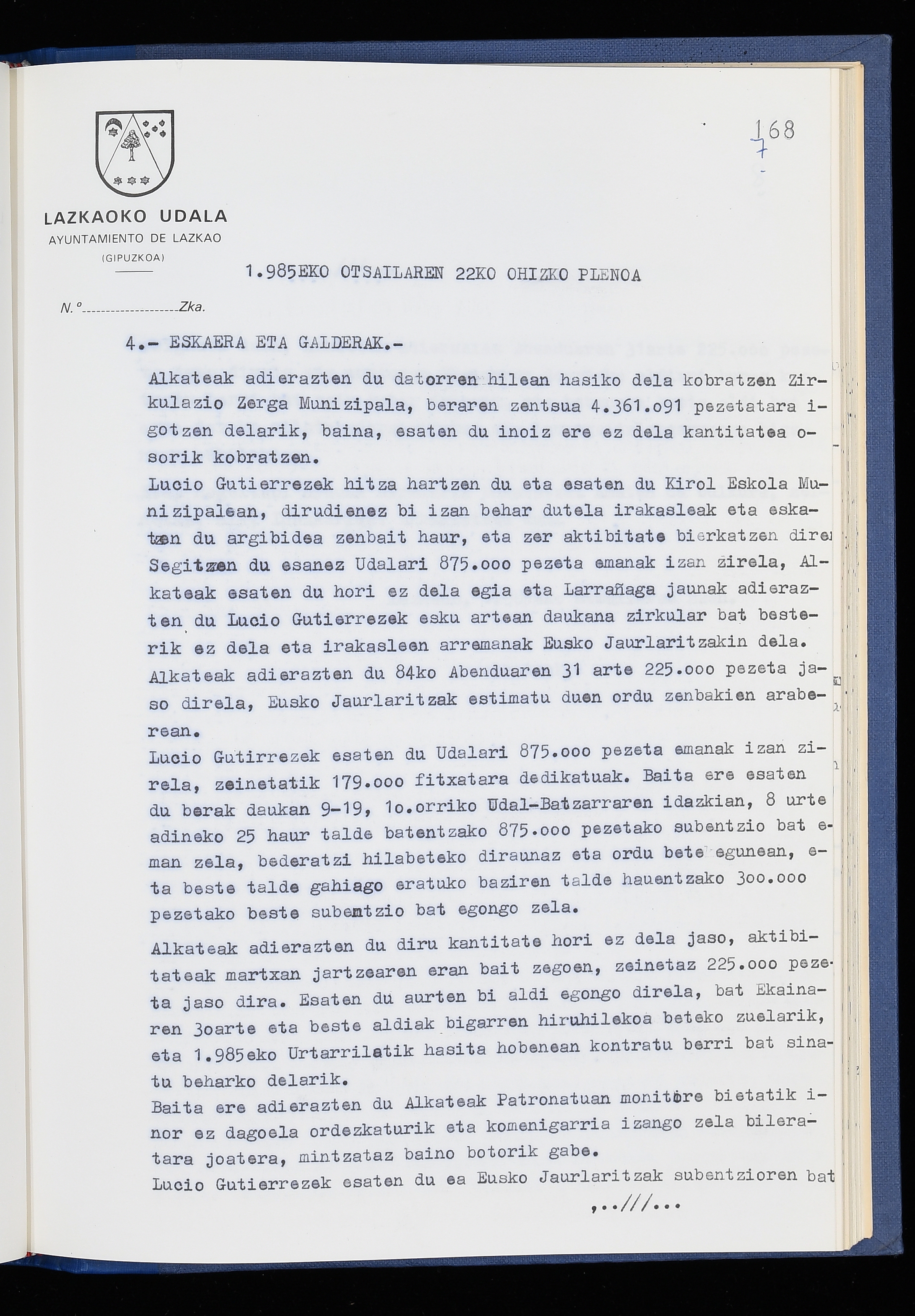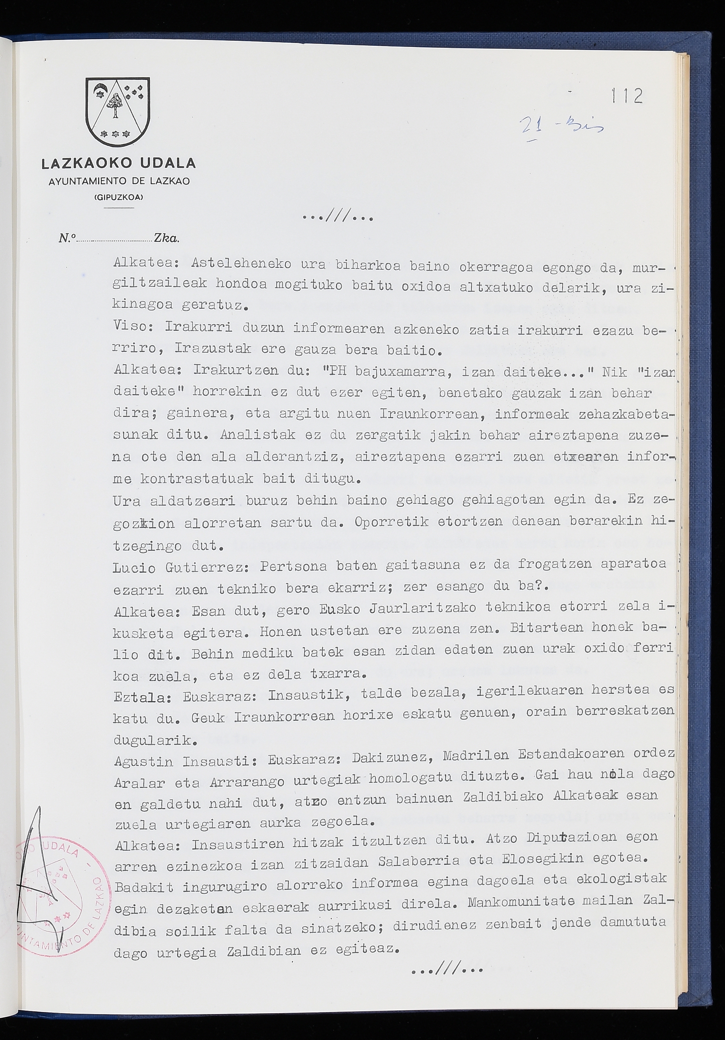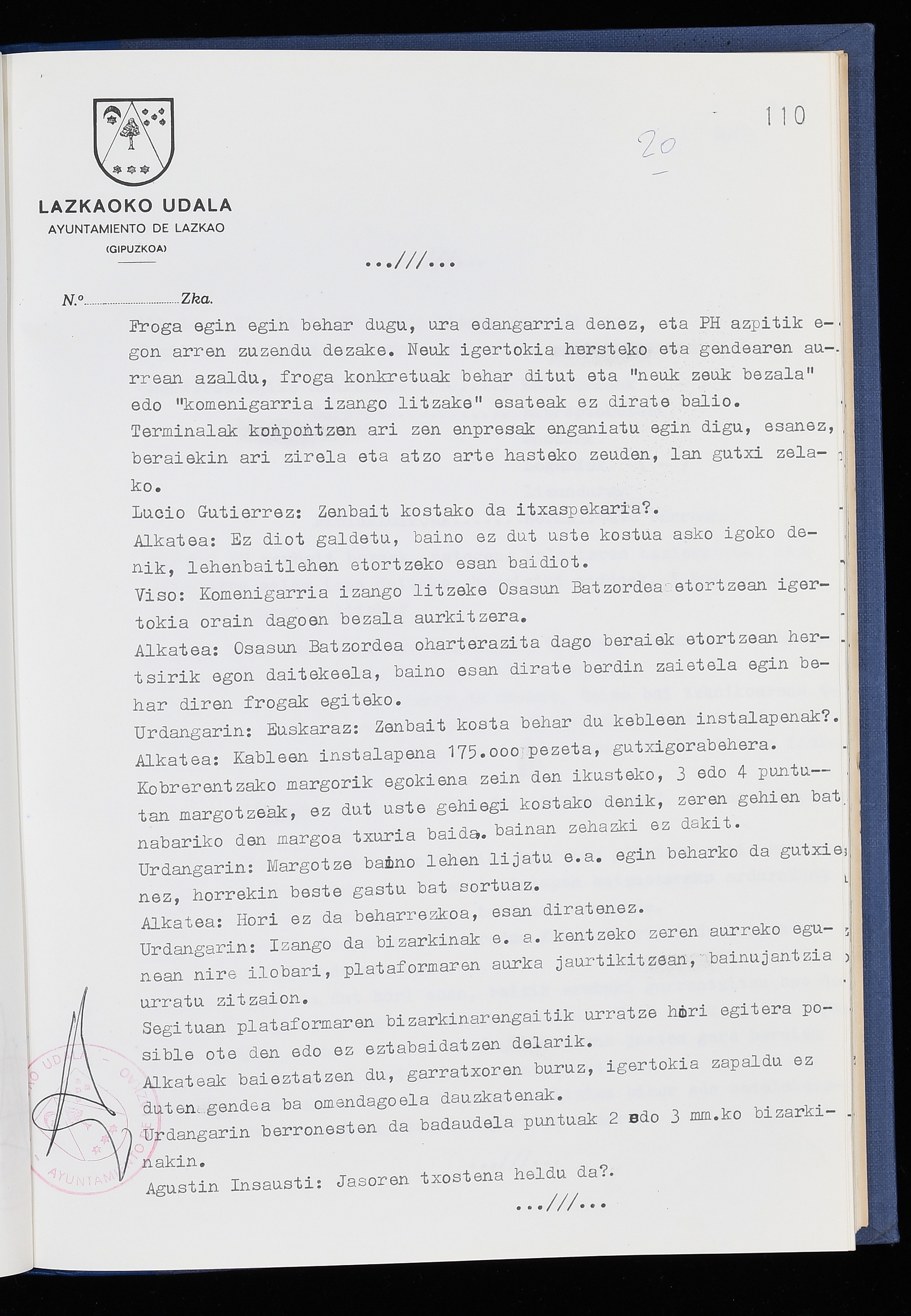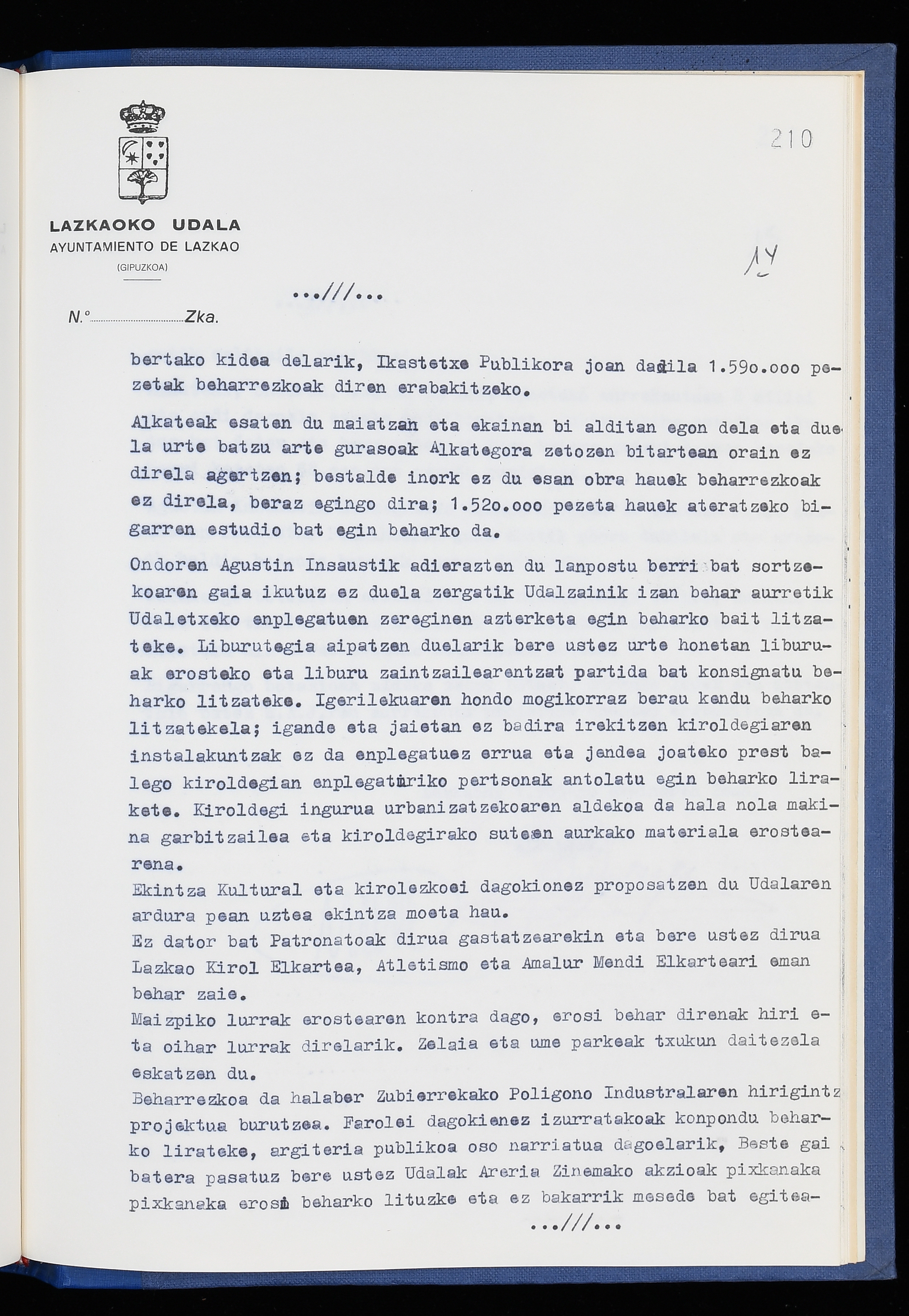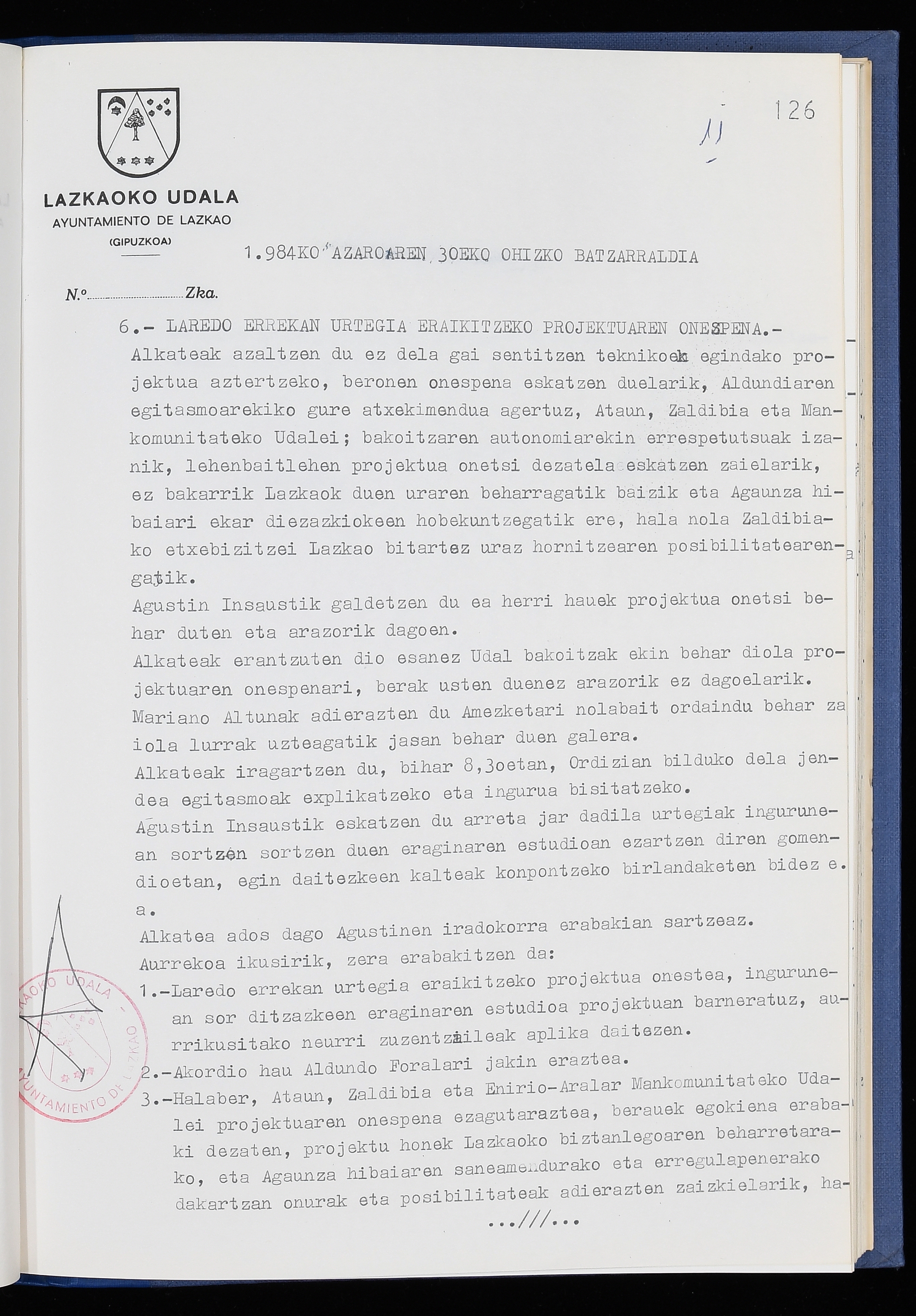 Log in to post commentsEdukiakSailkapenaFuntsaLazkaoko Udal ArtxiboaAtalakUdal AktakSailkapena1.1.4. Osoko Bilkuraren akta liburuakSailkapen berriaOsoko Bilkurako akta liburuakMultimediaIrudiakIdentifikazioaSignaturaakta liburua I-036Hasiera1984-06-01Amaiera1985-06-28AutoritateakTokiaLazkaoLog in to post commentsAkta eratu