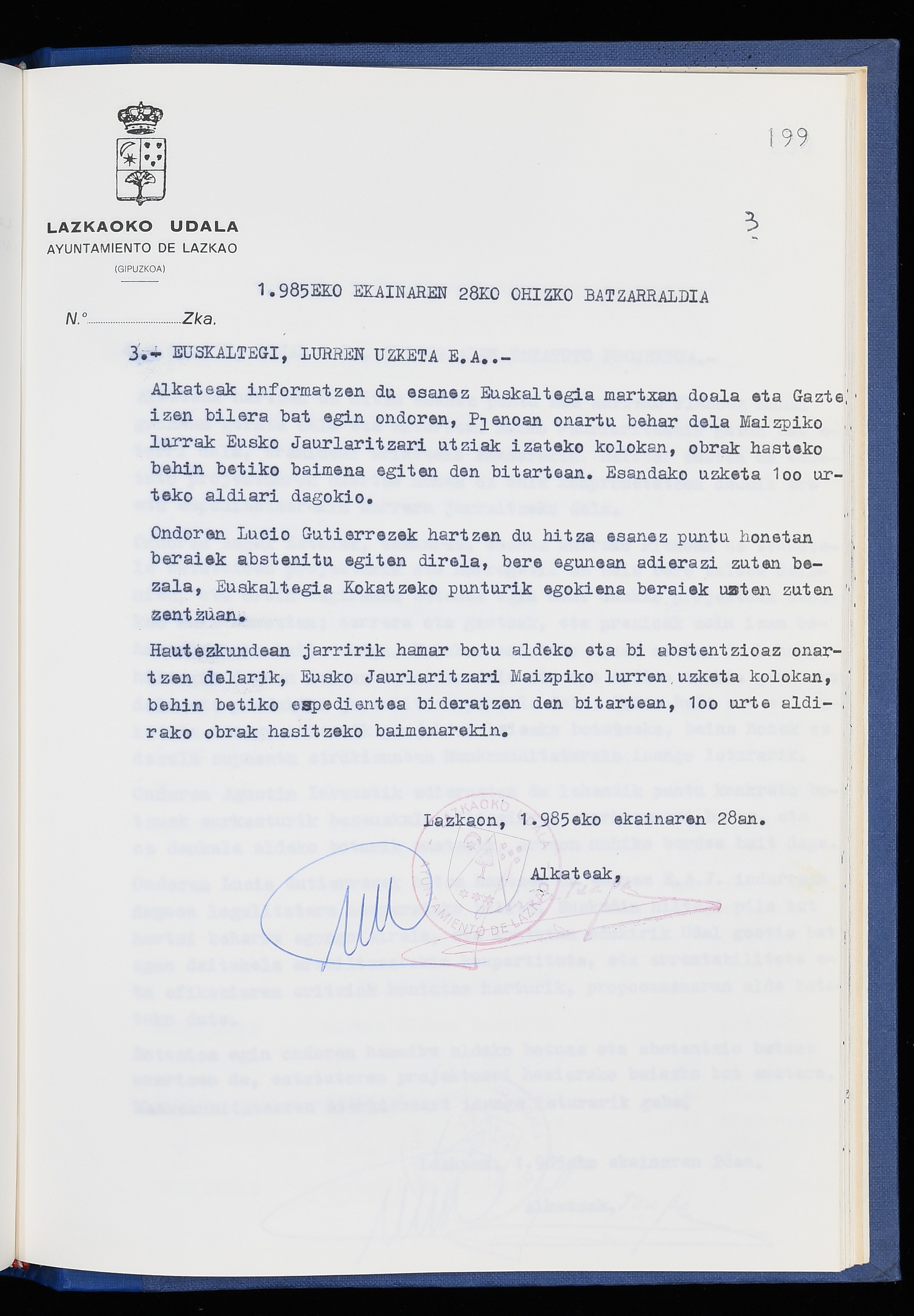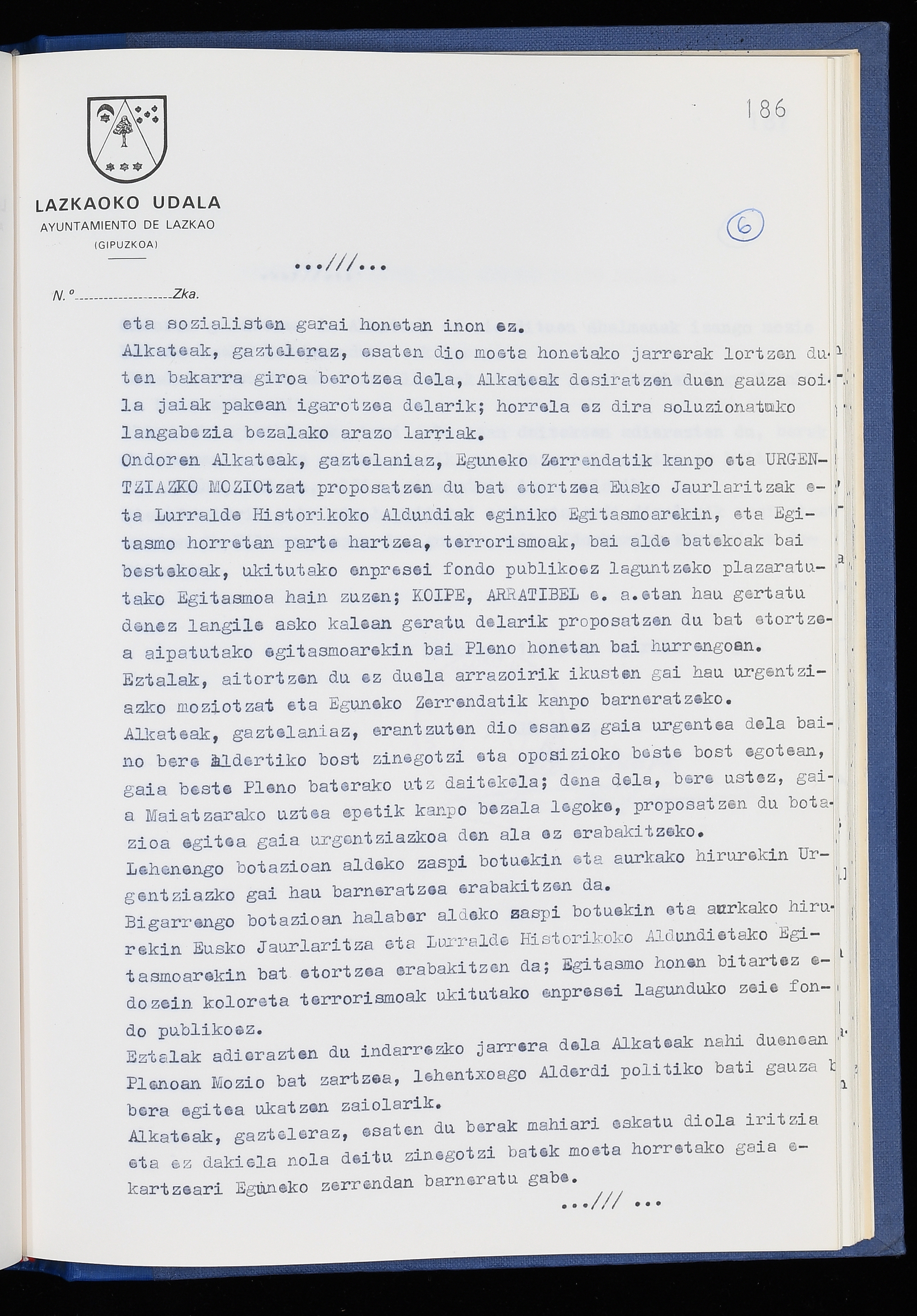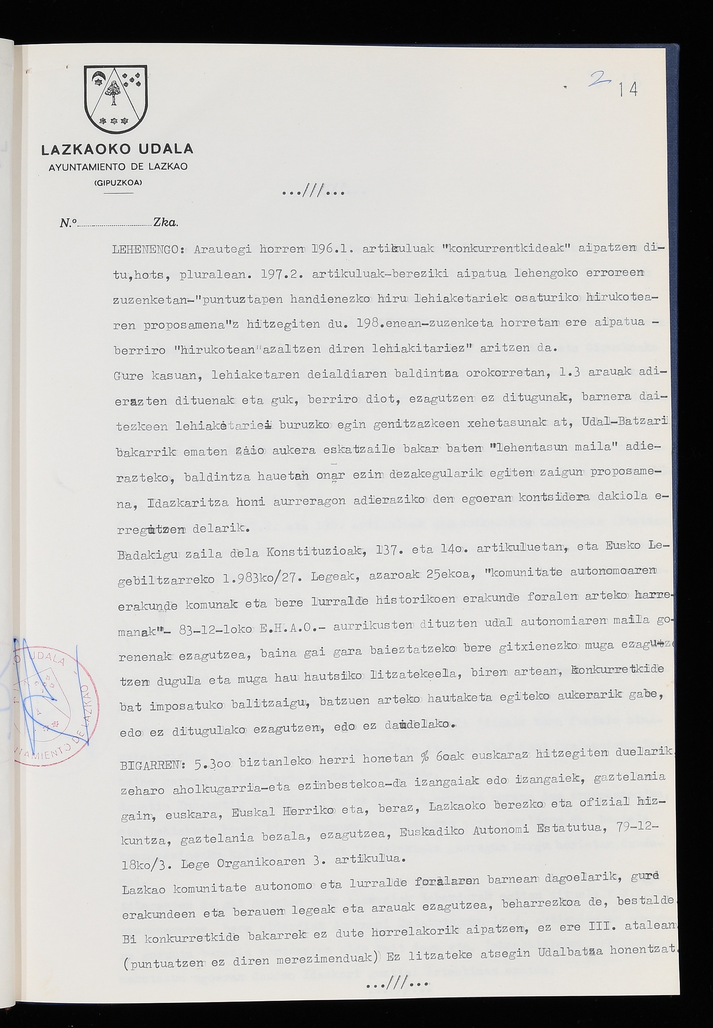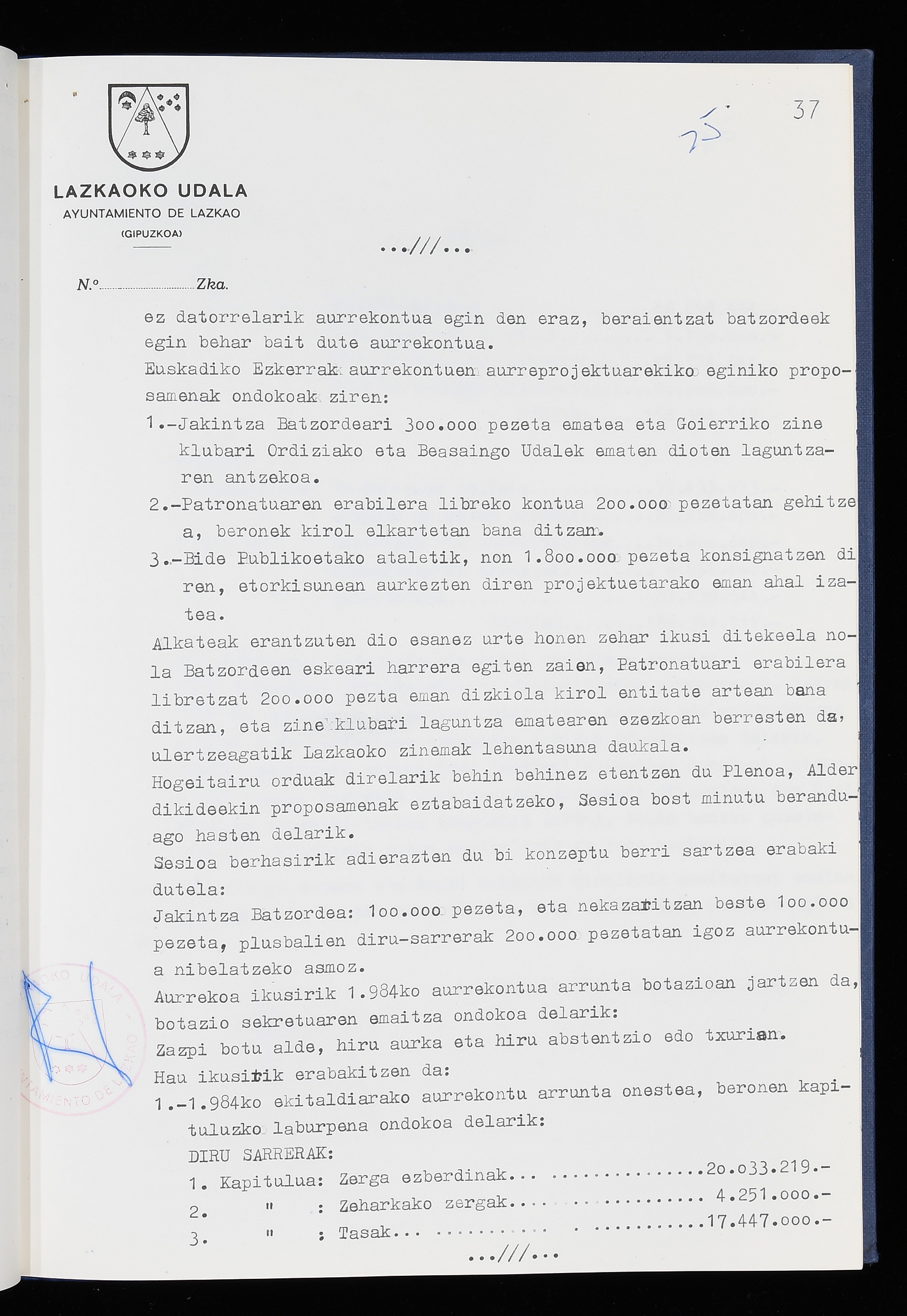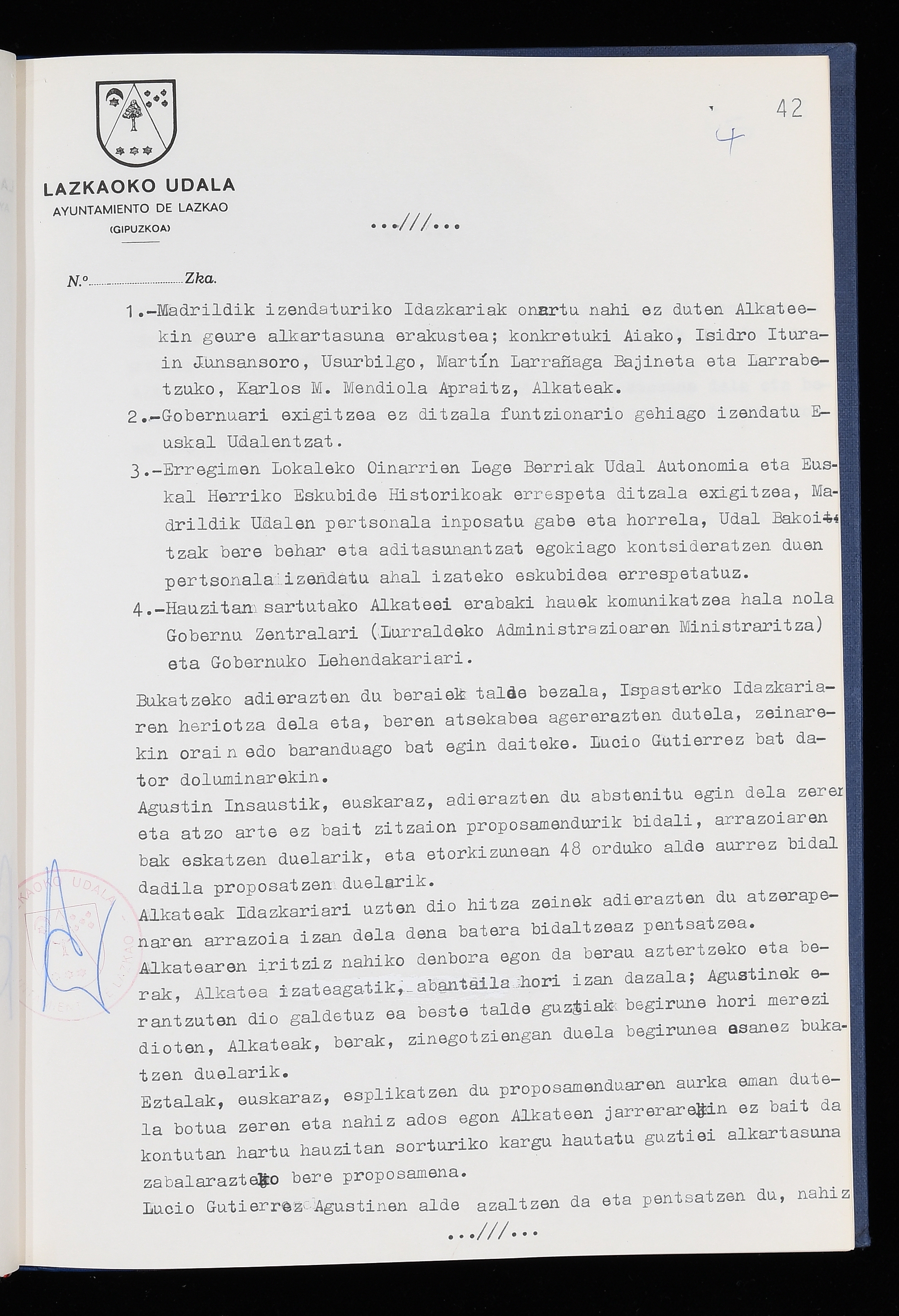 Log in to post commentsEdukiakSailkapenaFuntsaLazkaoko Udal ArtxiboaAtalakUdal AktakSailkapena1.1.4. Osoko Bilkuraren akta liburuakSailkapen berriaOsoko Bilkurako akta liburuakMultimediaIrudiakIdentifikazioaSignaturaakta liburua I-036Hasiera1984-06-01Amaiera1985-06-28AutoritateakTokiaLazkaoLog in to post commentsAkta eratu