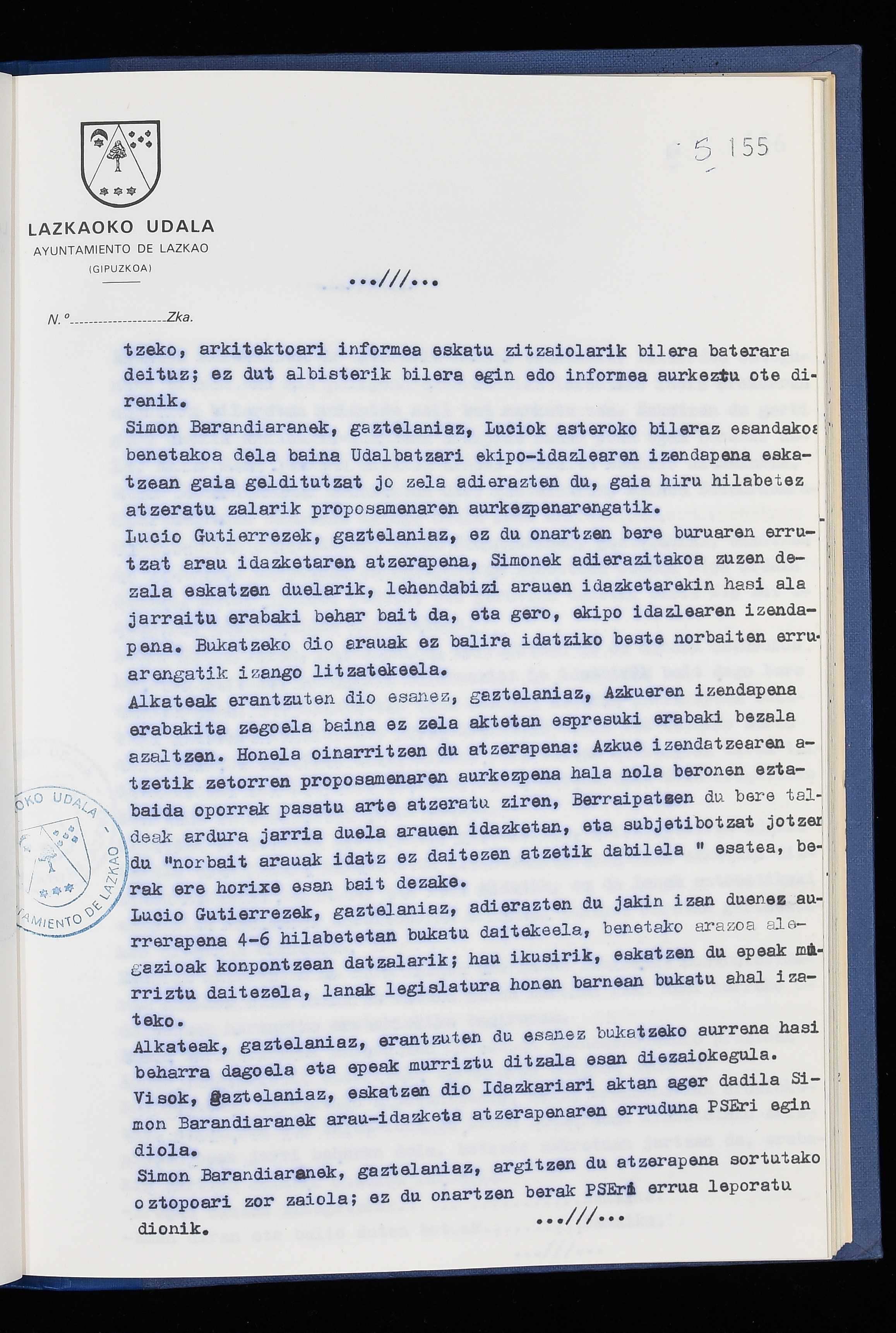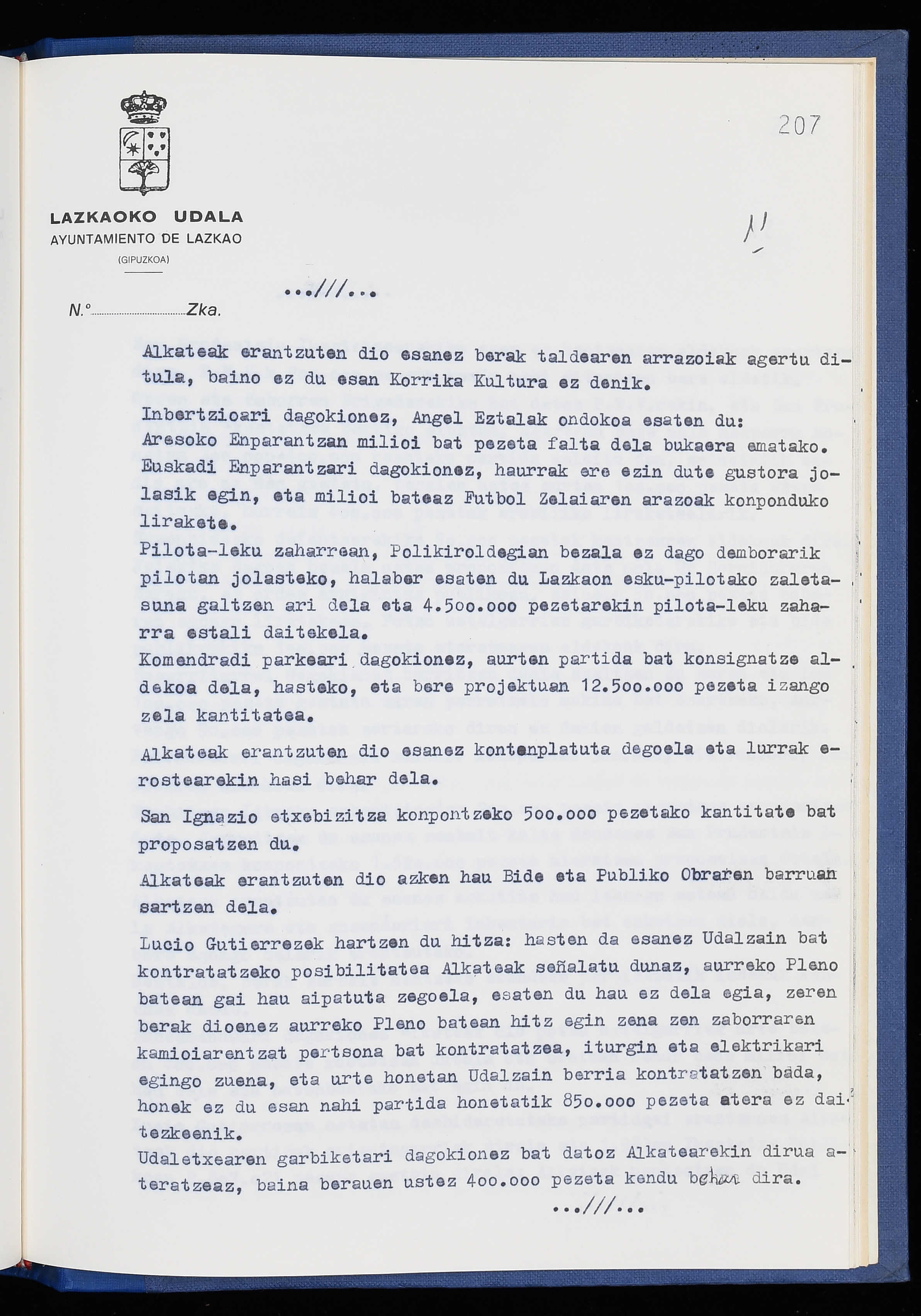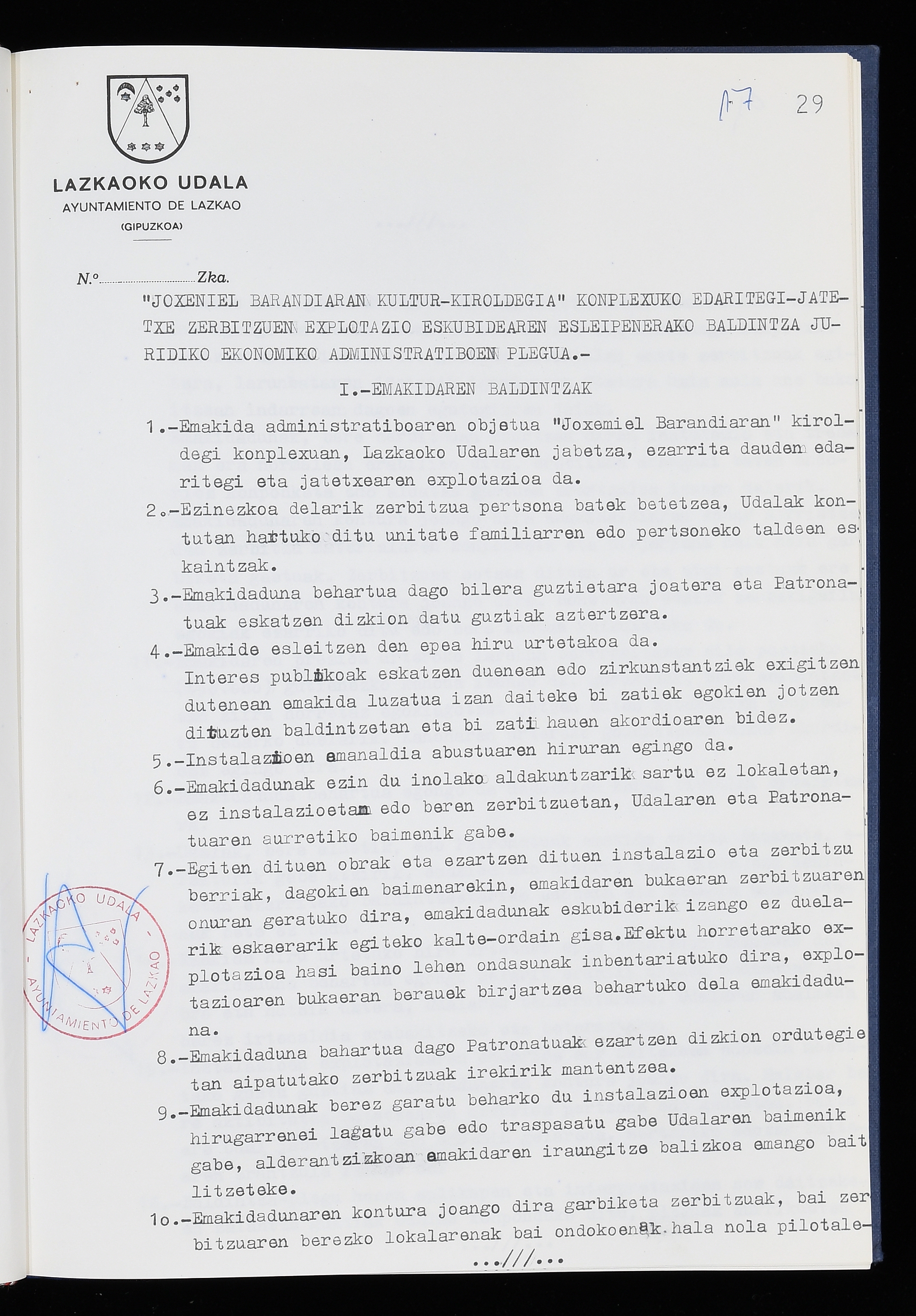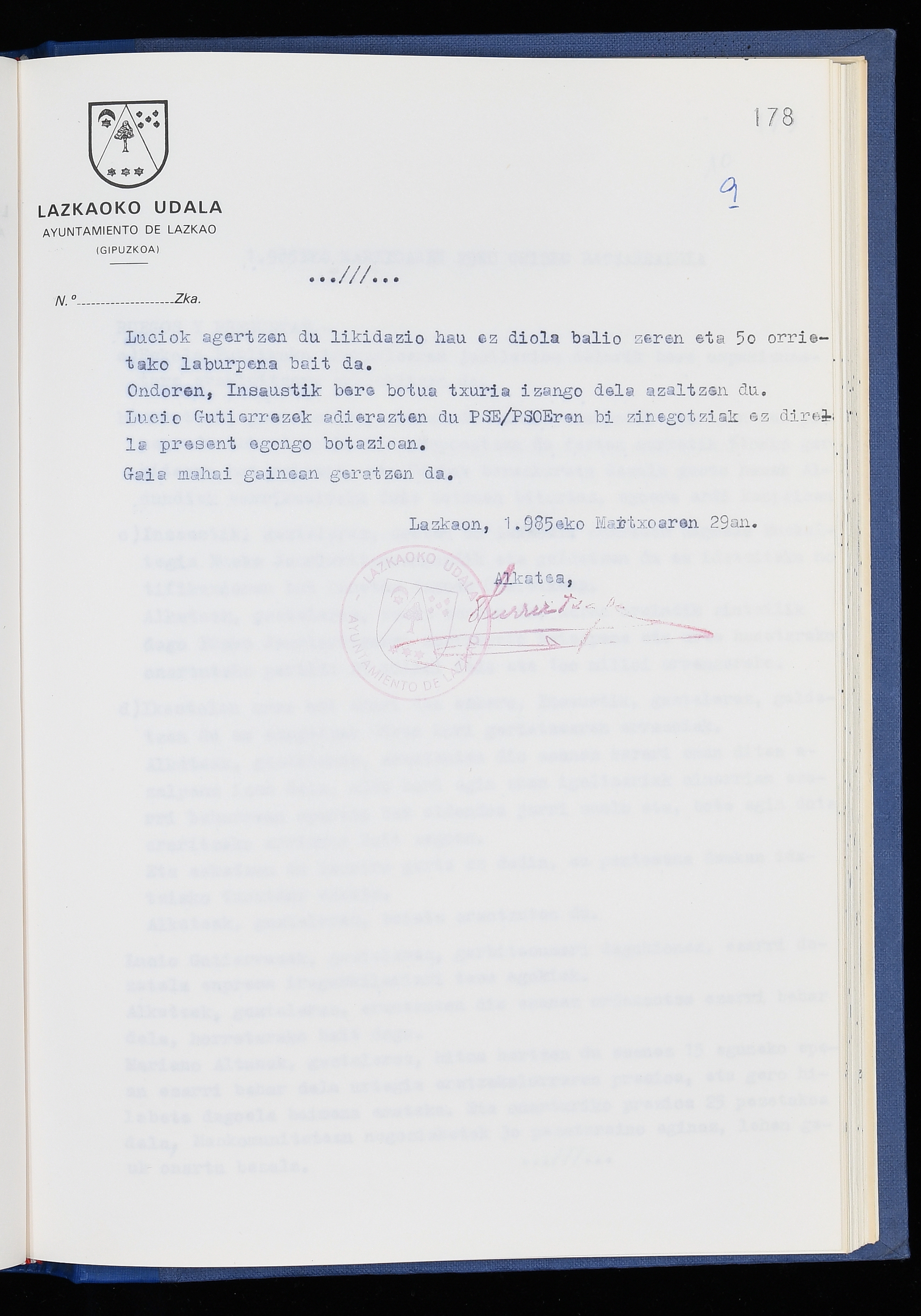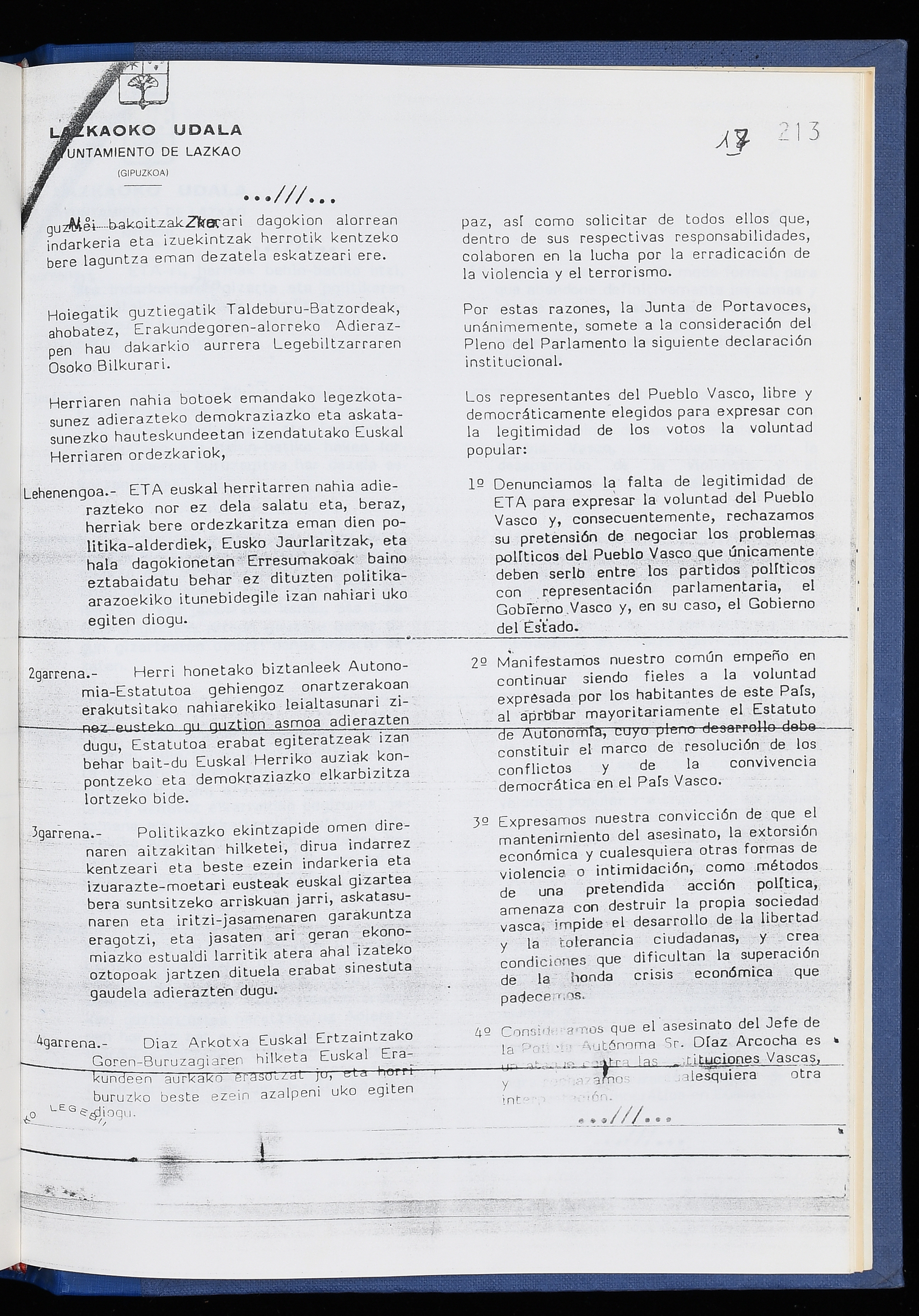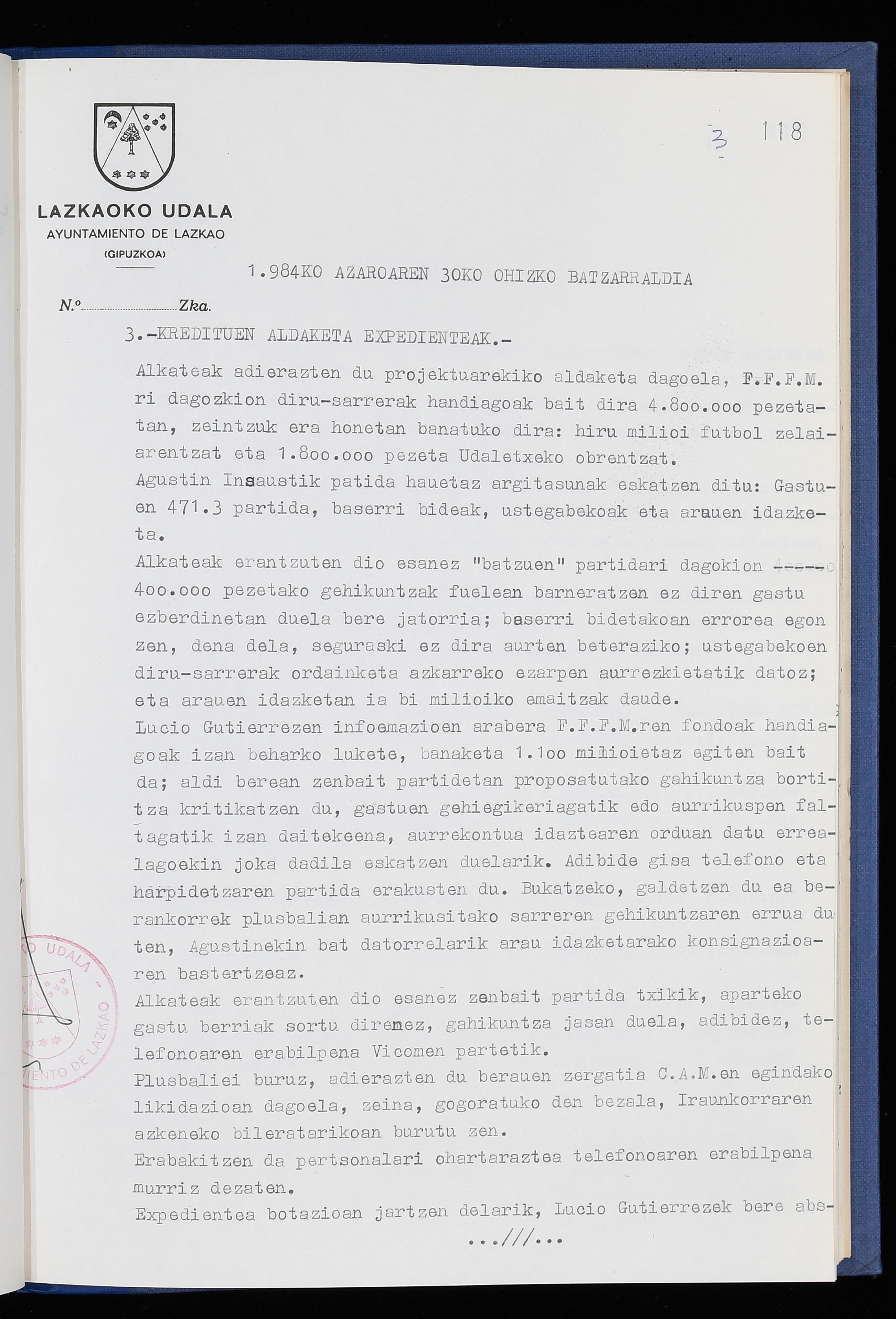 Log in to post commentsEdukiakSailkapenaFuntsaLazkaoko Udal ArtxiboaAtalakUdal AktakSailkapena1.1.4. Osoko Bilkuraren akta liburuakSailkapen berriaOsoko Bilkurako akta liburuakMultimediaIrudiakIdentifikazioaSignaturaakta liburua I-036Hasiera1984-06-01Amaiera1985-06-28AutoritateakTokiaLazkaoLog in to post commentsAkta eratu