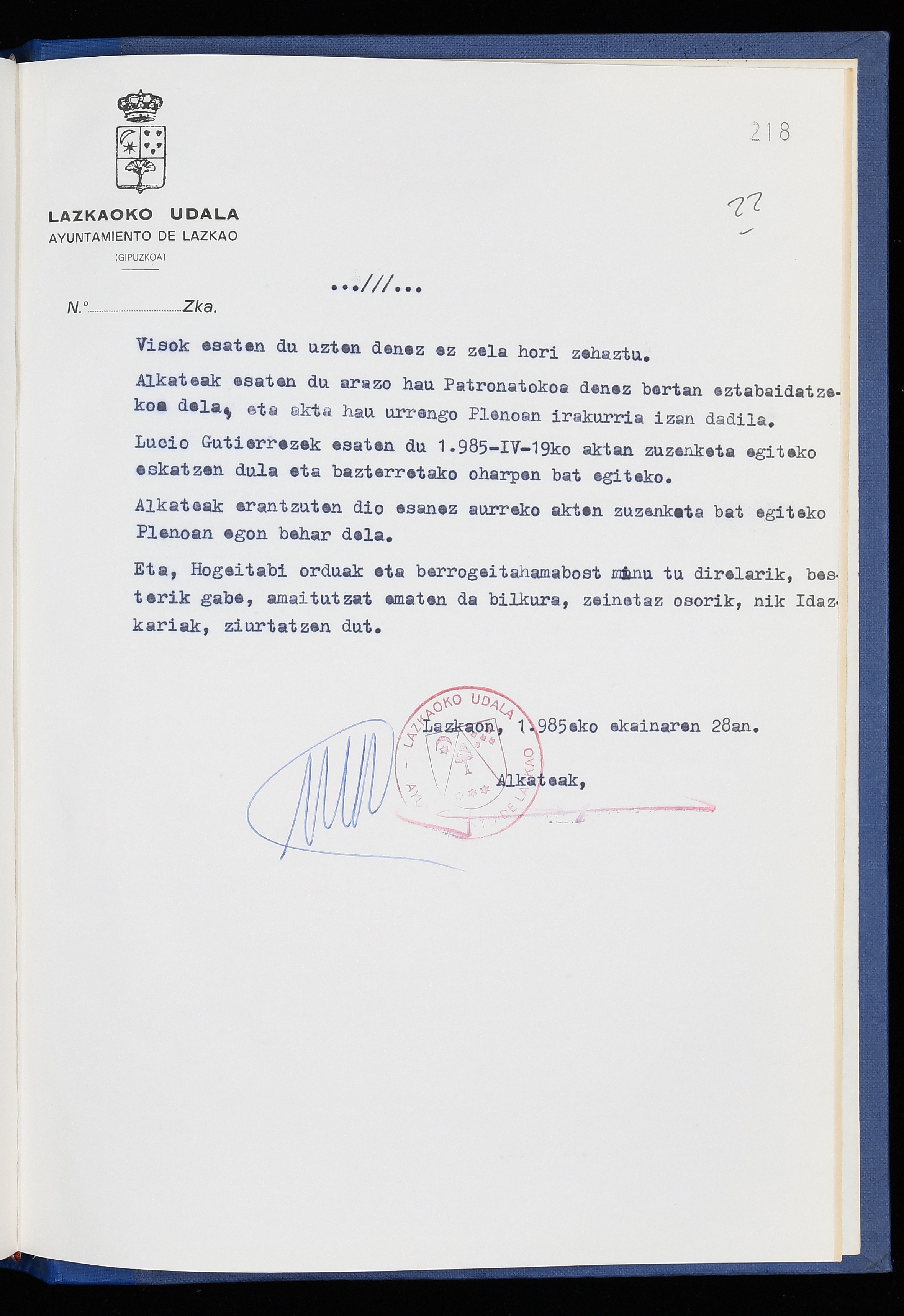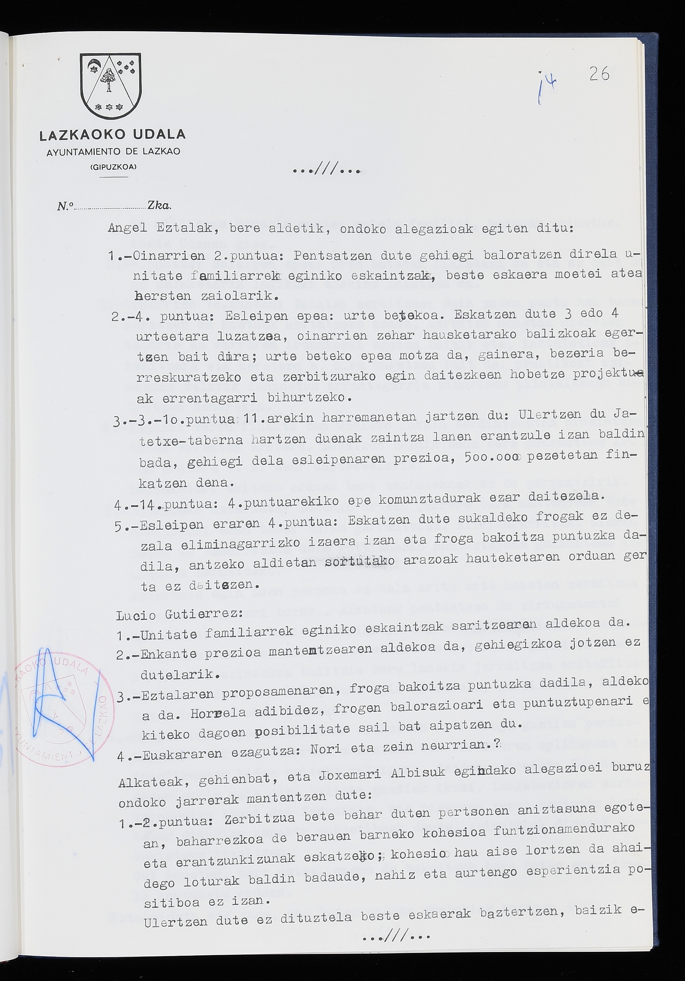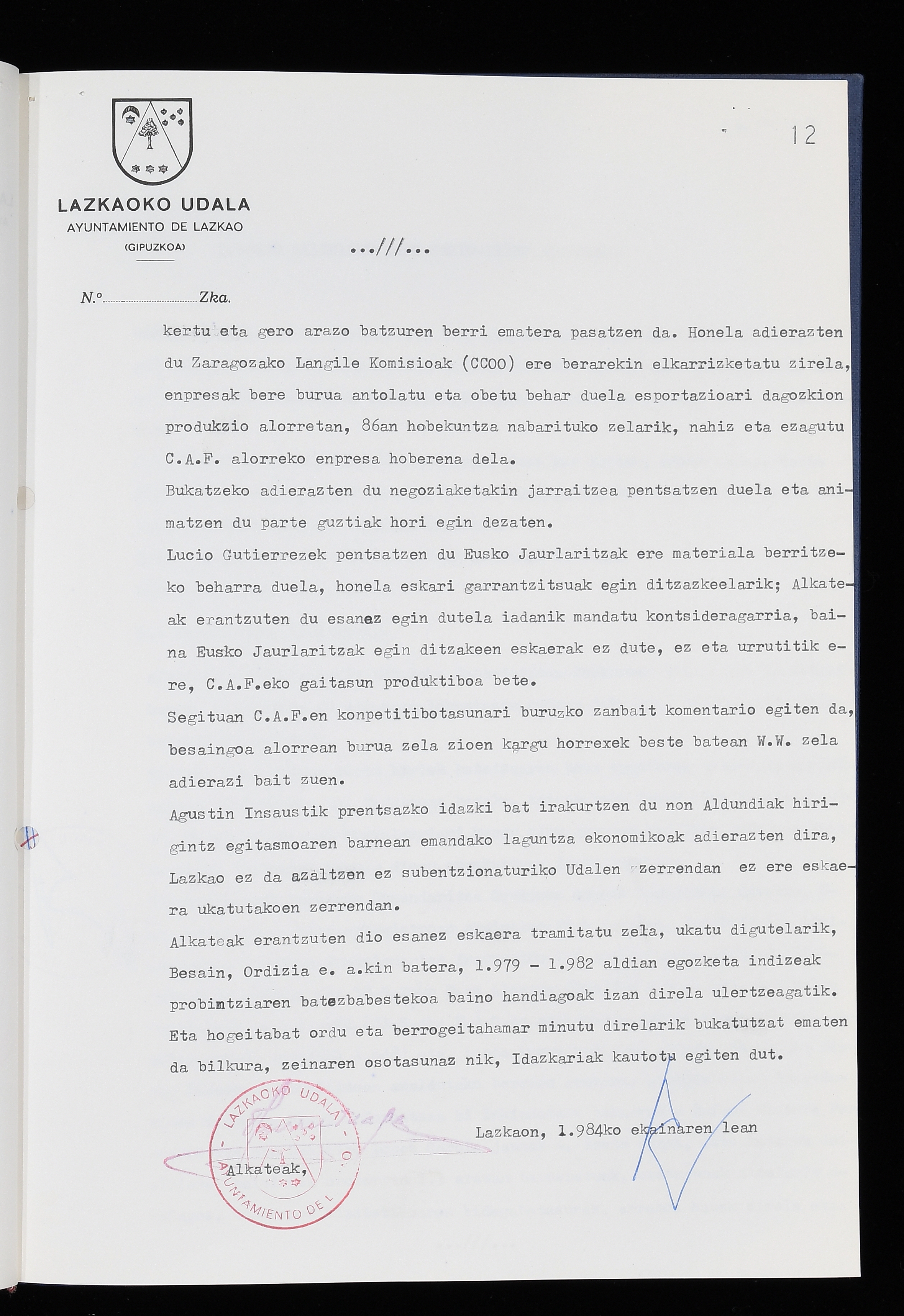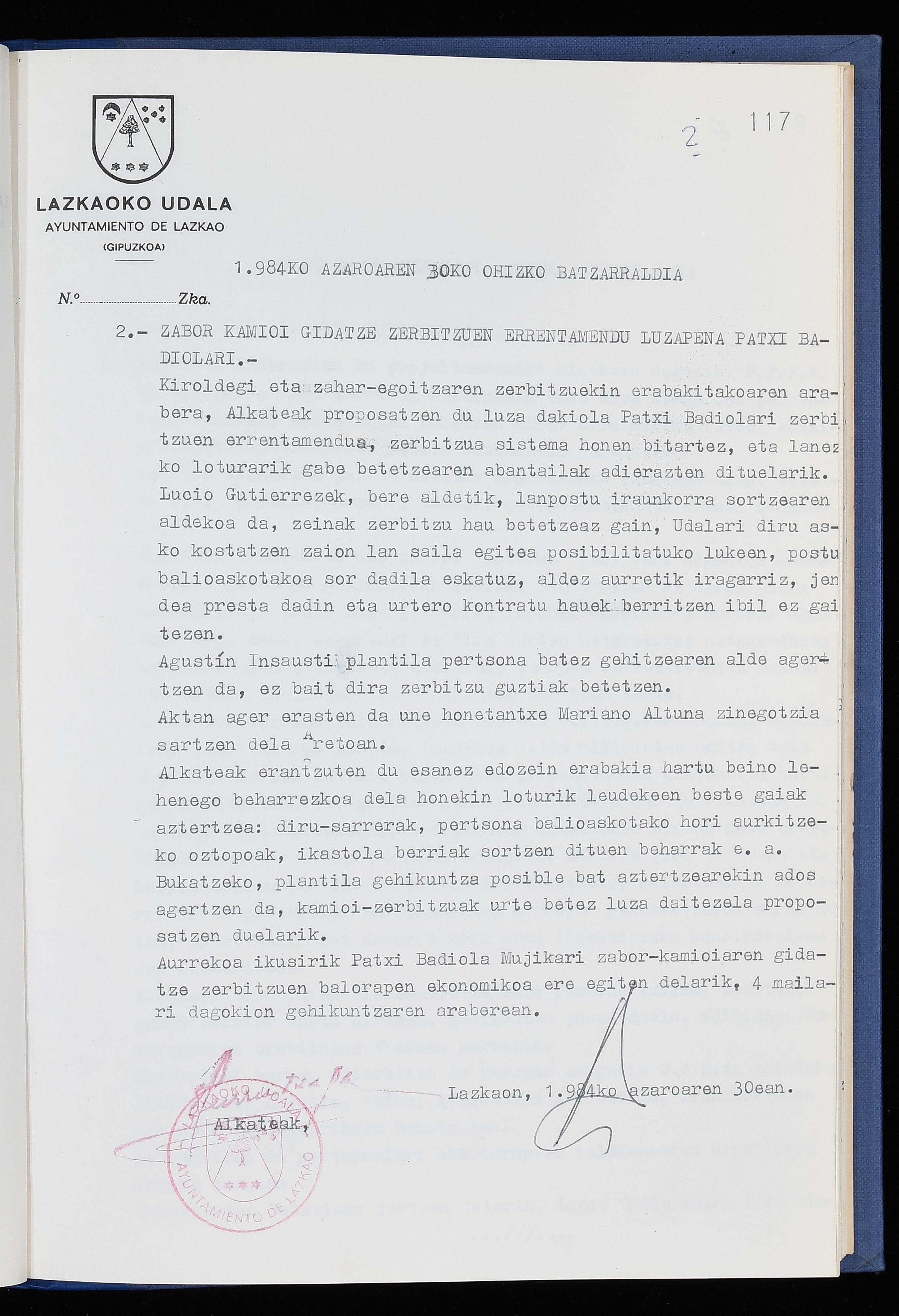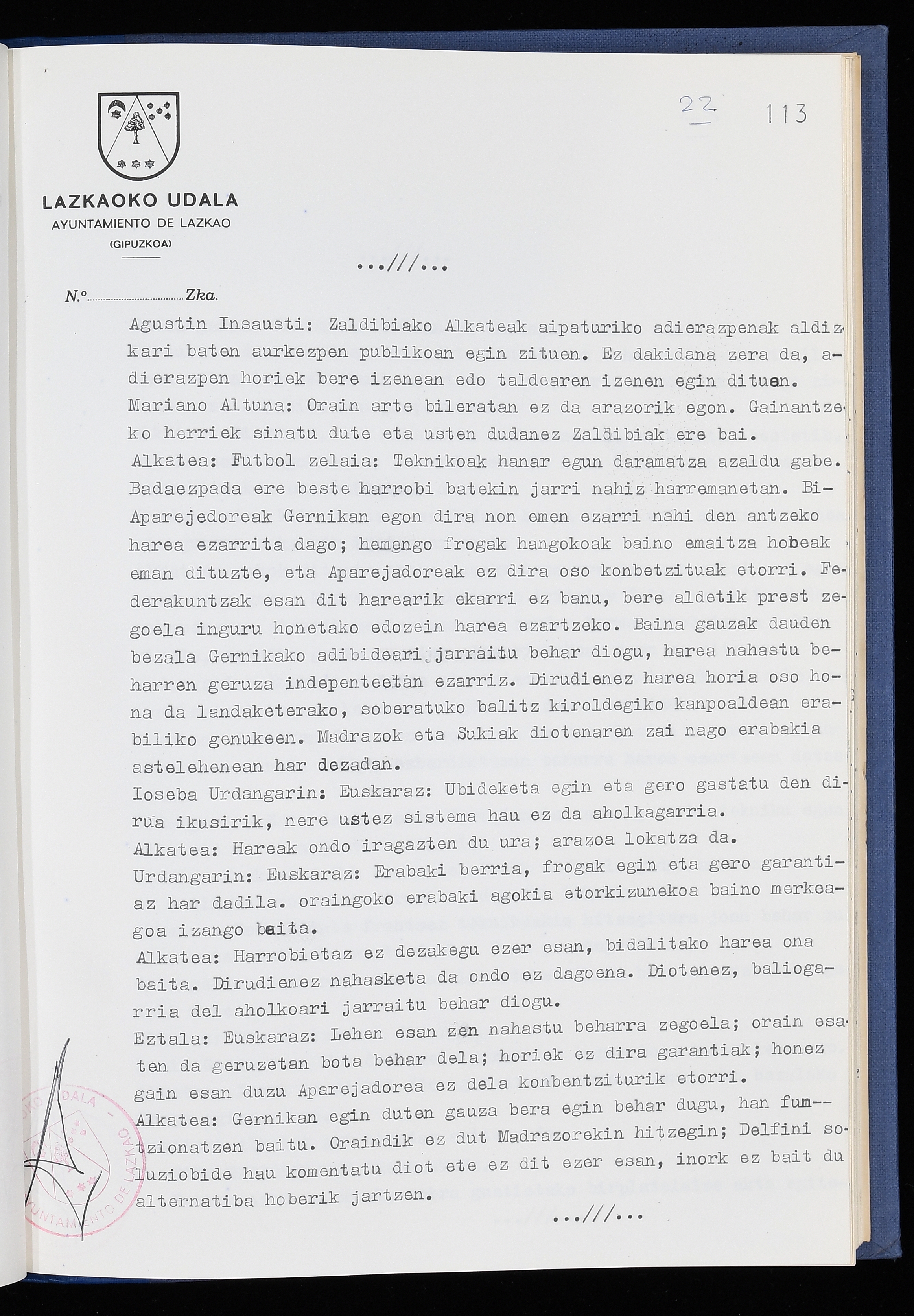 Log in to post commentsEdukiakSailkapenaFuntsaLazkaoko Udal ArtxiboaAtalakUdal AktakSailkapena1.1.4. Osoko Bilkuraren akta liburuakSailkapen berriaOsoko Bilkurako akta liburuakMultimediaIrudiakIdentifikazioaSignaturaakta liburua I-036Hasiera1984-06-01Amaiera1985-06-28AutoritateakTokiaLazkaoLog in to post commentsAkta eratu
