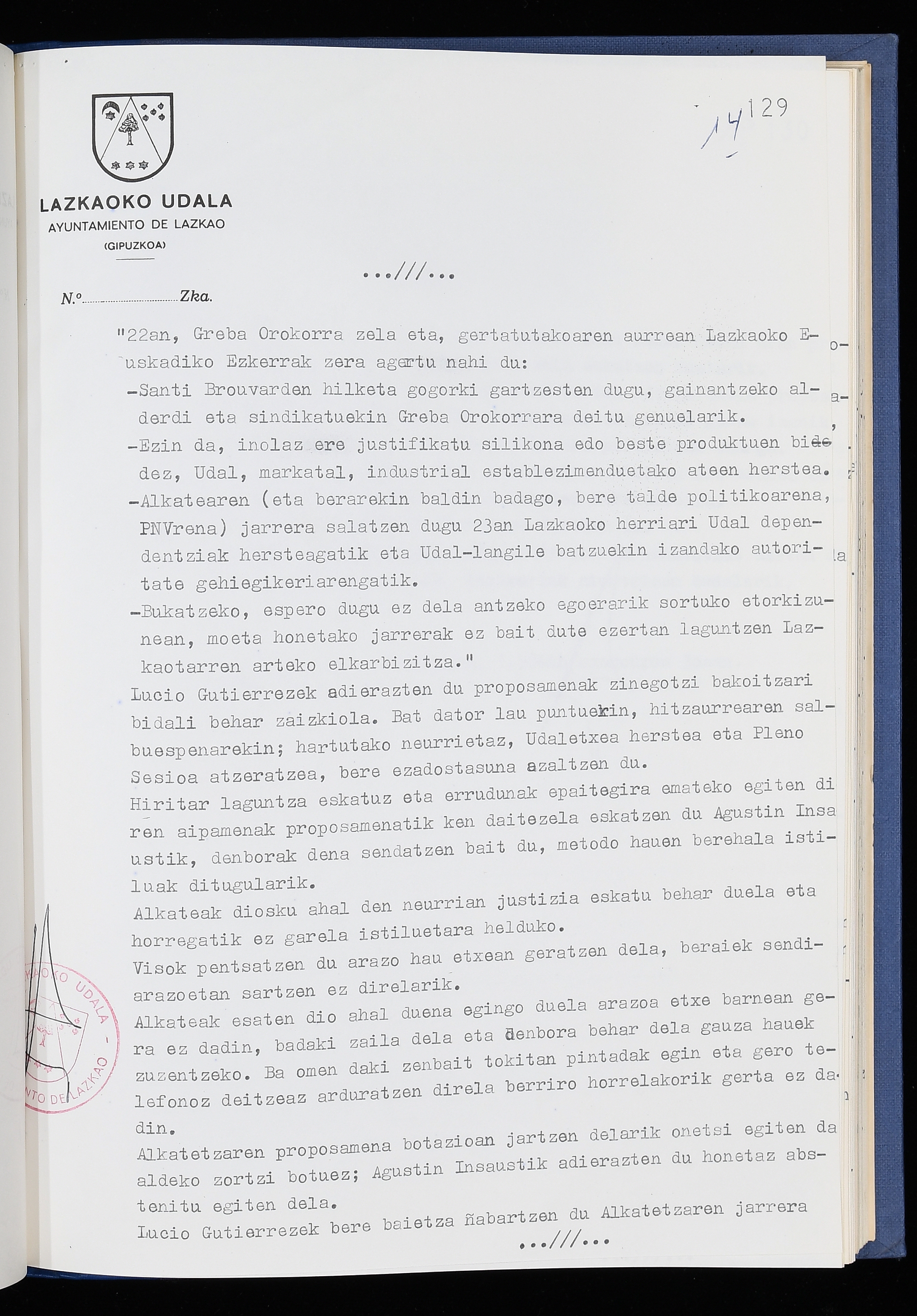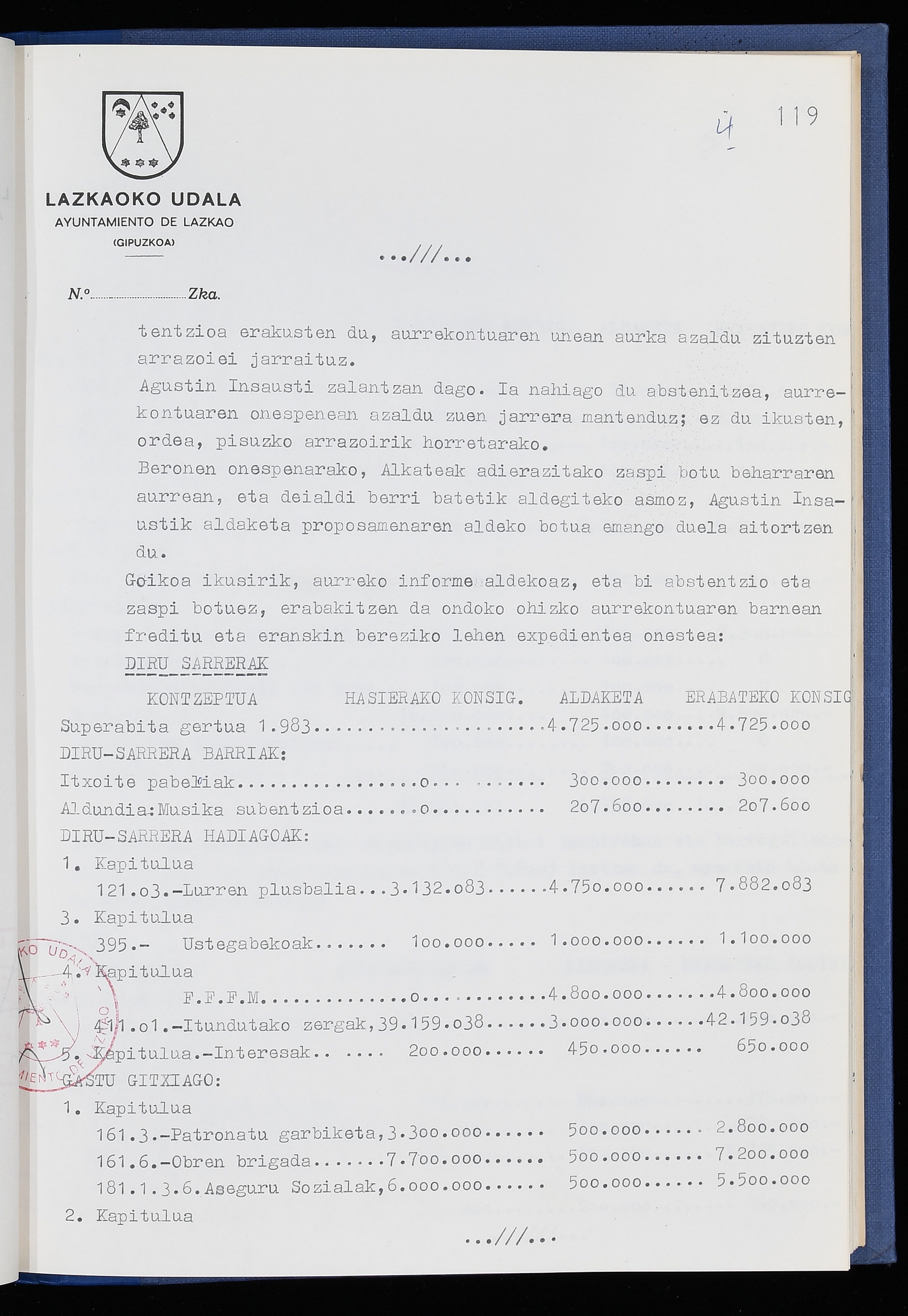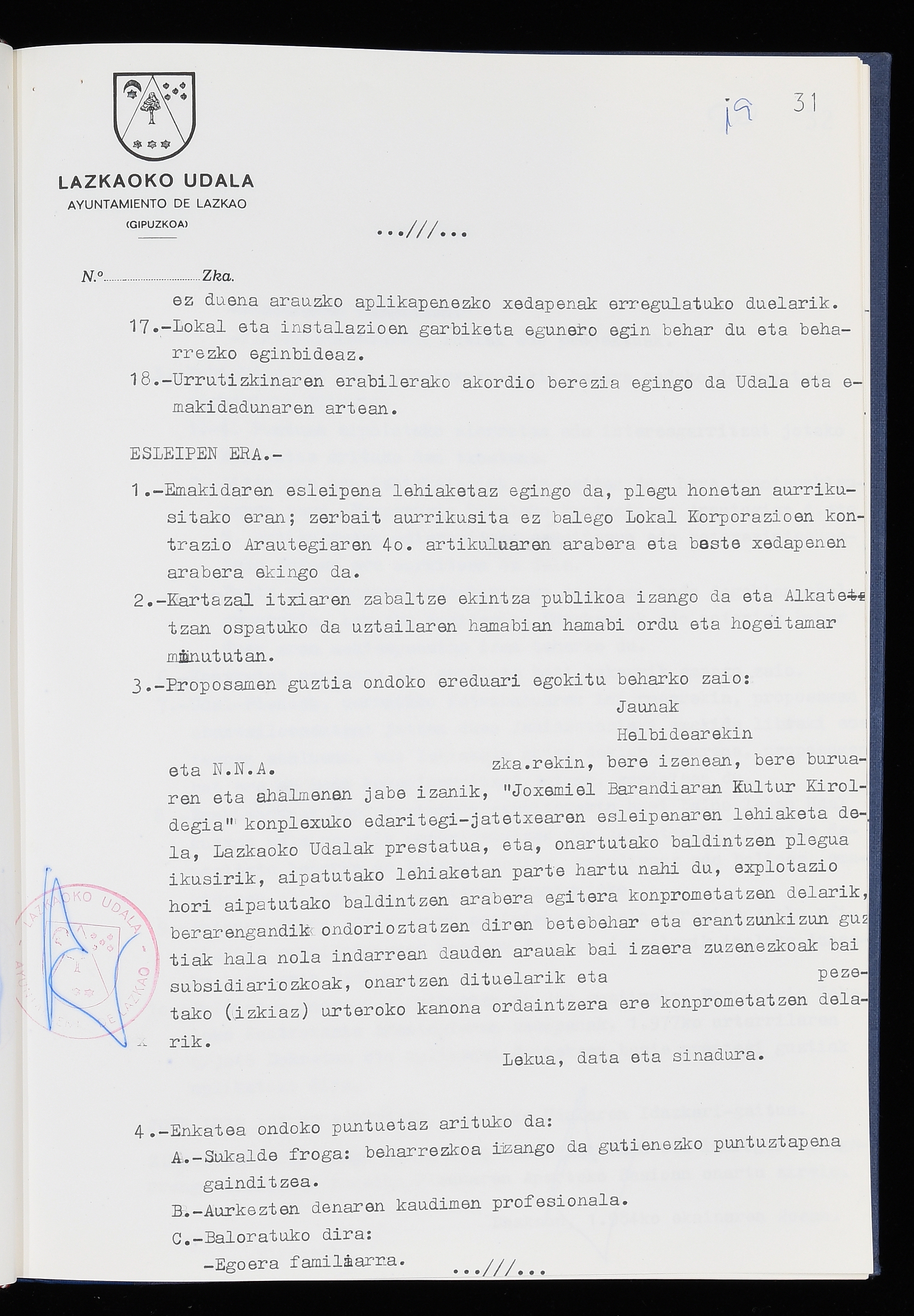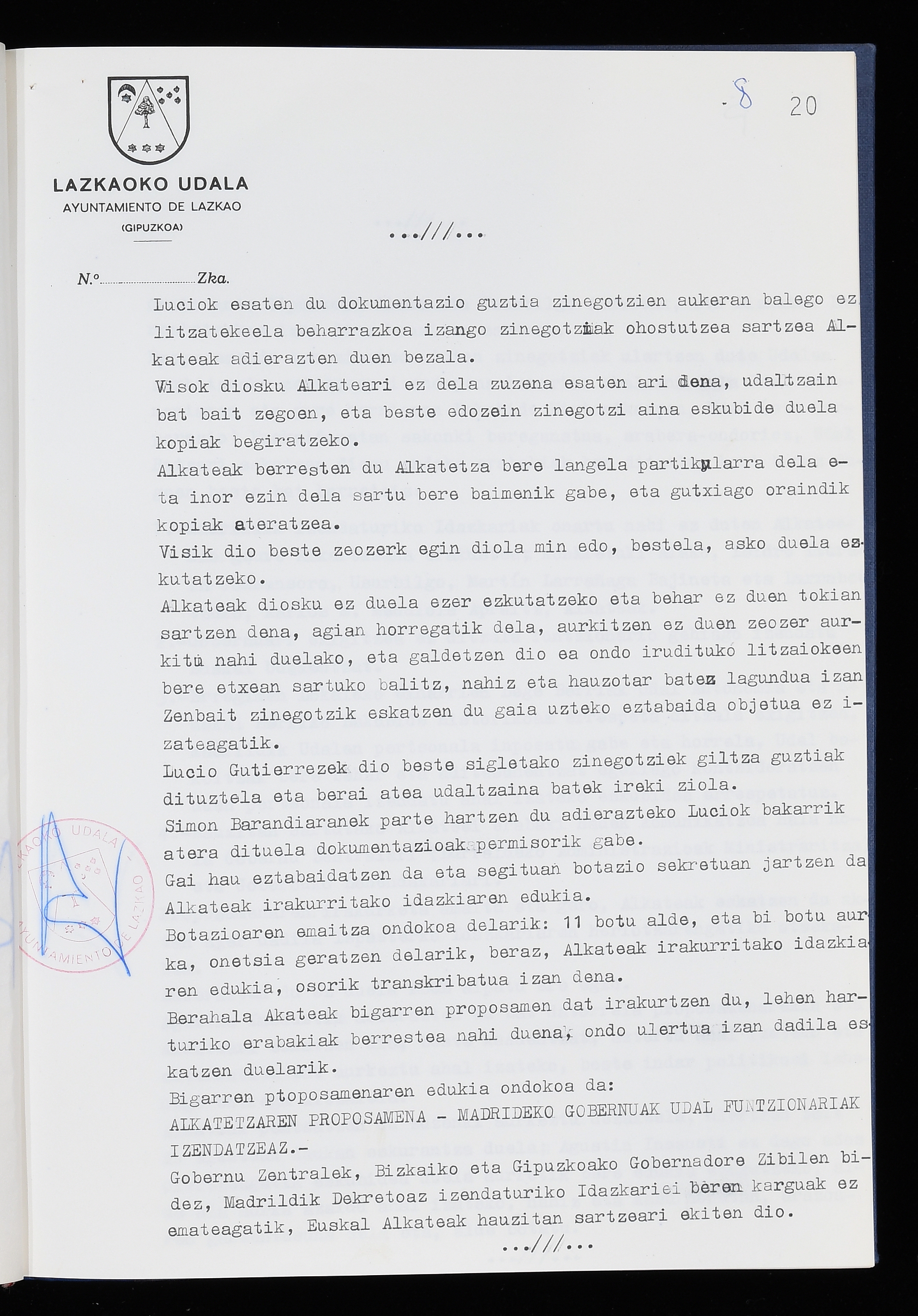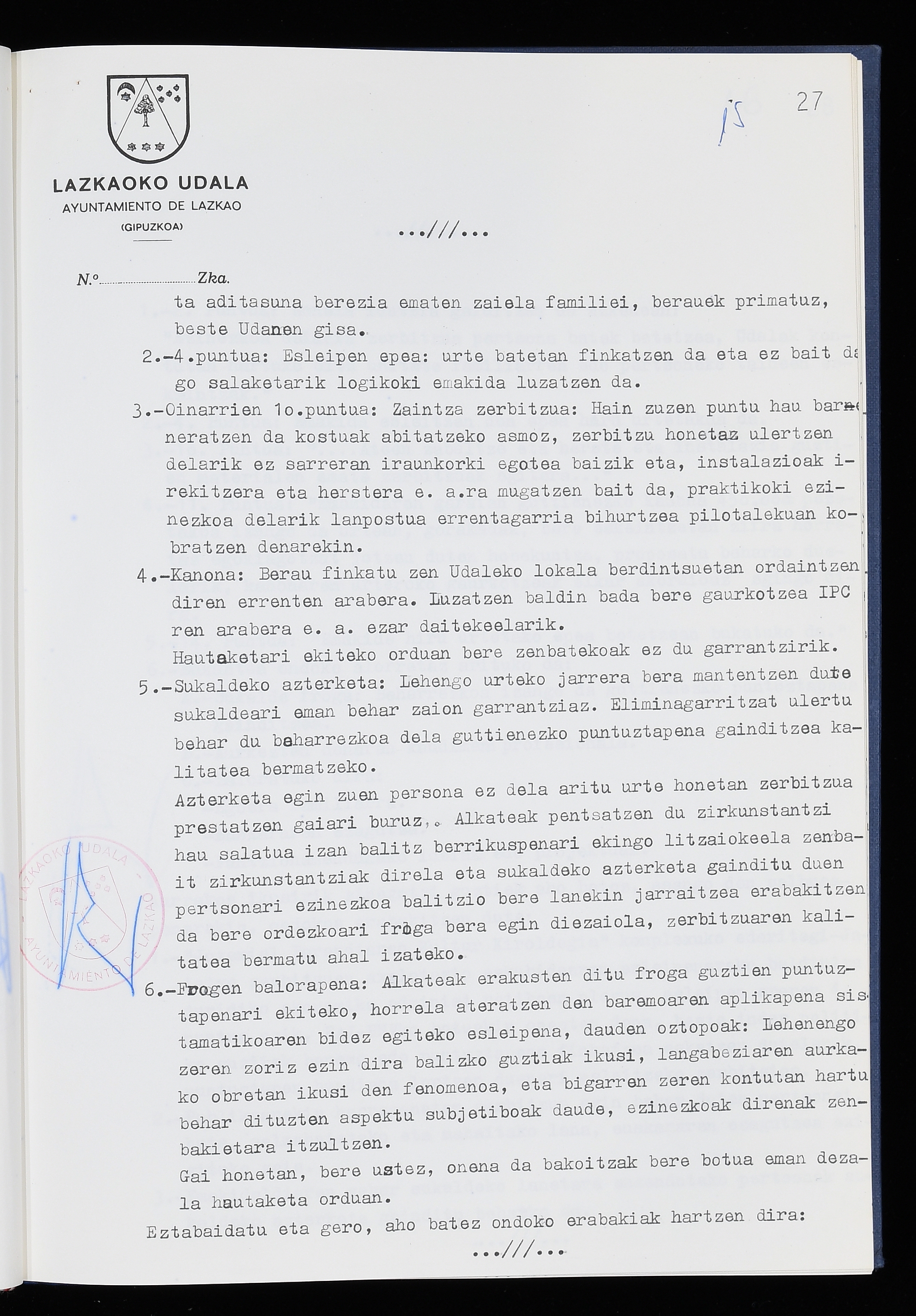 Log in to post commentsEdukiakSailkapenaFuntsaLazkaoko Udal ArtxiboaAtalakUdal AktakSailkapena1.1.4. Osoko Bilkuraren akta liburuakSailkapen berriaOsoko Bilkurako akta liburuakMultimediaIrudiakIdentifikazioaSignaturaakta liburua I-036Hasiera1984-06-01Amaiera1985-06-28AutoritateakTokiaLazkaoLog in to post commentsAkta eratu