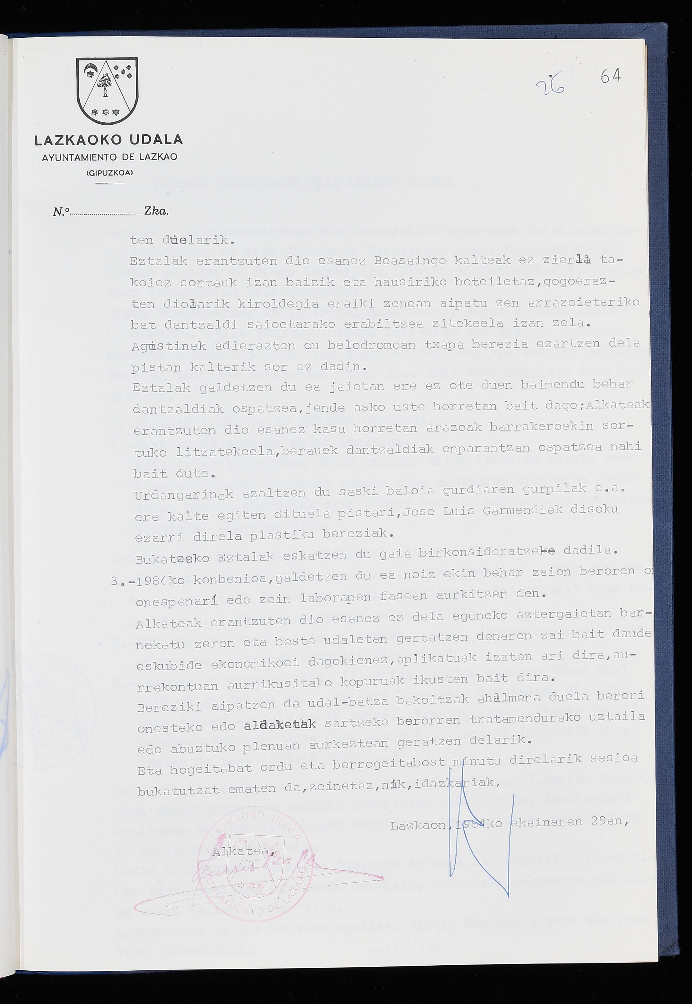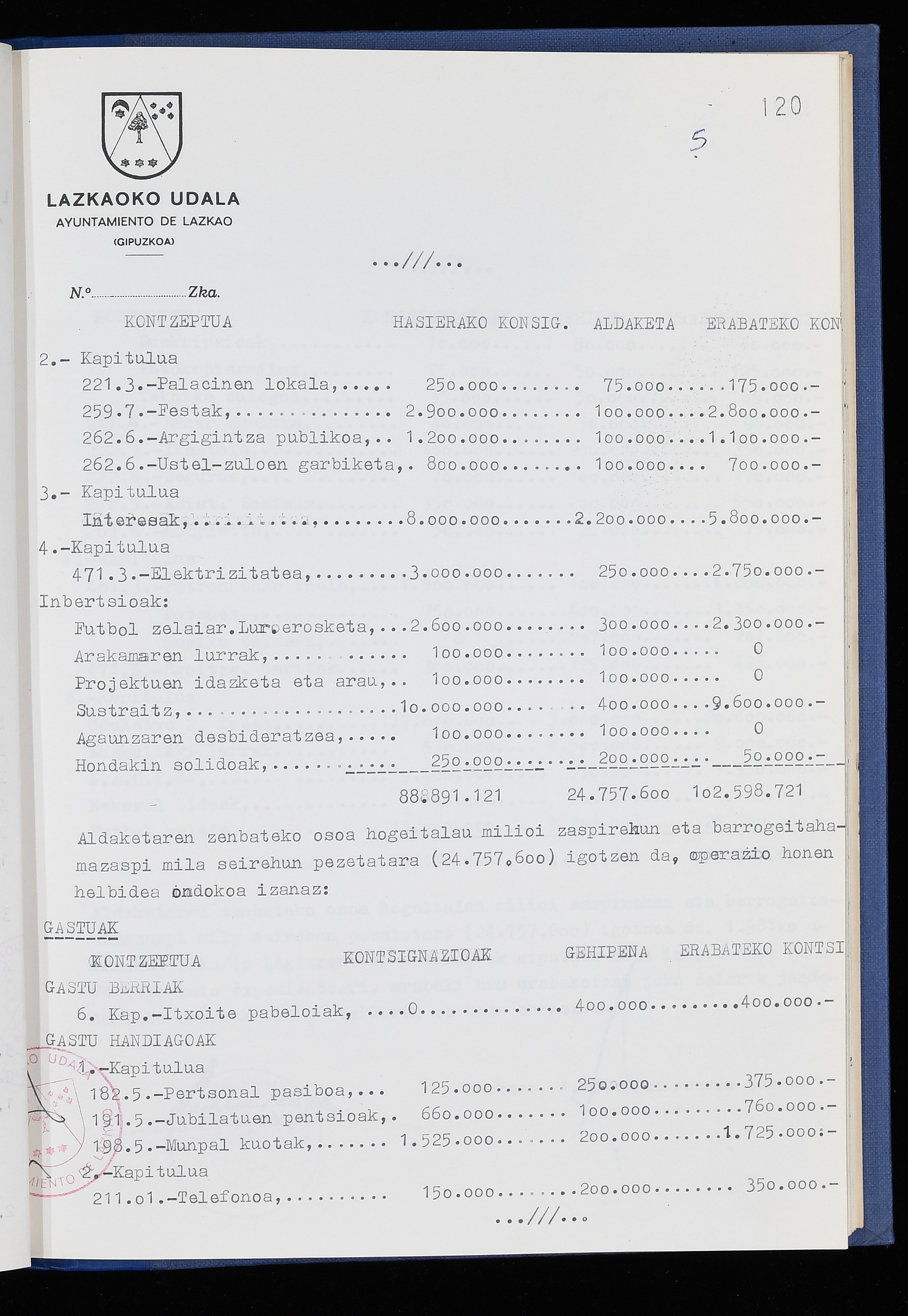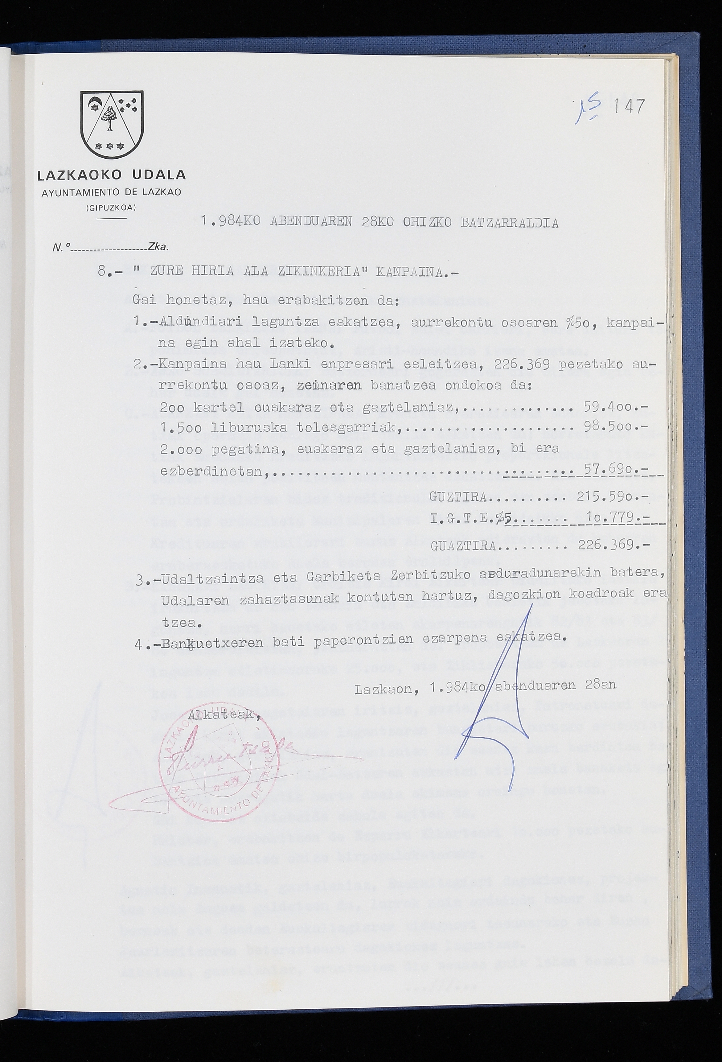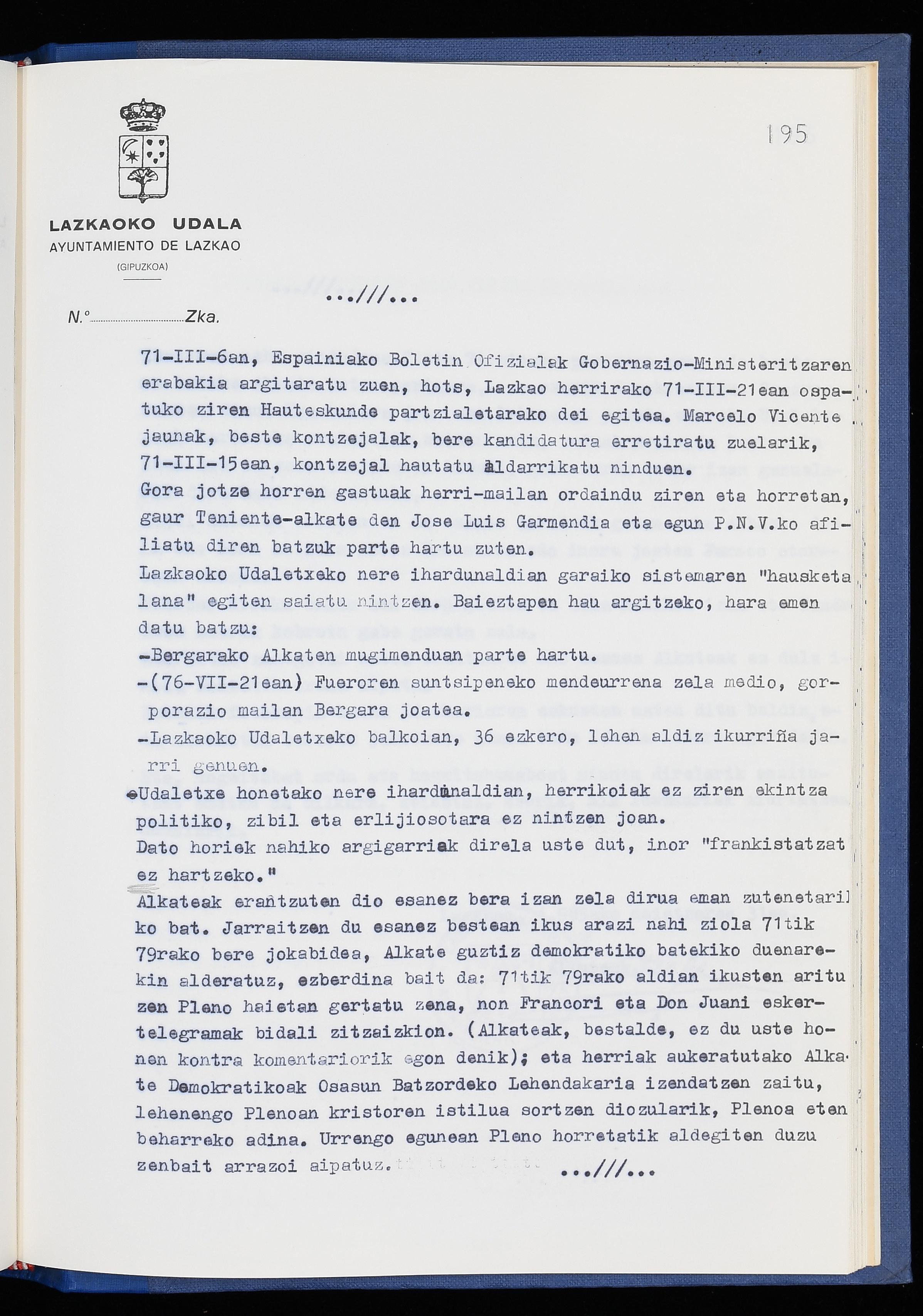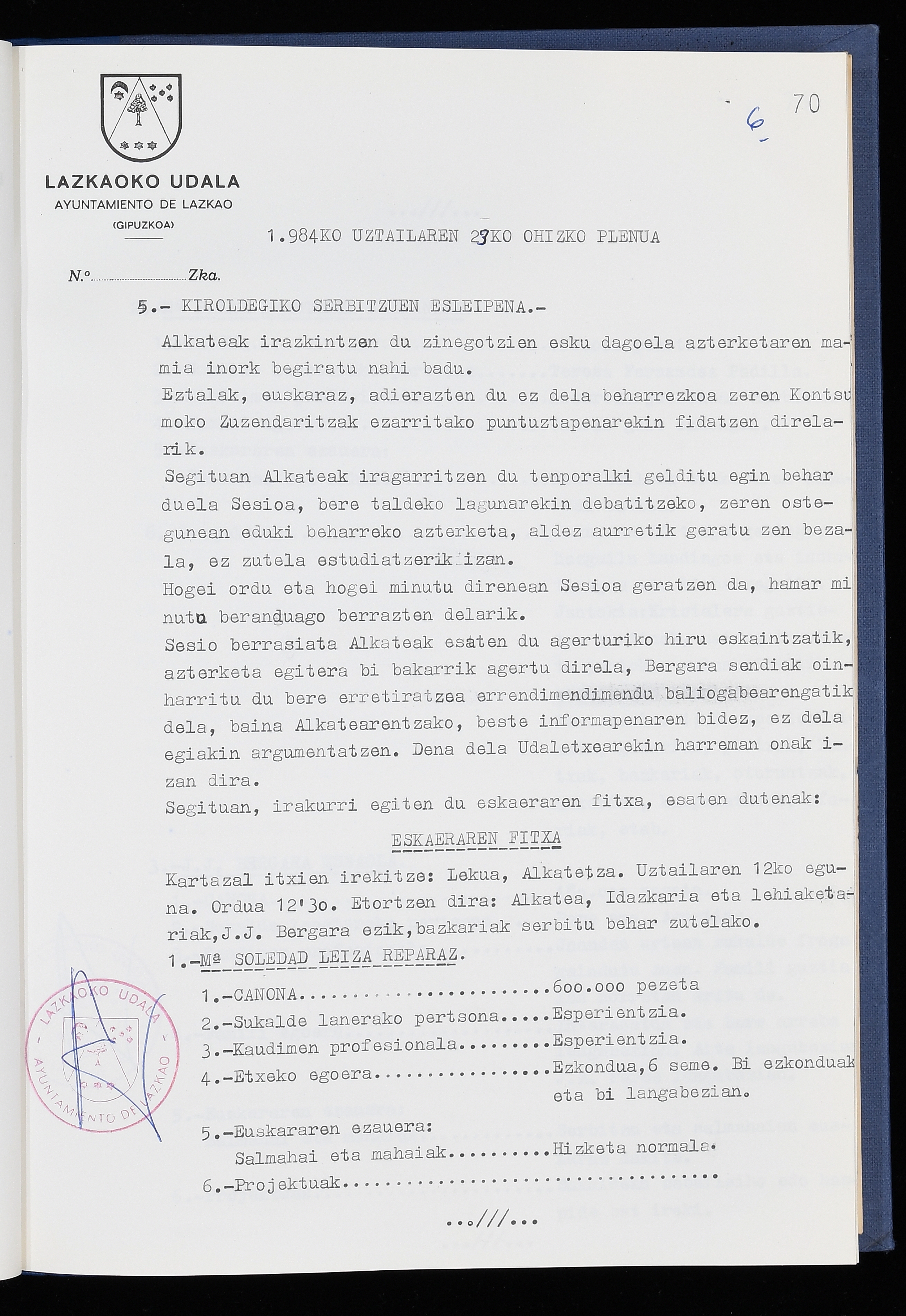 Log in to post commentsEdukiakSailkapenaFuntsaLazkaoko Udal ArtxiboaAtalakUdal AktakSailkapena1.1.4. Osoko Bilkuraren akta liburuakSailkapen berriaOsoko Bilkurako akta liburuakMultimediaIrudiakIdentifikazioaSignaturaakta liburua I-036Hasiera1984-06-01Amaiera1985-06-28AutoritateakTokiaLazkaoLog in to post commentsAkta eratu