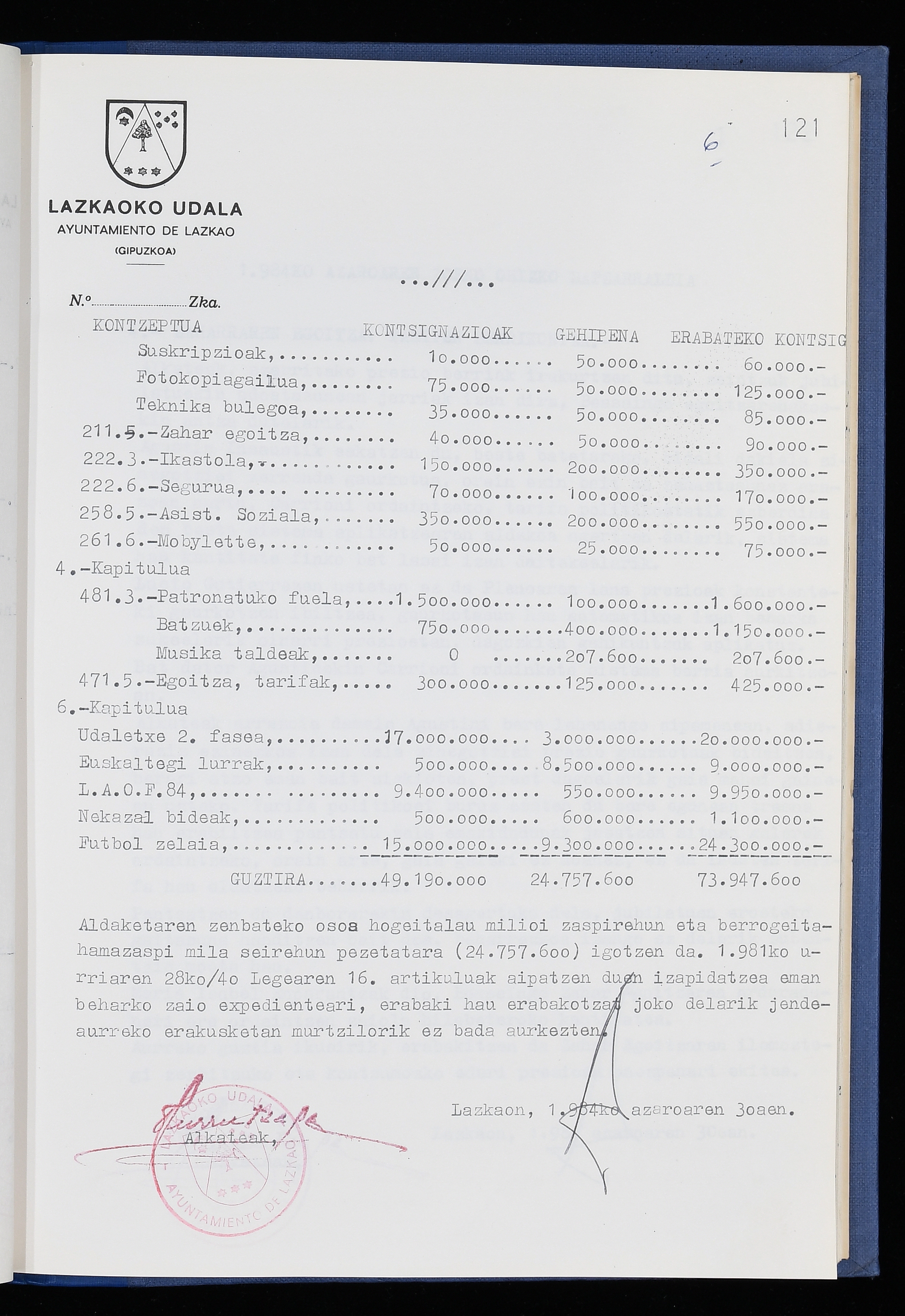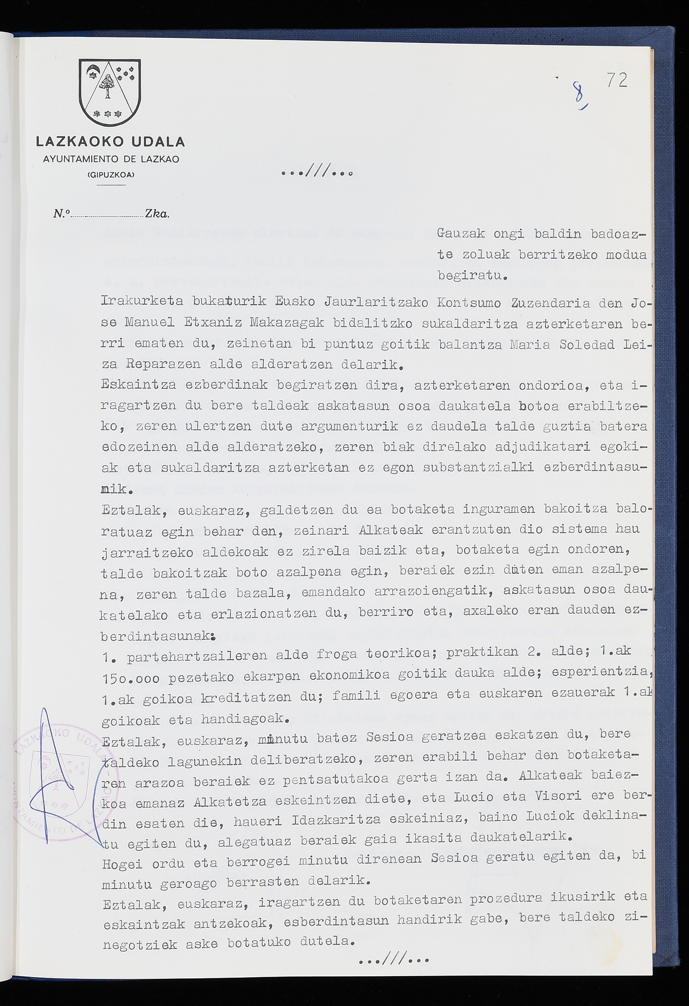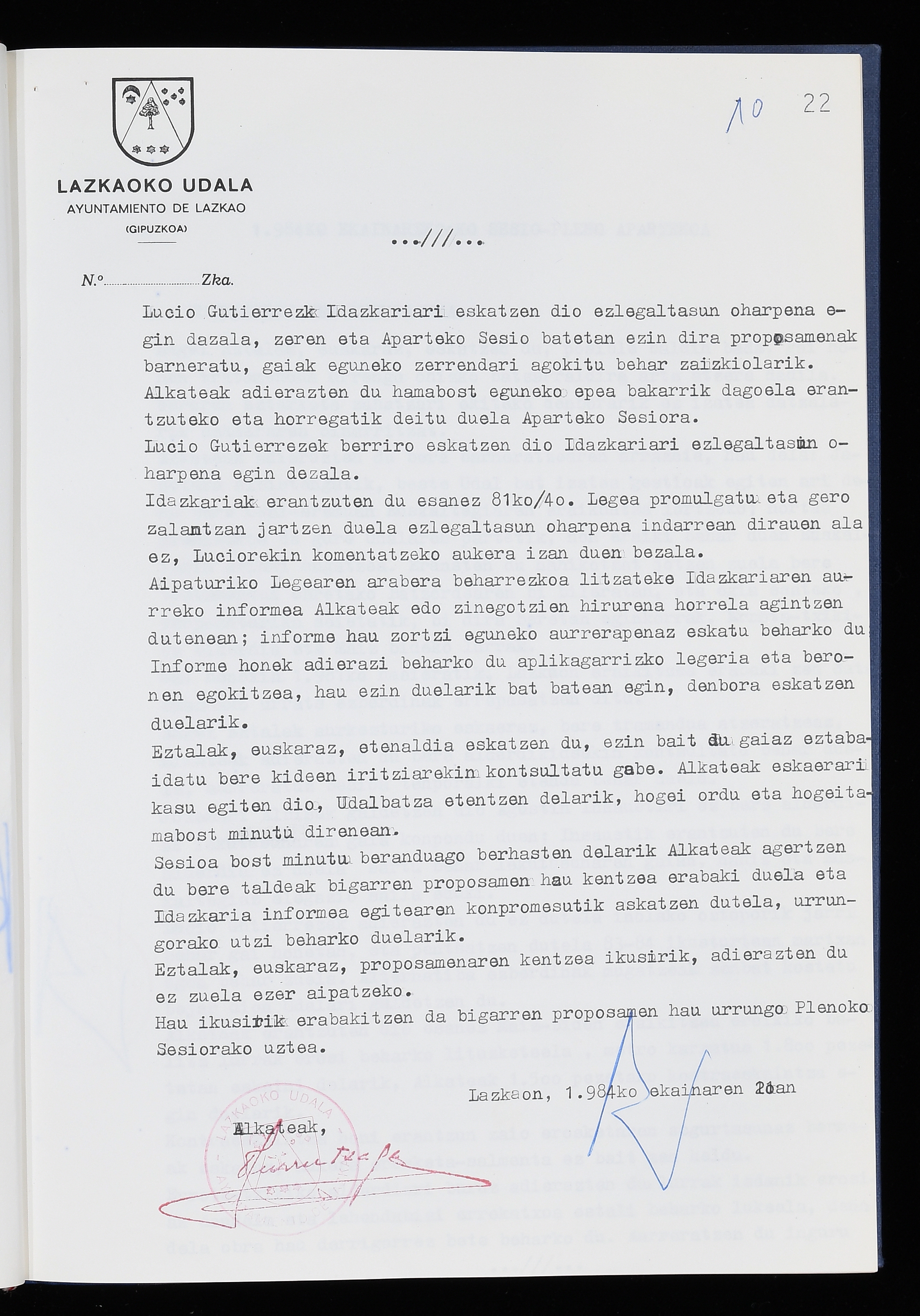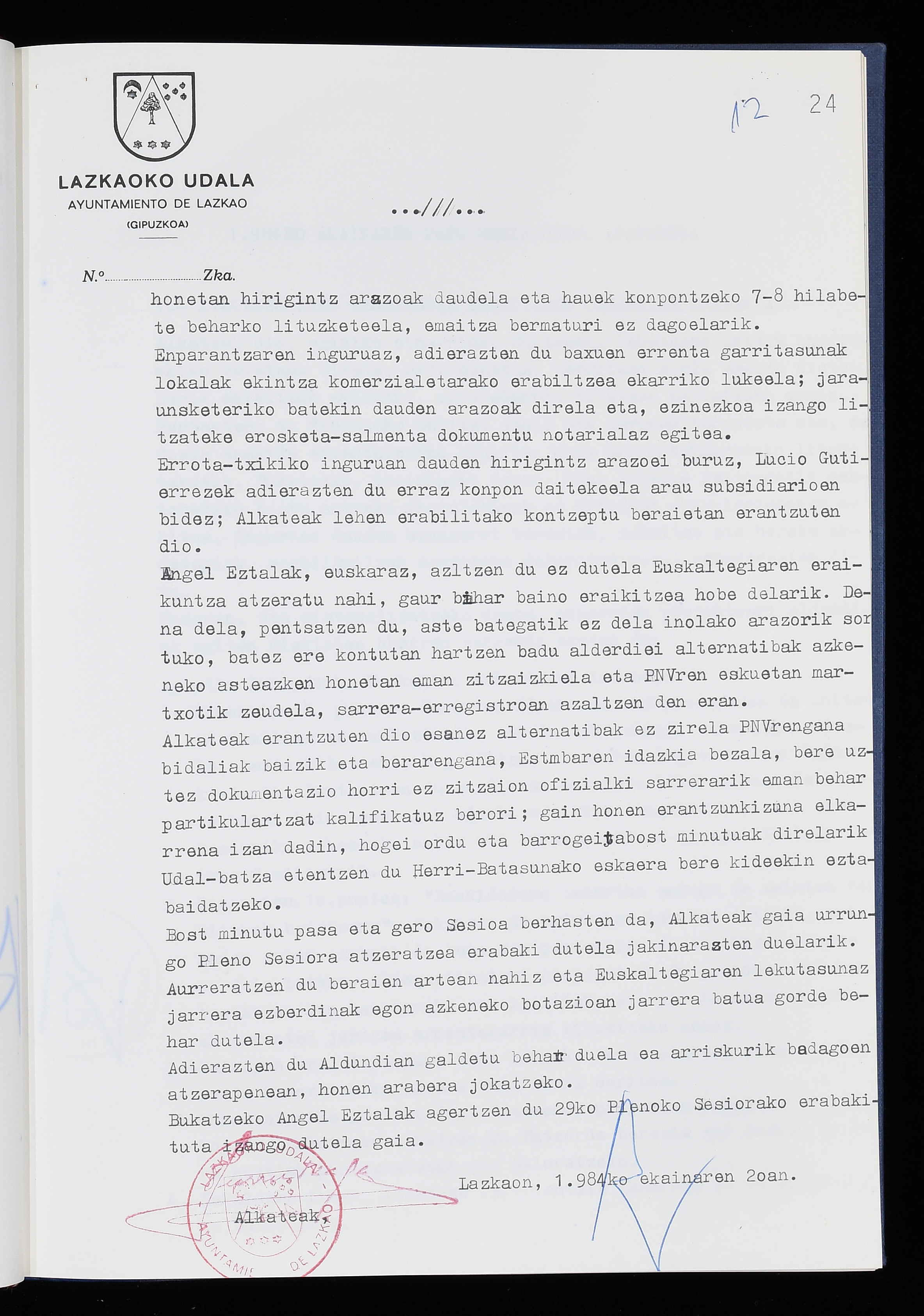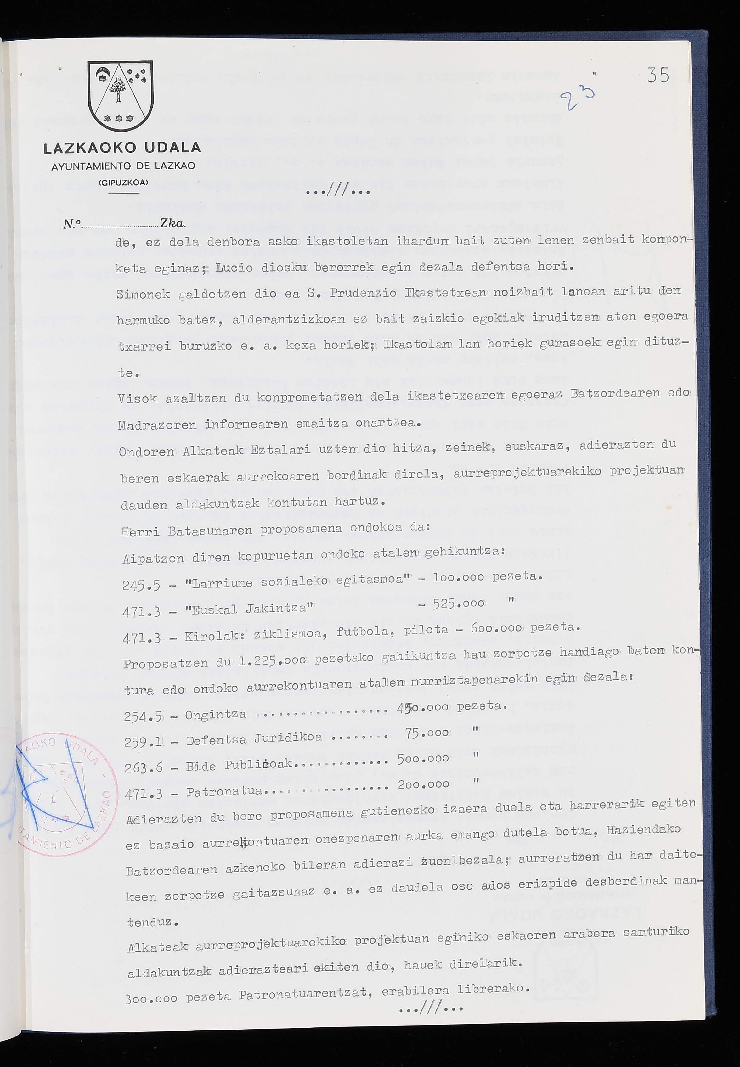 Log in to post commentsEdukiakSailkapenaFuntsaLazkaoko Udal ArtxiboaAtalakUdal AktakSailkapena1.1.4. Osoko Bilkuraren akta liburuakSailkapen berriaOsoko Bilkurako akta liburuakMultimediaIrudiakIdentifikazioaSignaturaakta liburua I-036Hasiera1984-06-01Amaiera1985-06-28AutoritateakTokiaLazkaoLog in to post commentsAkta eratu