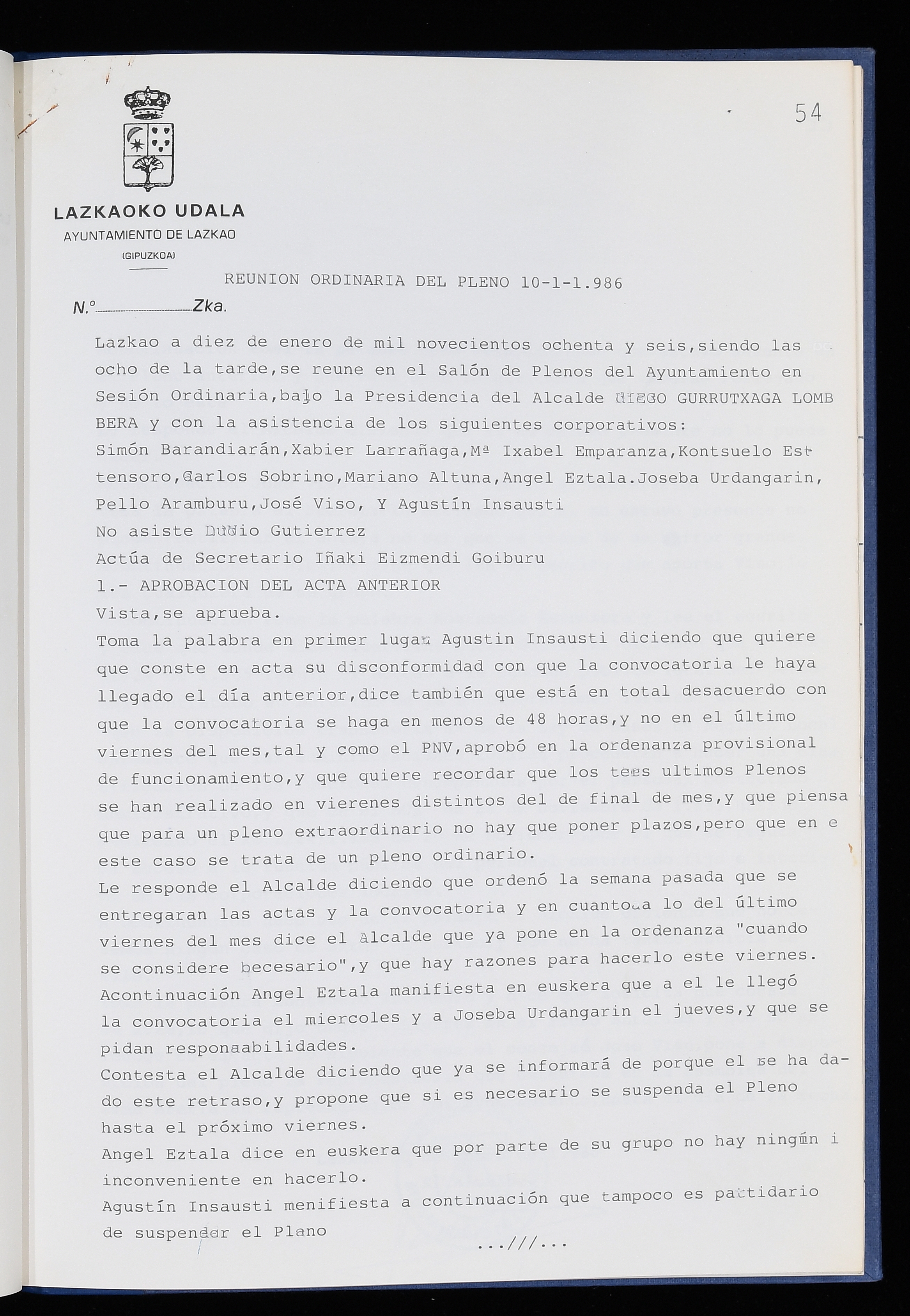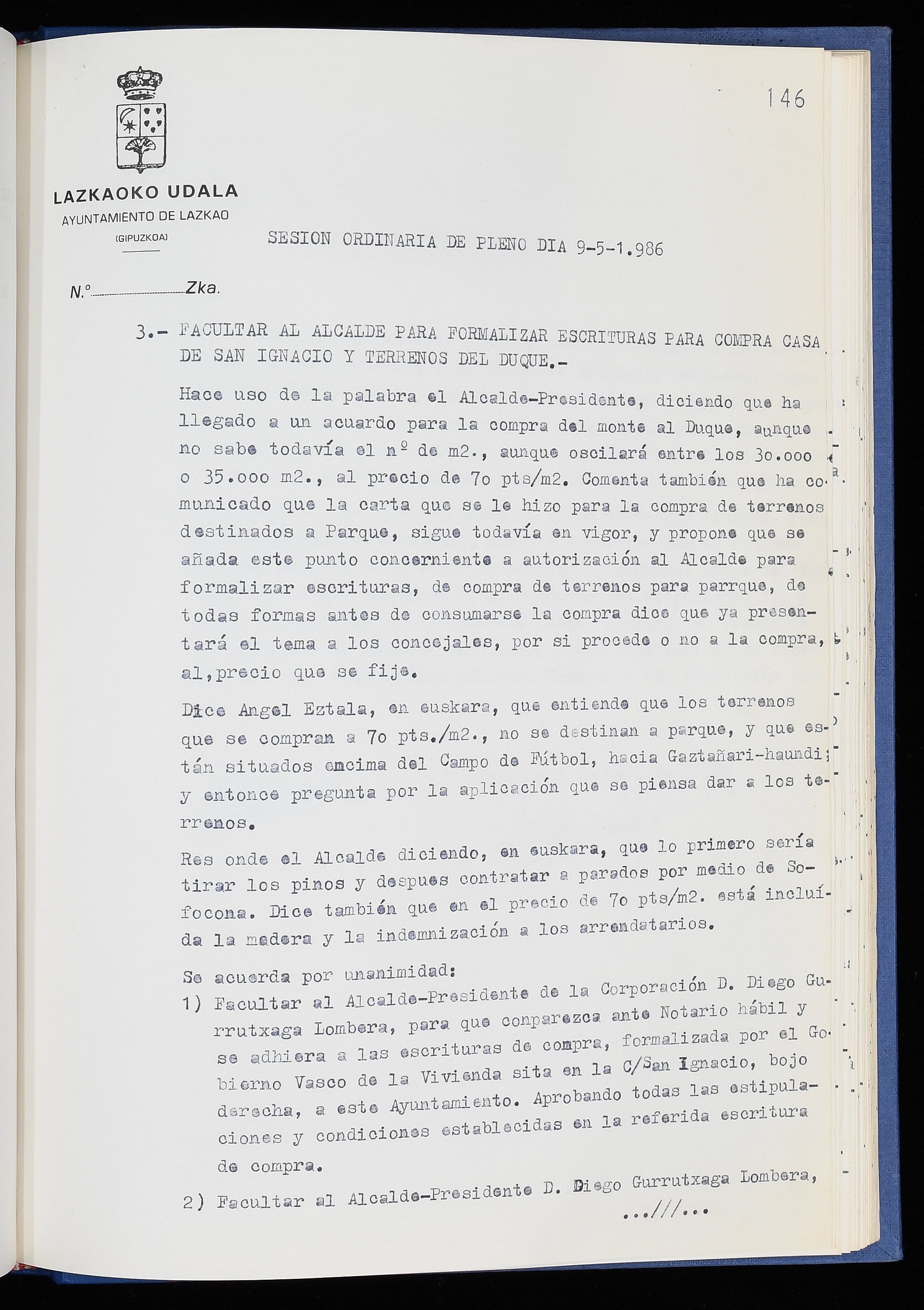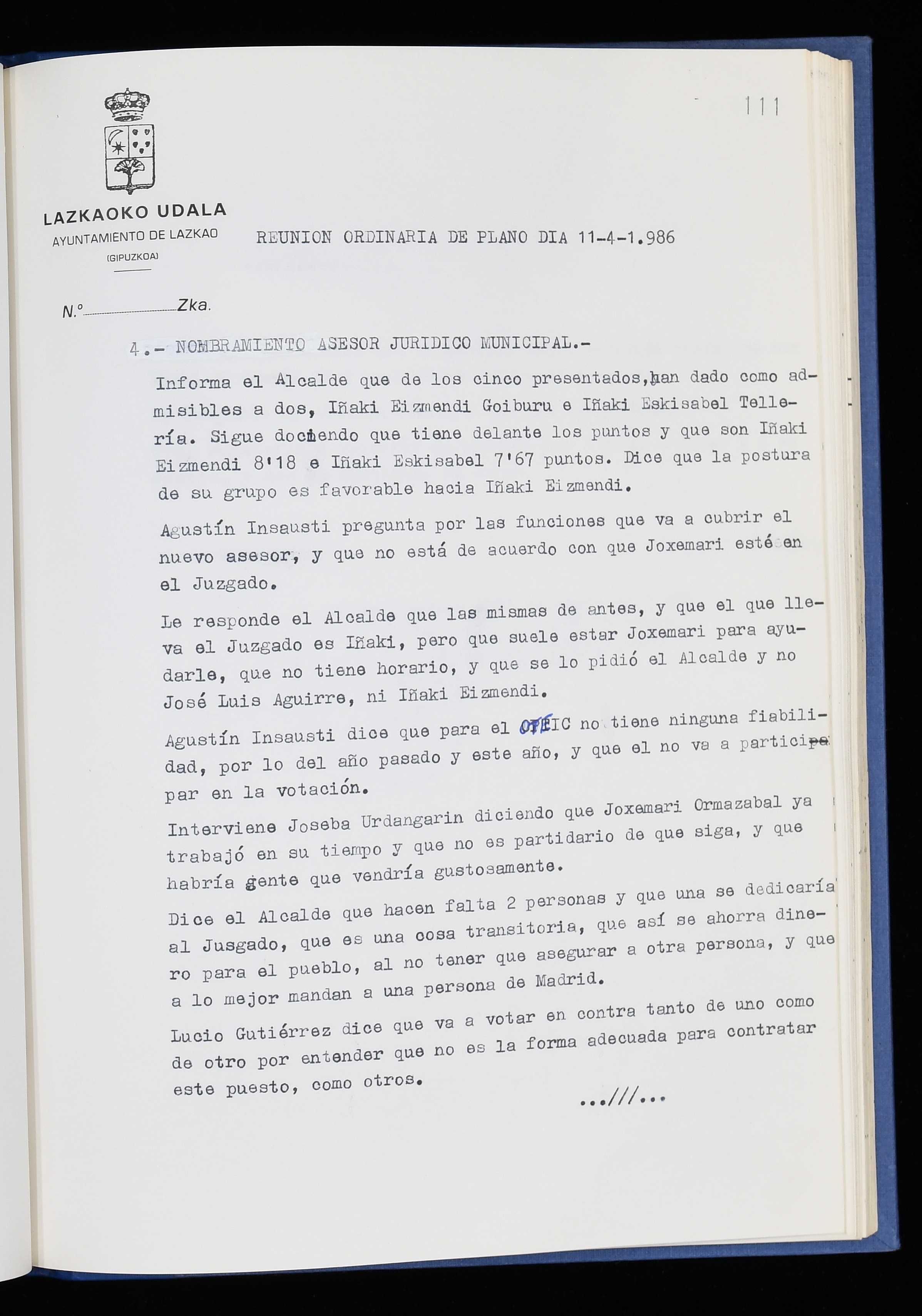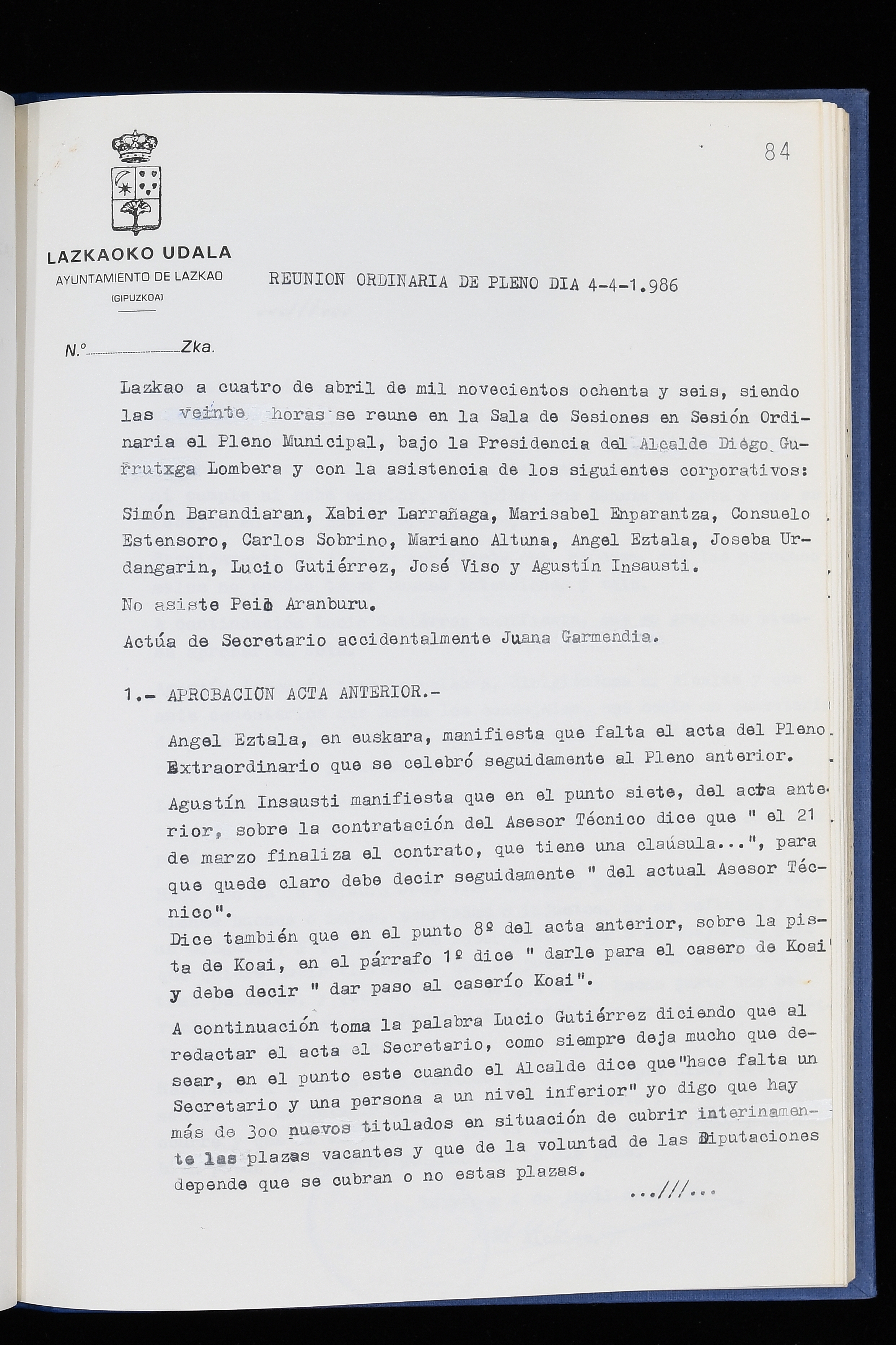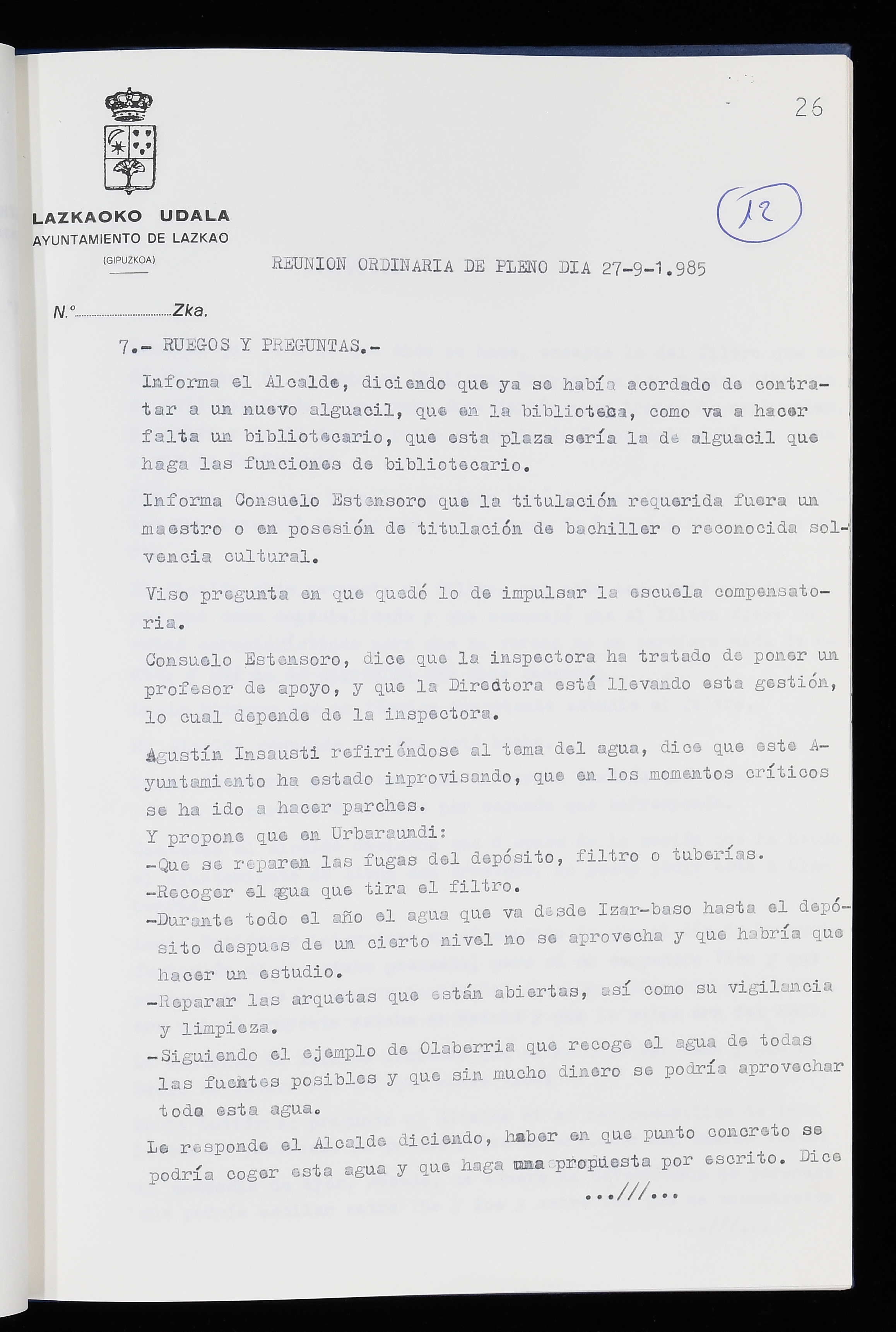 Log in to post commentsEdukiakSailkapenaFuntsaLazkaoko Udal ArtxiboaAtalakUdal AktakSailkapena1.1.4. Osoko Bilkuraren akta liburuakSailkapen berriaOsoko Bilkurako akta liburuakMultimediaIrudiakIdentifikazioaSignaturaakta liburua I-039Hasiera1985-07-22Amaiera1986-06-13AutoritateakTokiaLazkaoLog in to post commentsAkta eratu