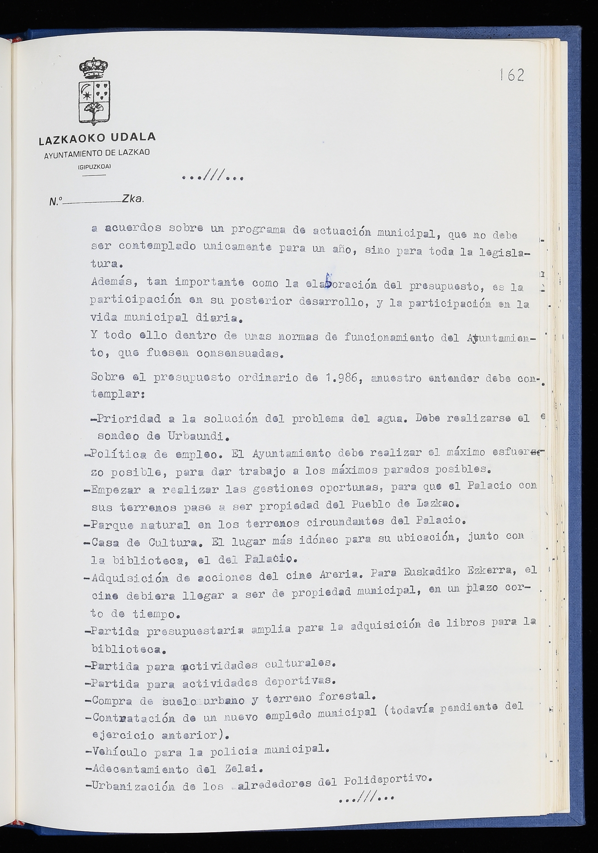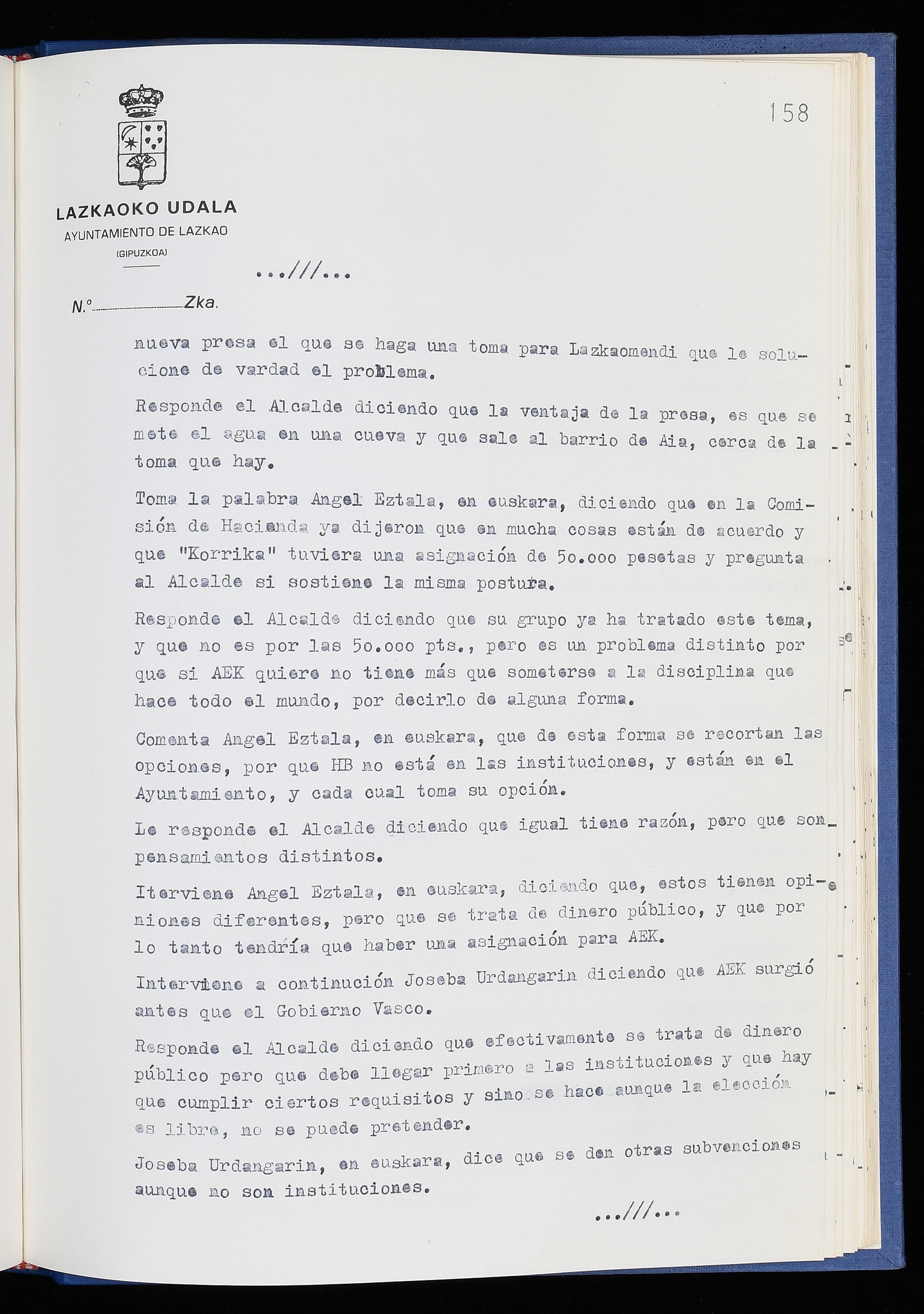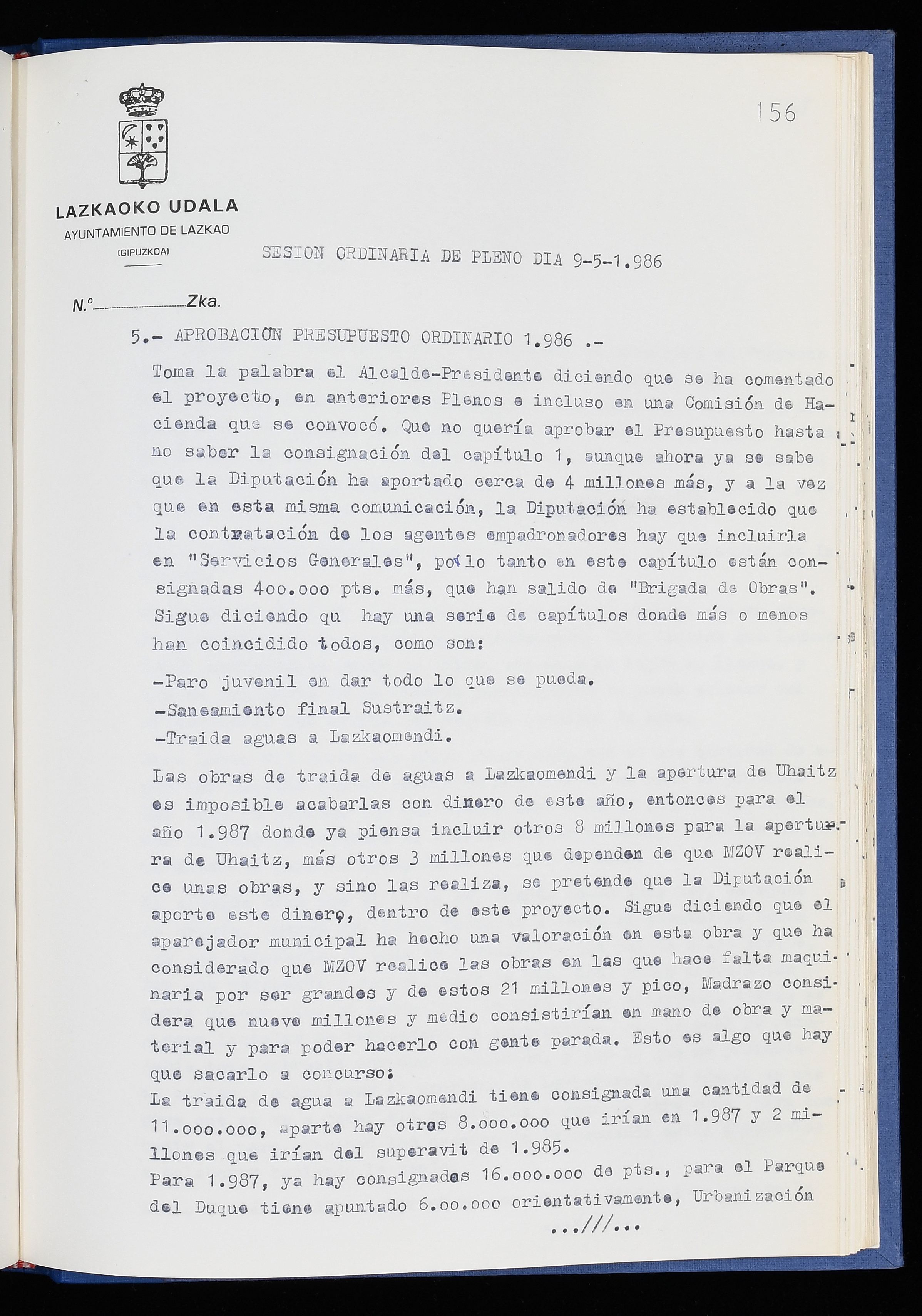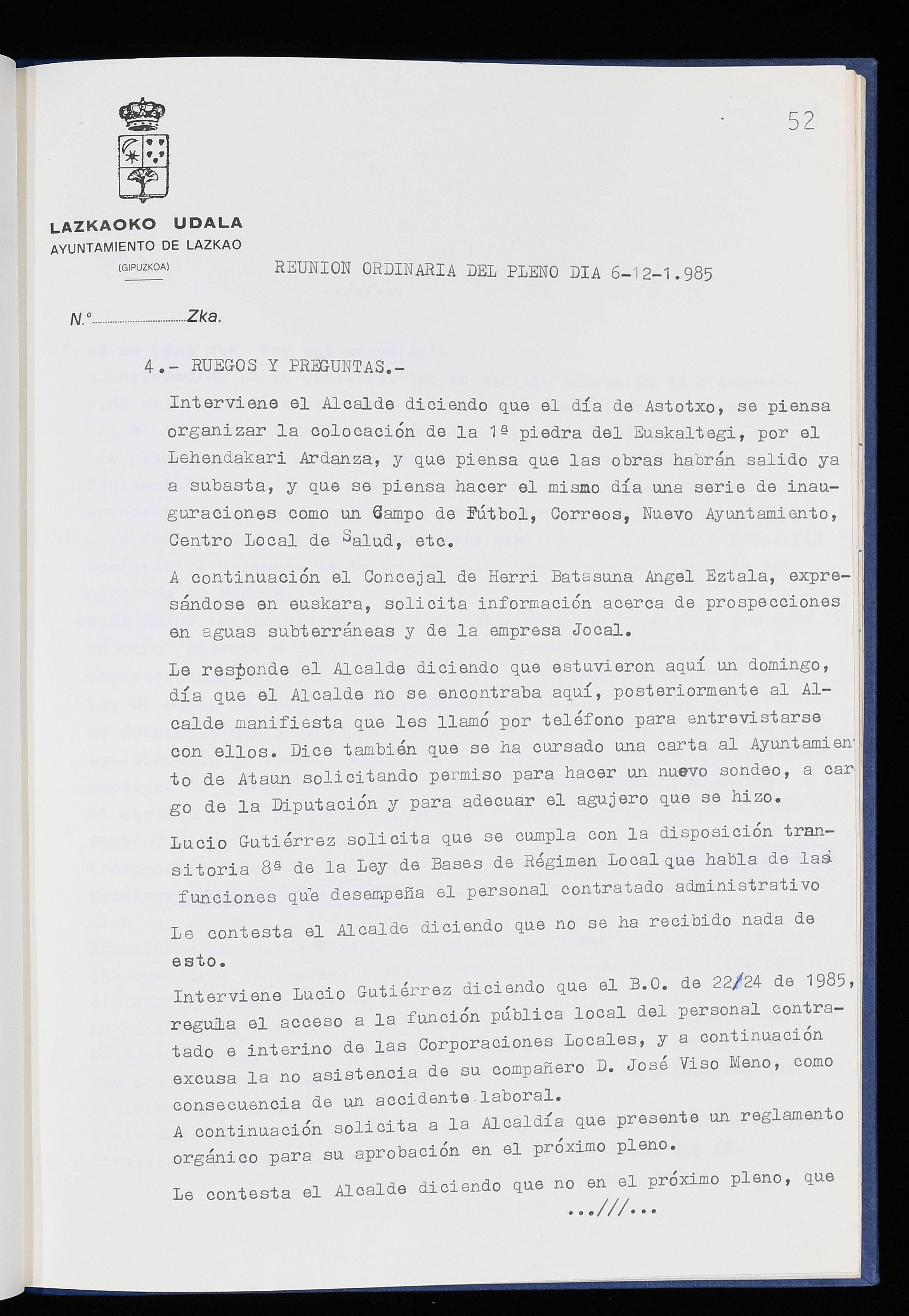 Log in to post commentsEdukiakSailkapenaFuntsaLazkaoko Udal ArtxiboaAtalakUdal AktakSailkapena1.1.4. Osoko Bilkuraren akta liburuakSailkapen berriaOsoko Bilkurako akta liburuakMultimediaIrudiakIdentifikazioaSignaturaakta liburua I-039Hasiera1985-07-22Amaiera1986-06-13AutoritateakTokiaLazkaoLog in to post commentsAkta eratu