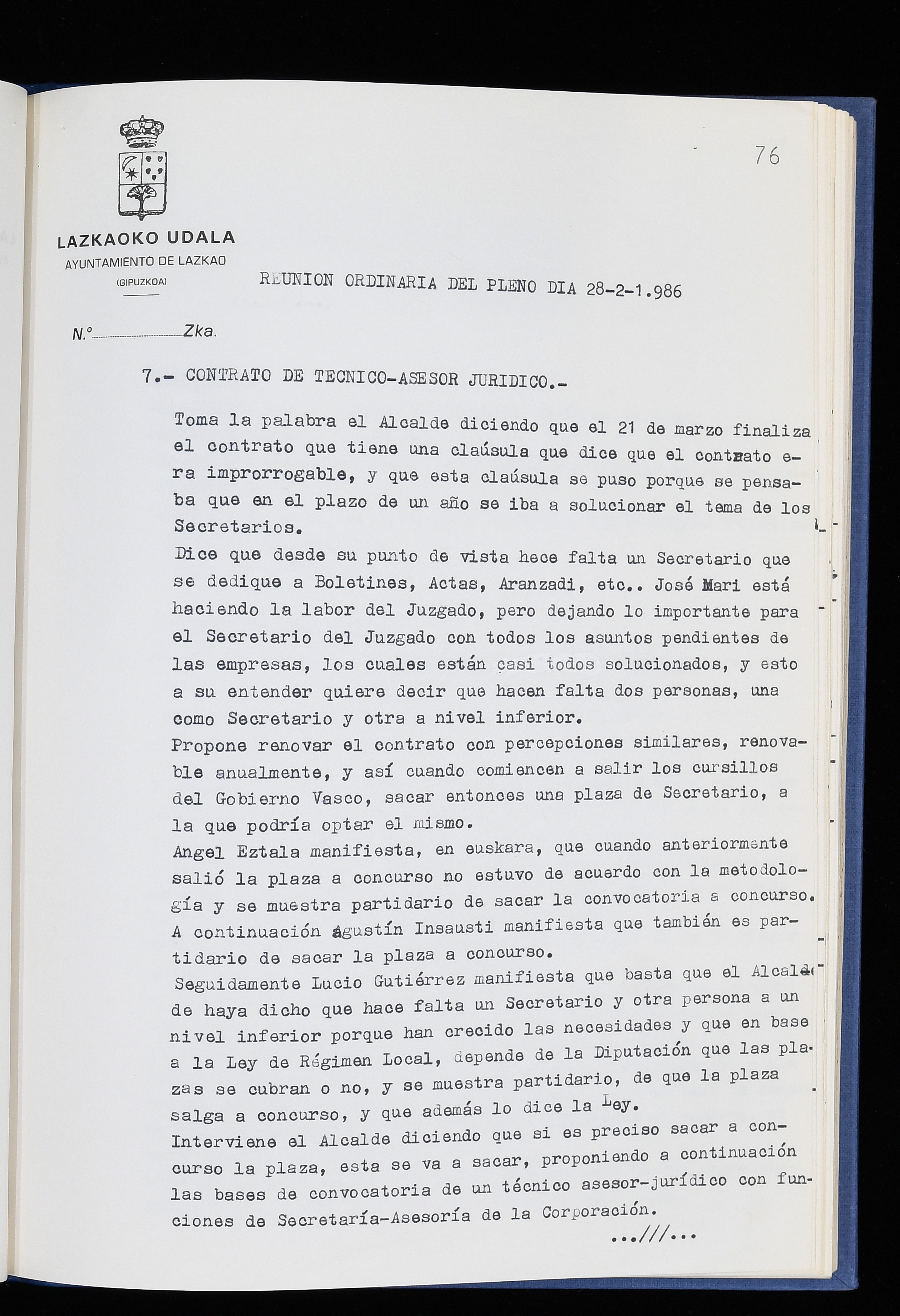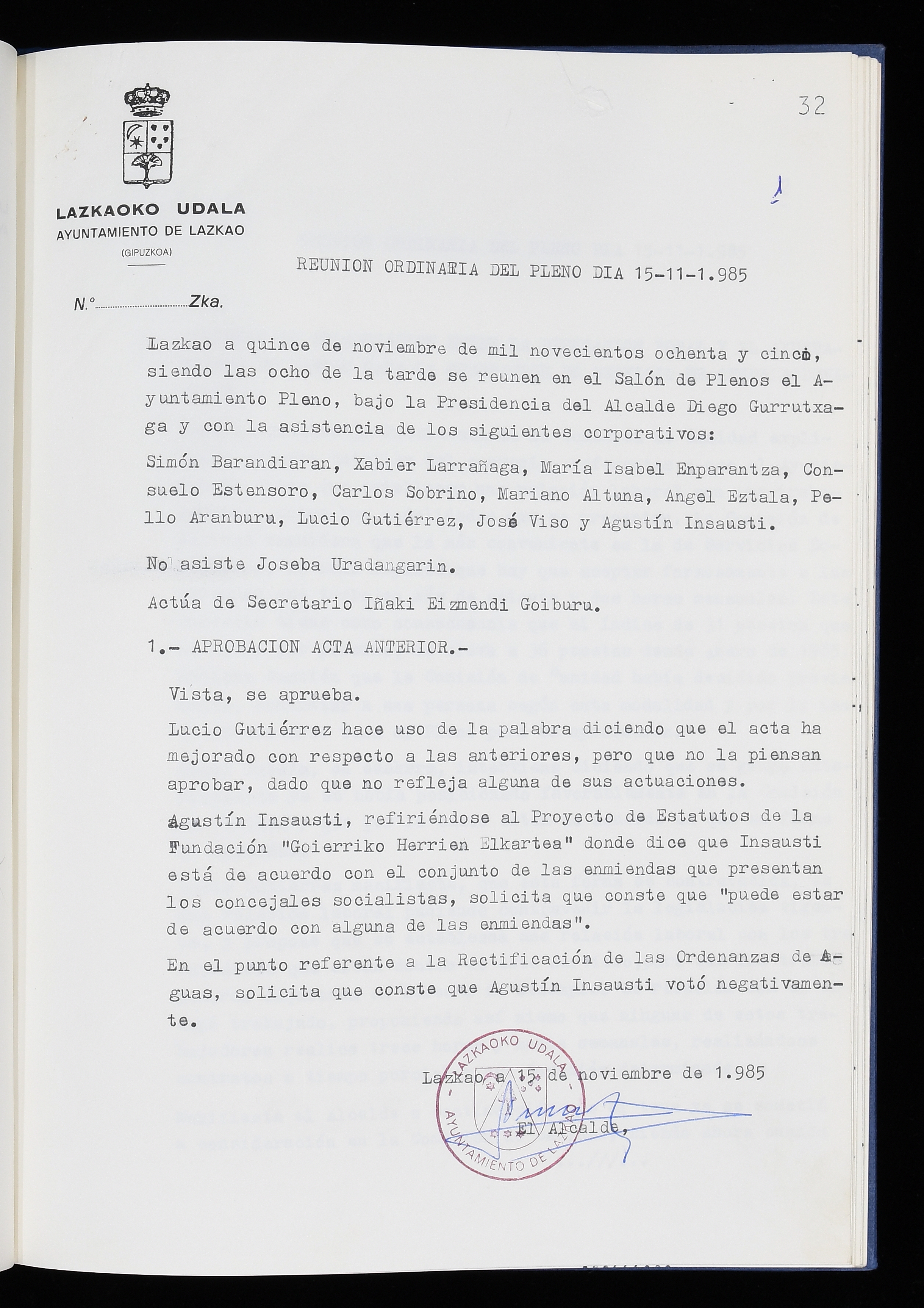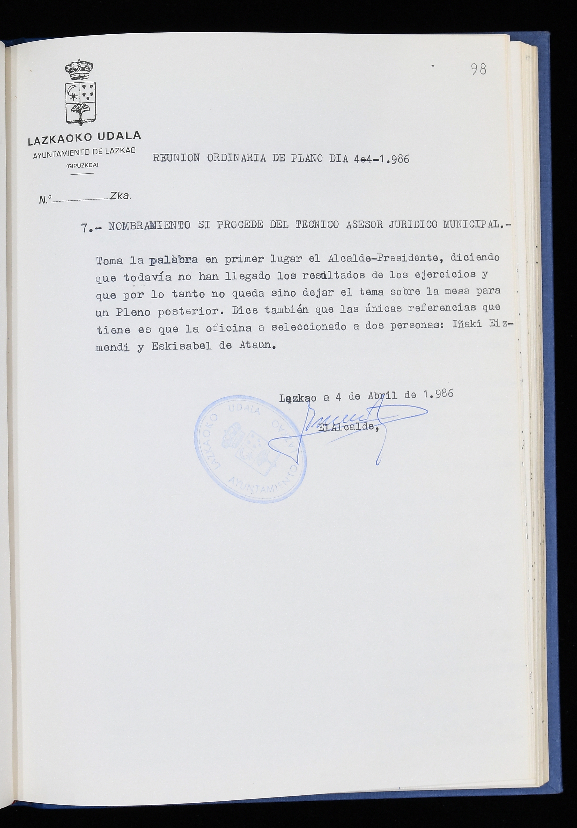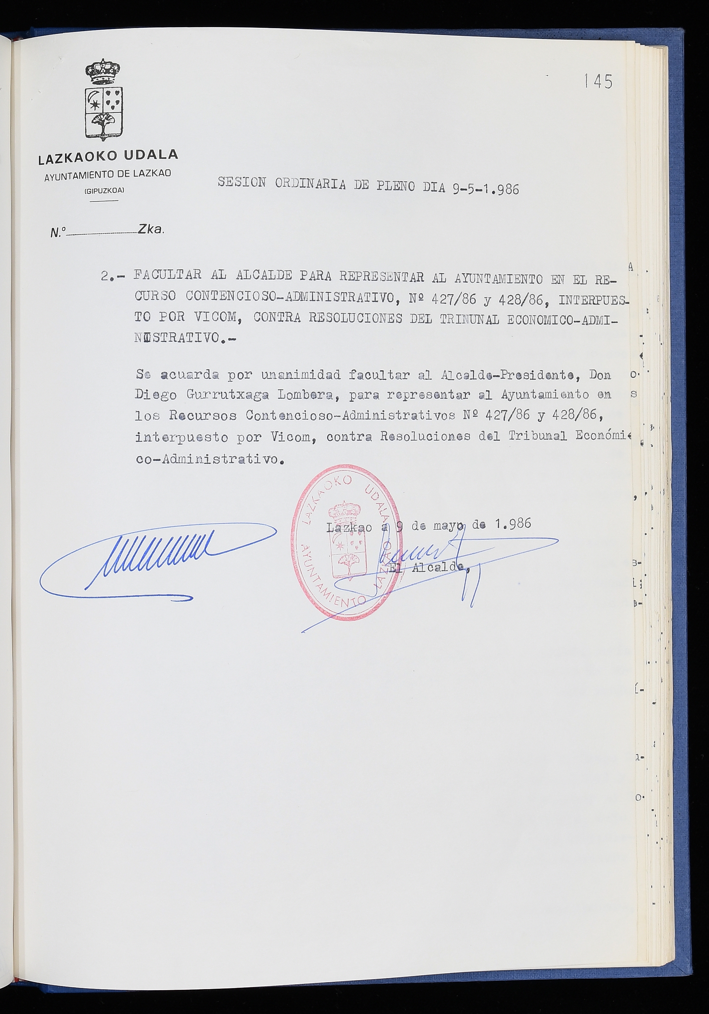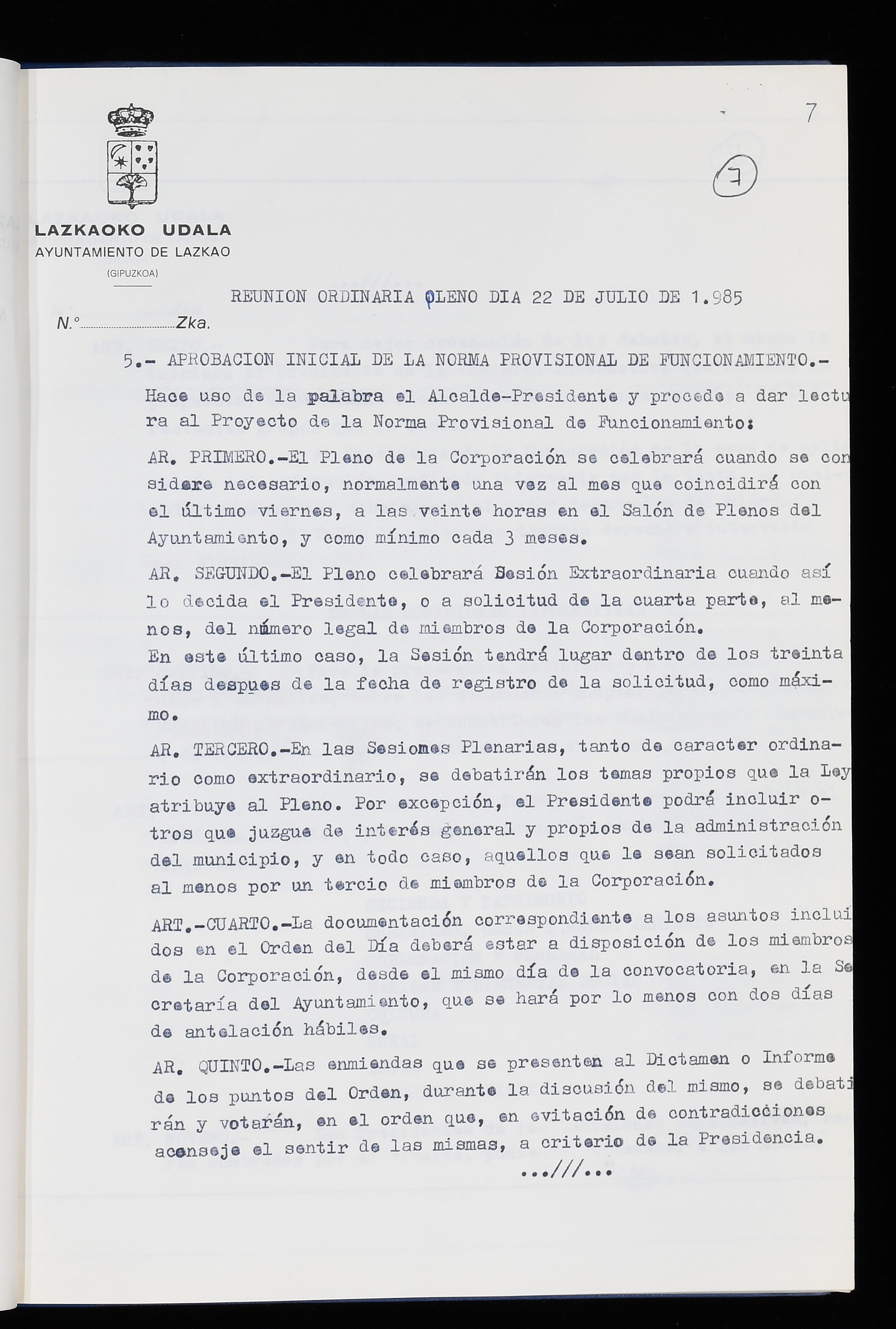 Log in to post commentsEdukiakSailkapenaFuntsaLazkaoko Udal ArtxiboaAtalakUdal AktakSailkapena1.1.4. Osoko Bilkuraren akta liburuakSailkapen berriaOsoko Bilkurako akta liburuakMultimediaIrudiakIdentifikazioaSignaturaakta liburua I-039Hasiera1985-07-22Amaiera1986-06-13AutoritateakTokiaLazkaoLog in to post commentsAkta eratu