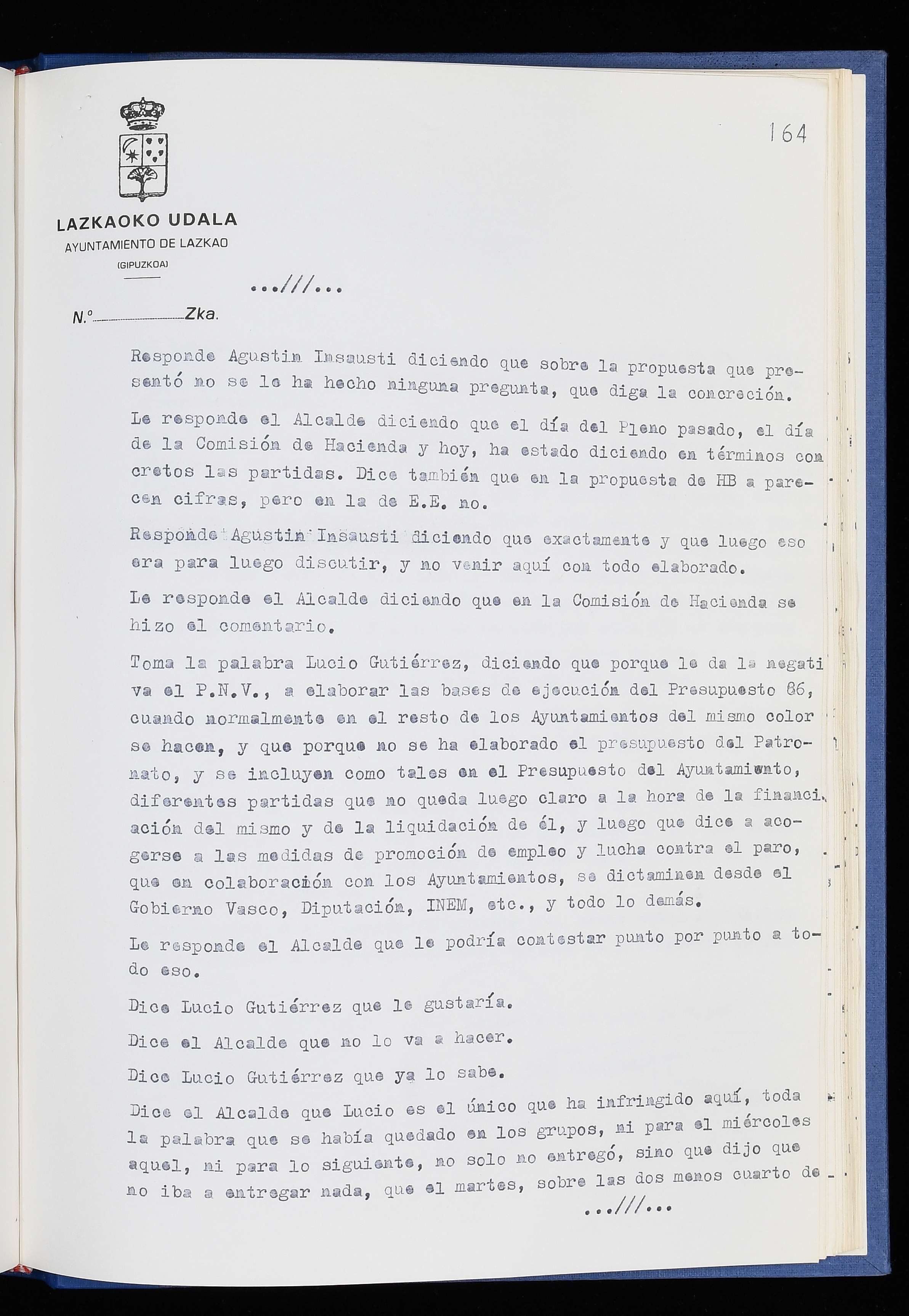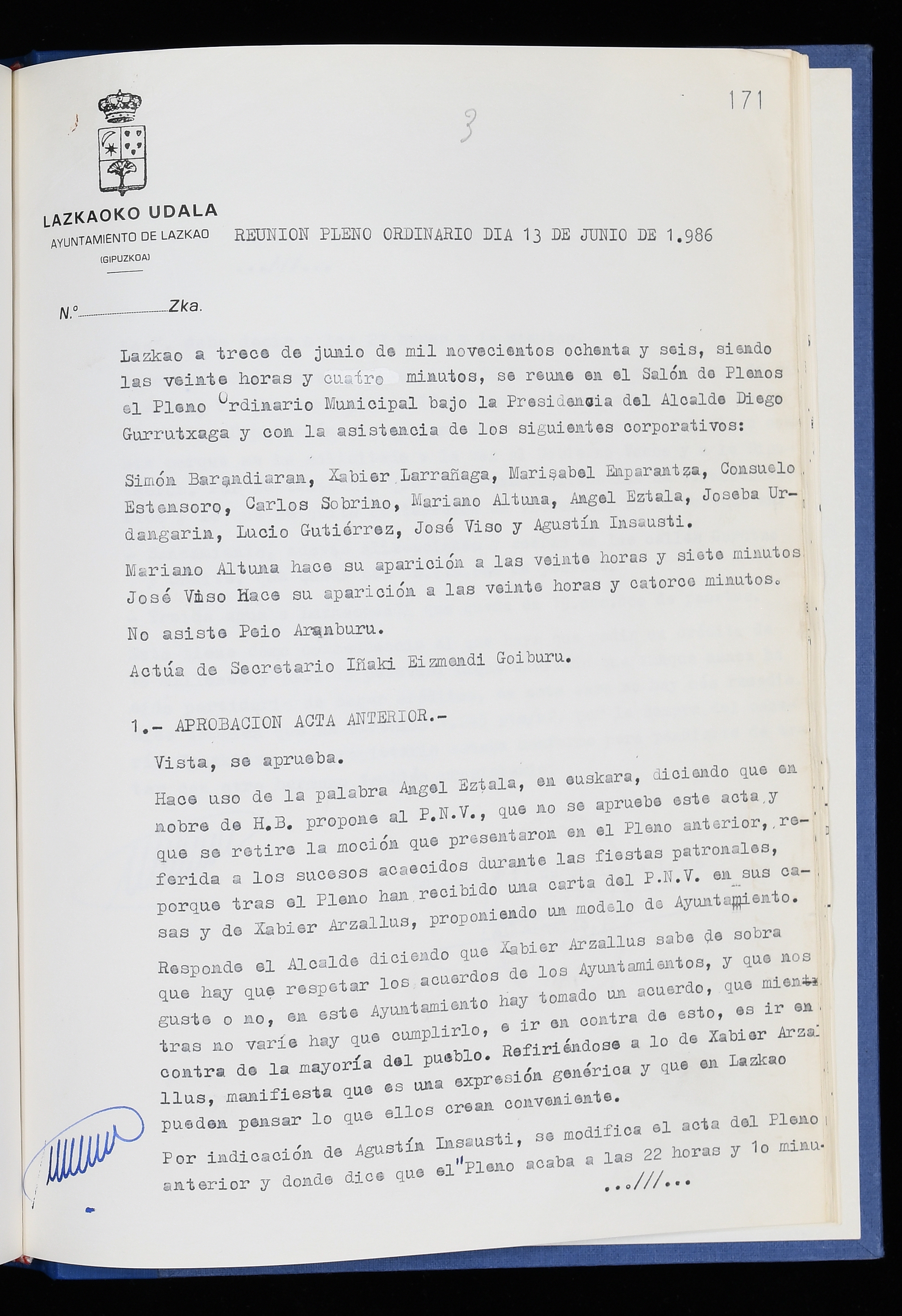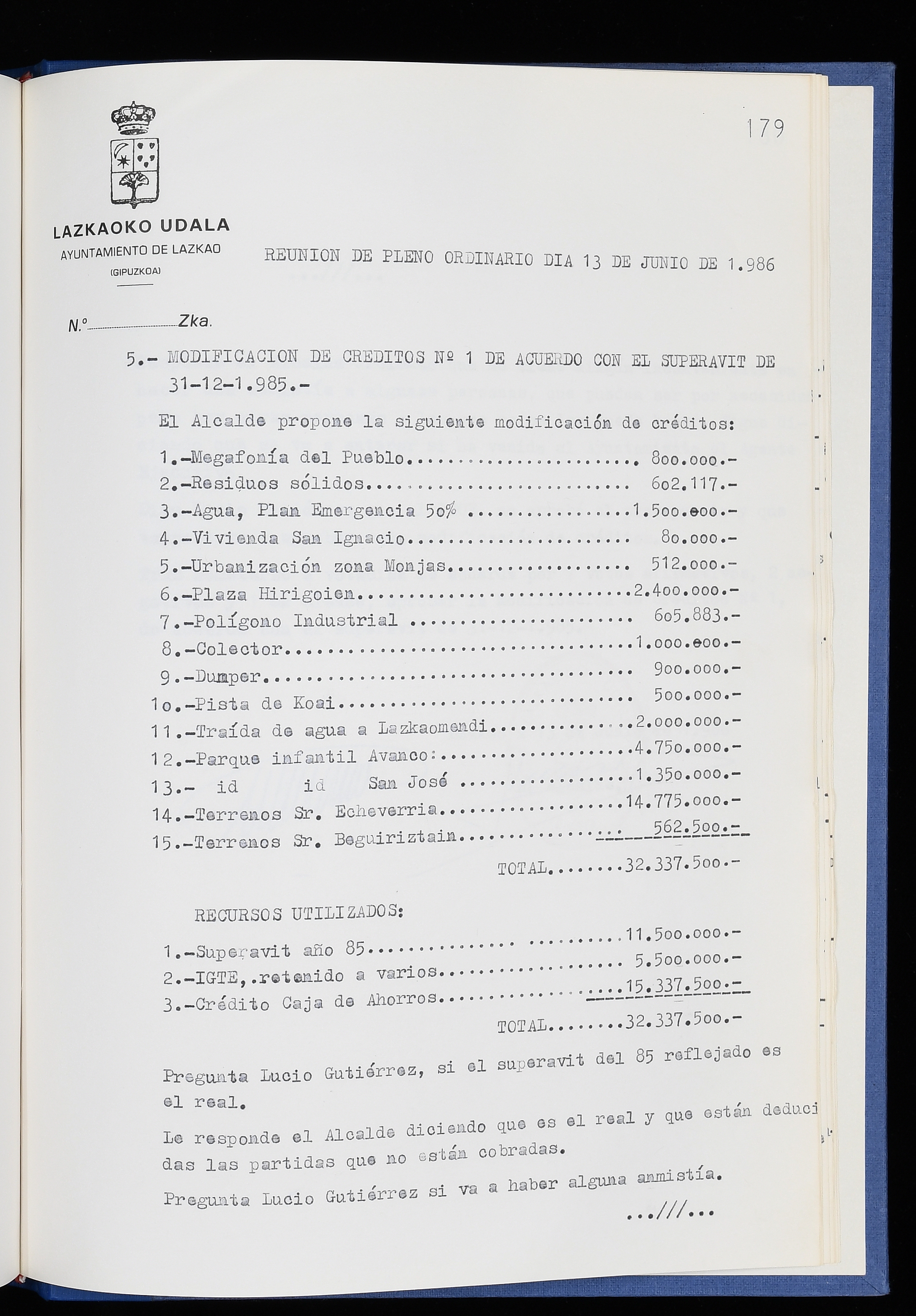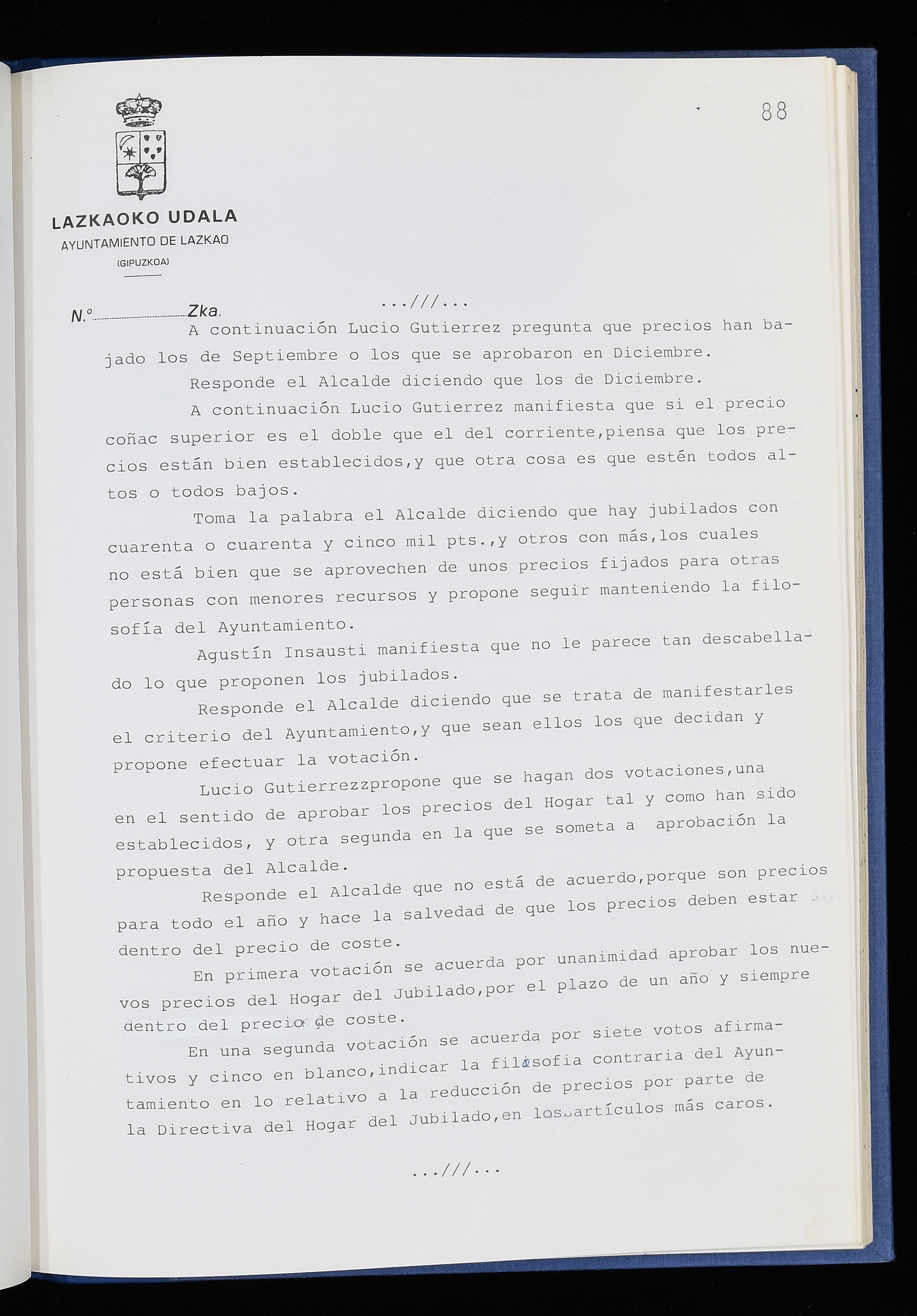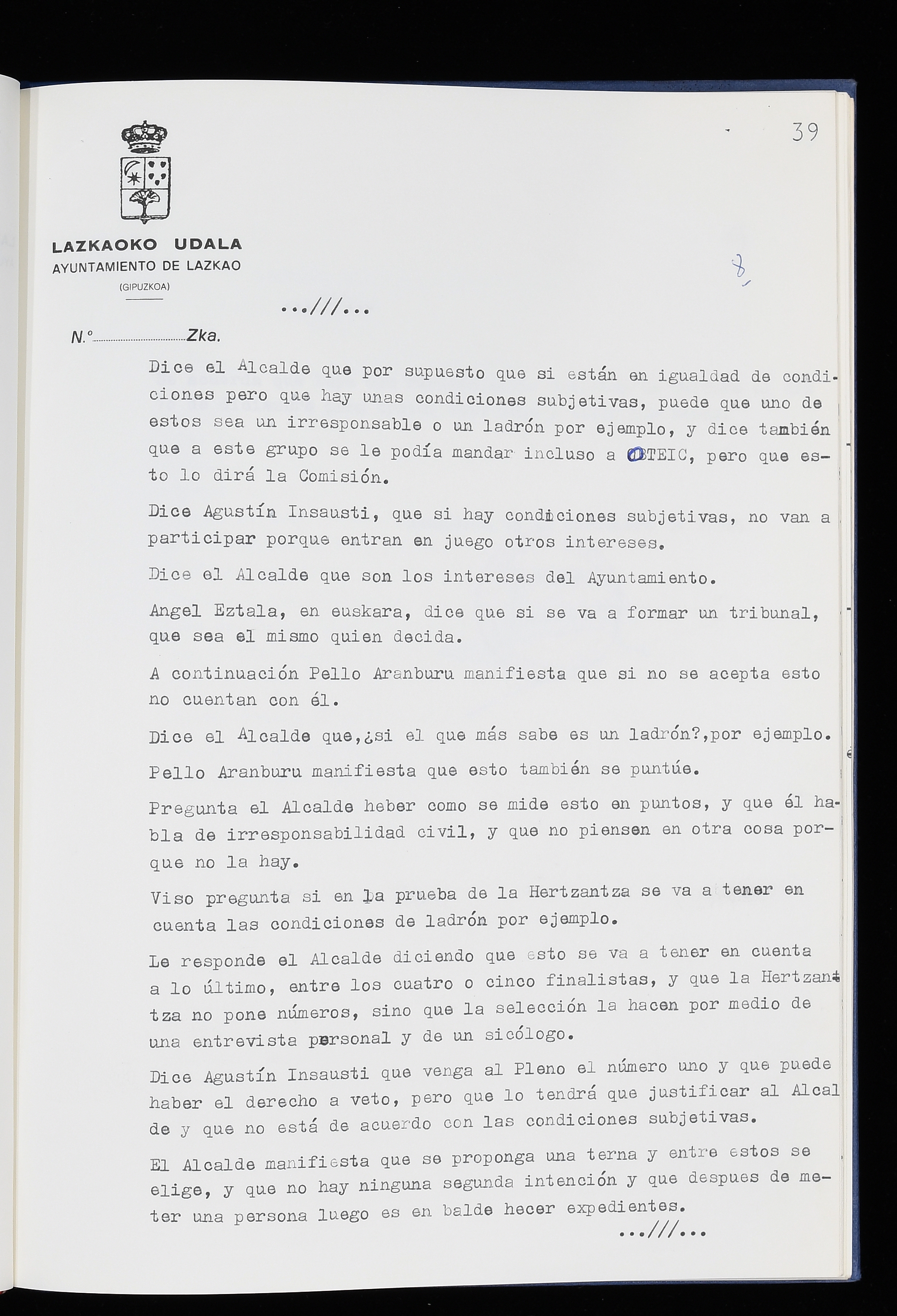 Log in to post commentsEdukiakSailkapenaFuntsaLazkaoko Udal ArtxiboaAtalakUdal AktakSailkapena1.1.4. Osoko Bilkuraren akta liburuakSailkapen berriaOsoko Bilkurako akta liburuakMultimediaIrudiakIdentifikazioaSignaturaakta liburua I-039Hasiera1985-07-22Amaiera1986-06-13AutoritateakTokiaLazkaoLog in to post commentsAkta eratu