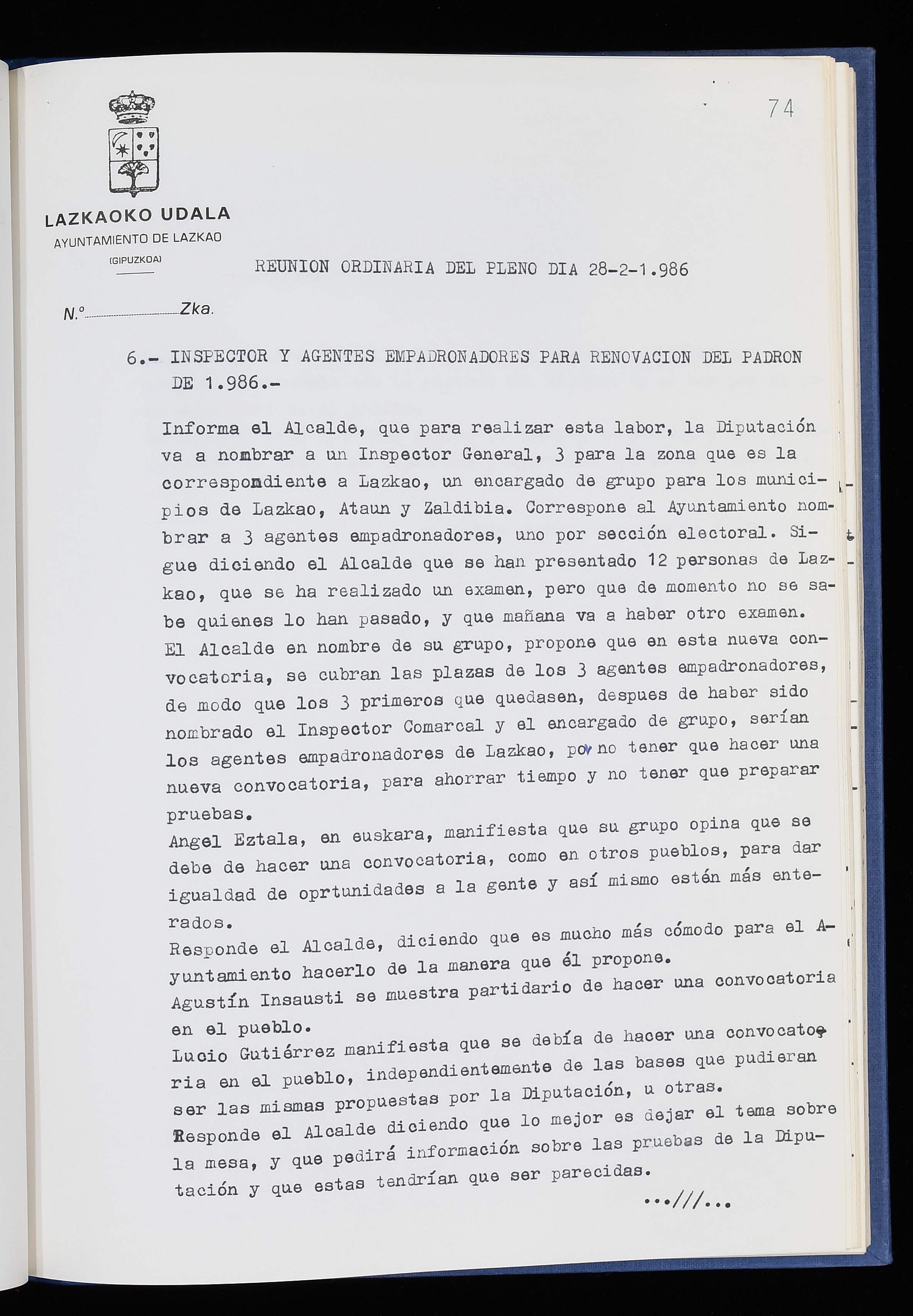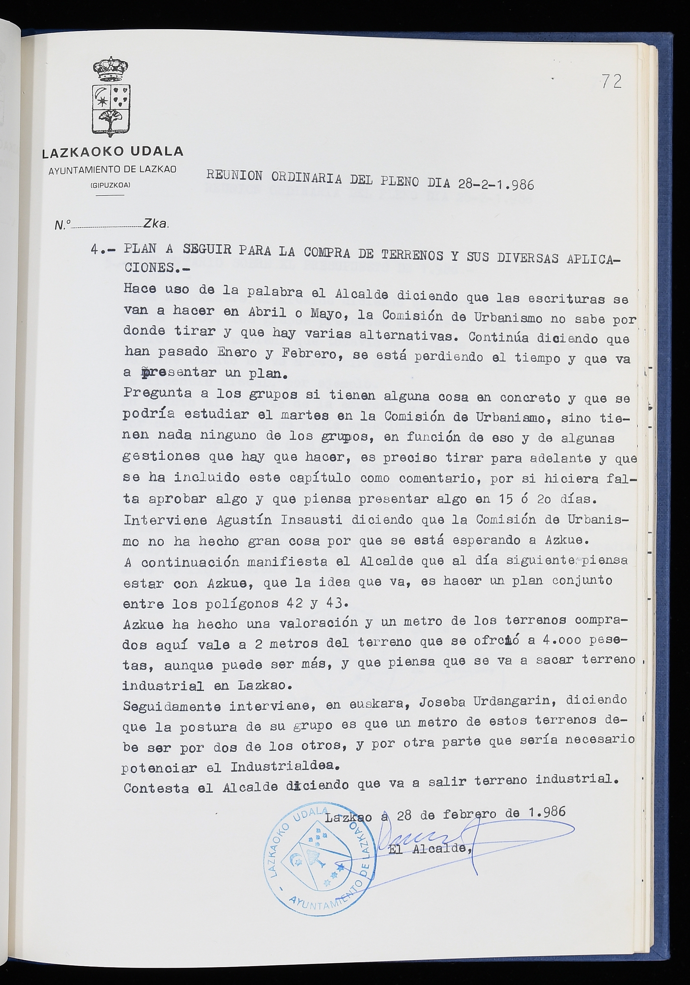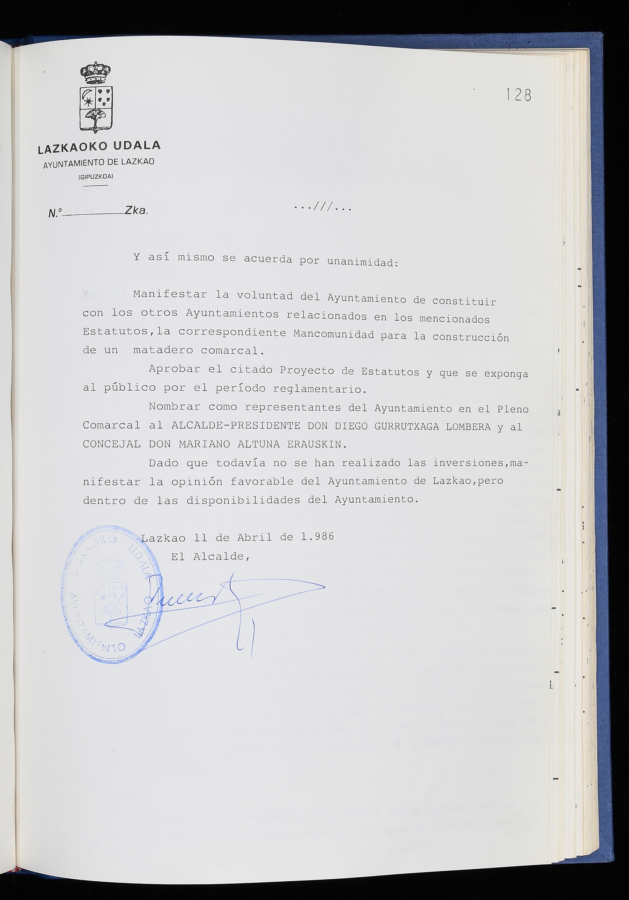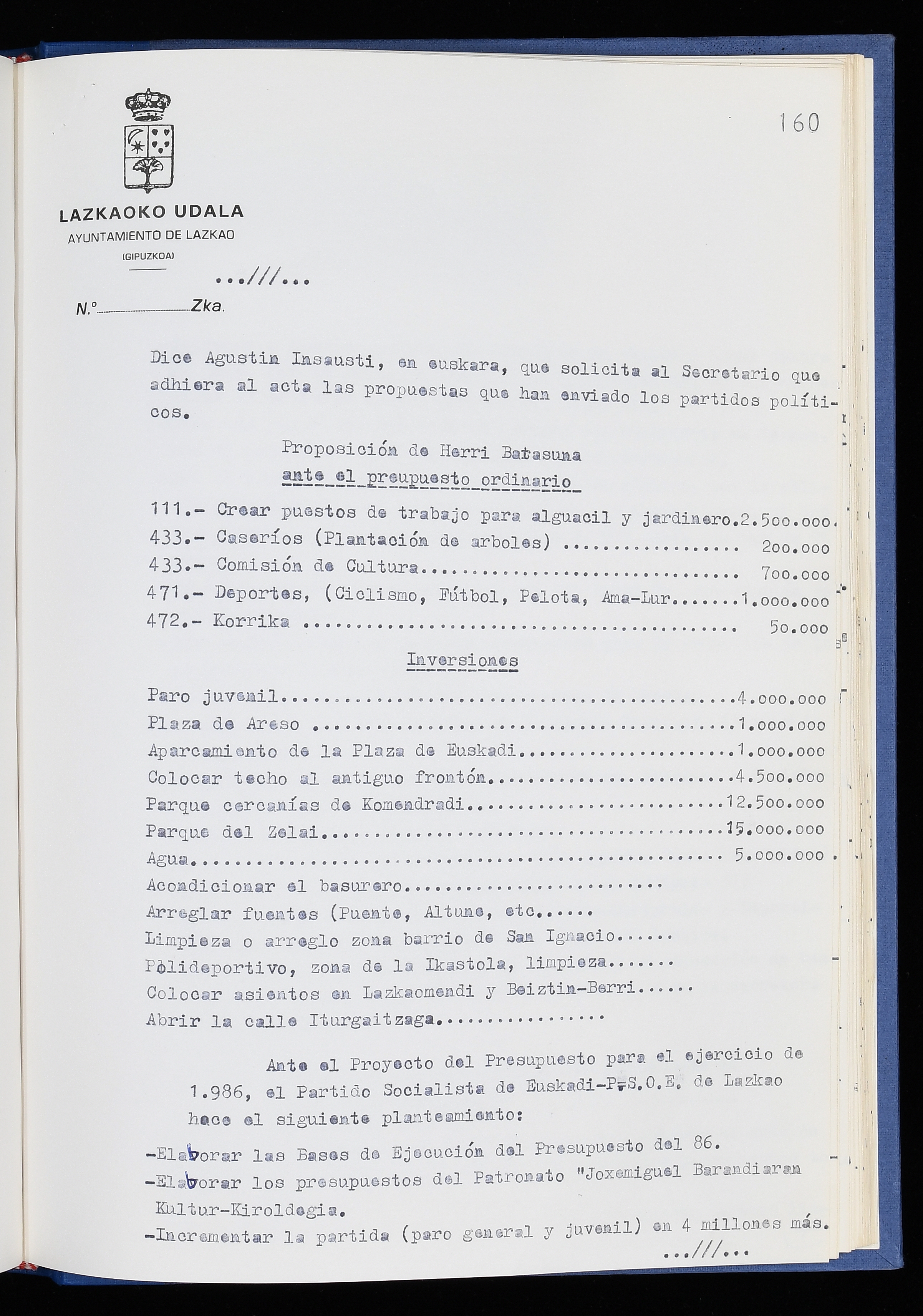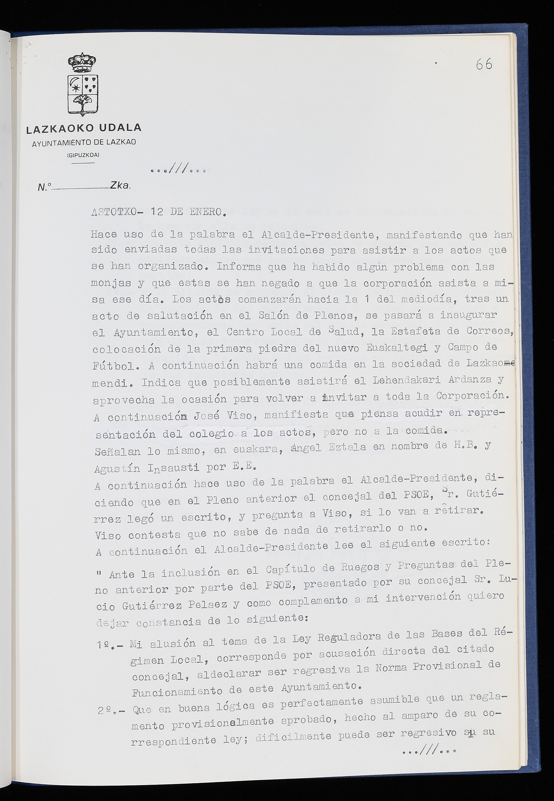 Log in to post commentsEdukiakSailkapenaFuntsaLazkaoko Udal ArtxiboaAtalakUdal AktakSailkapena1.1.4. Osoko Bilkuraren akta liburuakSailkapen berriaOsoko Bilkurako akta liburuakMultimediaIrudiakIdentifikazioaSignaturaakta liburua I-039Hasiera1985-07-22Amaiera1986-06-13AutoritateakTokiaLazkaoLog in to post commentsAkta eratu