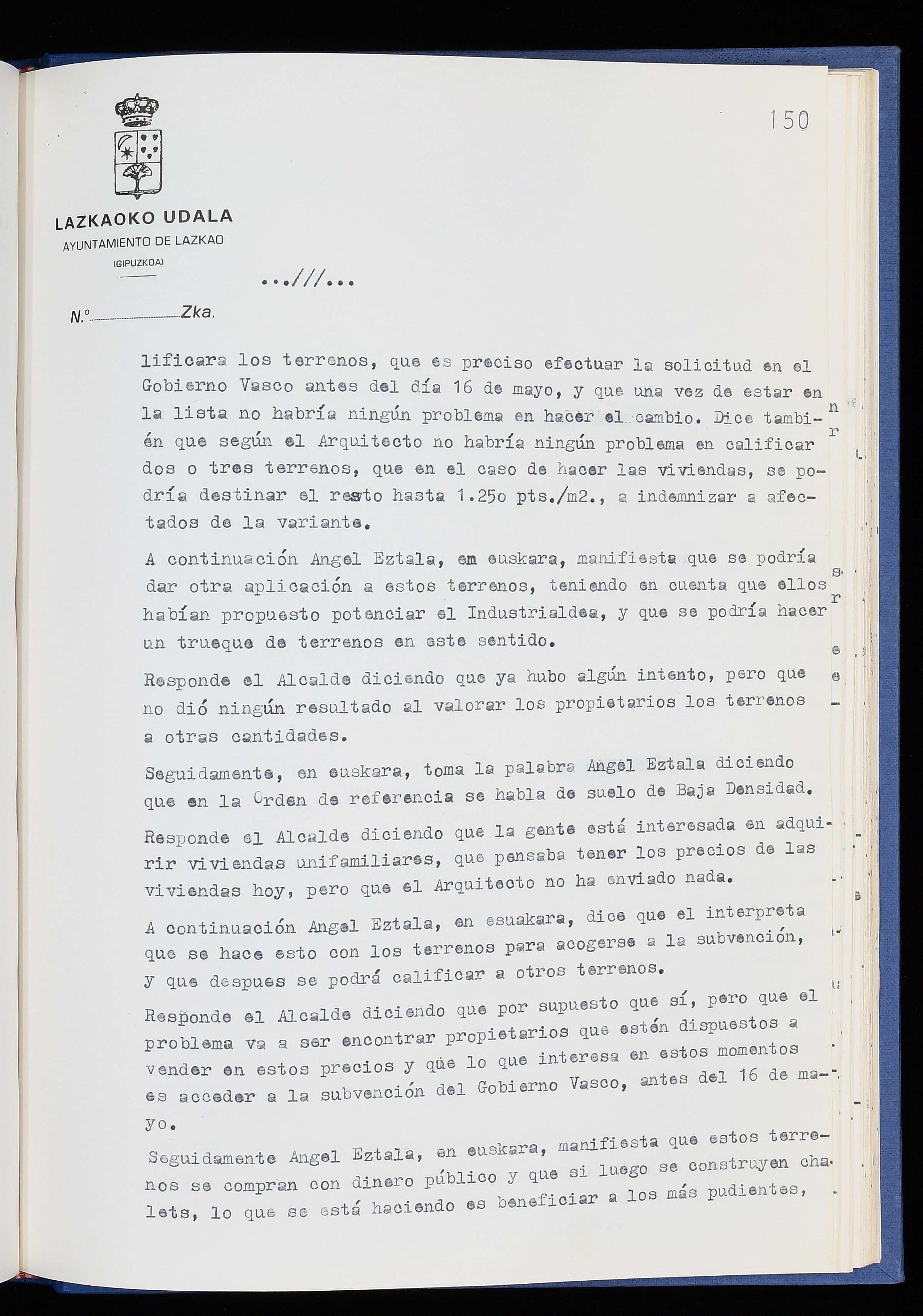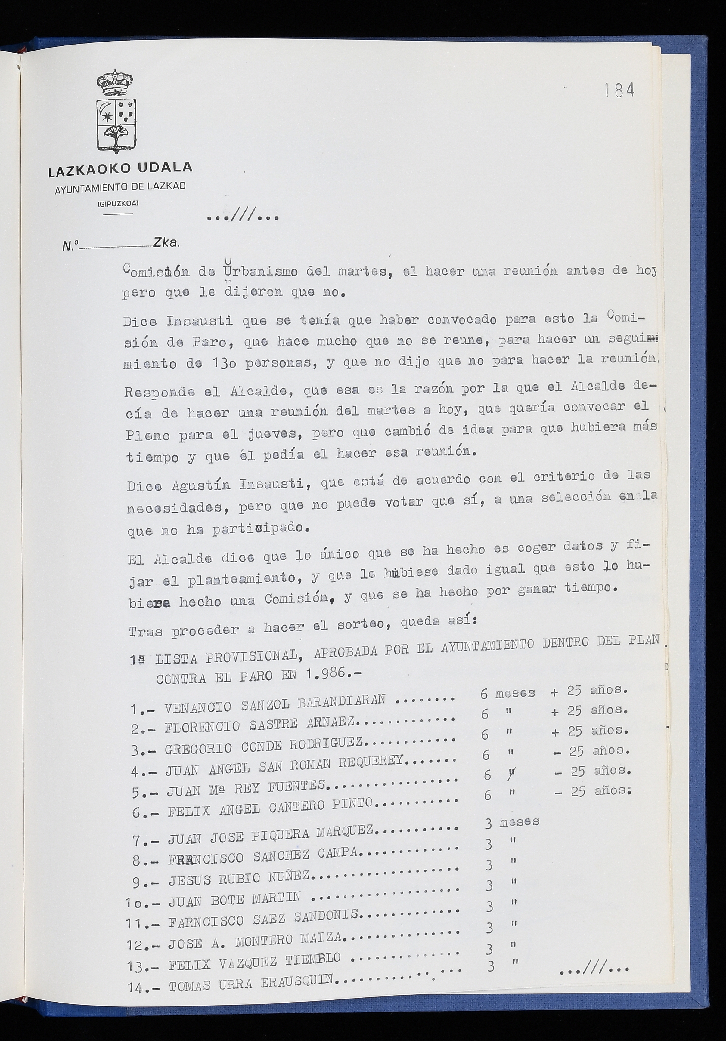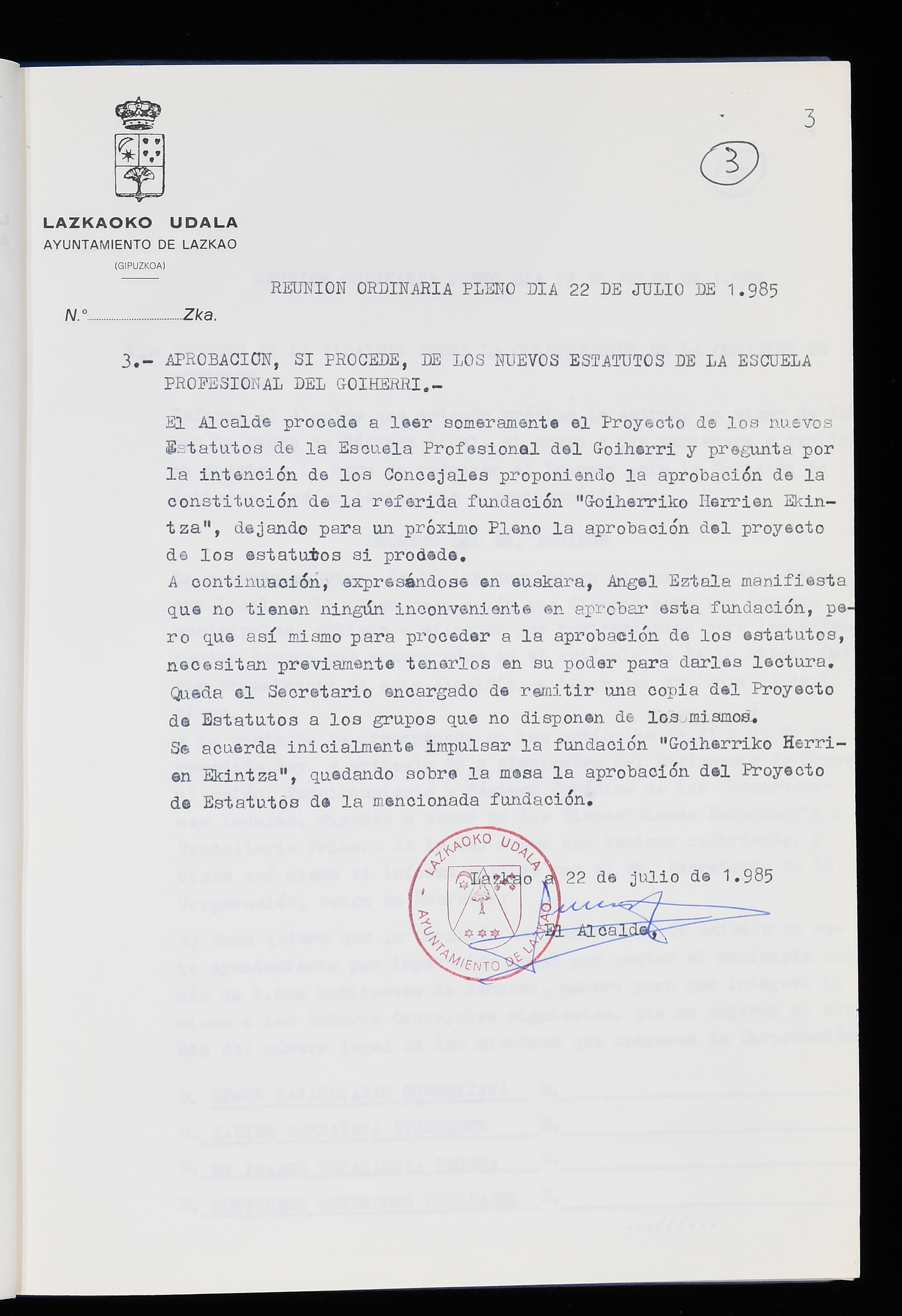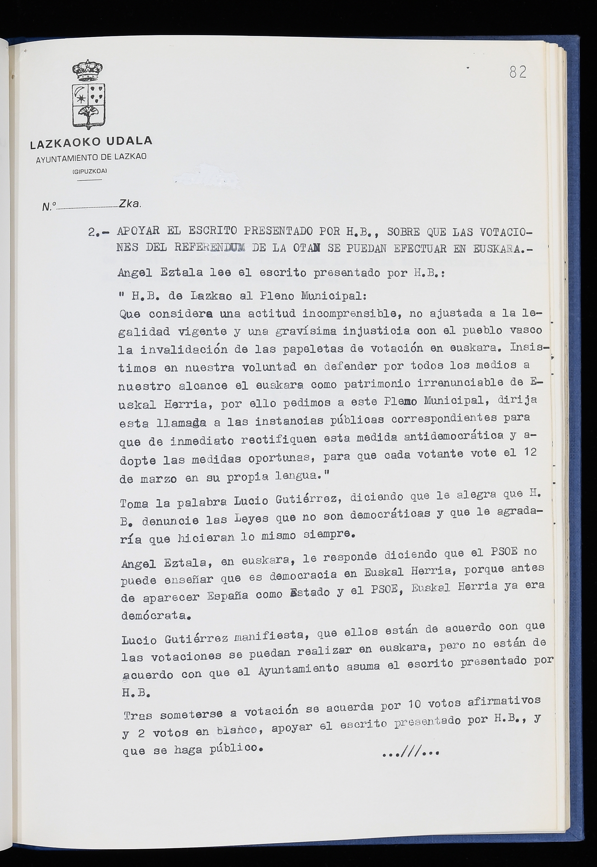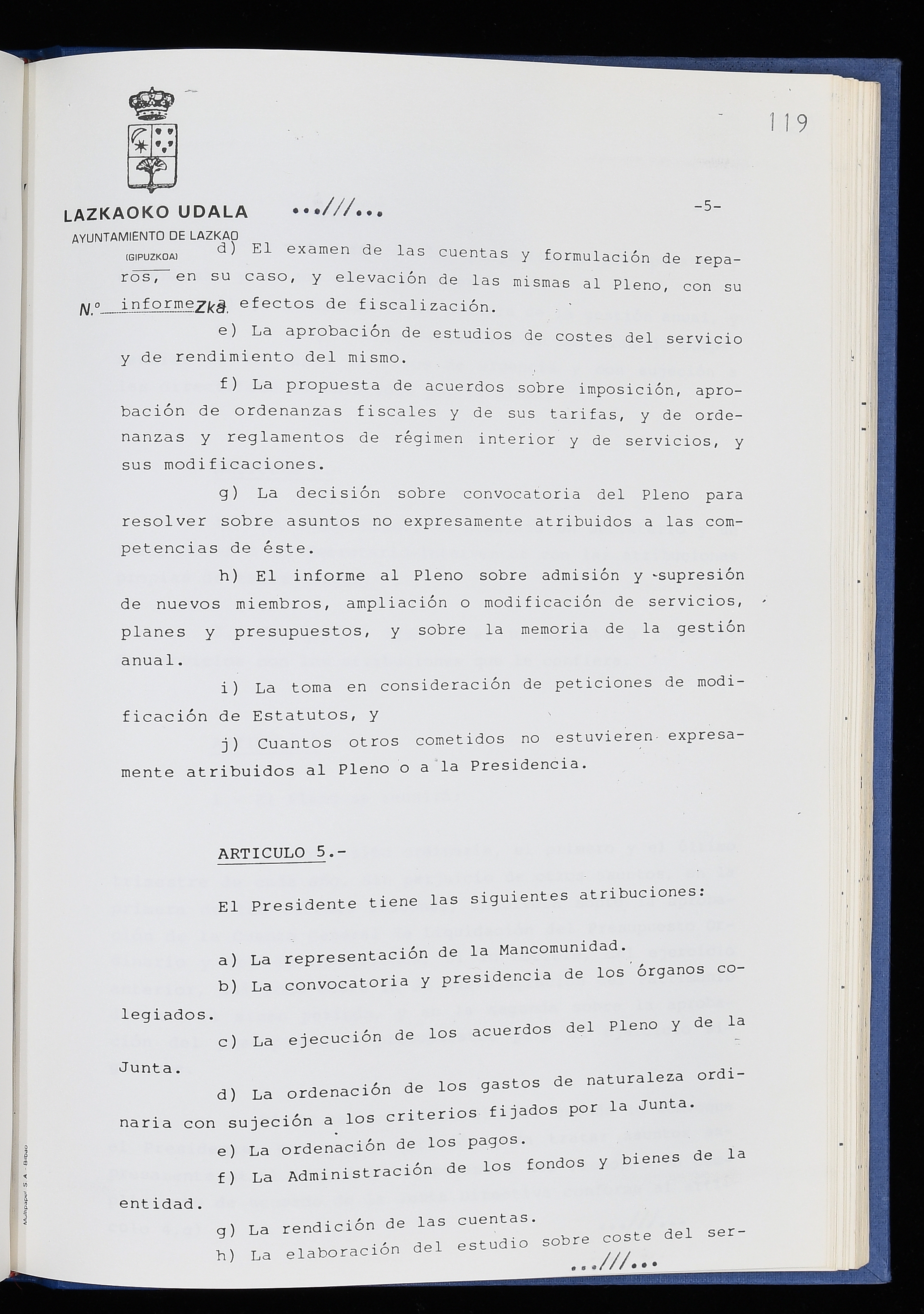 Log in to post commentsEdukiakSailkapenaFuntsaLazkaoko Udal ArtxiboaAtalakUdal AktakSailkapena1.1.4. Osoko Bilkuraren akta liburuakSailkapen berriaOsoko Bilkurako akta liburuakMultimediaIrudiakIdentifikazioaSignaturaakta liburua I-039Hasiera1985-07-22Amaiera1986-06-13AutoritateakTokiaLazkaoLog in to post commentsAkta eratu