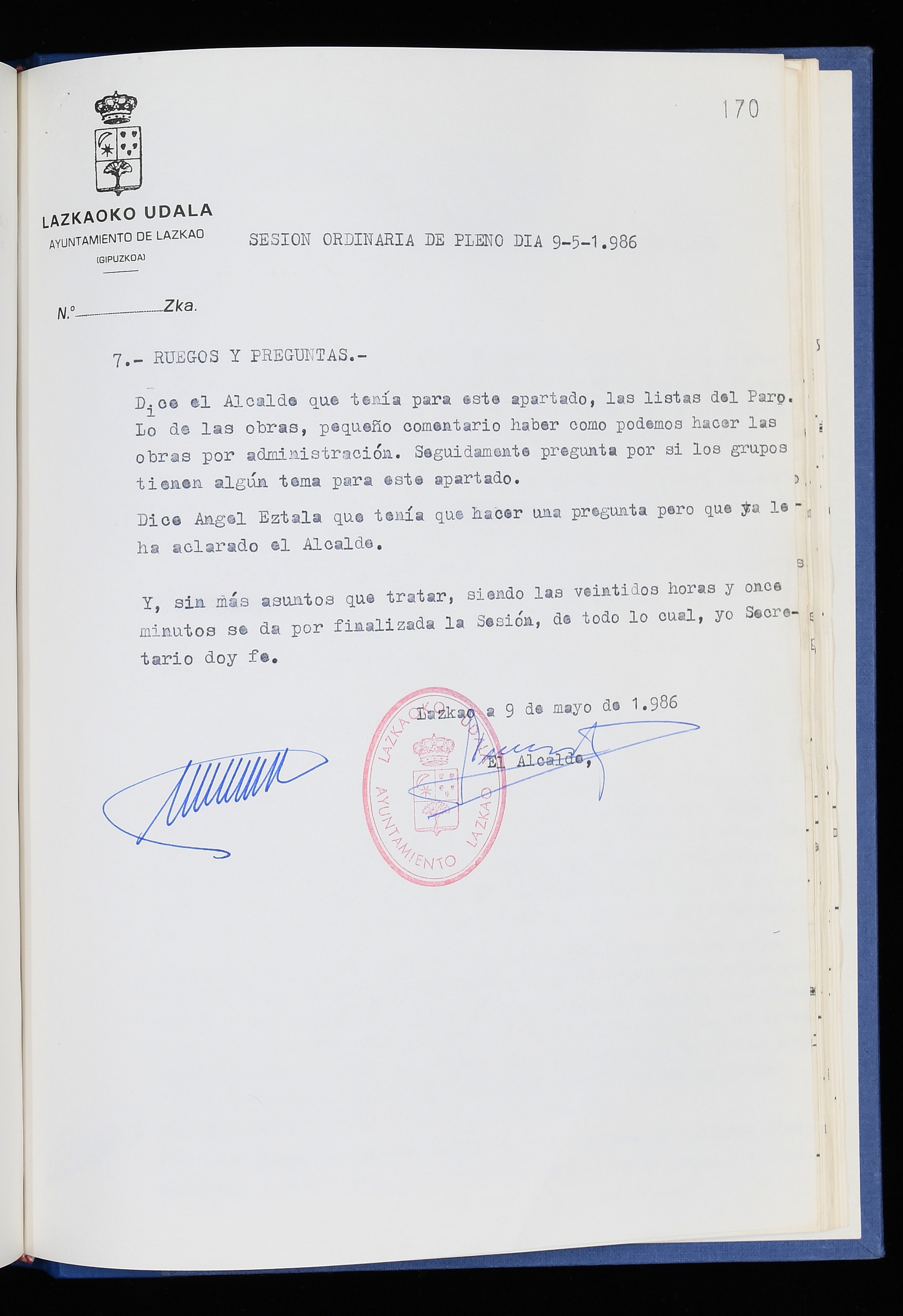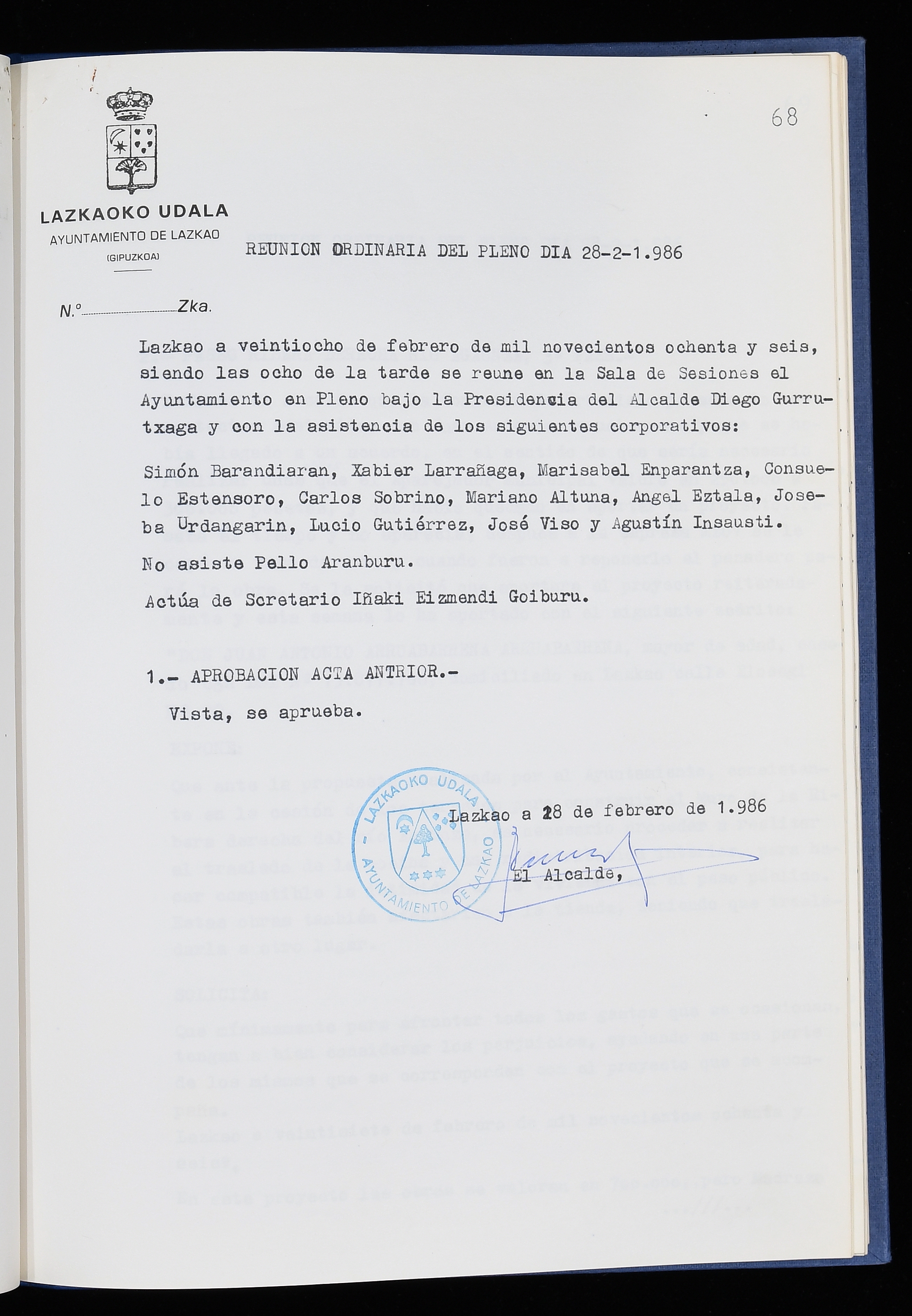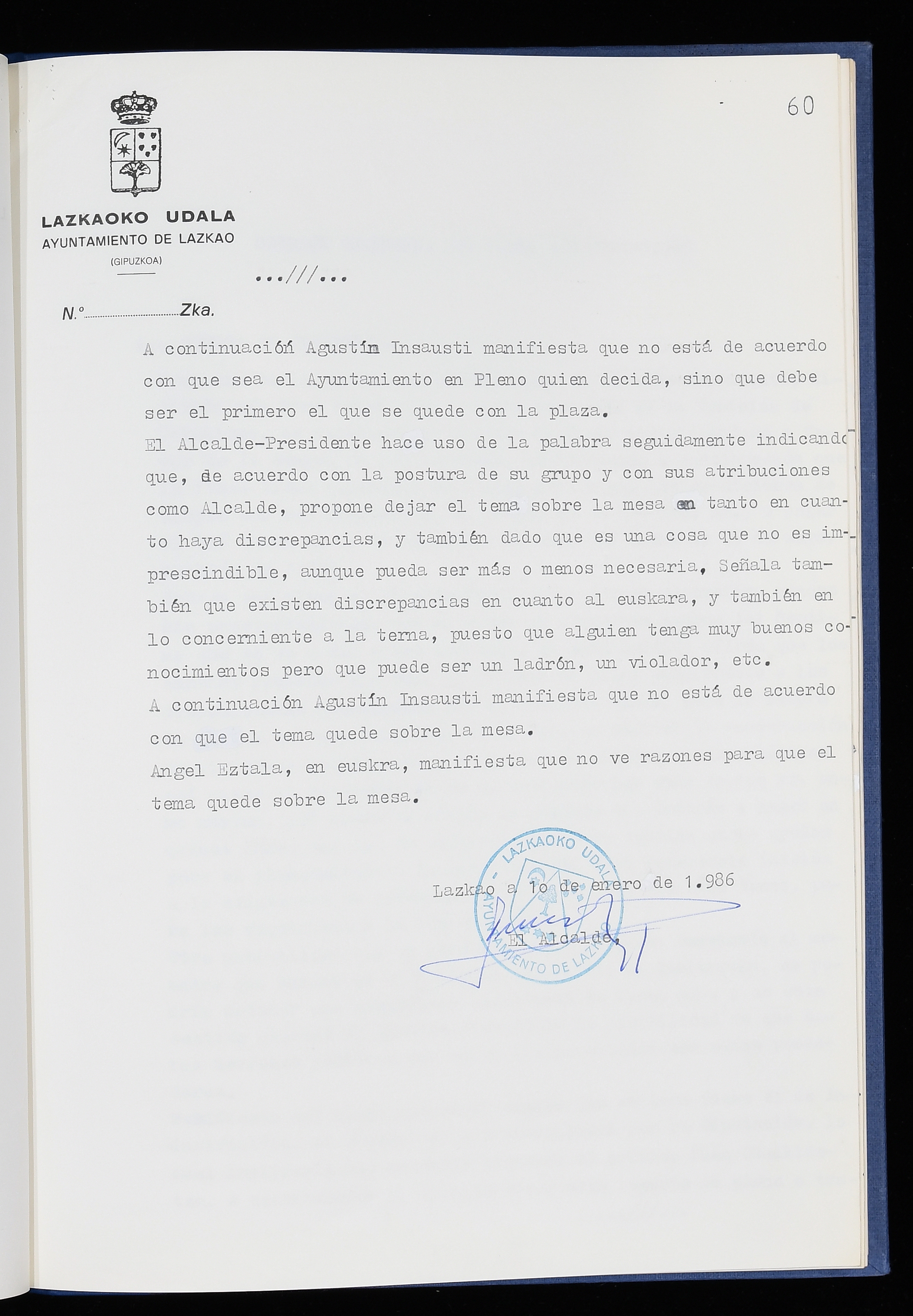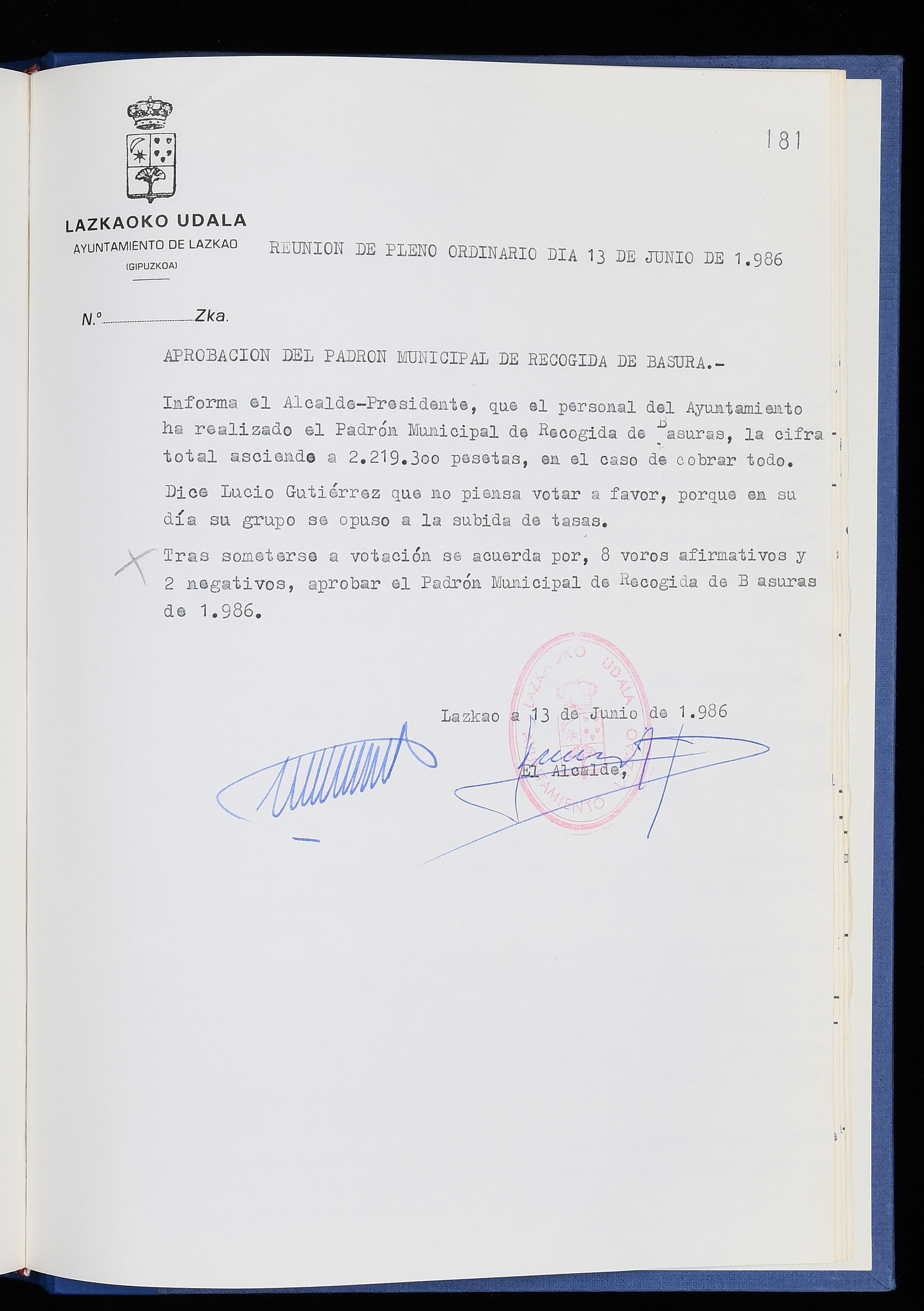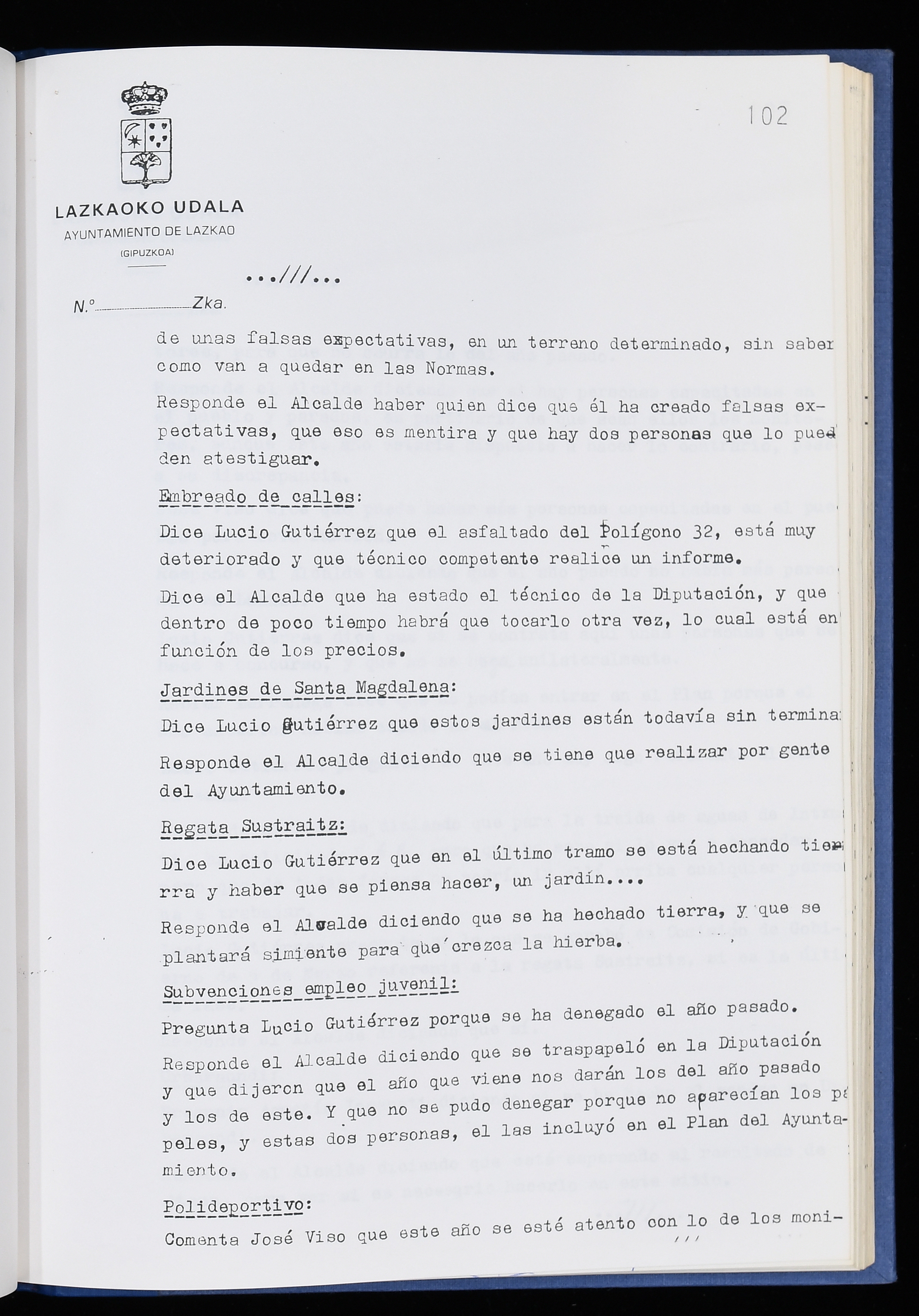Log in to post commentsEdukiakSailkapenaFuntsaLazkaoko Udal ArtxiboaAtalakUdal AktakSailkapena1.1.4. Osoko Bilkuraren akta liburuakSailkapen berriaOsoko Bilkurako akta liburuakMultimediaIrudiakIdentifikazioaSignaturaakta liburua I-039Hasiera1985-07-22Amaiera1986-06-13AutoritateakTokiaLazkaoLog in to post commentsAkta eratu