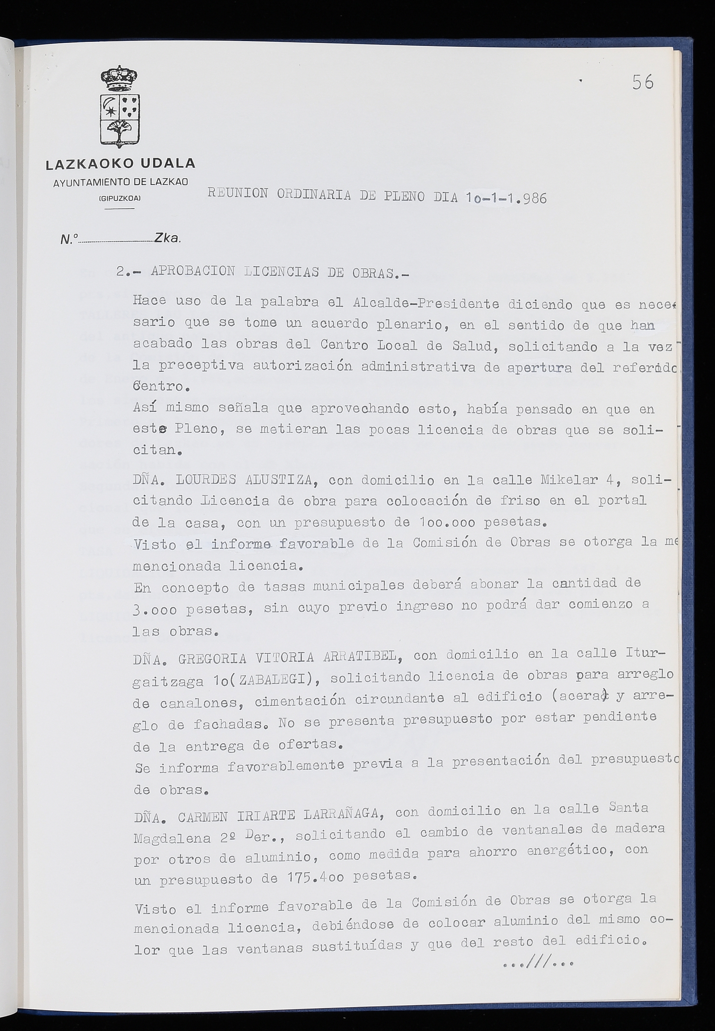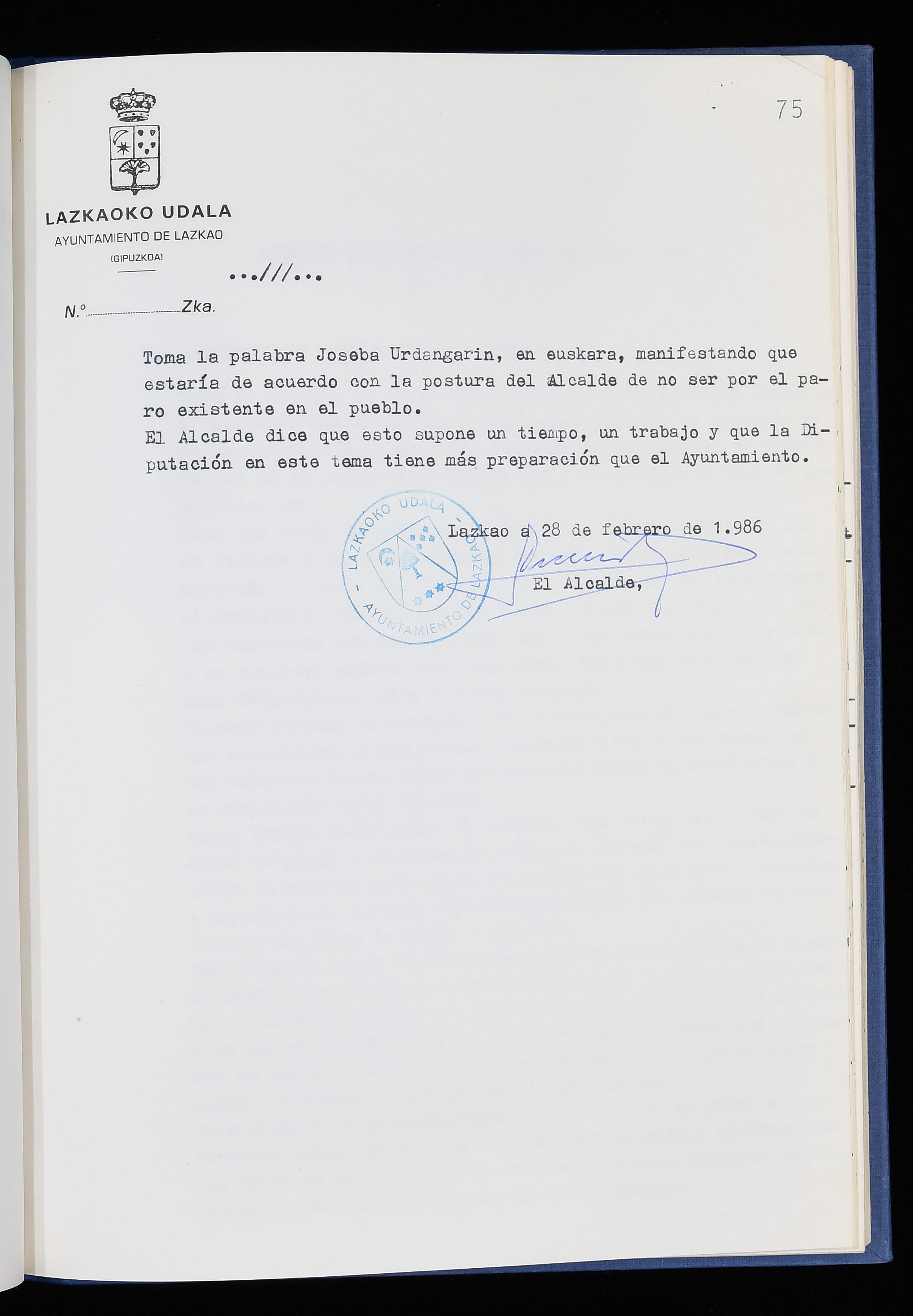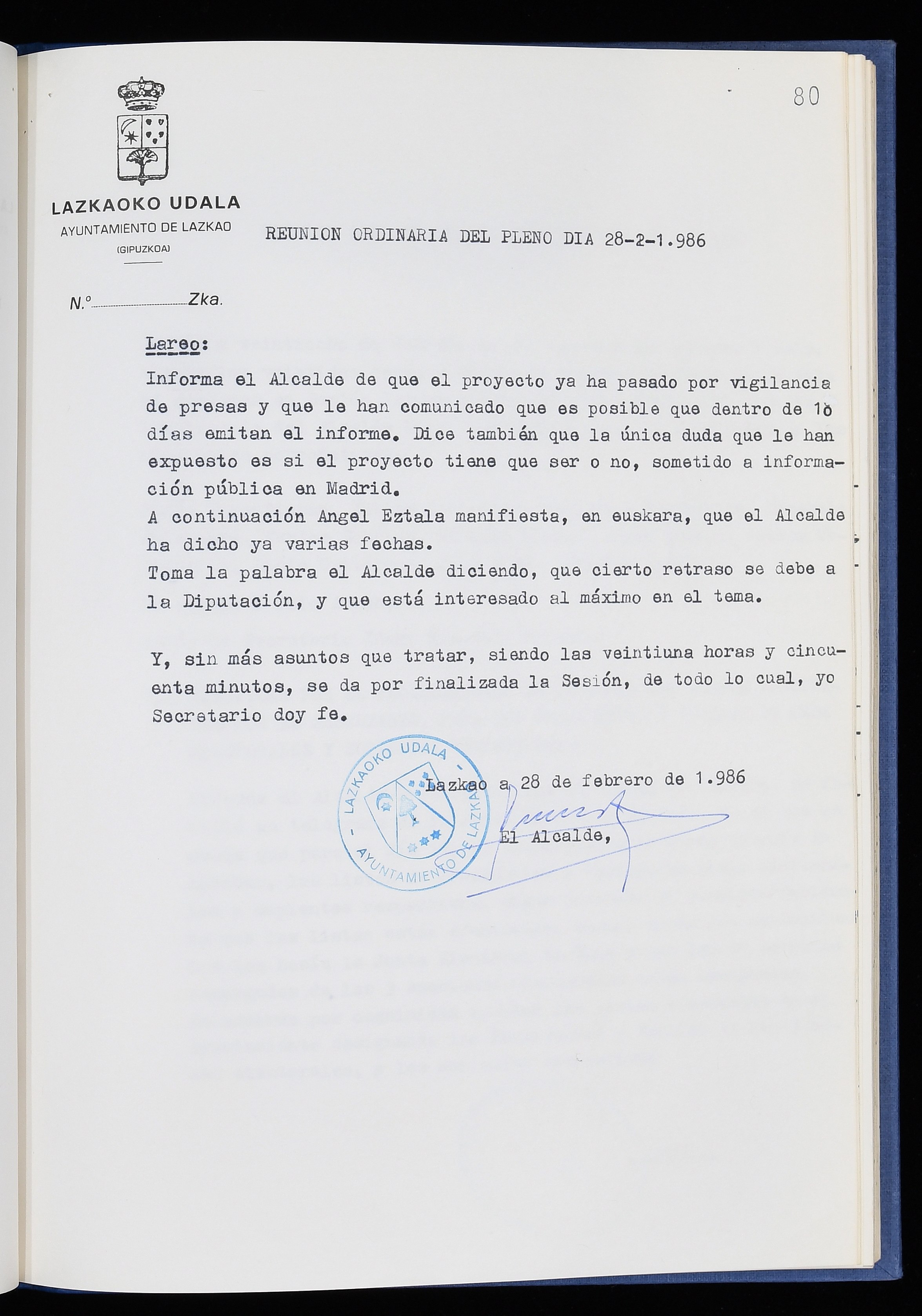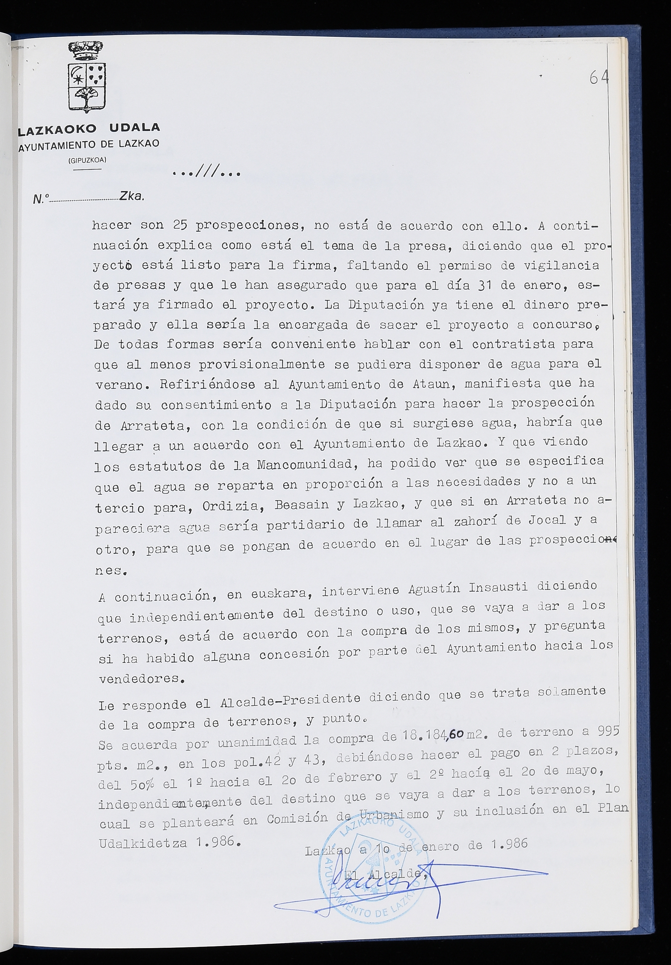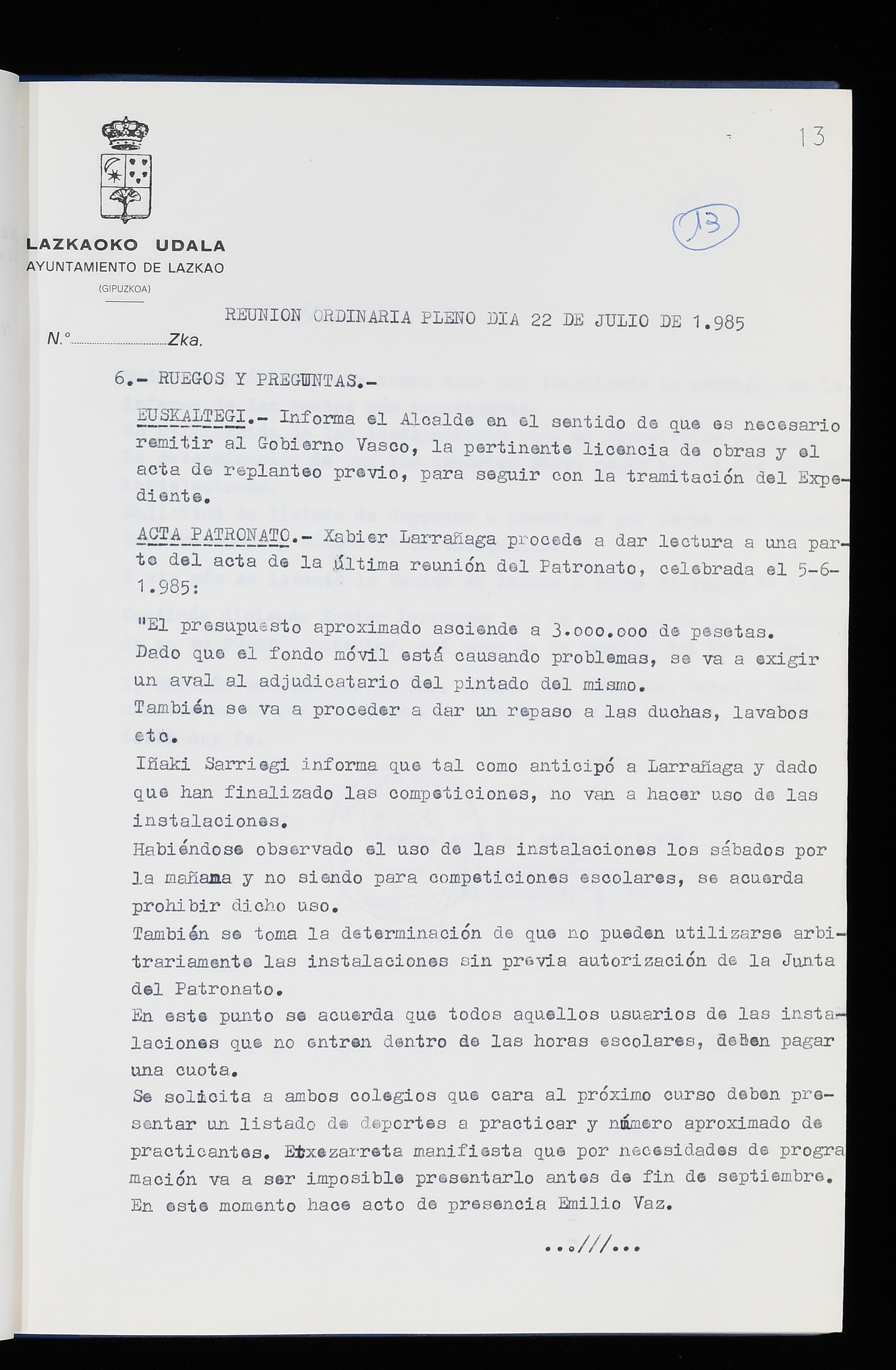 Log in to post commentsEdukiakSailkapenaFuntsaLazkaoko Udal ArtxiboaAtalakUdal AktakSailkapena1.1.4. Osoko Bilkuraren akta liburuakSailkapen berriaOsoko Bilkurako akta liburuakMultimediaIrudiakIdentifikazioaSignaturaakta liburua I-039Hasiera1985-07-22Amaiera1986-06-13AutoritateakTokiaLazkaoLog in to post commentsAkta eratu
