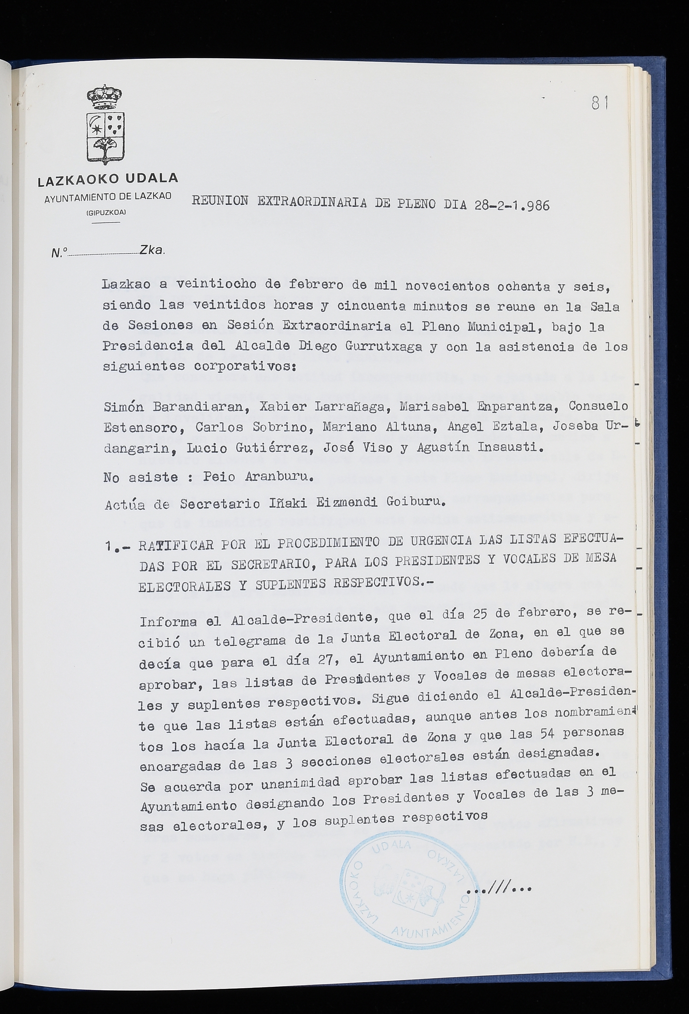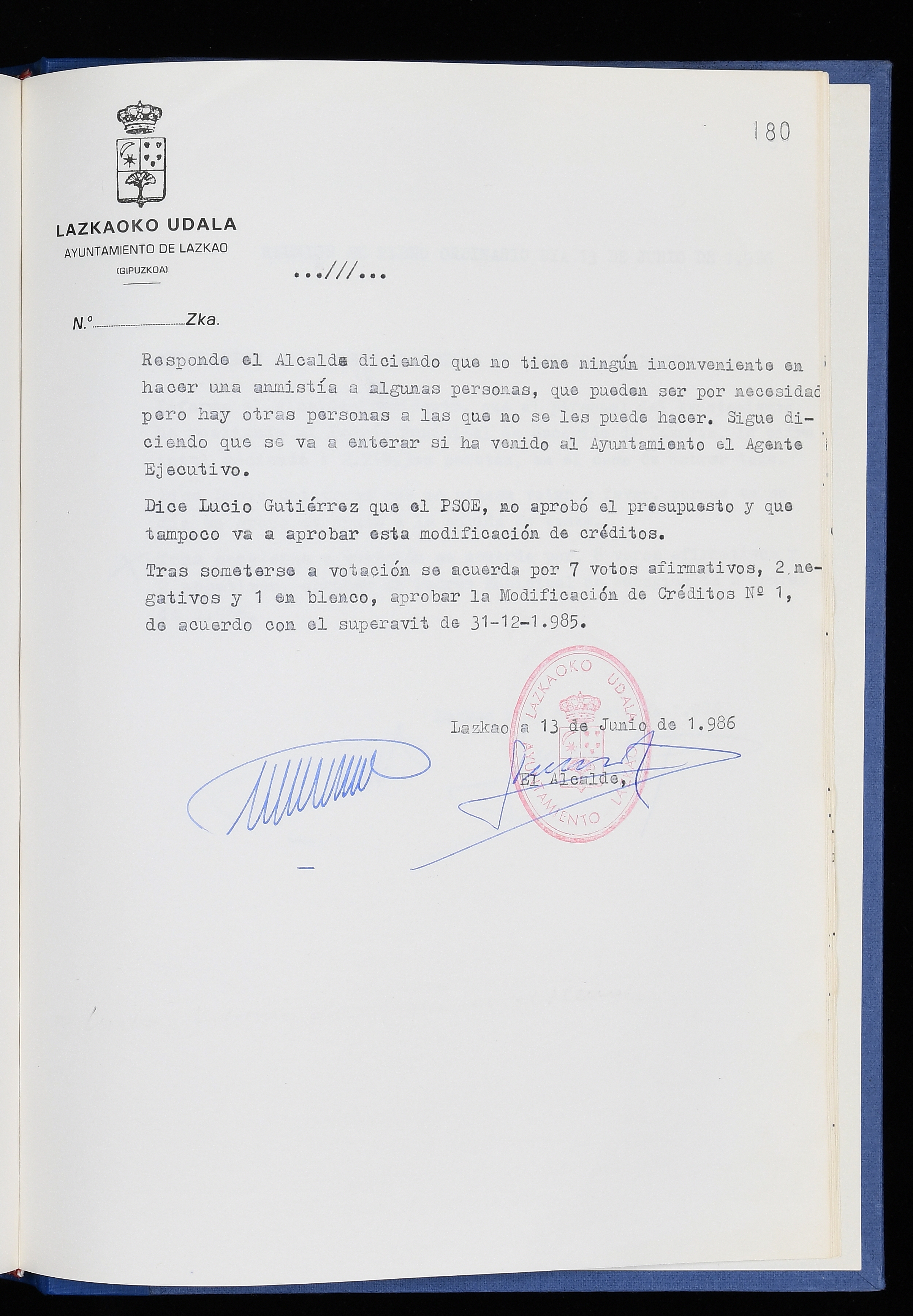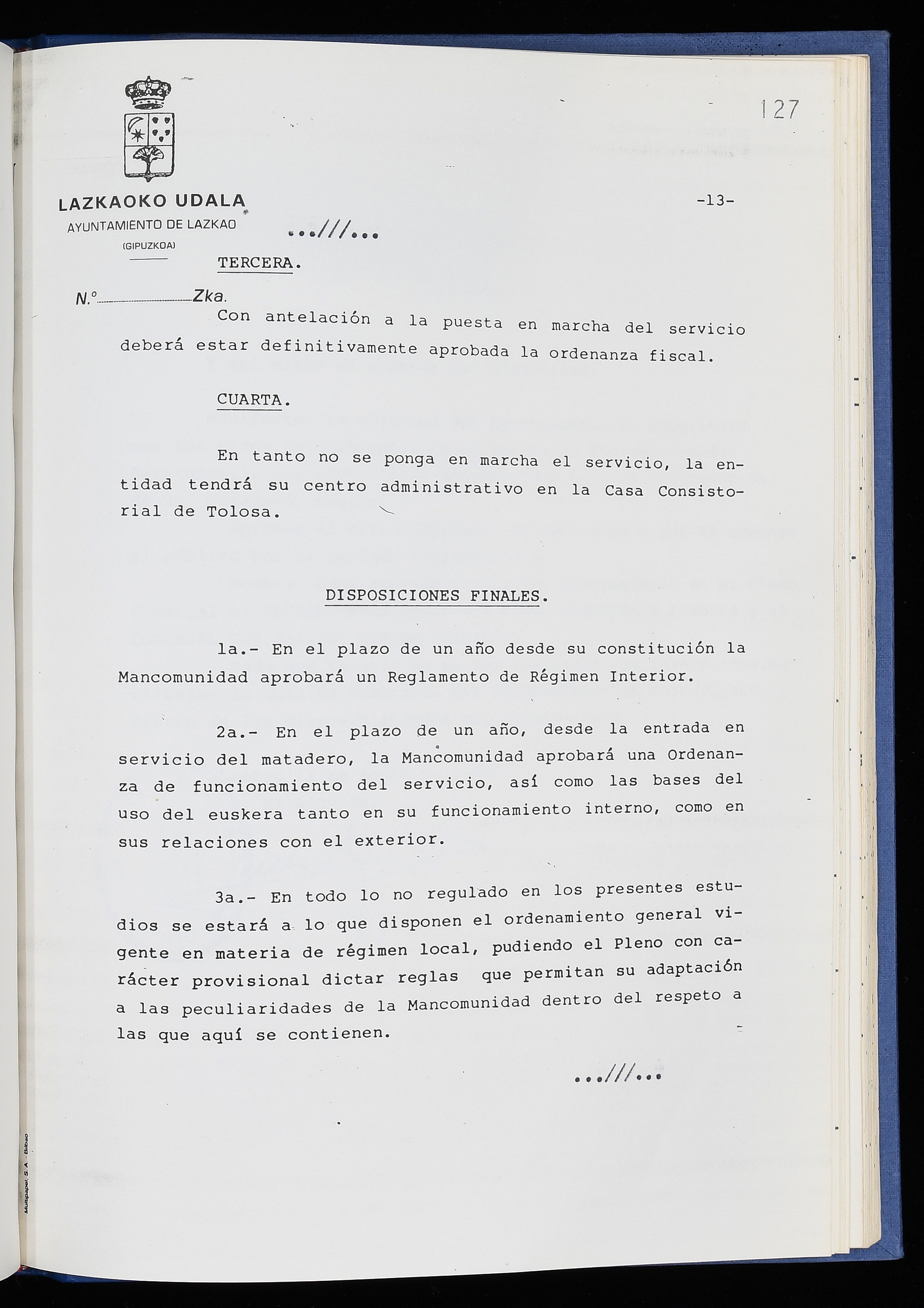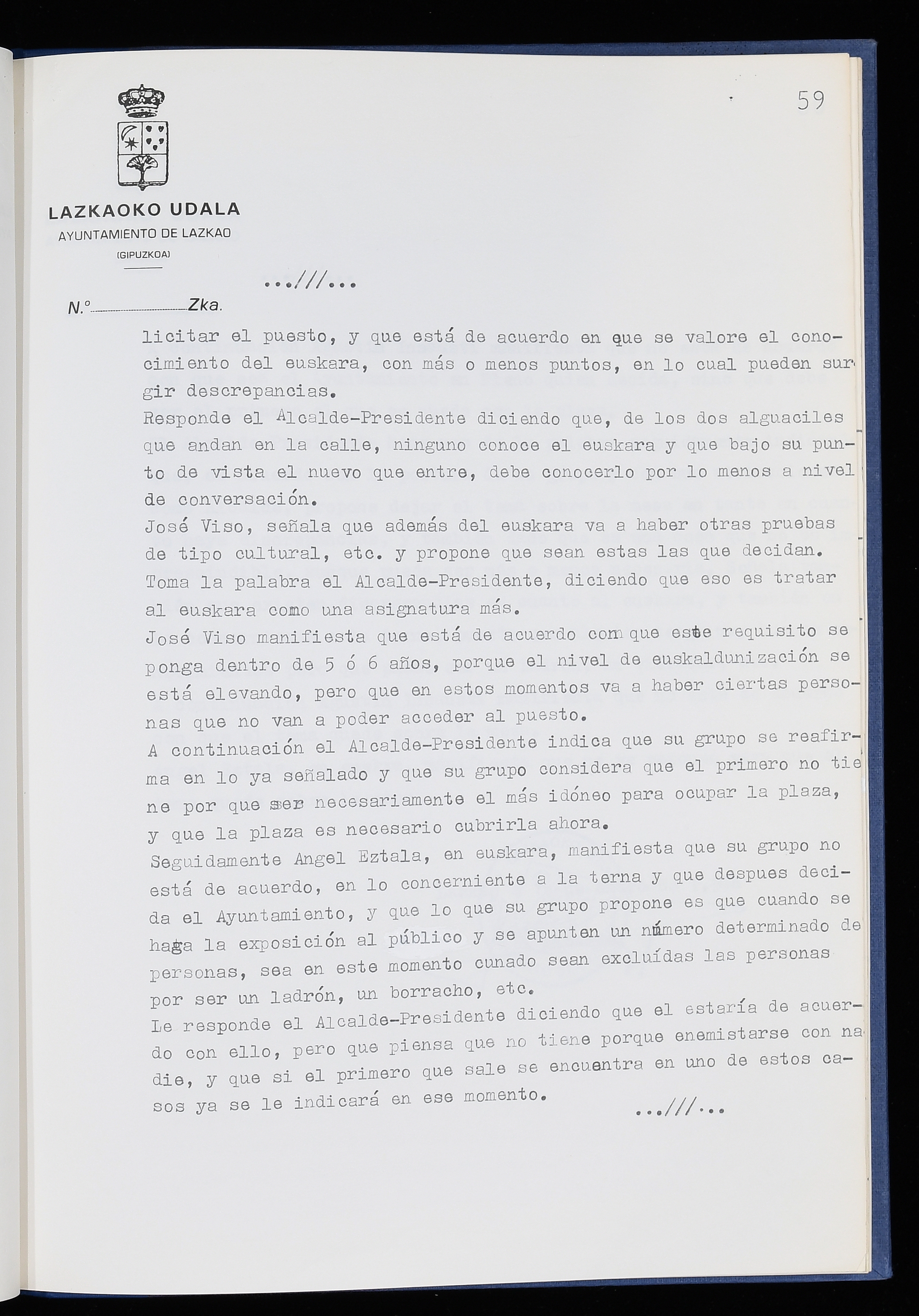 Log in to post commentsEdukiakSailkapenaFuntsaLazkaoko Udal ArtxiboaAtalakUdal AktakSailkapena1.1.4. Osoko Bilkuraren akta liburuakSailkapen berriaOsoko Bilkurako akta liburuakMultimediaIrudiakIdentifikazioaSignaturaakta liburua I-039Hasiera1985-07-22Amaiera1986-06-13AutoritateakTokiaLazkaoLog in to post commentsAkta eratu