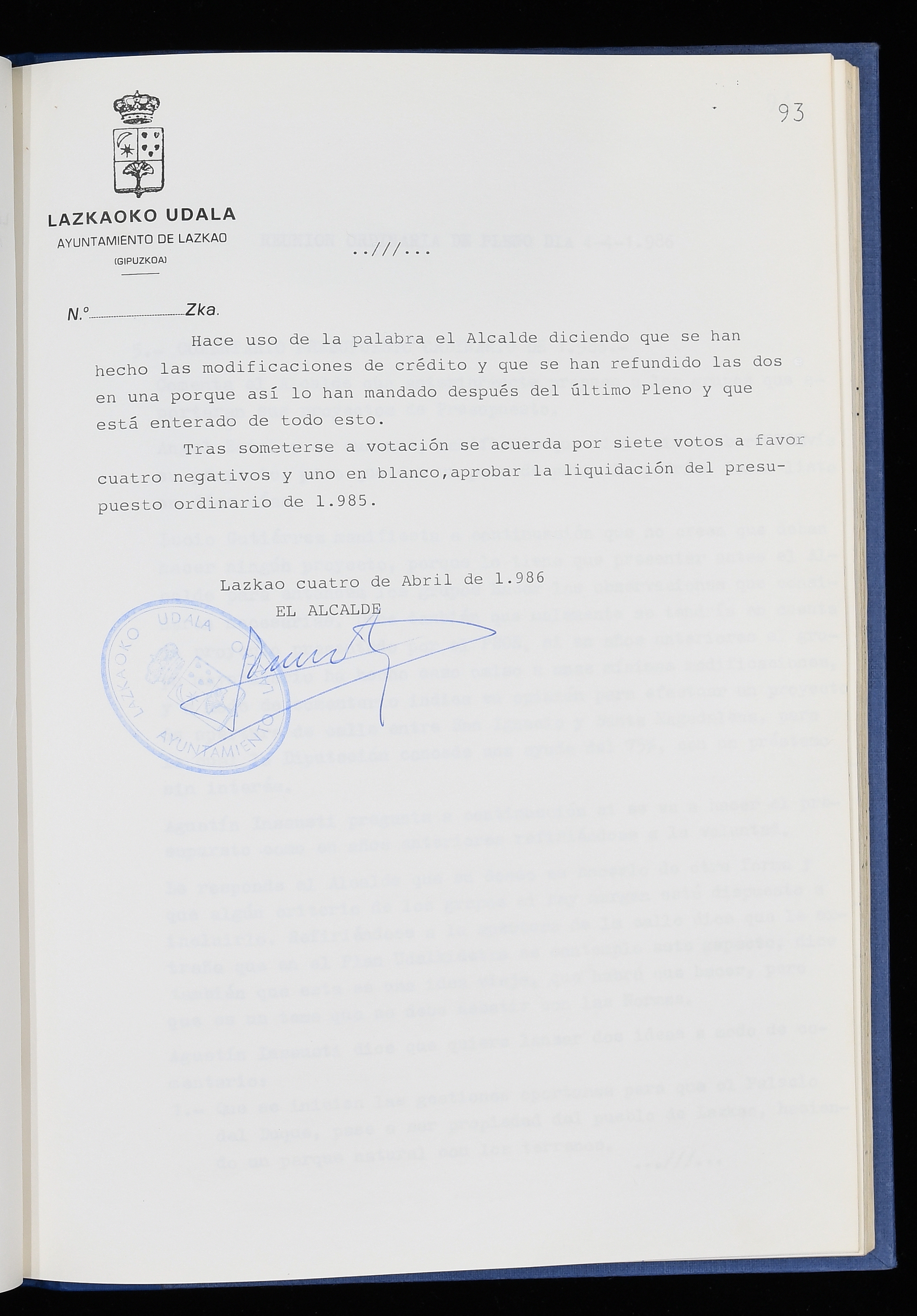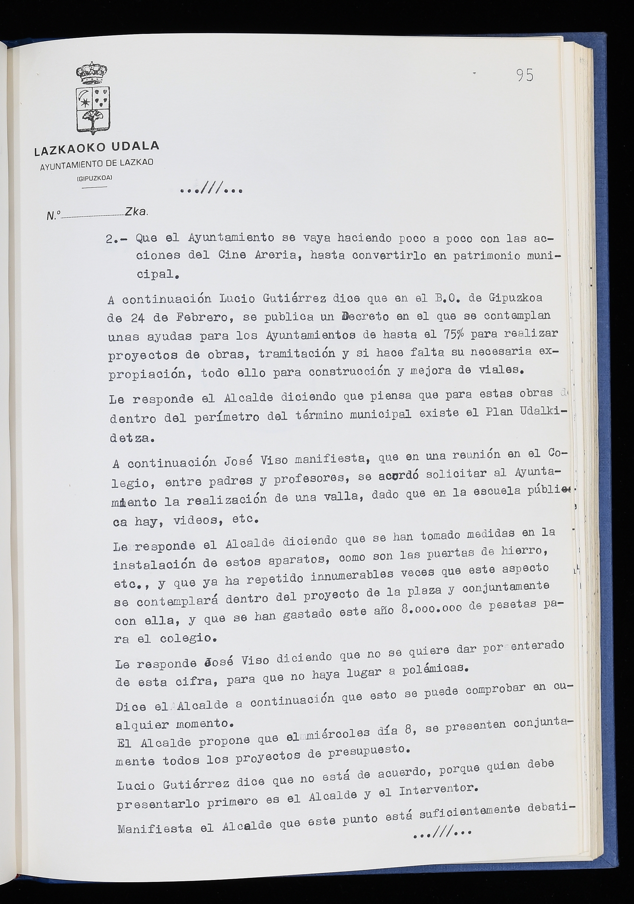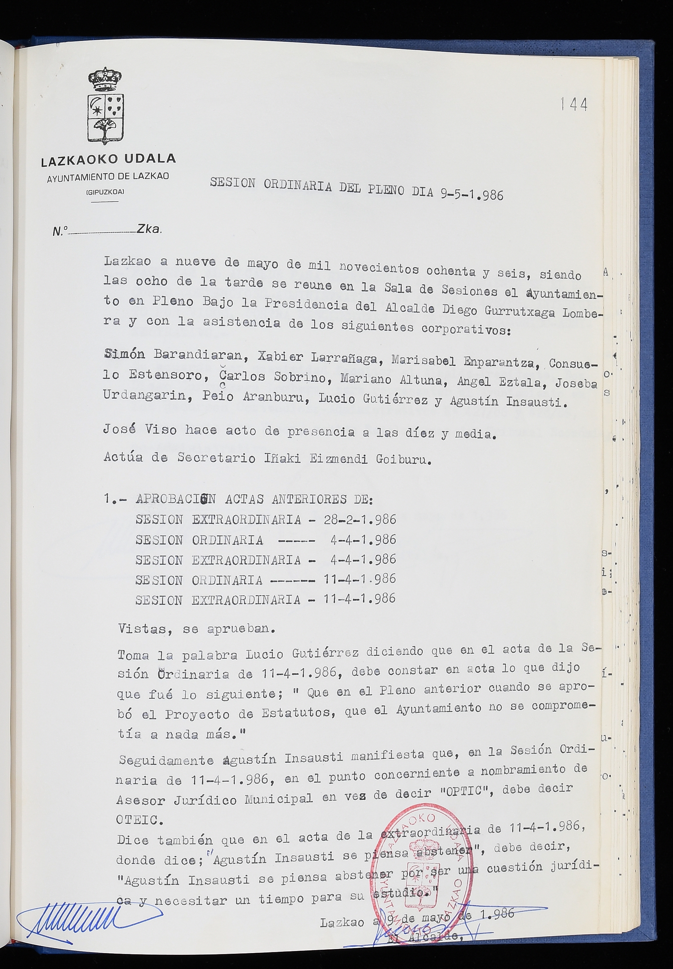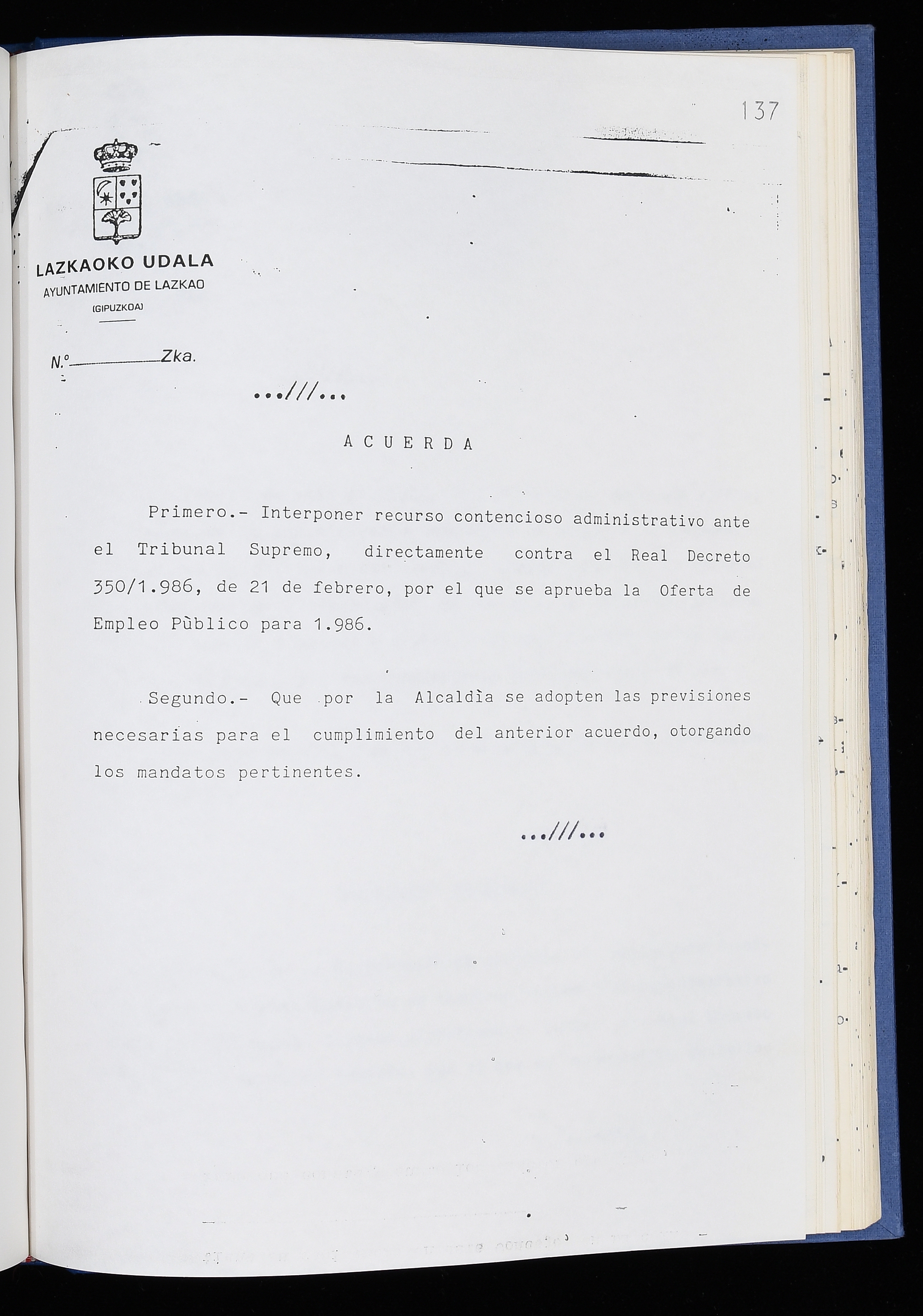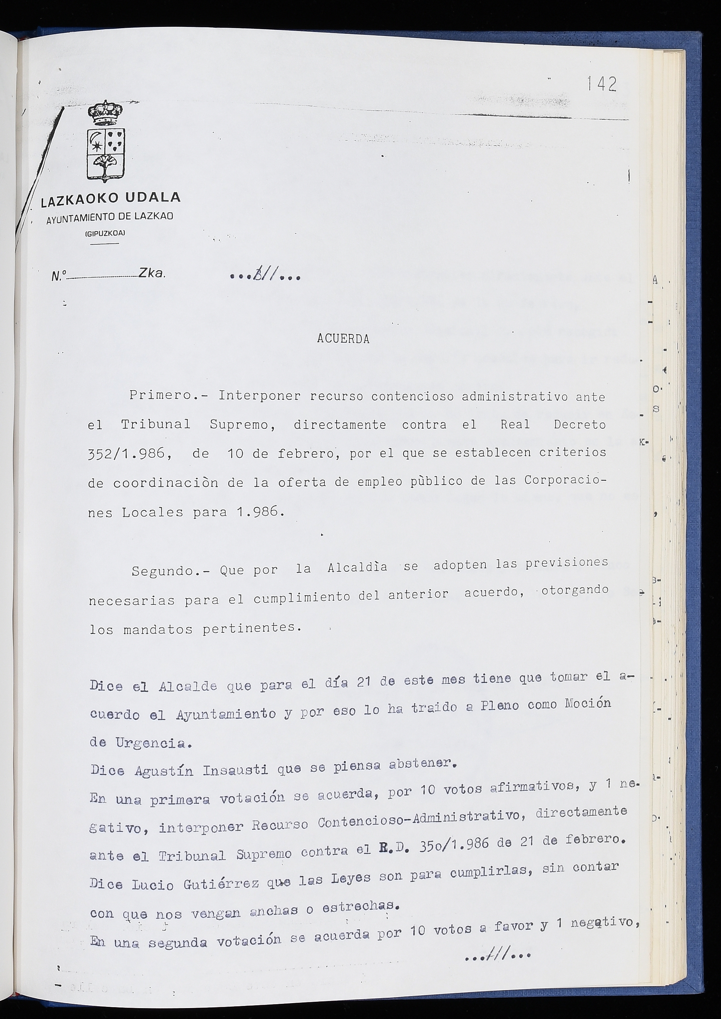 Log in to post commentsEdukiakSailkapenaFuntsaLazkaoko Udal ArtxiboaAtalakUdal AktakSailkapena1.1.4. Osoko Bilkuraren akta liburuakSailkapen berriaOsoko Bilkurako akta liburuakMultimediaIrudiakIdentifikazioaSignaturaakta liburua I-039Hasiera1985-07-22Amaiera1986-06-13AutoritateakTokiaLazkaoLog in to post commentsAkta eratu