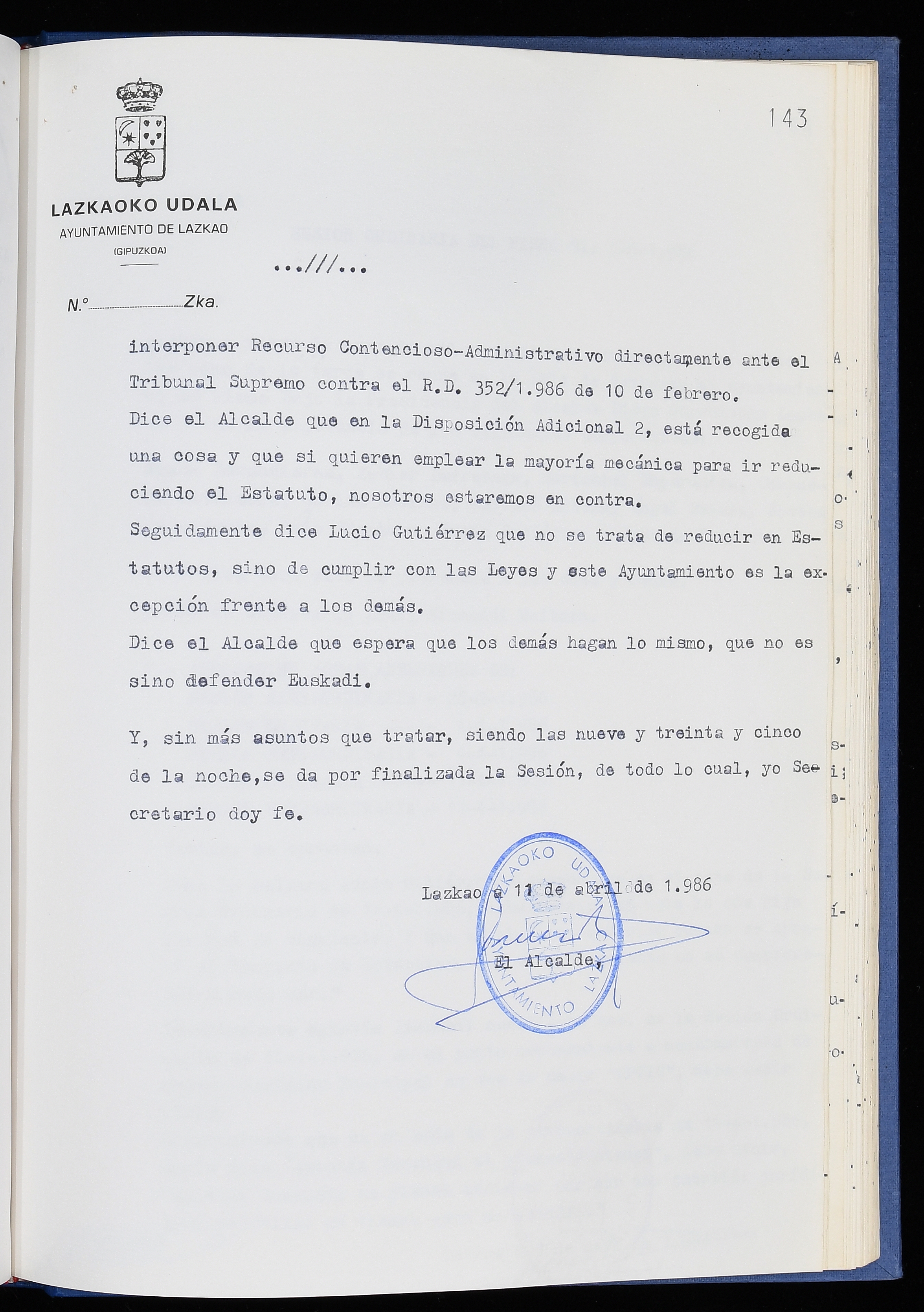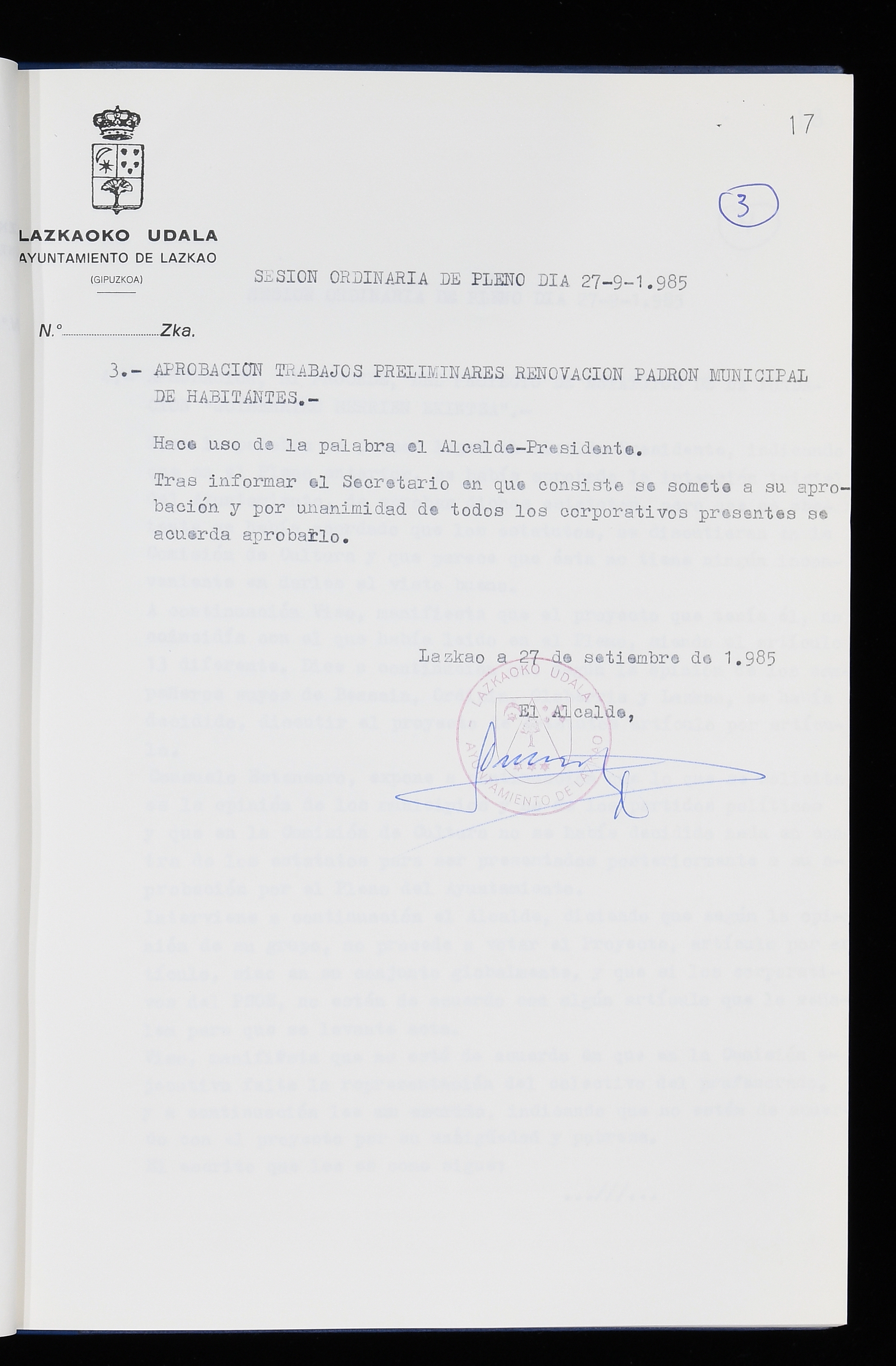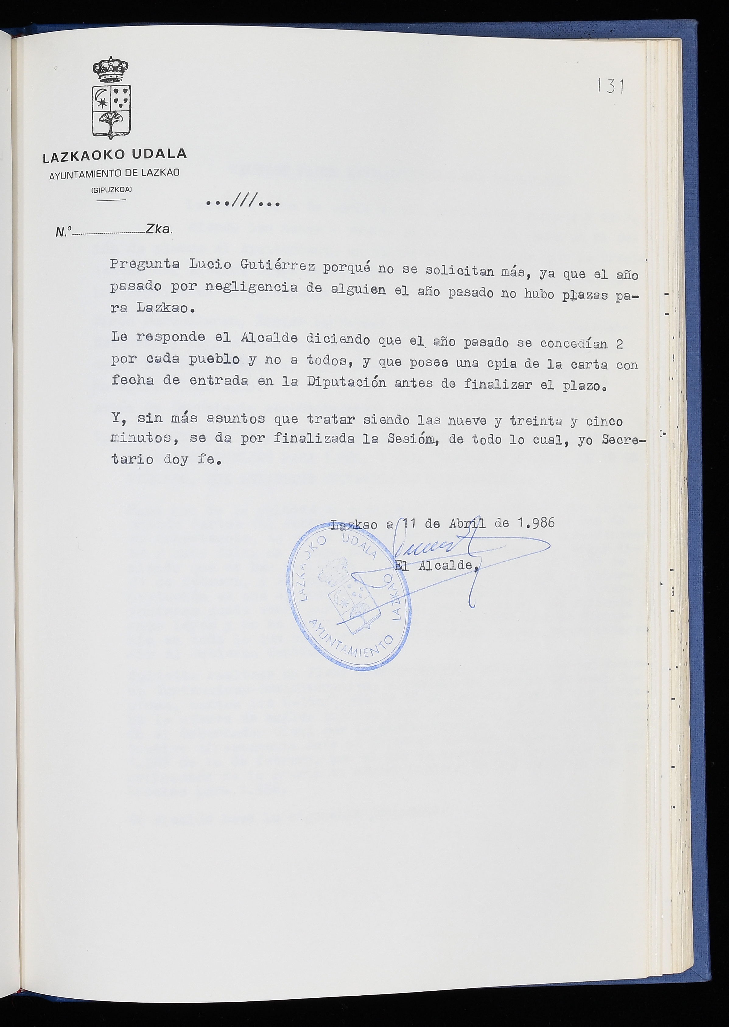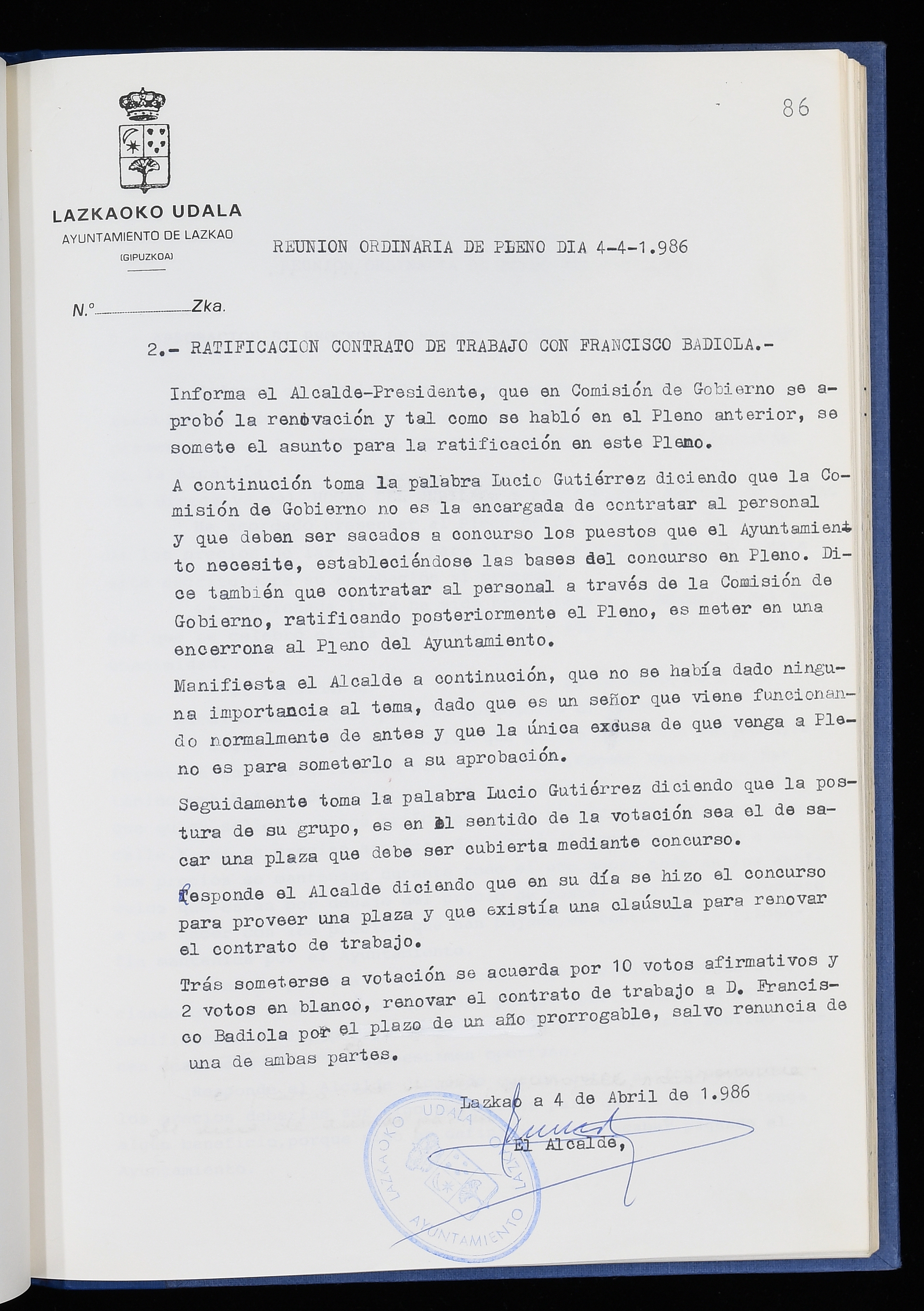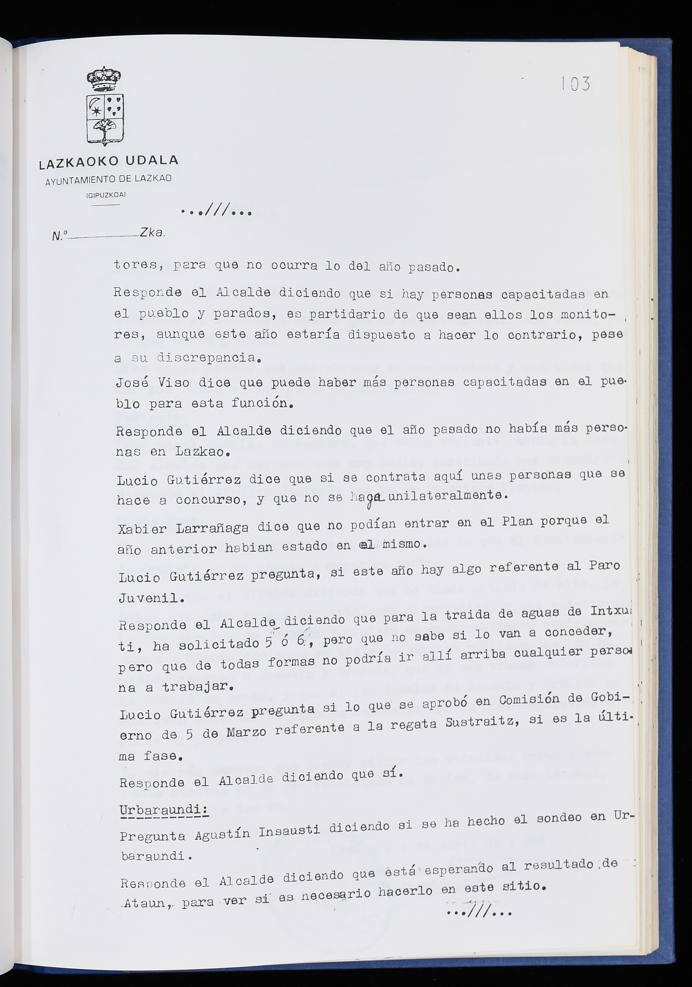 Log in to post commentsEdukiakSailkapenaFuntsaLazkaoko Udal ArtxiboaAtalakUdal AktakSailkapena1.1.4. Osoko Bilkuraren akta liburuakSailkapen berriaOsoko Bilkurako akta liburuakMultimediaIrudiakIdentifikazioaSignaturaakta liburua I-039Hasiera1985-07-22Amaiera1986-06-13AutoritateakTokiaLazkaoLog in to post commentsAkta eratu