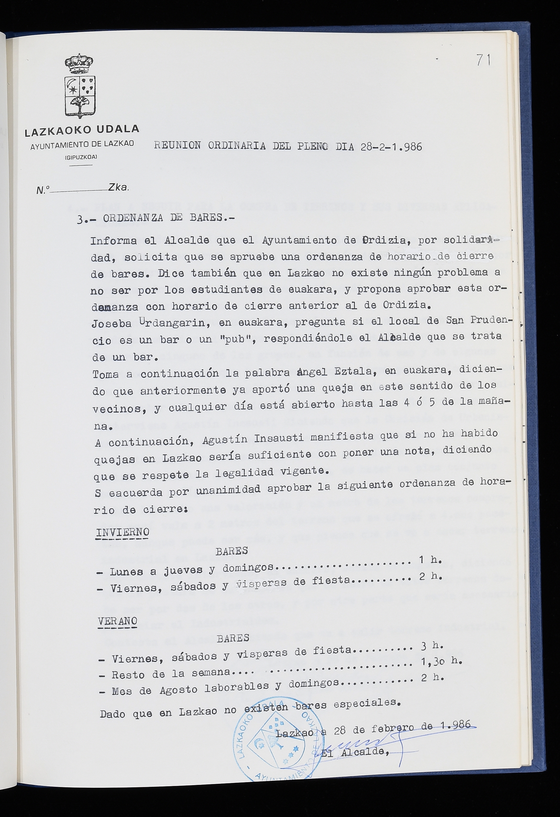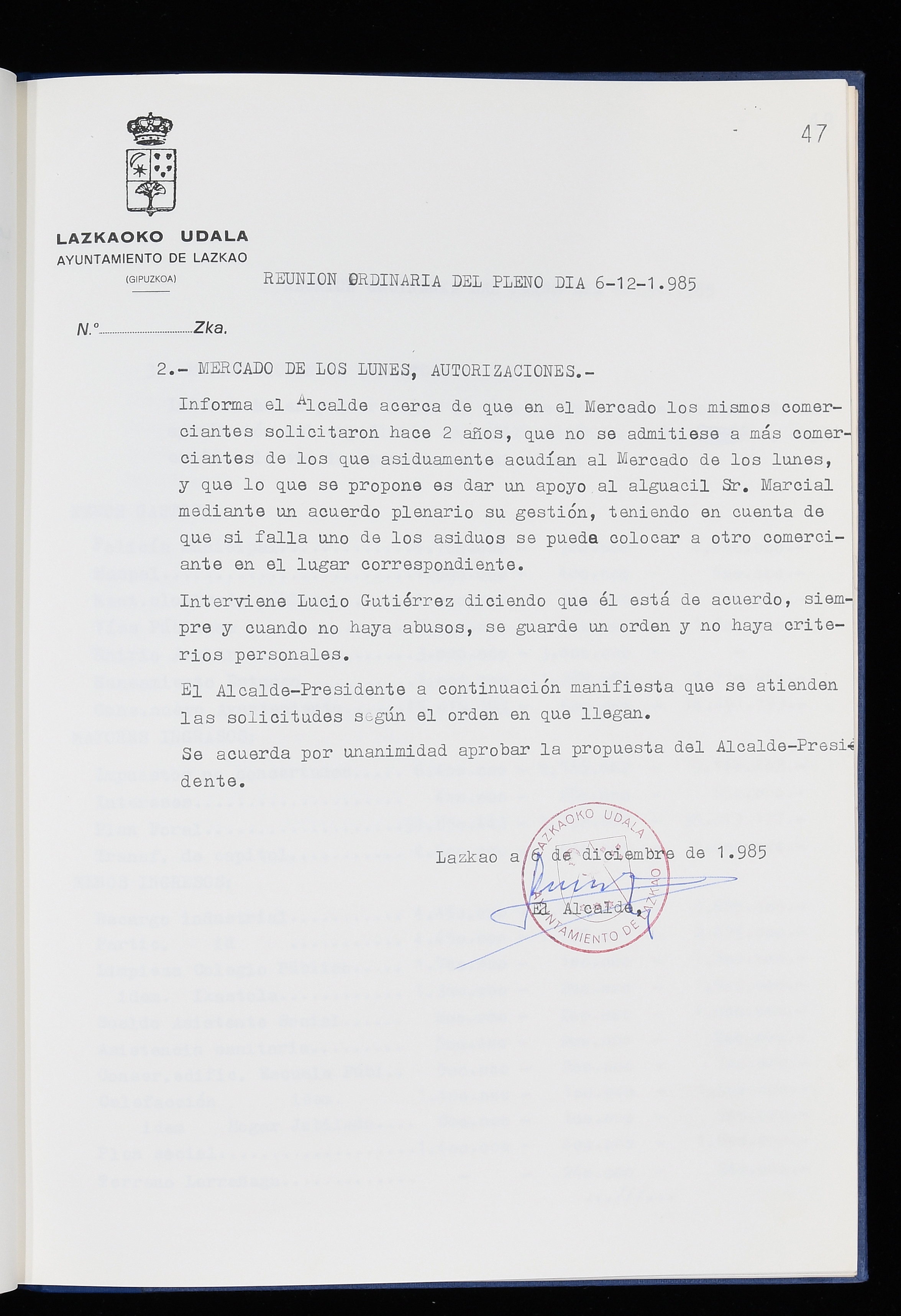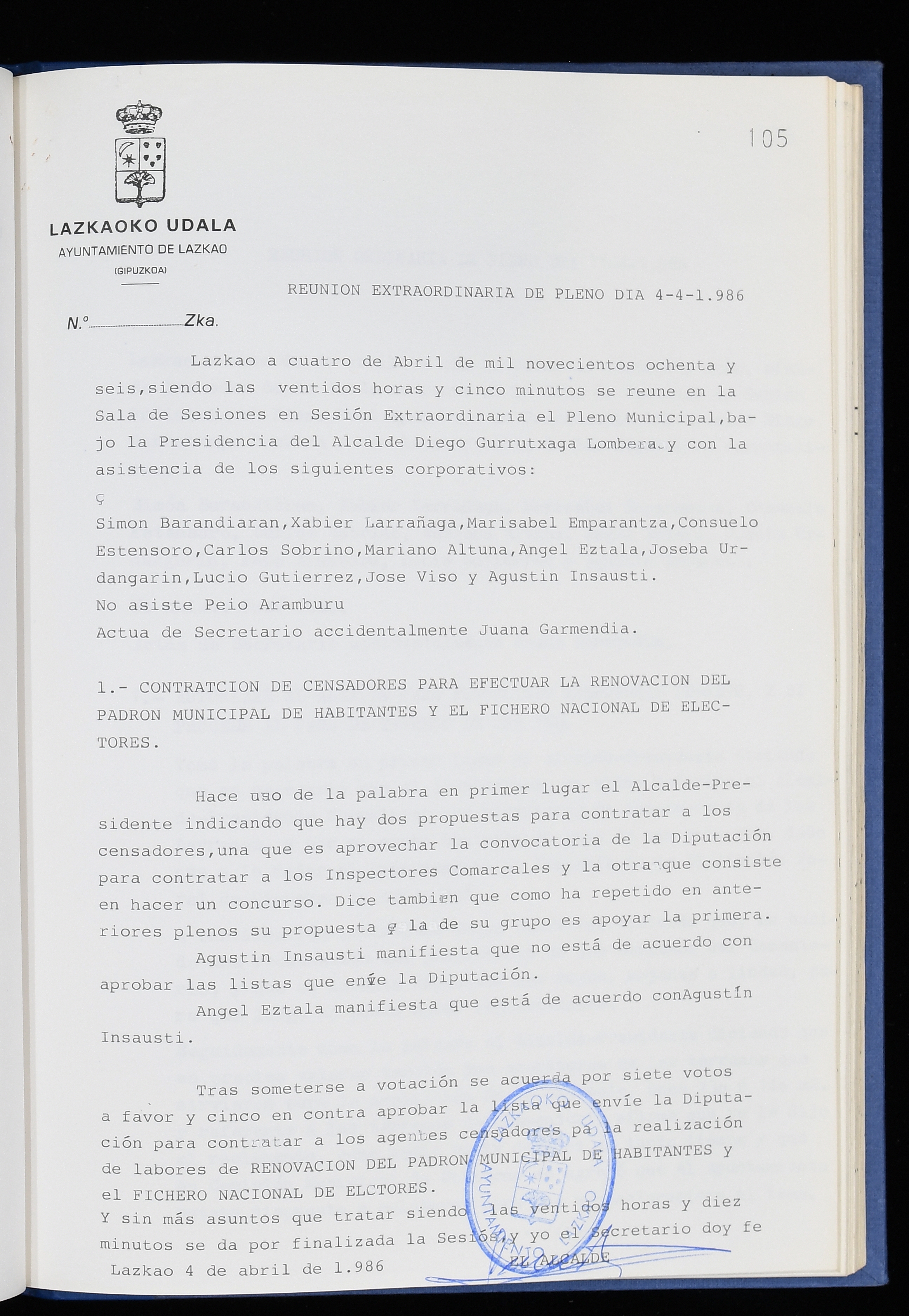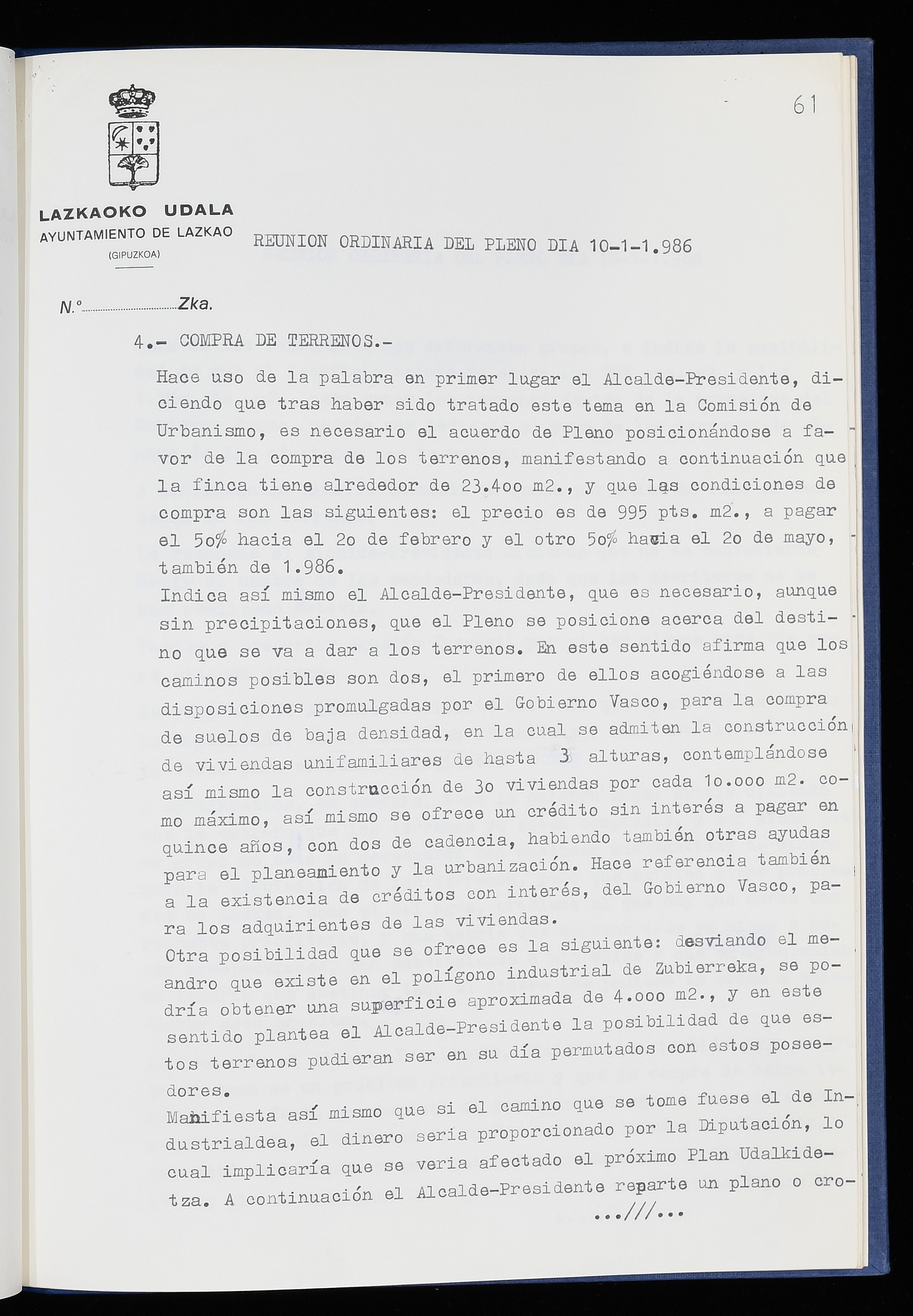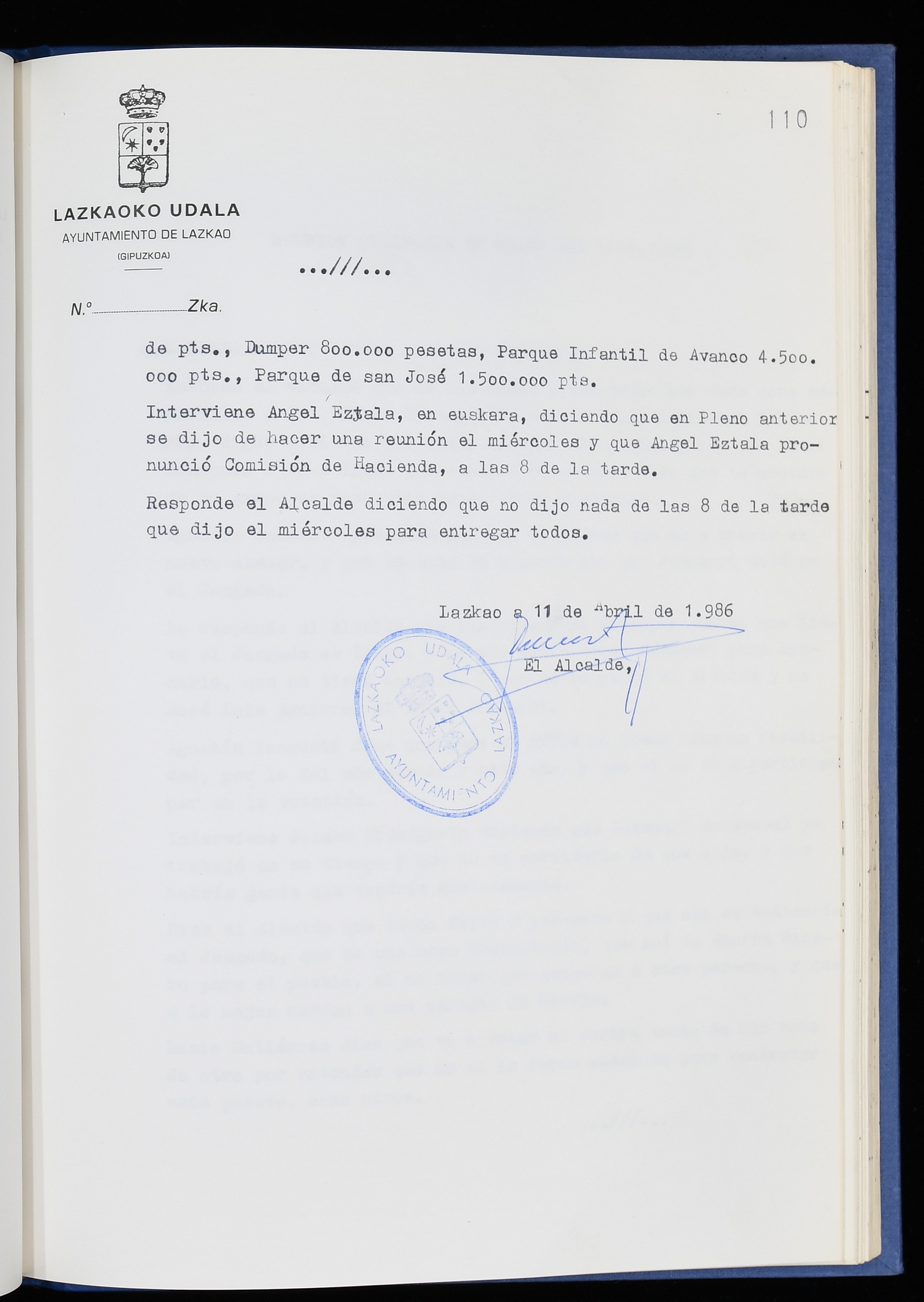 Log in to post commentsEdukiakSailkapenaFuntsaLazkaoko Udal ArtxiboaAtalakUdal AktakSailkapena1.1.4. Osoko Bilkuraren akta liburuakSailkapen berriaOsoko Bilkurako akta liburuakMultimediaIrudiakIdentifikazioaSignaturaakta liburua I-039Hasiera1985-07-22Amaiera1986-06-13AutoritateakTokiaLazkaoLog in to post commentsAkta eratu