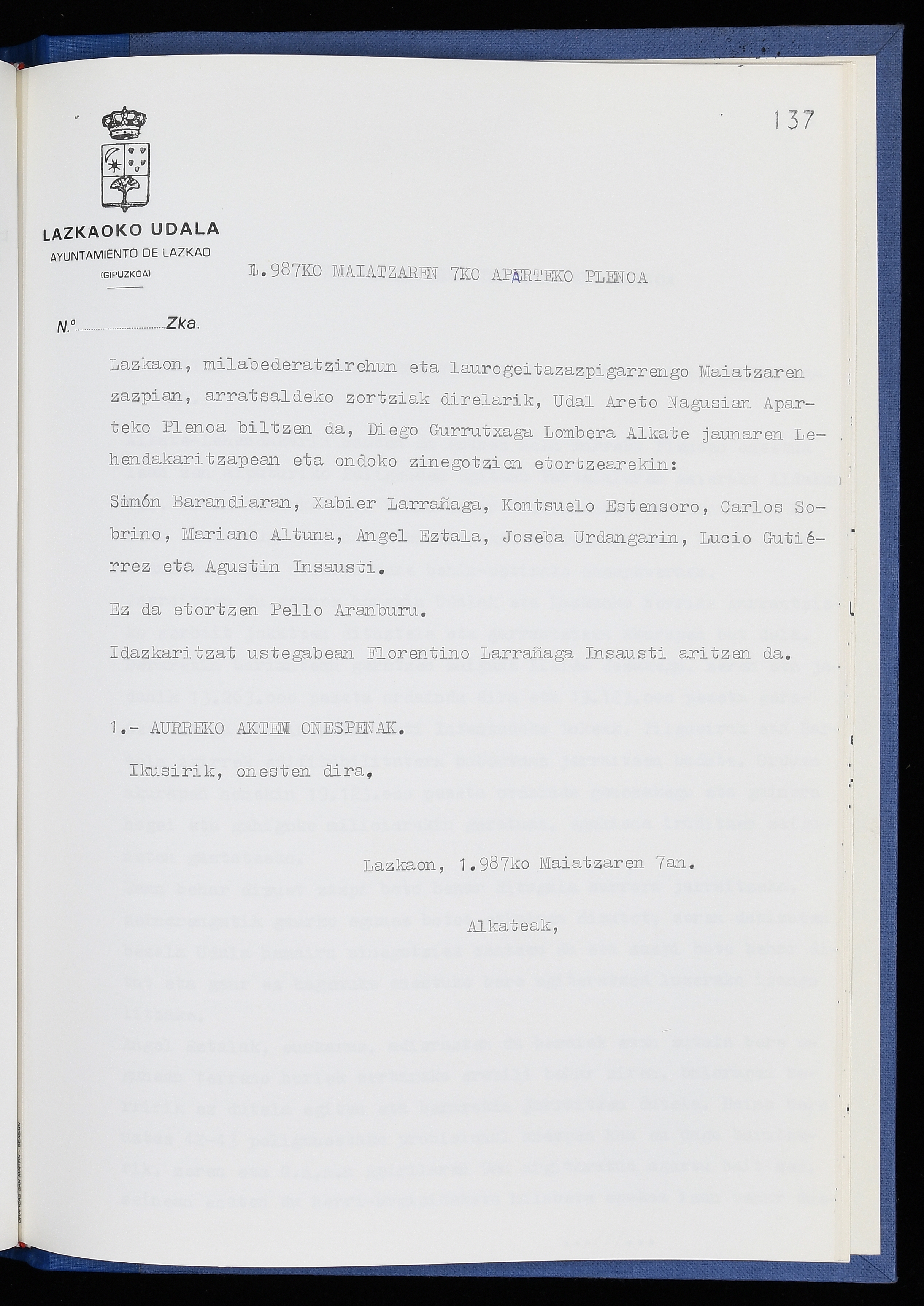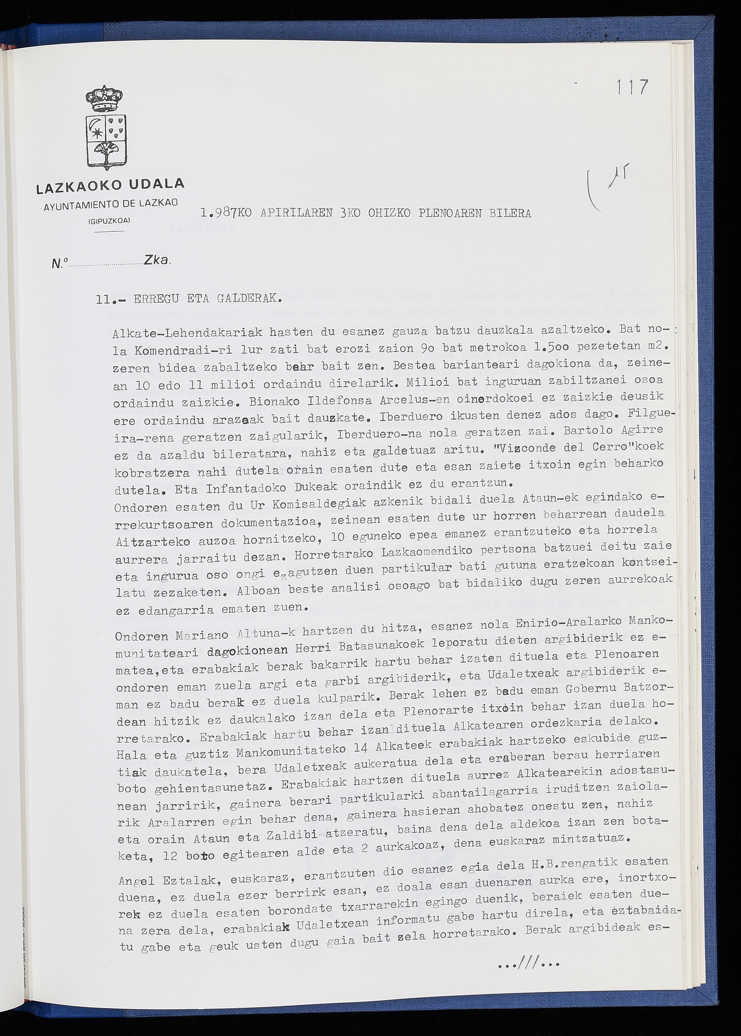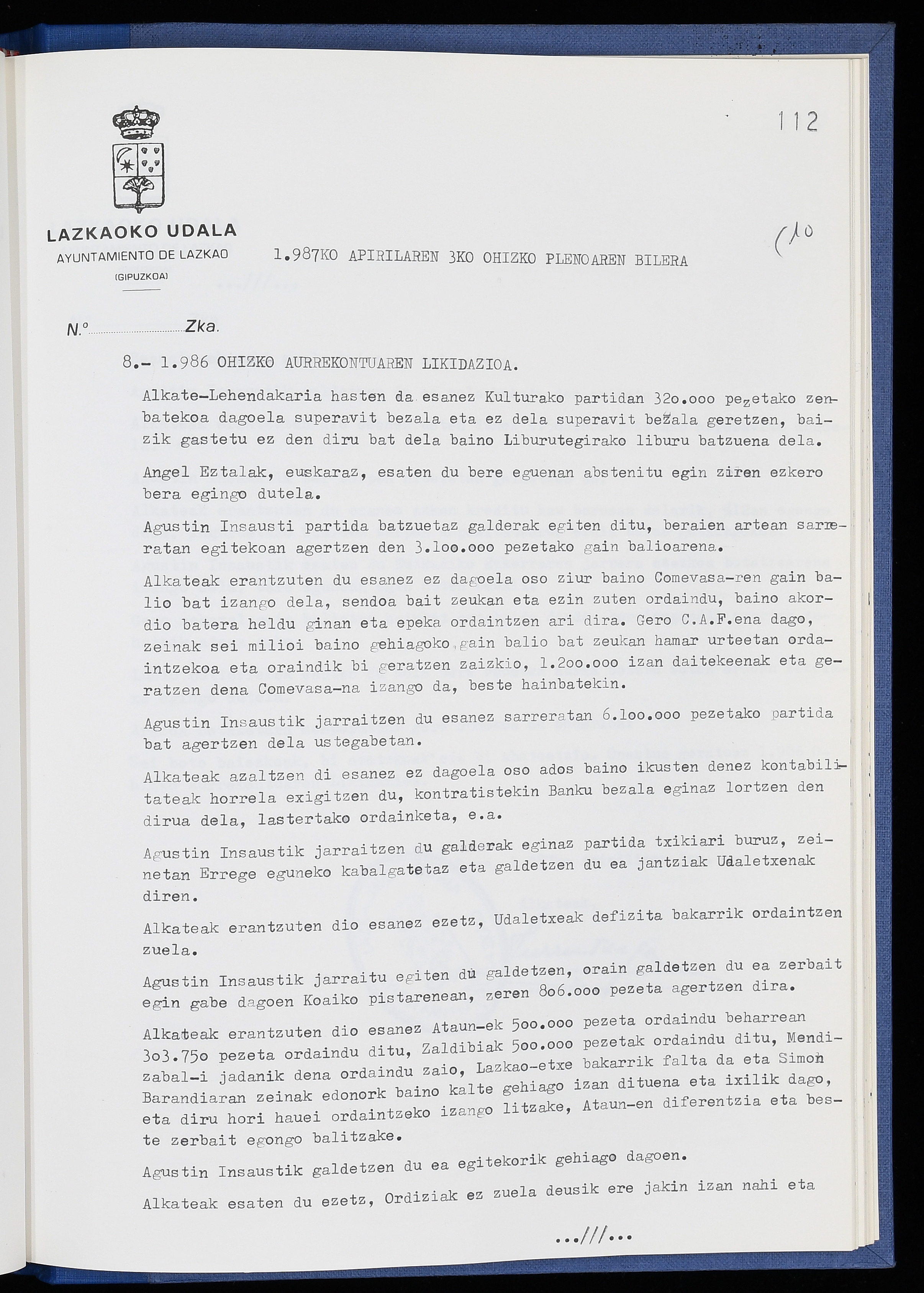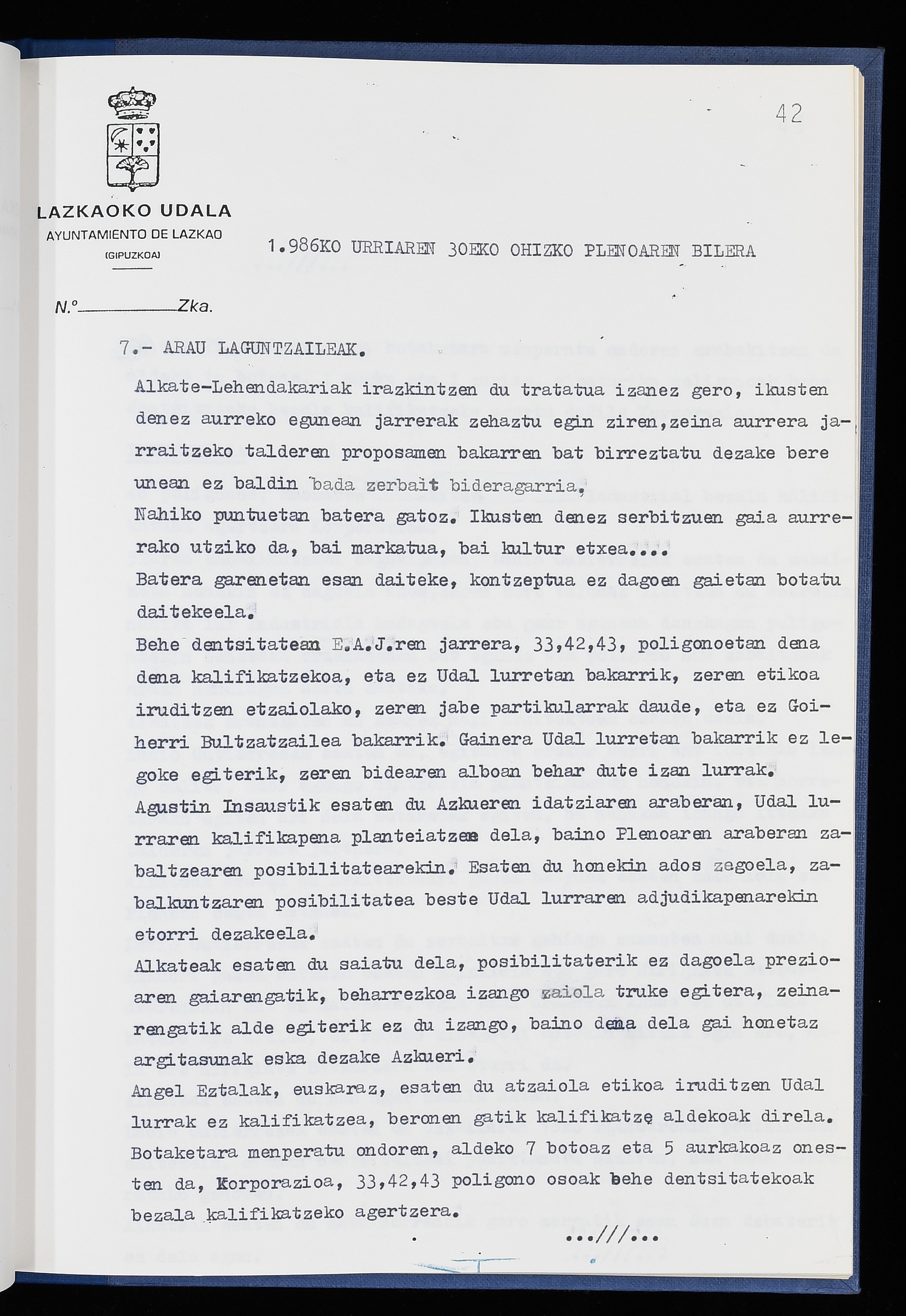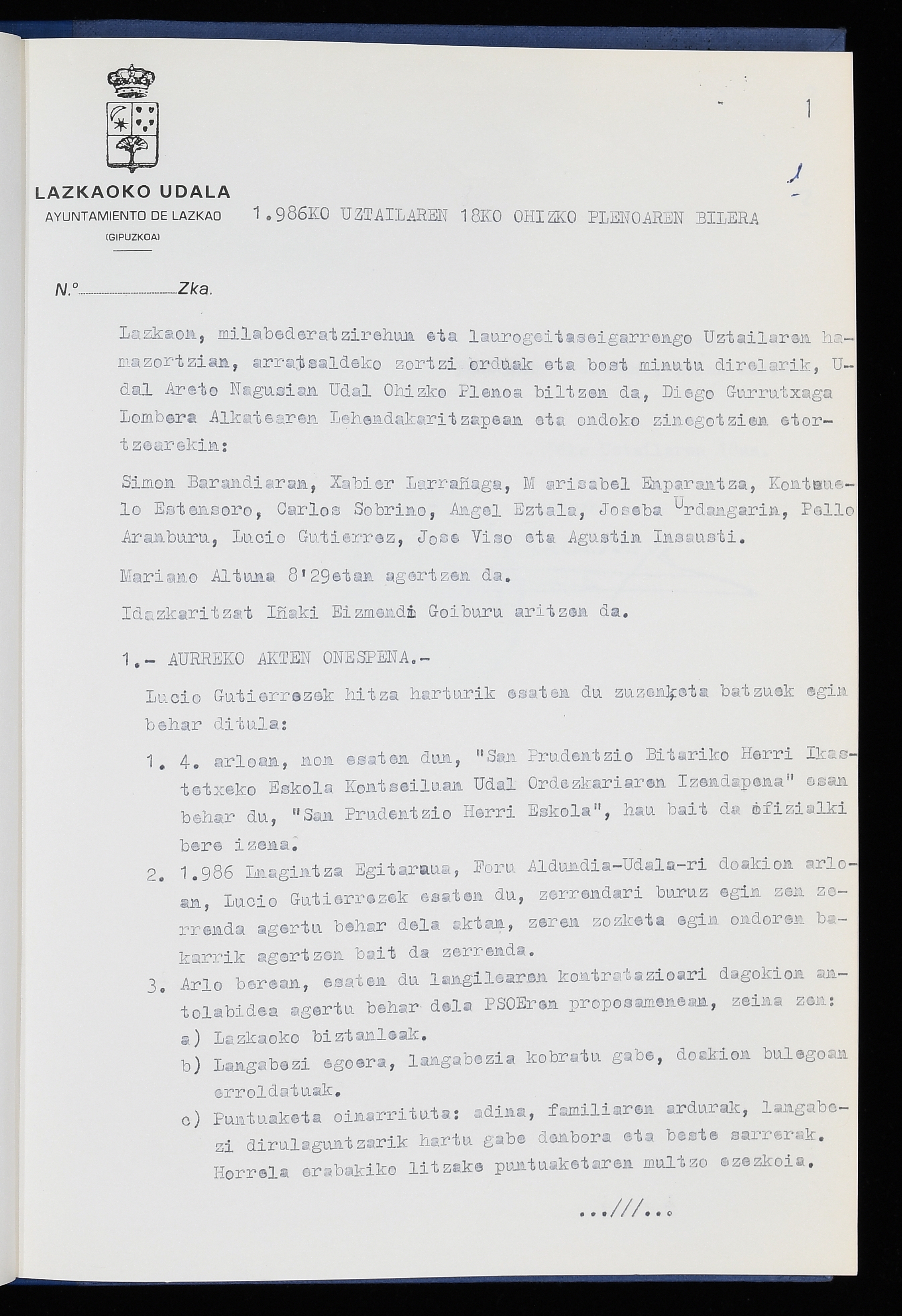 Log in to post commentsEdukiakSailkapenaFuntsaLazkaoko Udal ArtxiboaAtalakUdal AktakSailkapena1.1.4. Osoko Bilkuraren akta liburuakSailkapen berriaOsoko Bilkurako akta liburuakMultimediaIrudiakIdentifikazioaSignaturaakta liburua I-040Hasiera1986-07-18Amaiera1987-06-30AutoritateakTokiaLazkaoLog in to post commentsAkta eratu