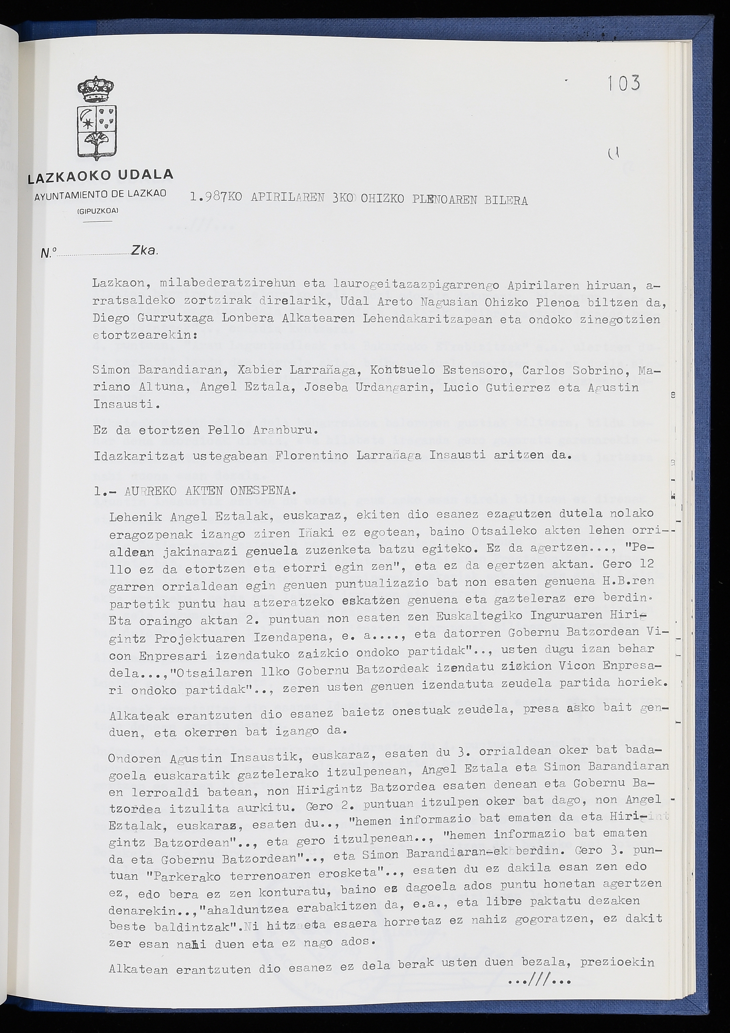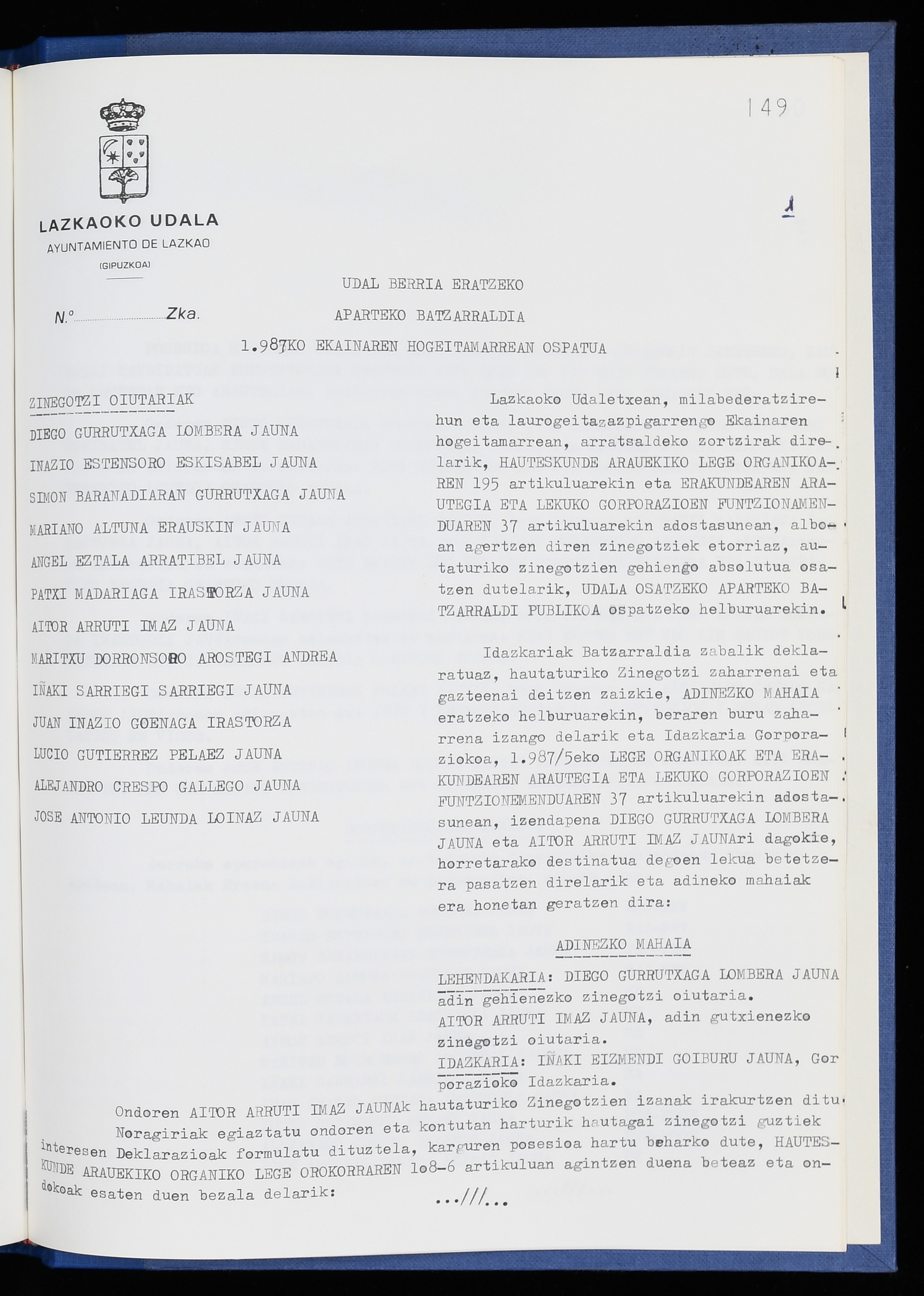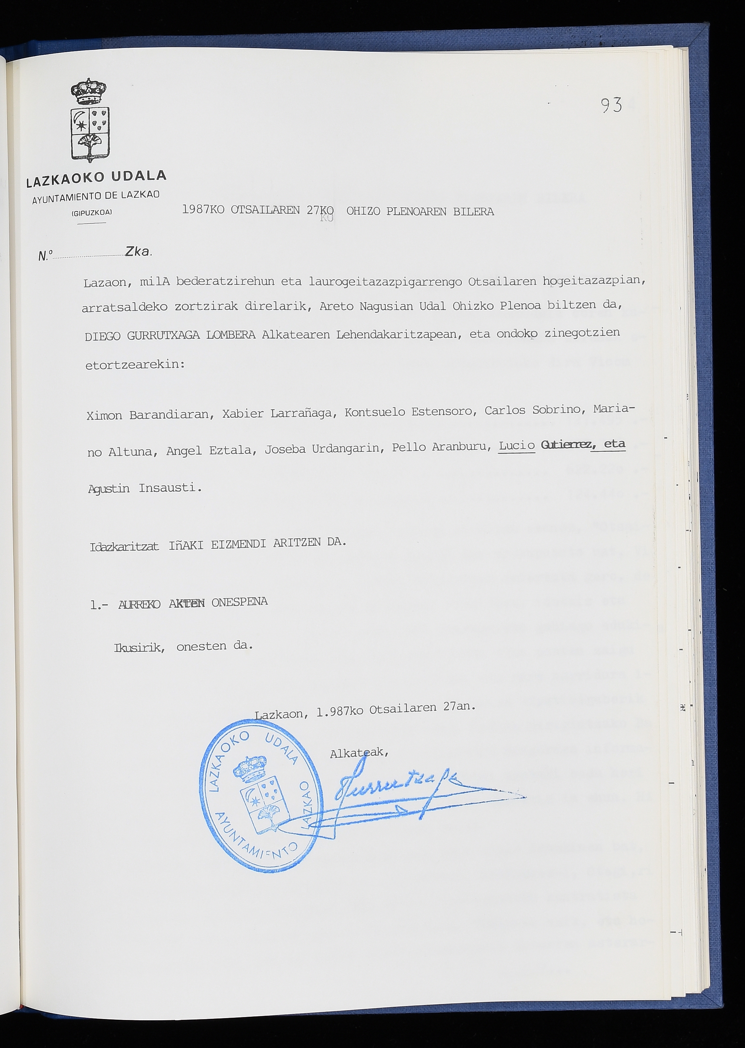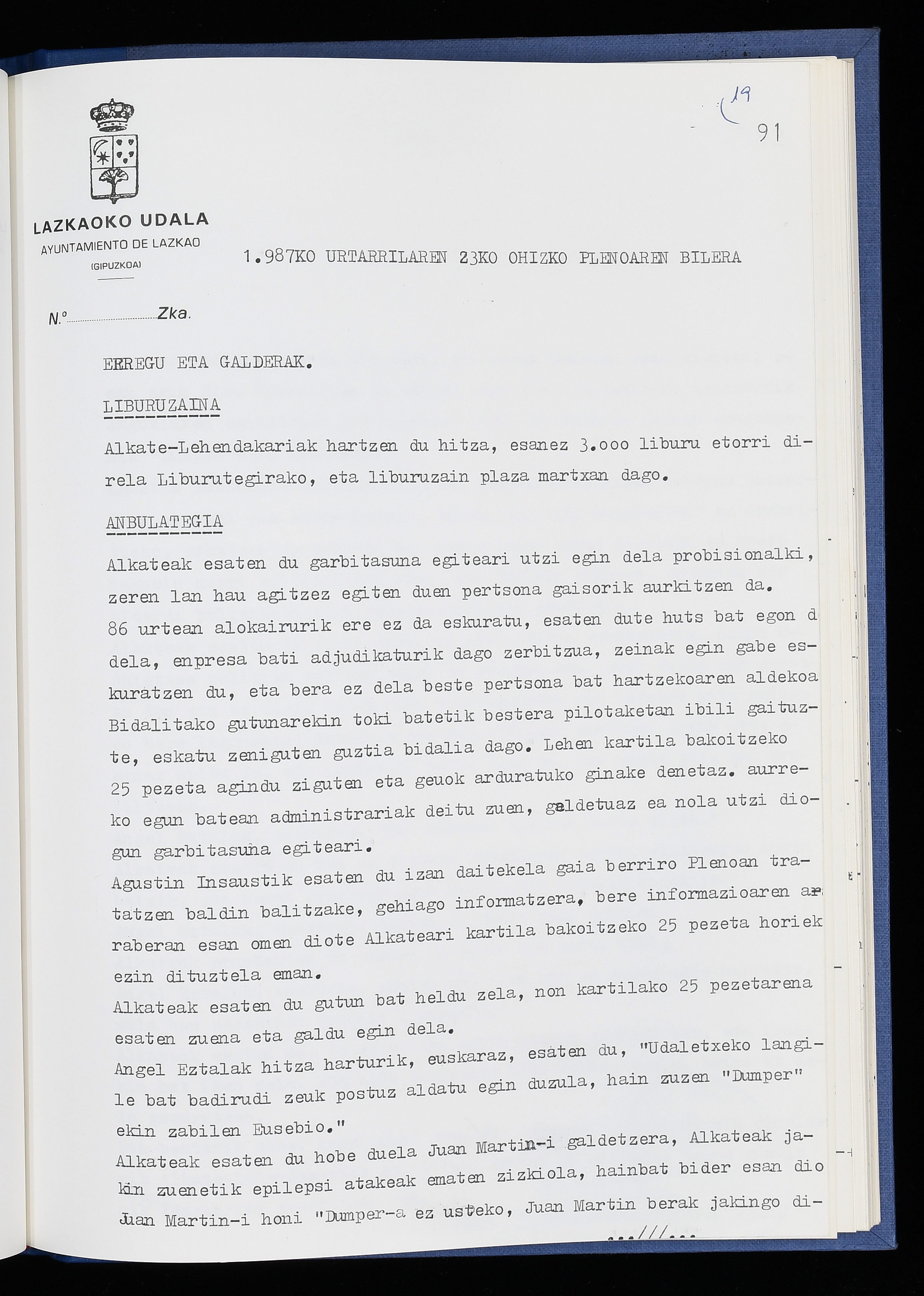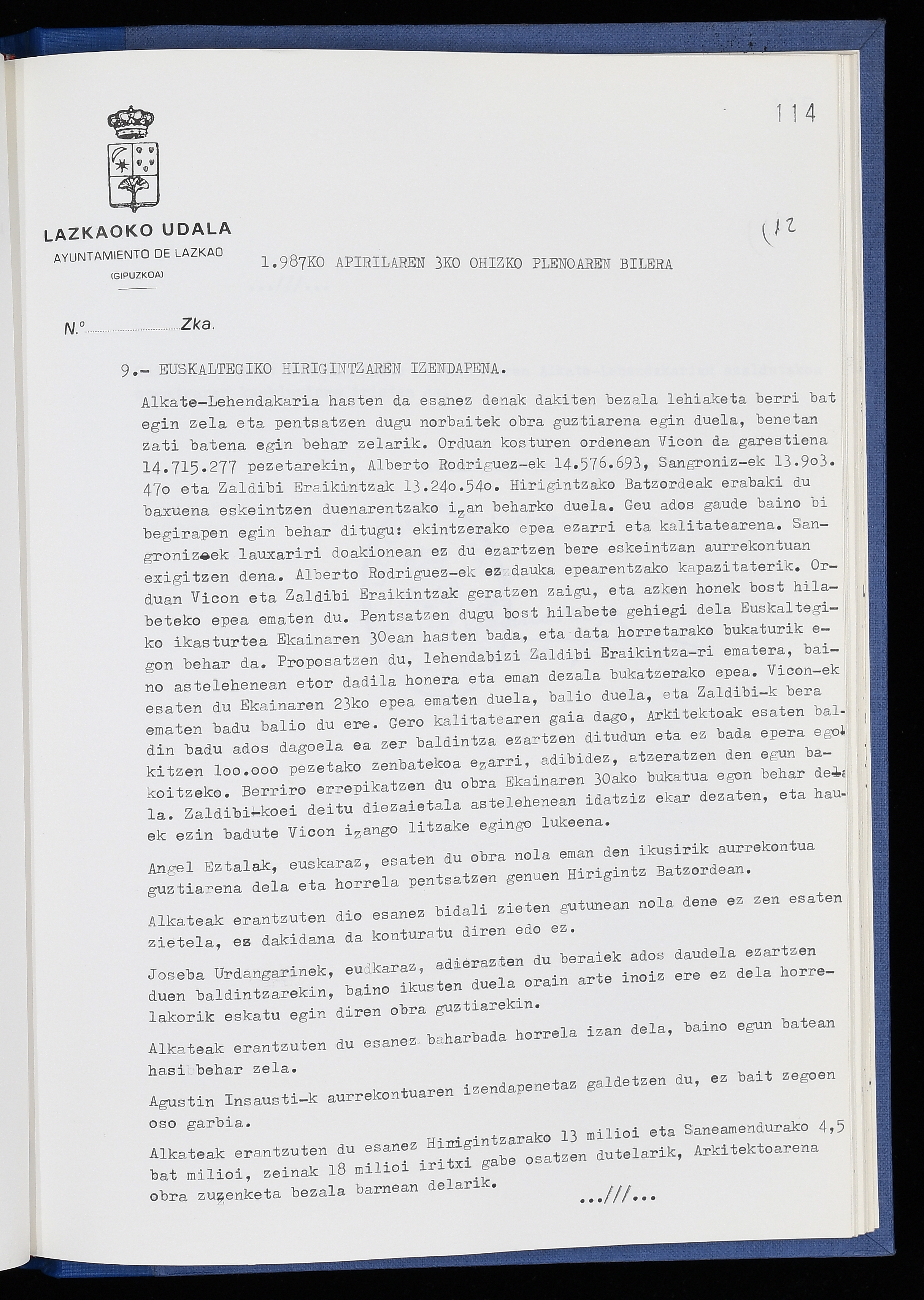 Log in to post commentsEdukiakSailkapenaFuntsaLazkaoko Udal ArtxiboaAtalakUdal AktakSailkapena1.1.4. Osoko Bilkuraren akta liburuakSailkapen berriaOsoko Bilkurako akta liburuakMultimediaIrudiakIdentifikazioaSignaturaakta liburua I-040Hasiera1986-07-18Amaiera1987-06-30AutoritateakTokiaLazkaoLog in to post commentsAkta eratu