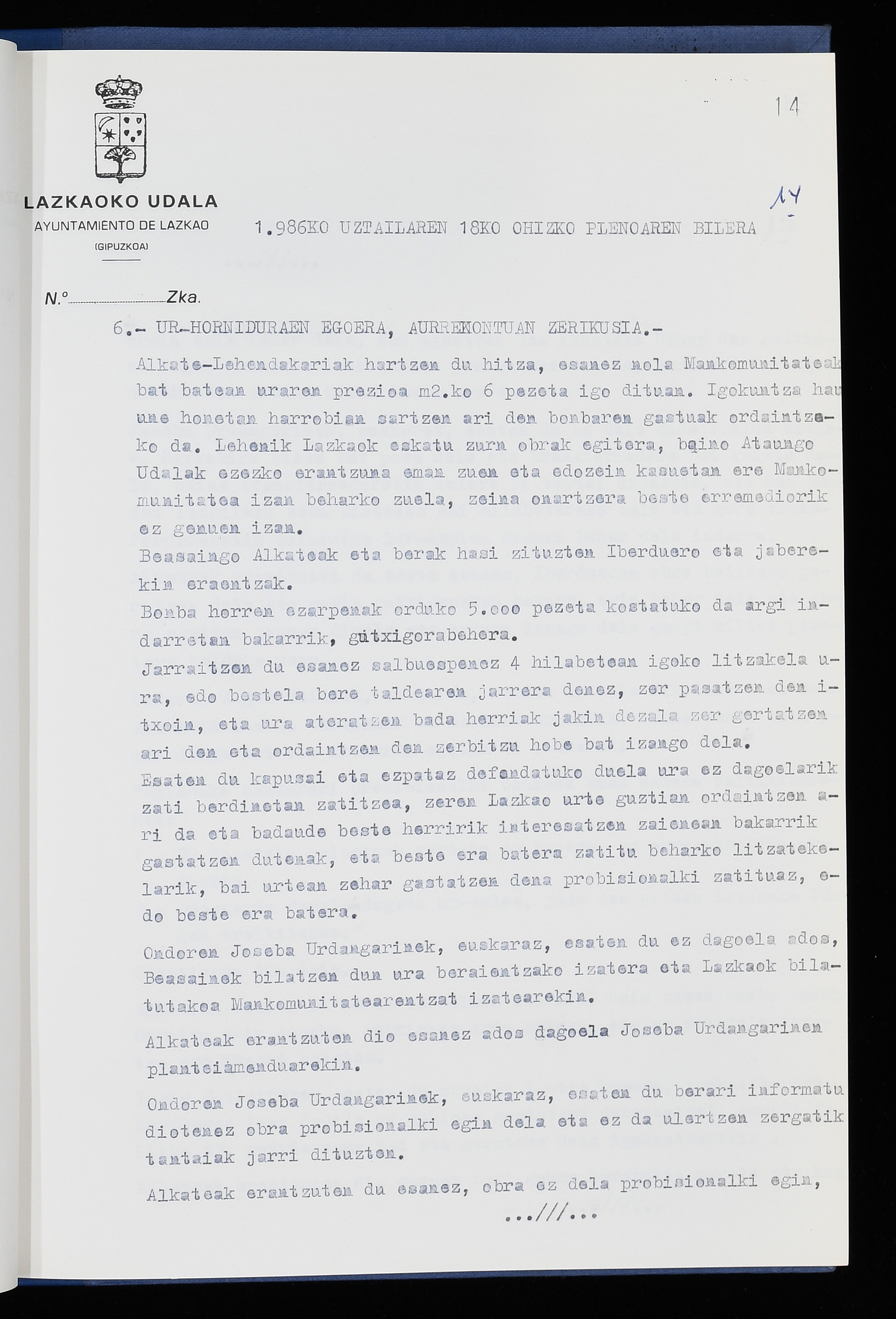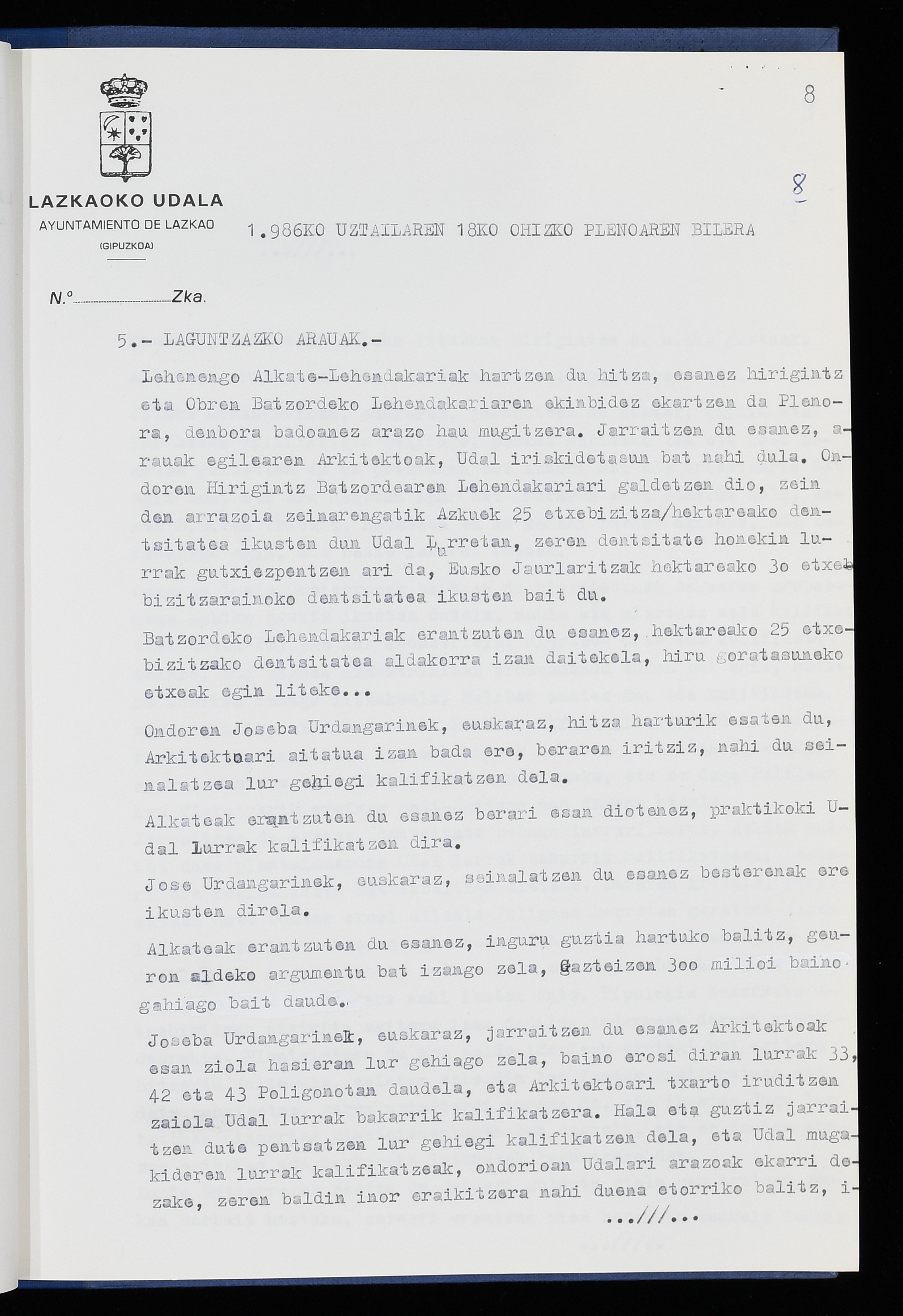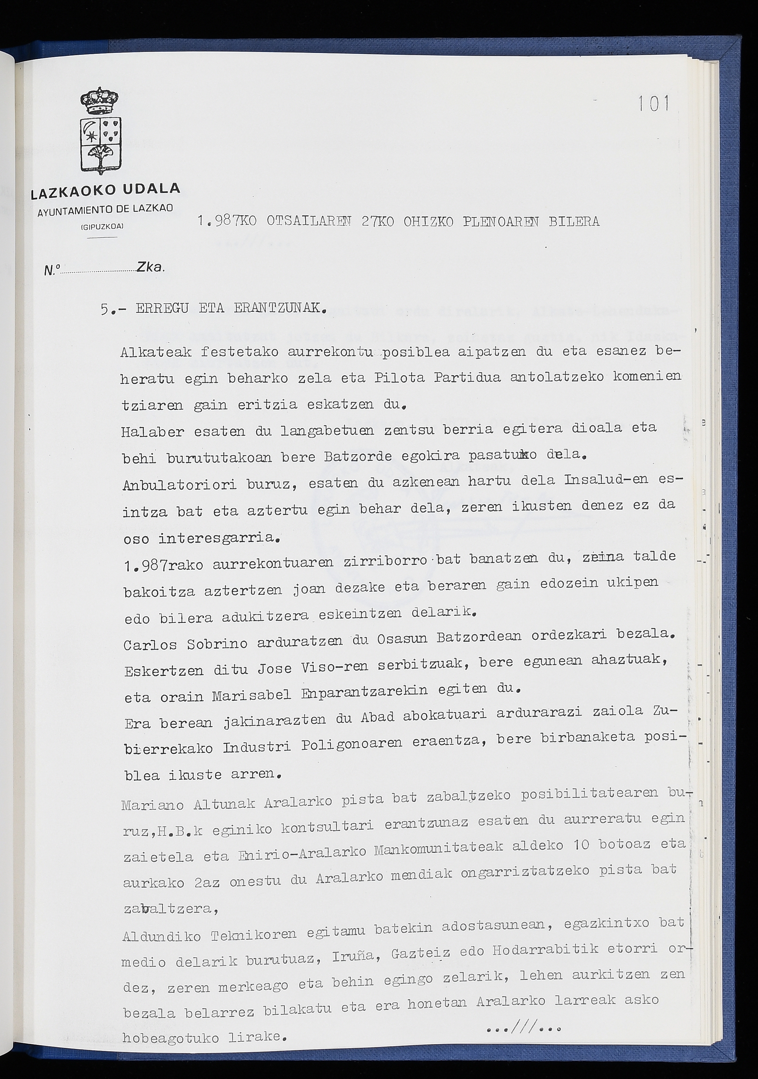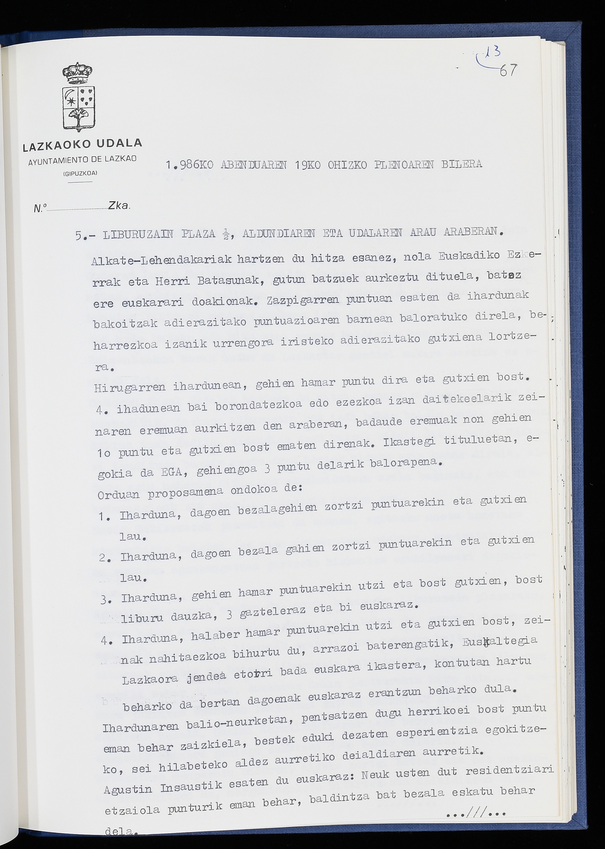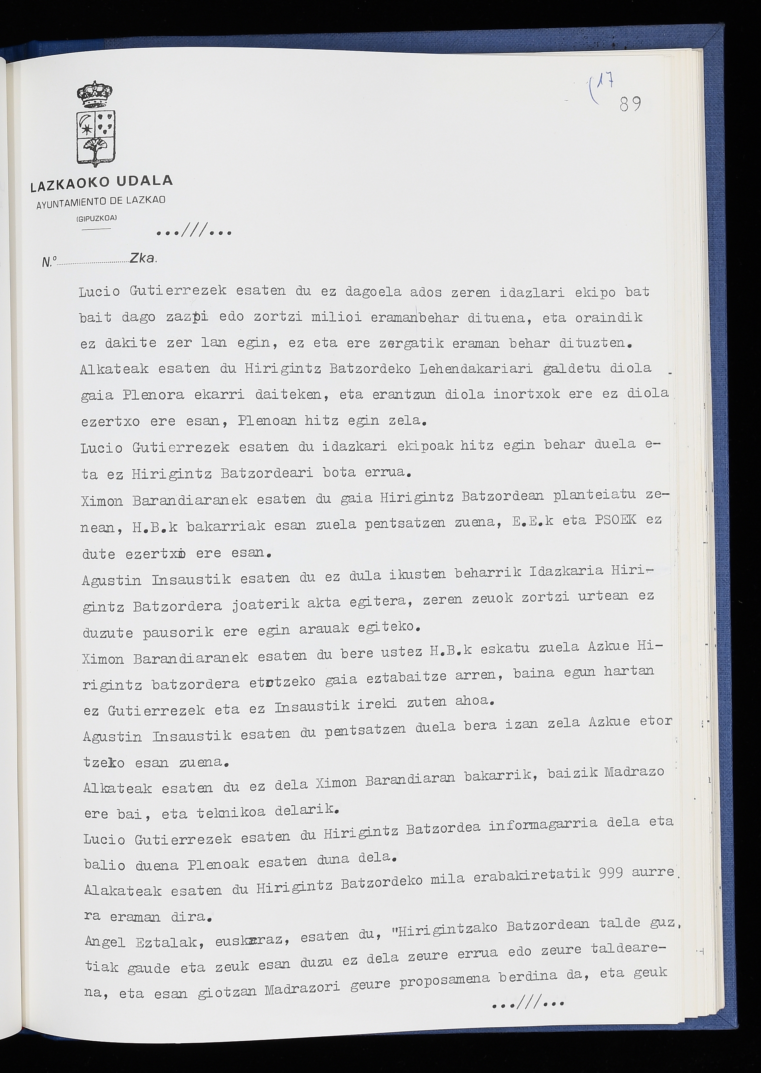 Log in to post commentsEdukiakSailkapenaFuntsaLazkaoko Udal ArtxiboaAtalakUdal AktakSailkapena1.1.4. Osoko Bilkuraren akta liburuakSailkapen berriaOsoko Bilkurako akta liburuakMultimediaIrudiakIdentifikazioaSignaturaakta liburua I-040Hasiera1986-07-18Amaiera1987-06-30AutoritateakTokiaLazkaoLog in to post commentsAkta eratu