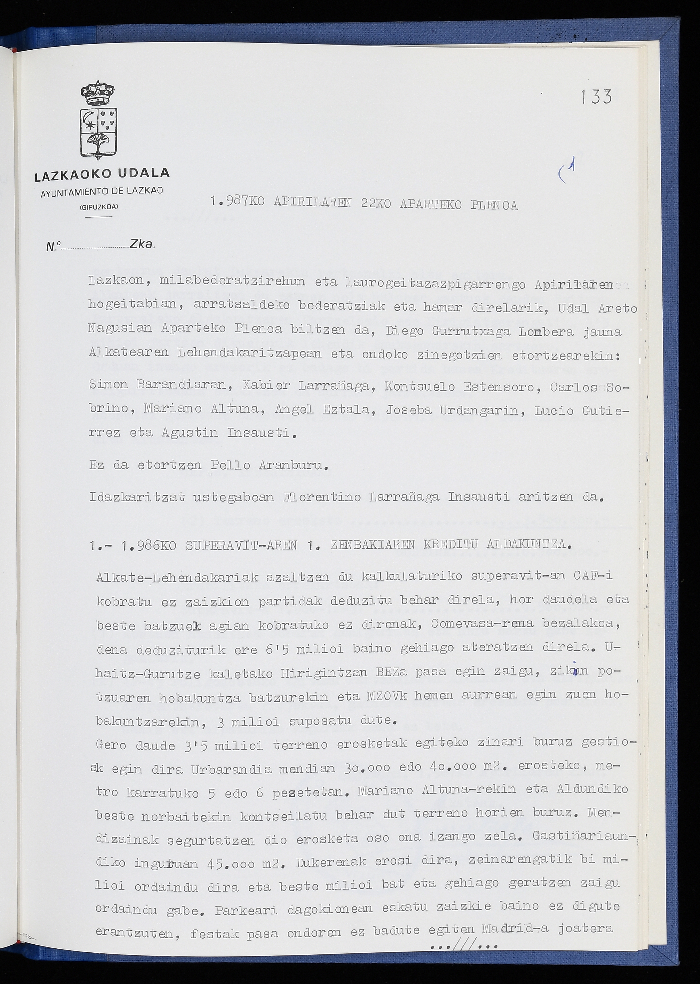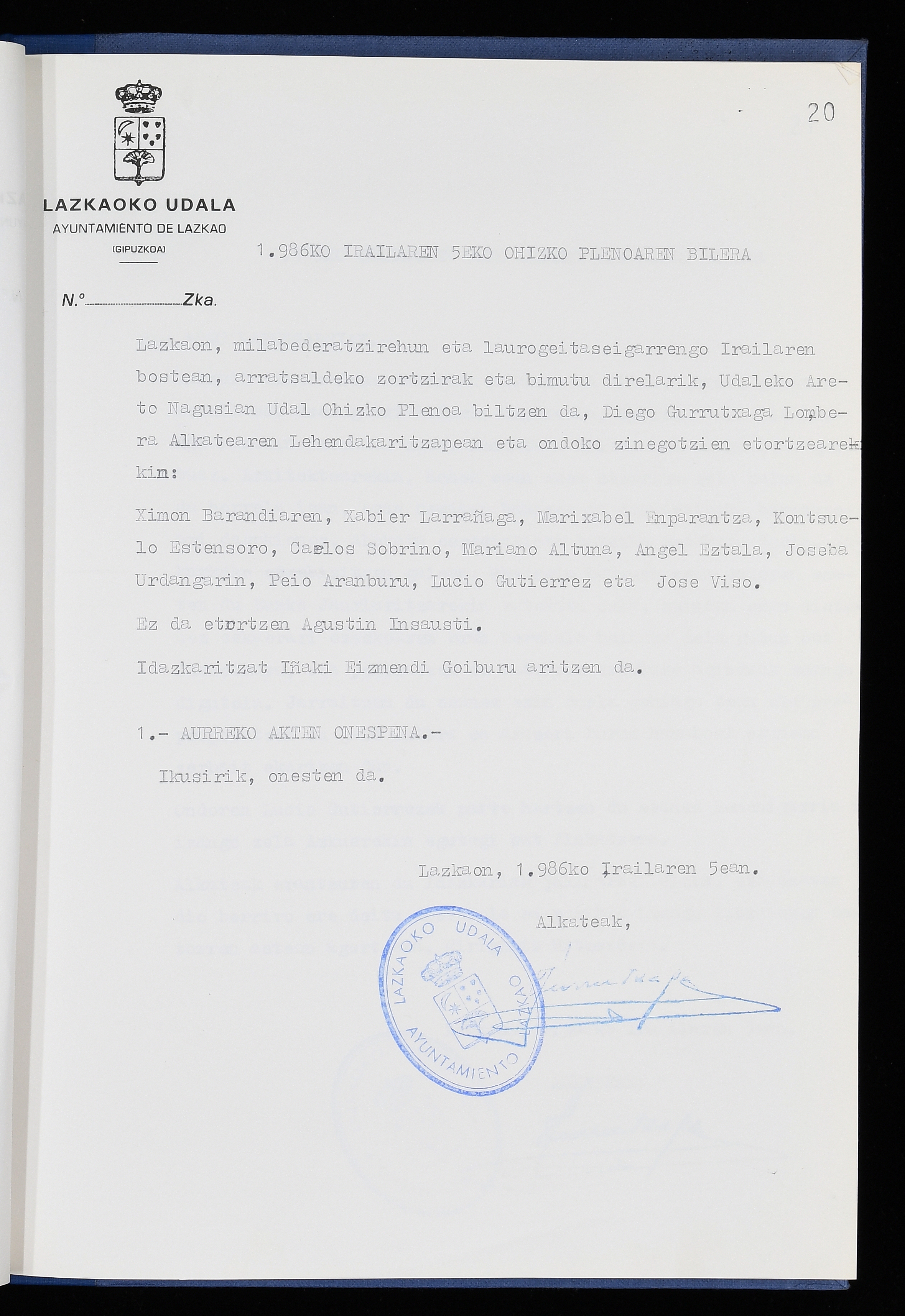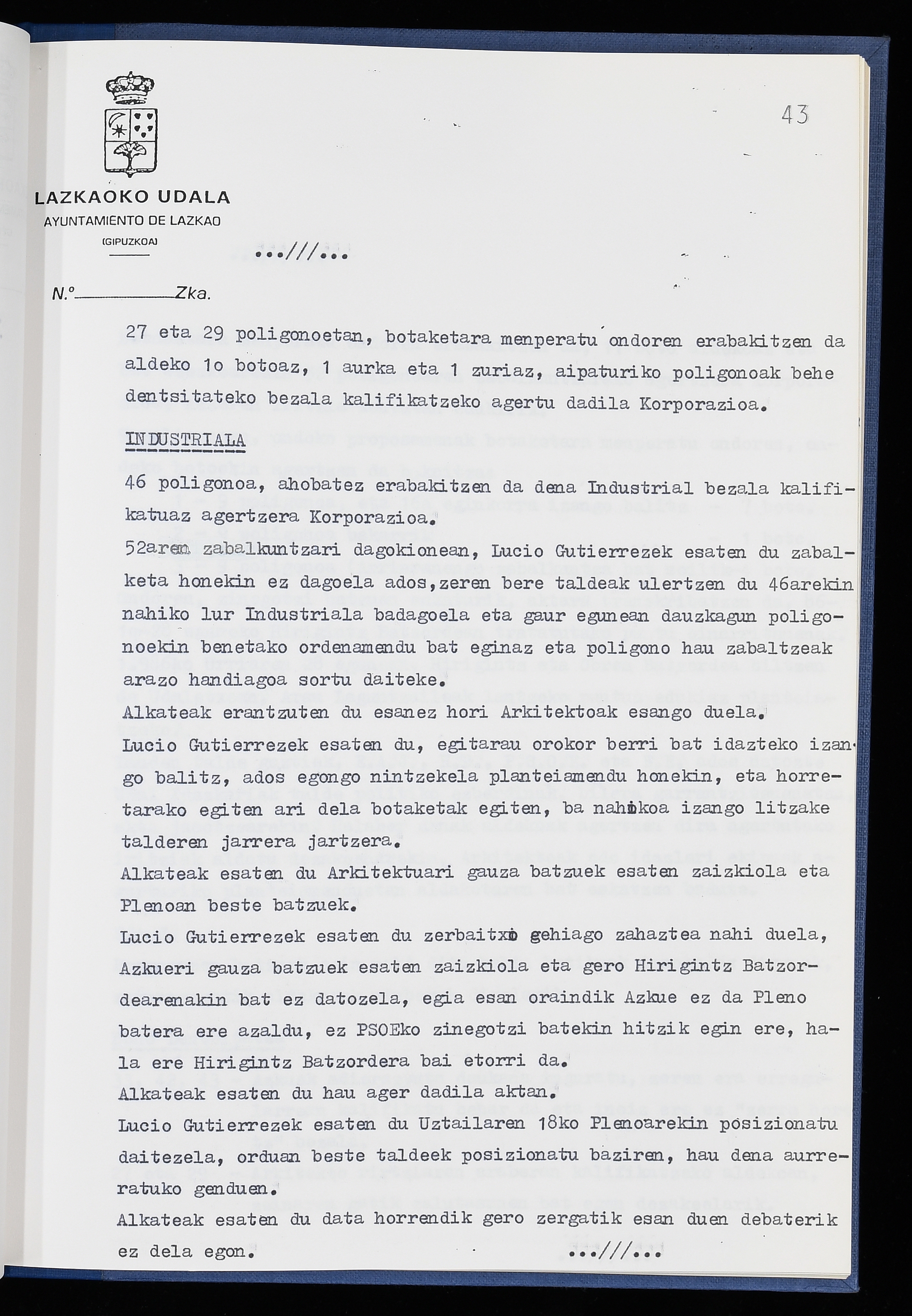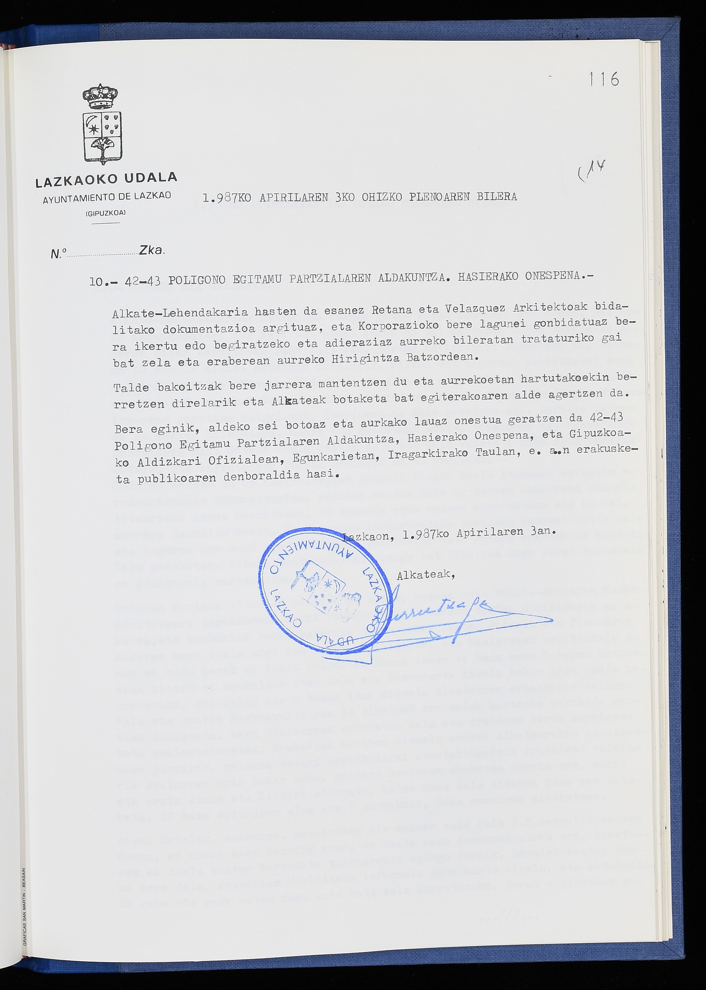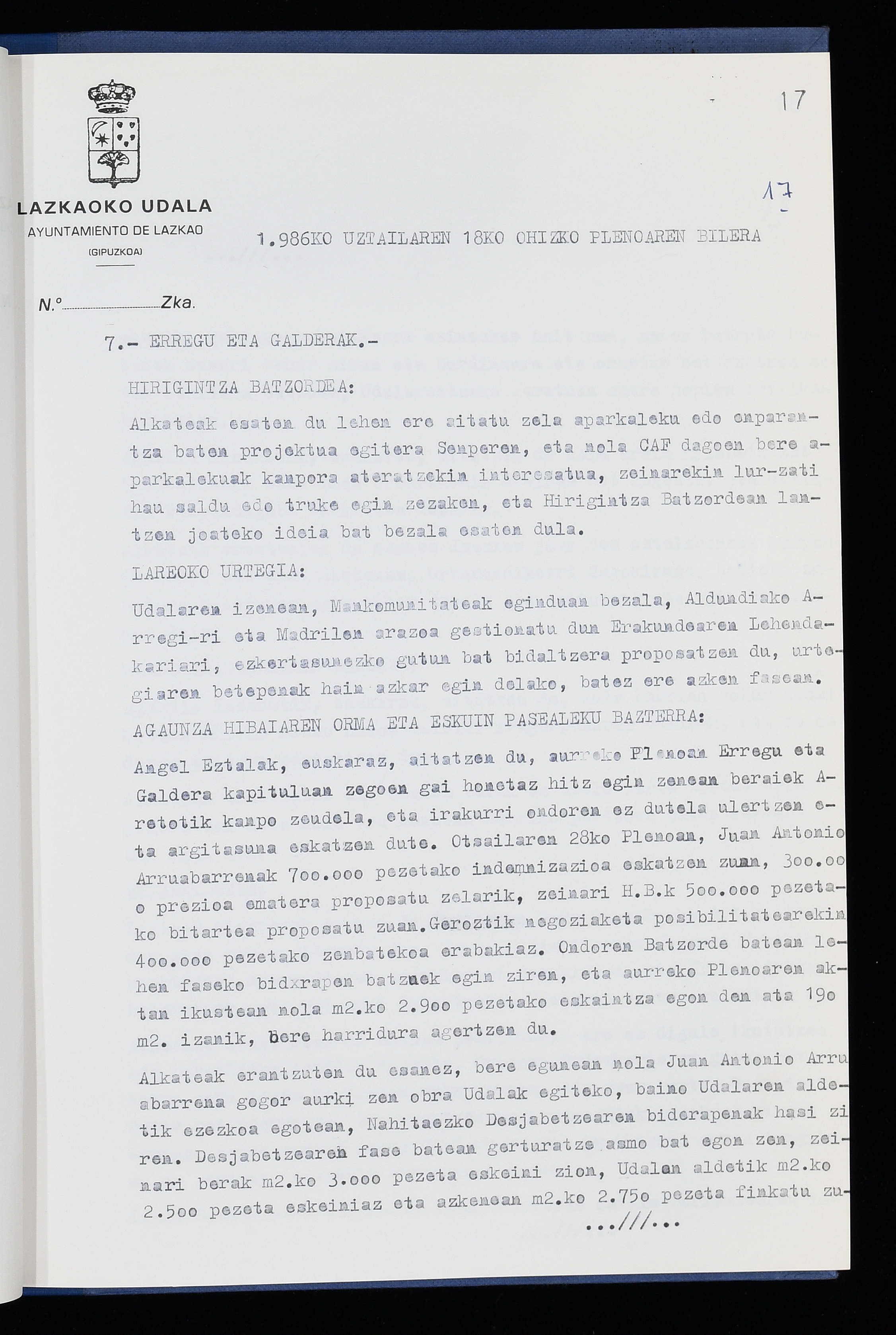 Log in to post commentsEdukiakSailkapenaFuntsaLazkaoko Udal ArtxiboaAtalakUdal AktakSailkapena1.1.4. Osoko Bilkuraren akta liburuakSailkapen berriaOsoko Bilkurako akta liburuakMultimediaIrudiakIdentifikazioaSignaturaakta liburua I-040Hasiera1986-07-18Amaiera1987-06-30AutoritateakTokiaLazkaoLog in to post commentsAkta eratu