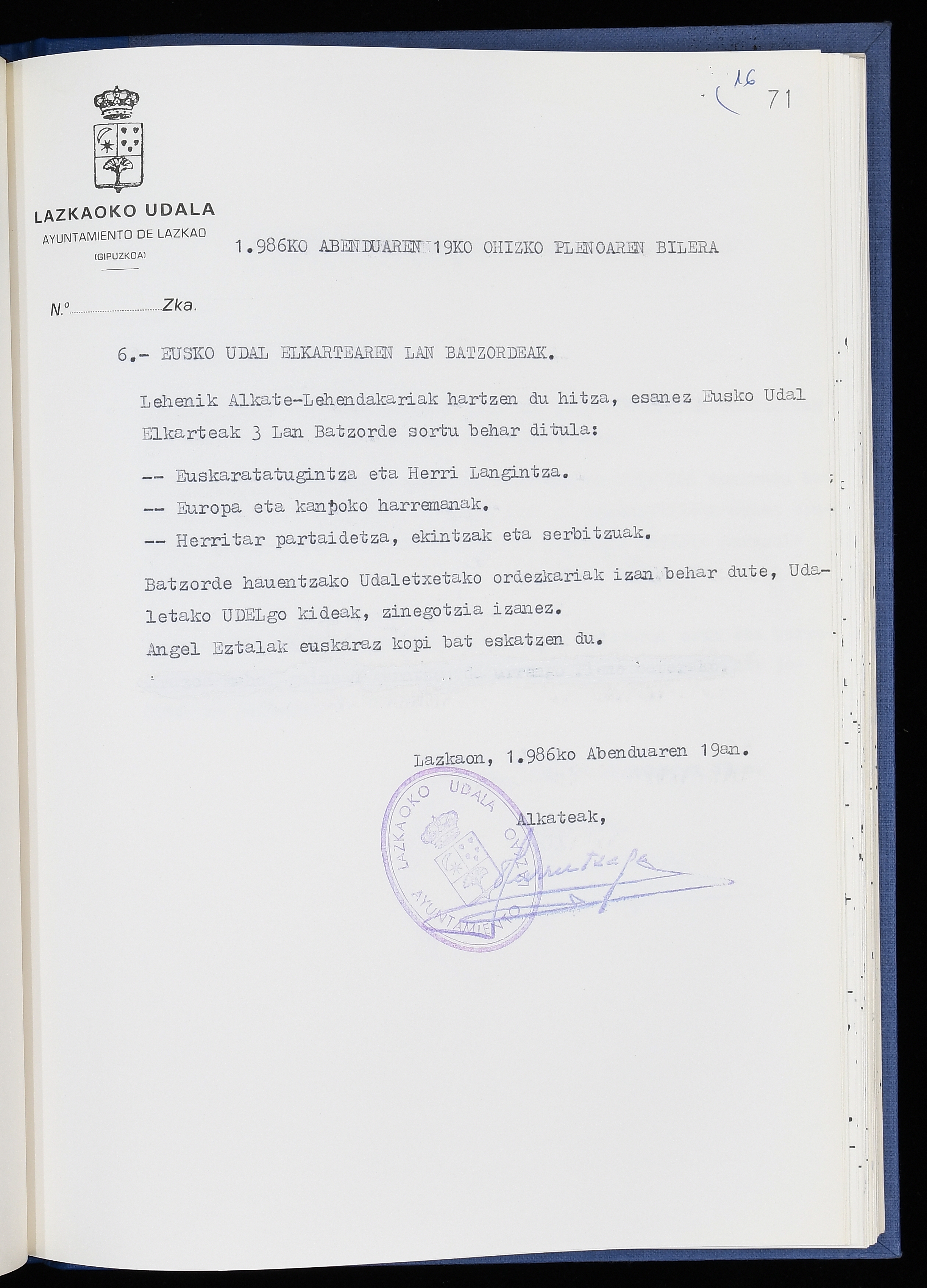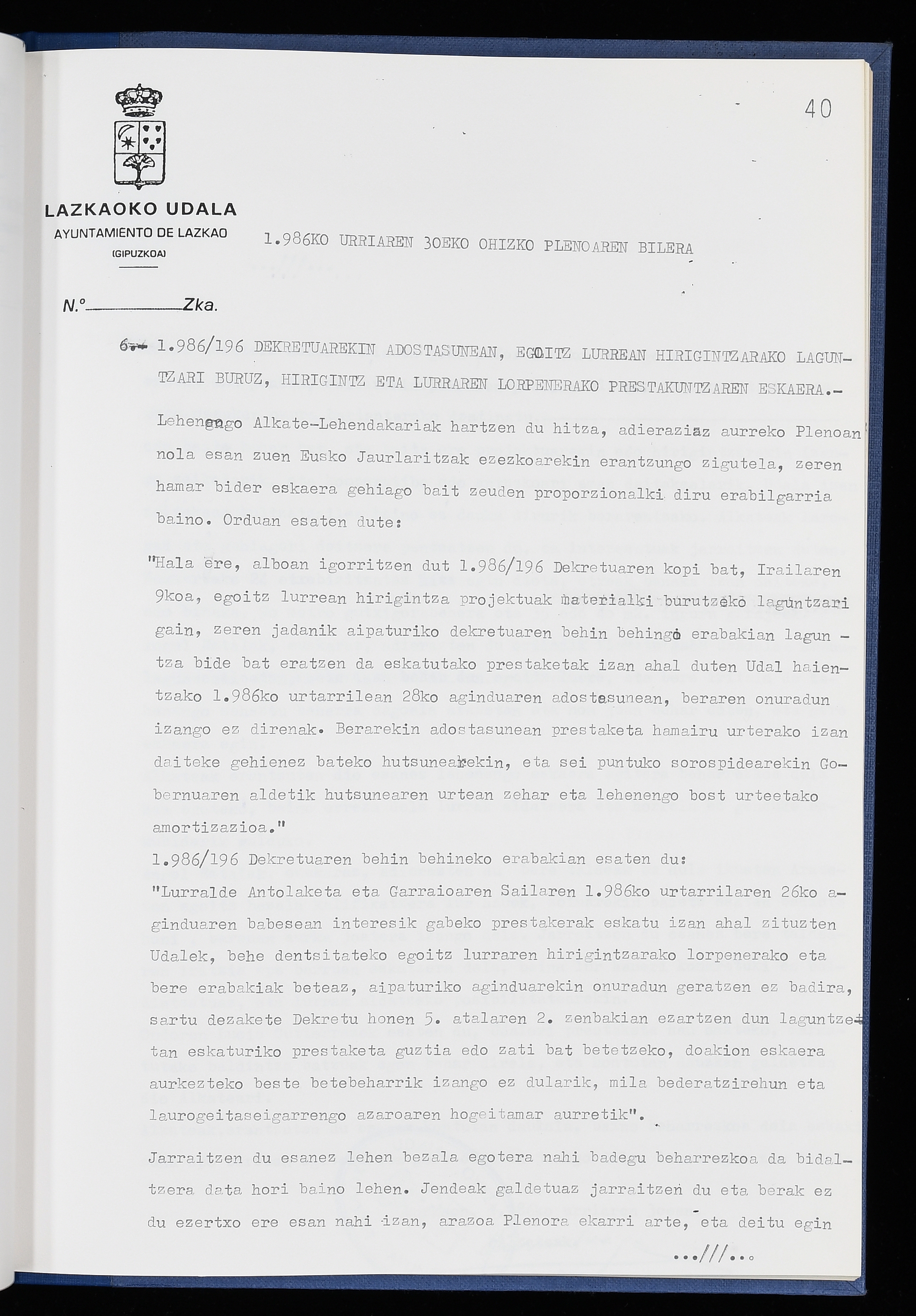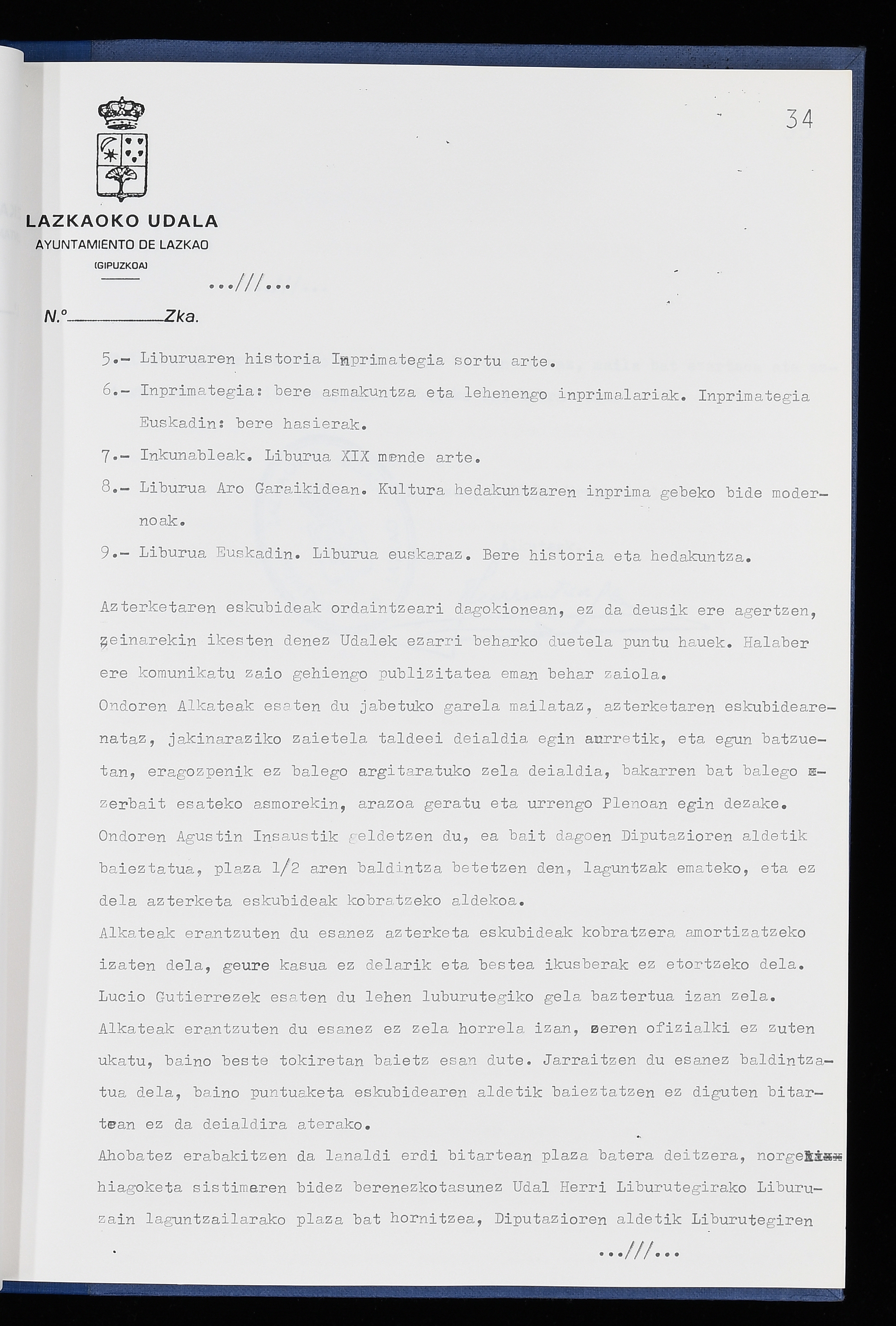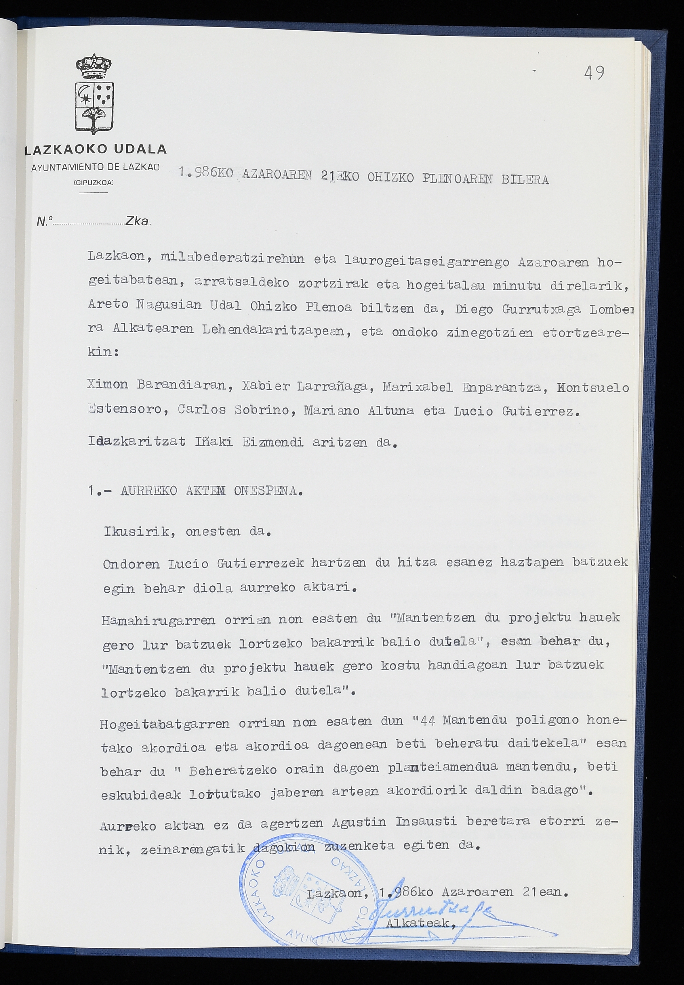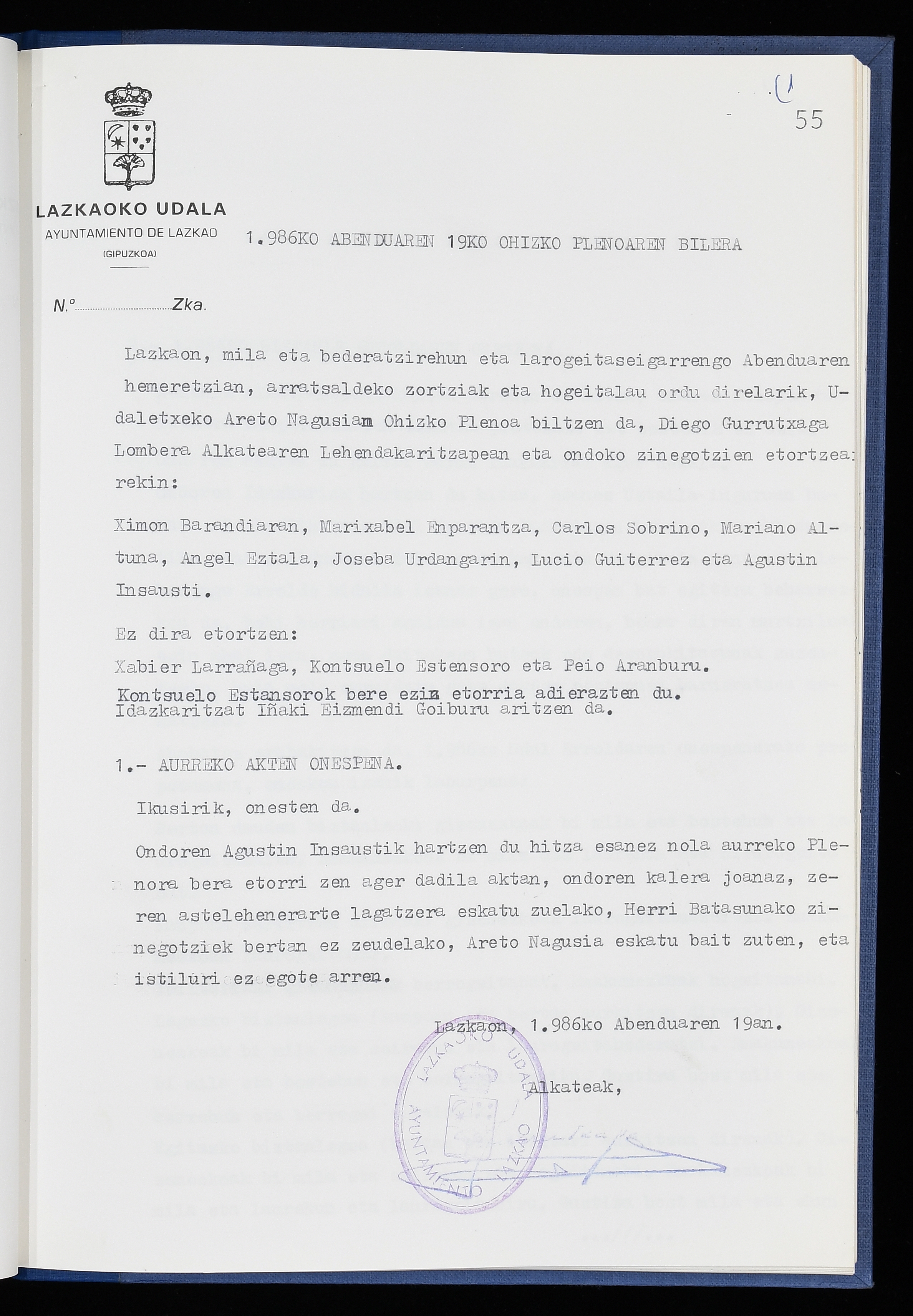 Log in to post commentsEdukiakSailkapenaFuntsaLazkaoko Udal ArtxiboaAtalakUdal AktakSailkapena1.1.4. Osoko Bilkuraren akta liburuakSailkapen berriaOsoko Bilkurako akta liburuakMultimediaIrudiakIdentifikazioaSignaturaakta liburua I-040Hasiera1986-07-18Amaiera1987-06-30AutoritateakTokiaLazkaoLog in to post commentsAkta eratu