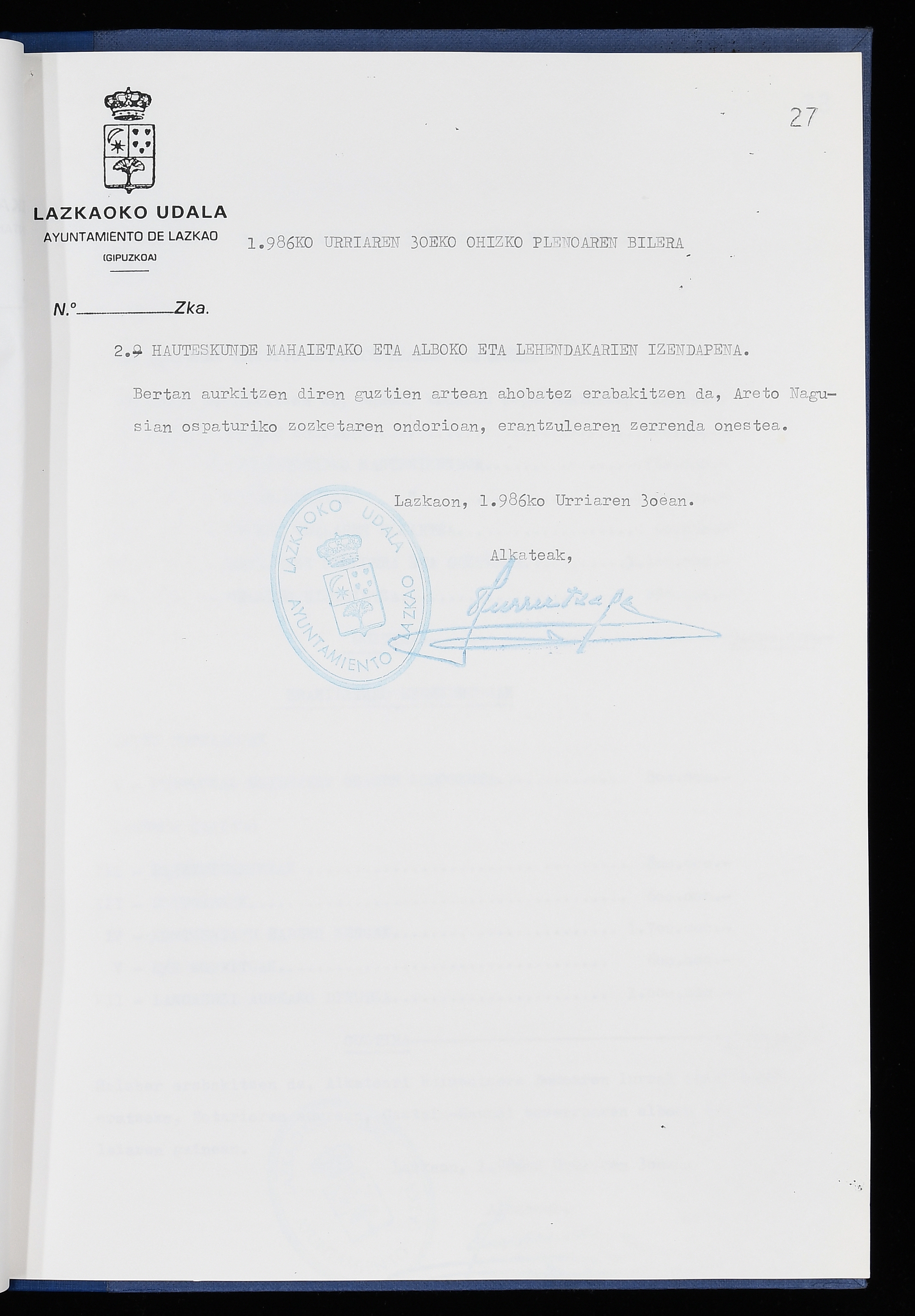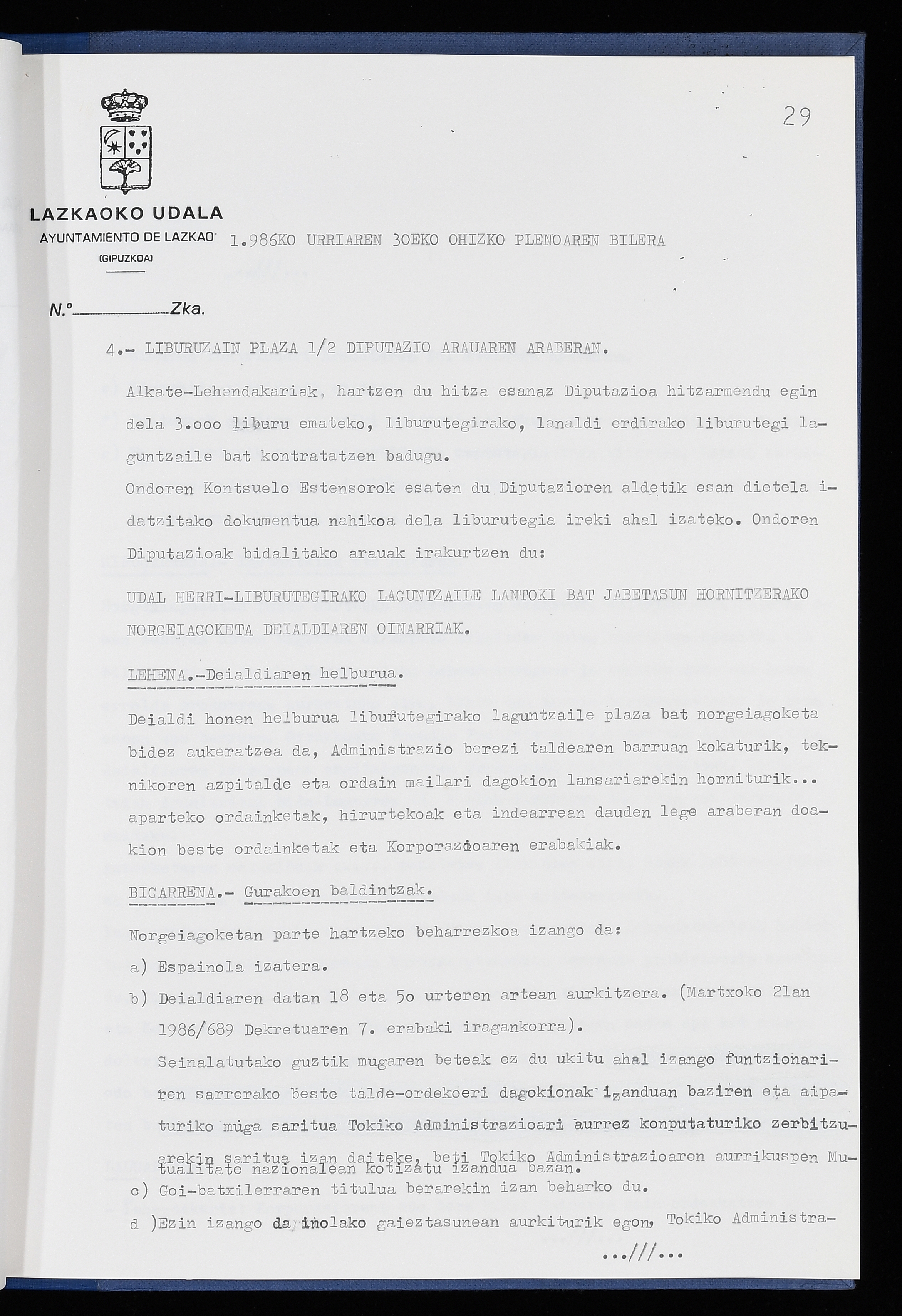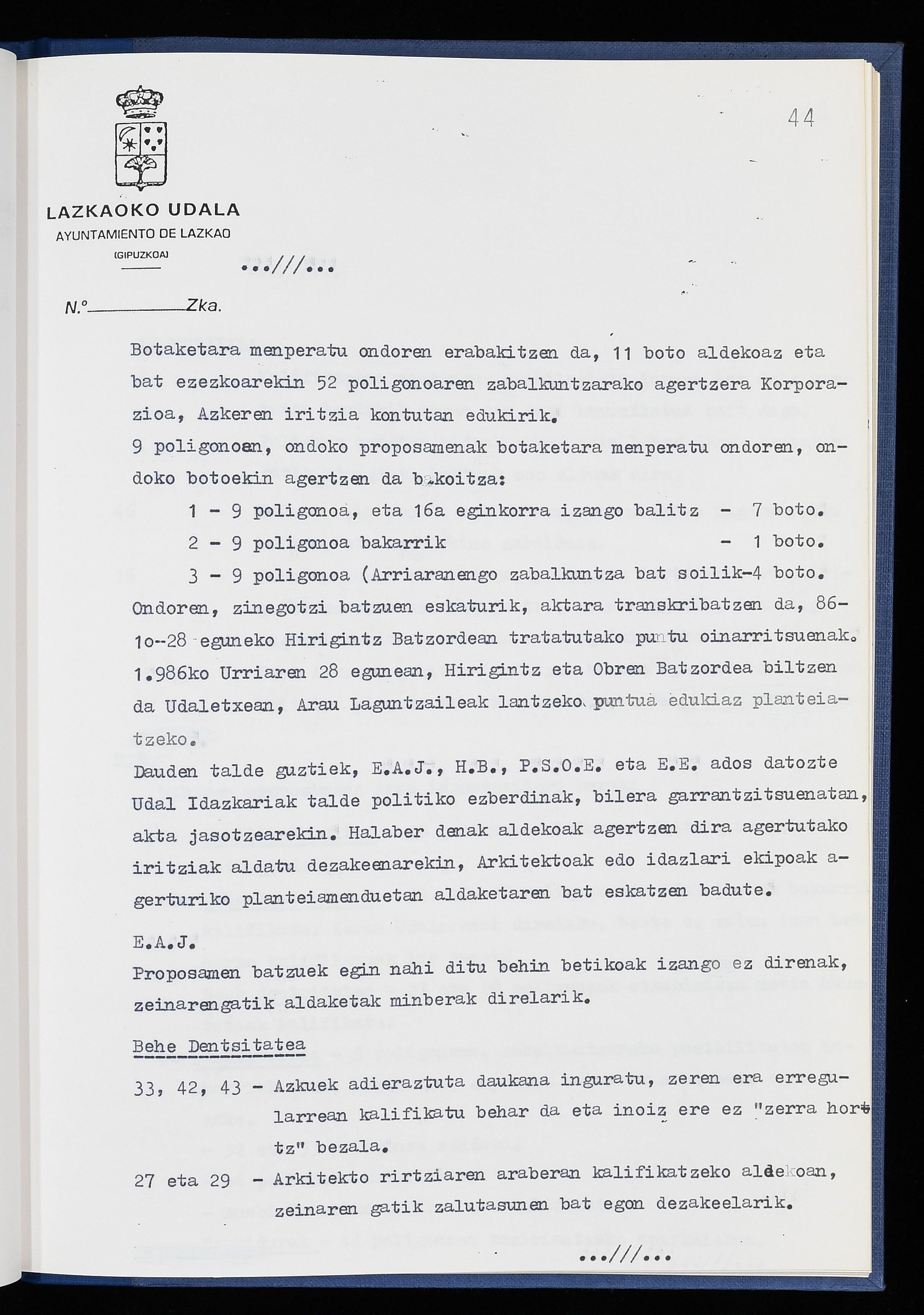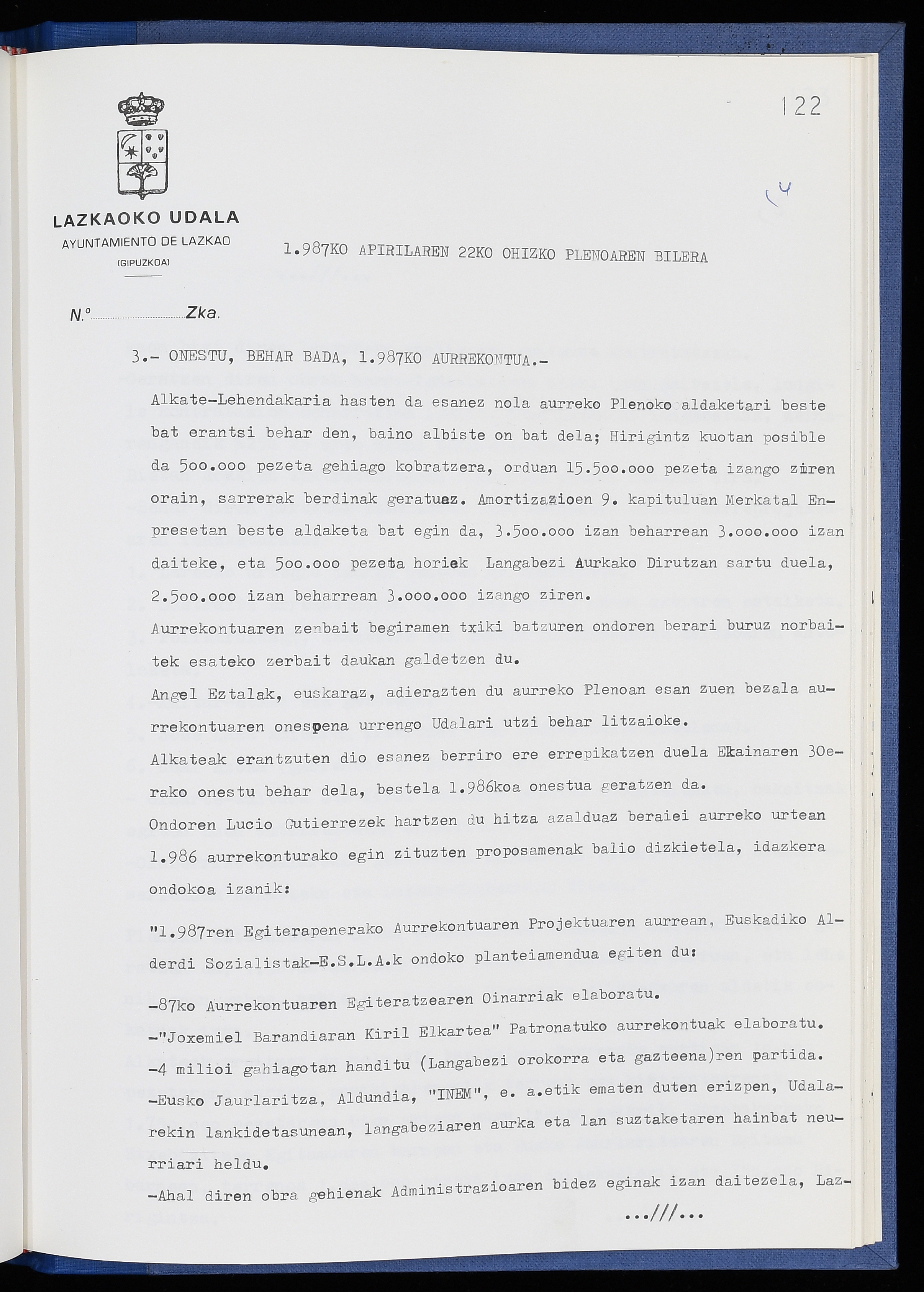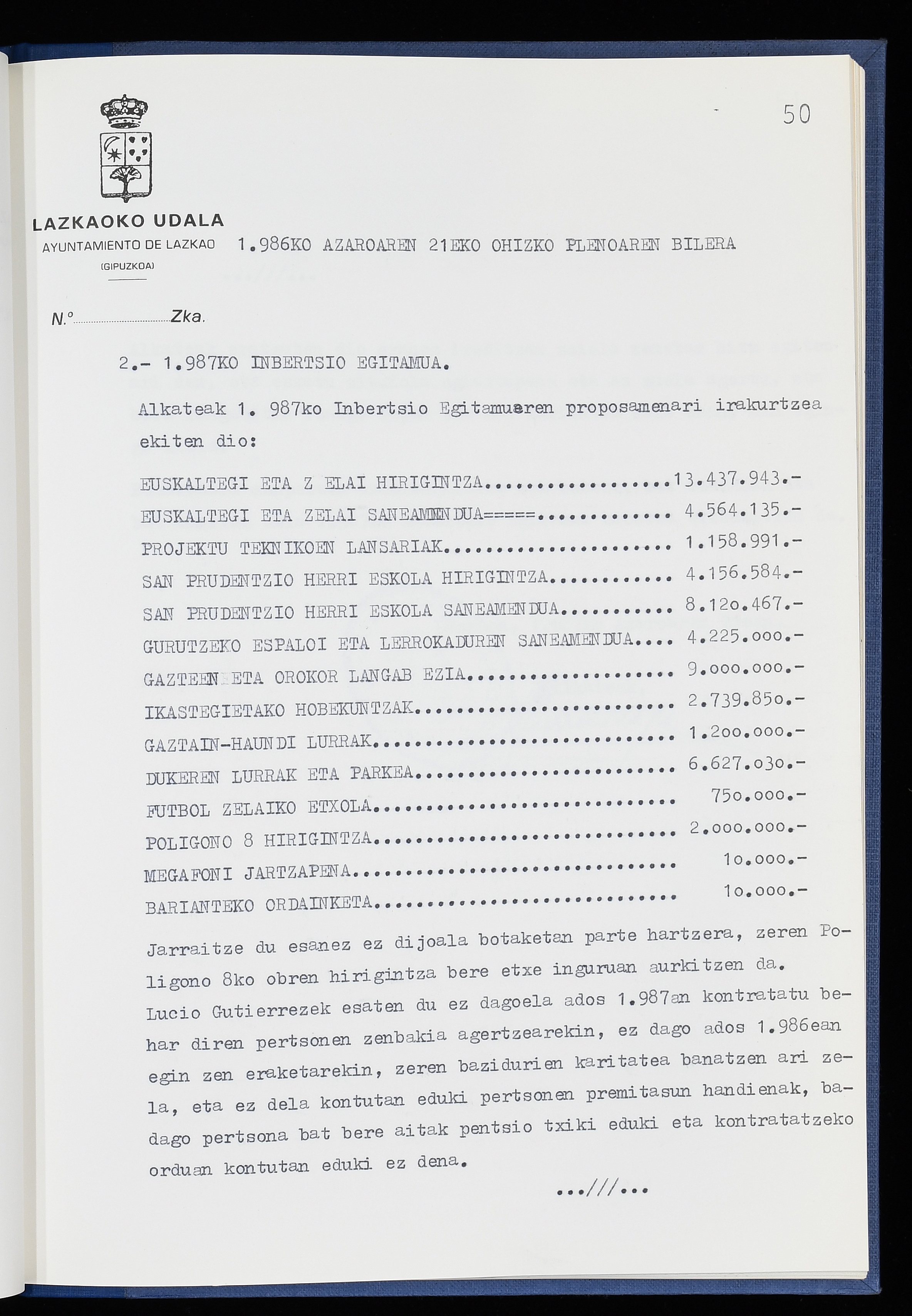 Log in to post commentsEdukiakSailkapenaFuntsaLazkaoko Udal ArtxiboaAtalakUdal AktakSailkapena1.1.4. Osoko Bilkuraren akta liburuakSailkapen berriaOsoko Bilkurako akta liburuakMultimediaIrudiakIdentifikazioaSignaturaakta liburua I-040Hasiera1986-07-18Amaiera1987-06-30AutoritateakTokiaLazkaoLog in to post commentsAkta eratu