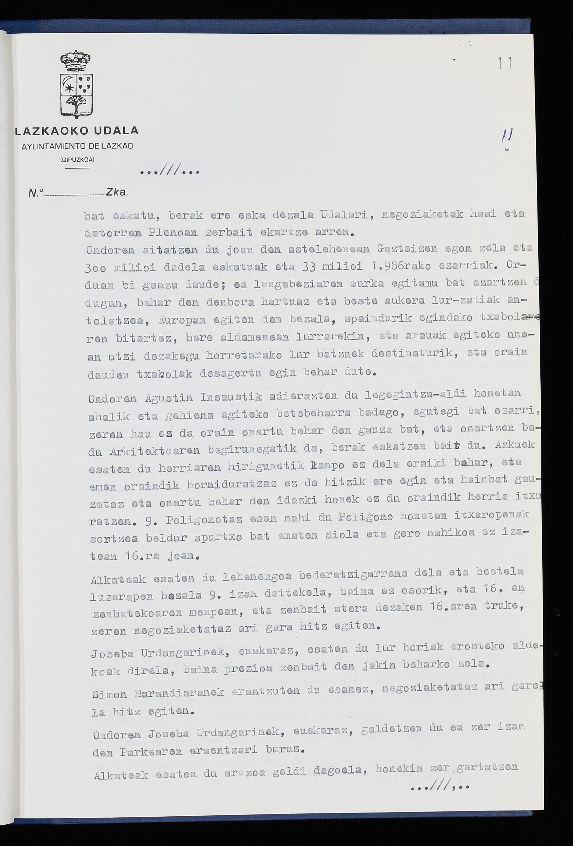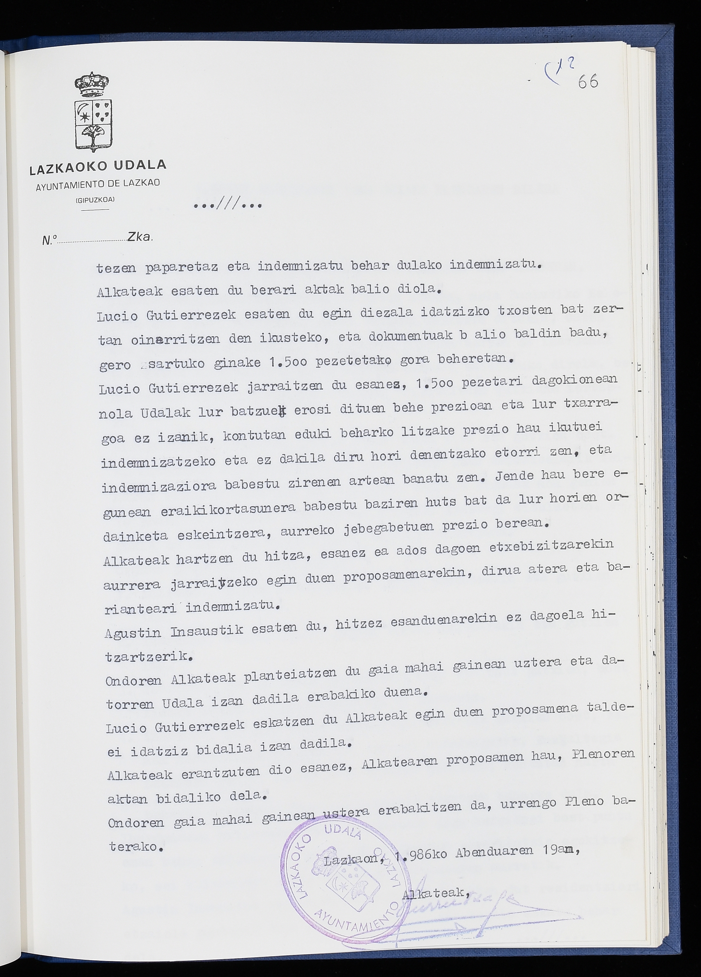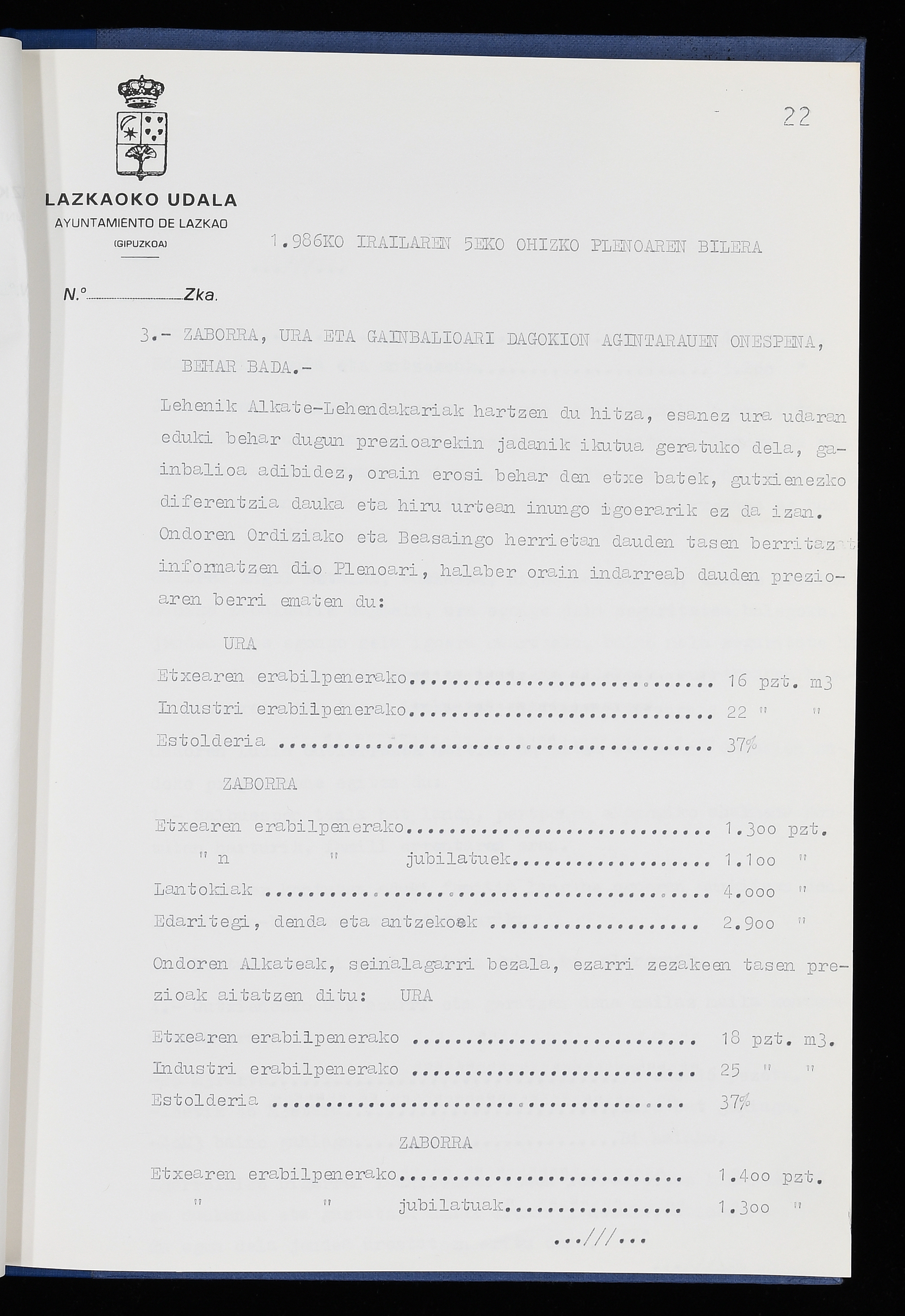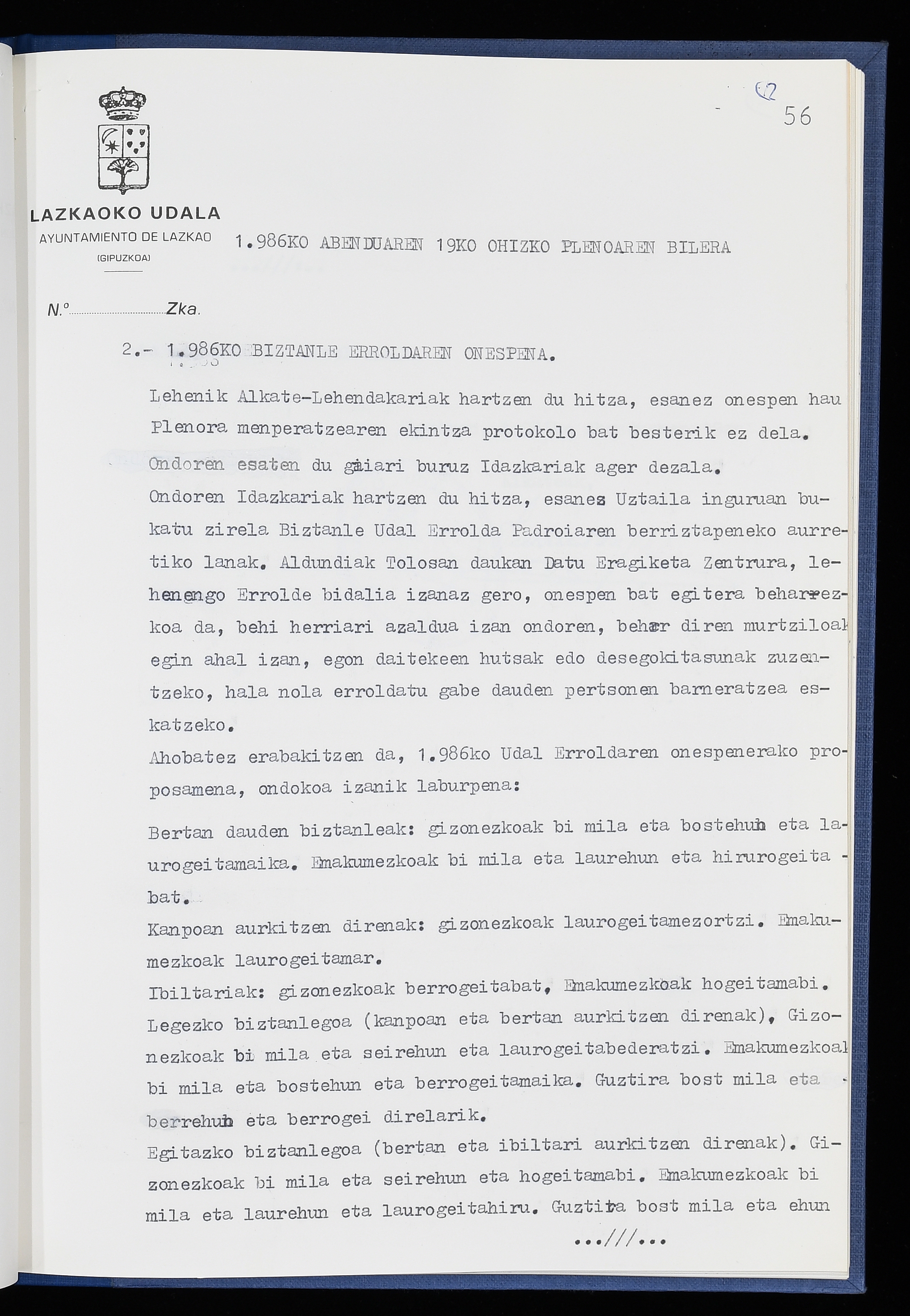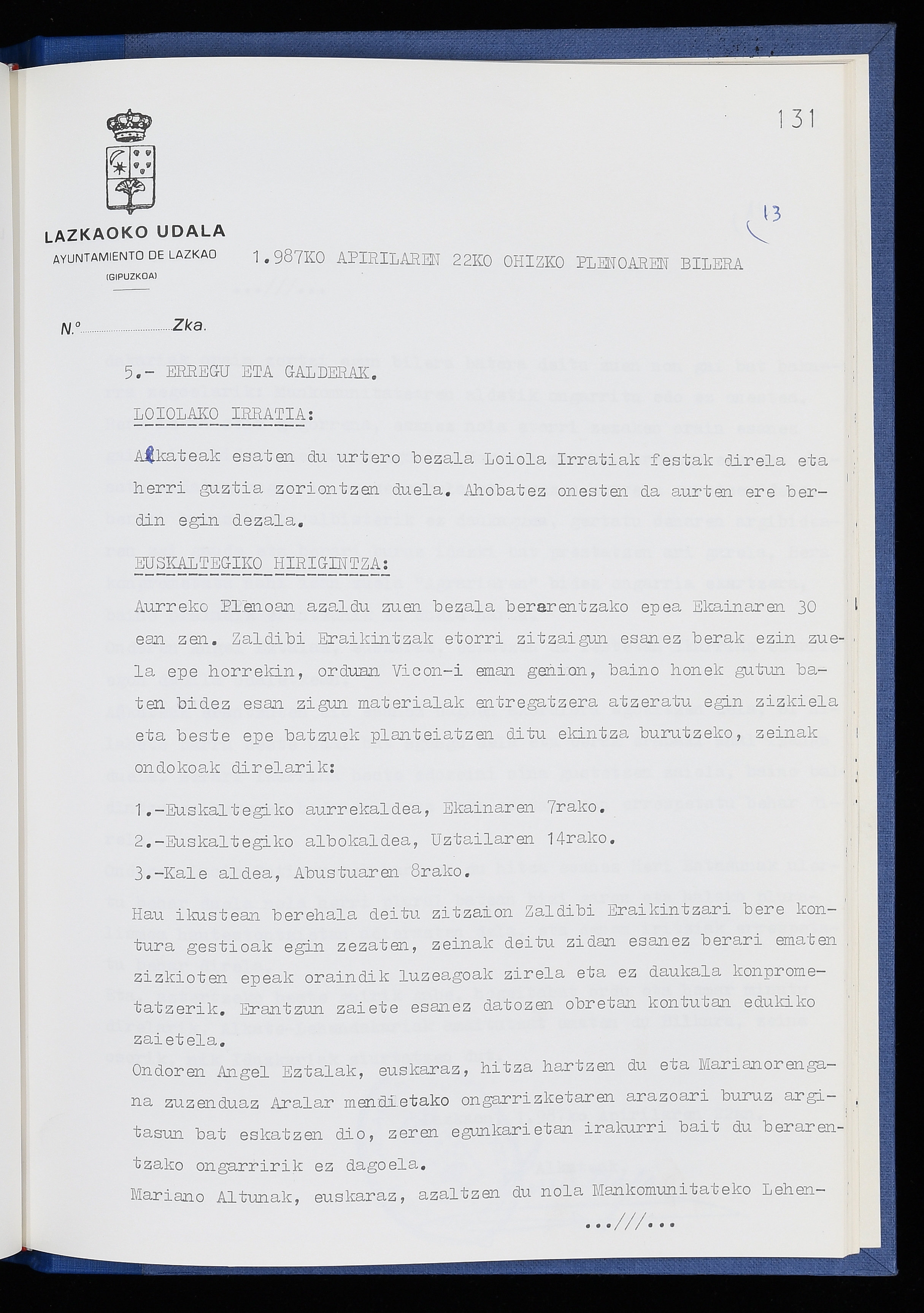 Log in to post commentsEdukiakSailkapenaFuntsaLazkaoko Udal ArtxiboaAtalakUdal AktakSailkapena1.1.4. Osoko Bilkuraren akta liburuakSailkapen berriaOsoko Bilkurako akta liburuakMultimediaIrudiakIdentifikazioaSignaturaakta liburua I-040Hasiera1986-07-18Amaiera1987-06-30AutoritateakTokiaLazkaoLog in to post commentsAkta eratu