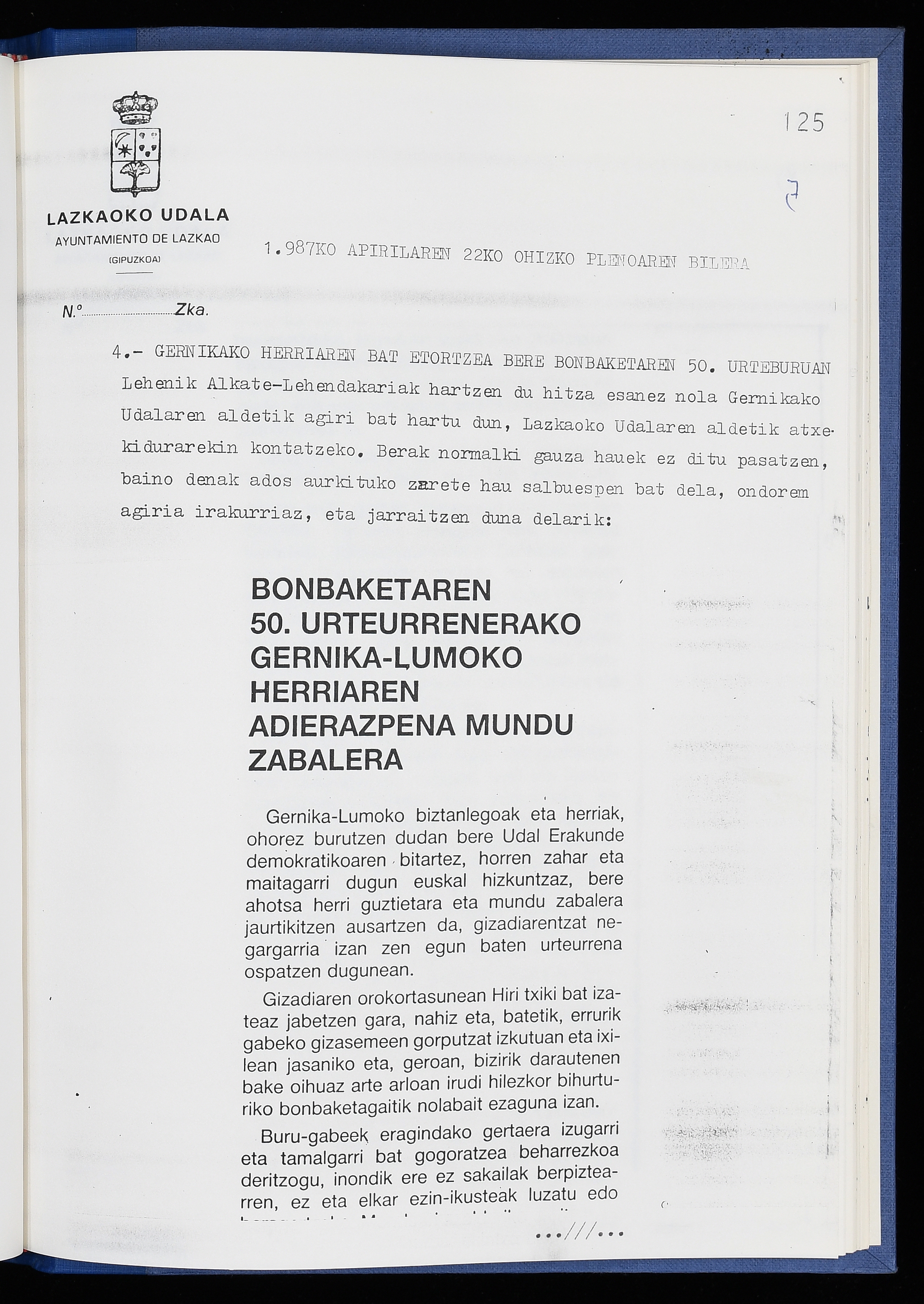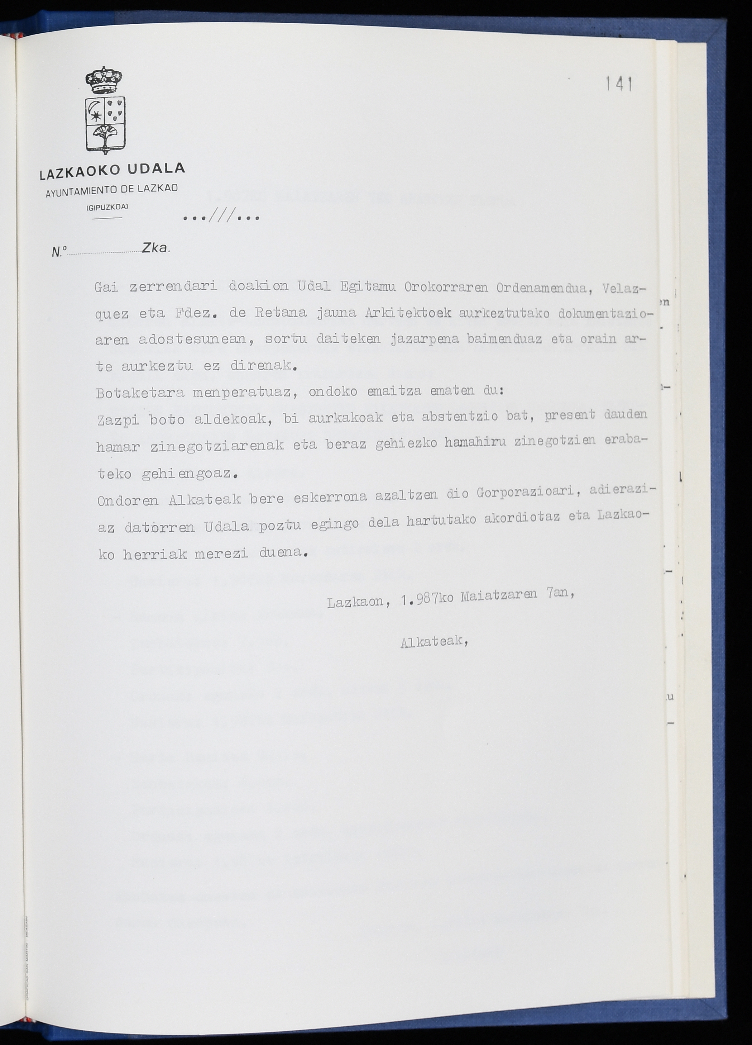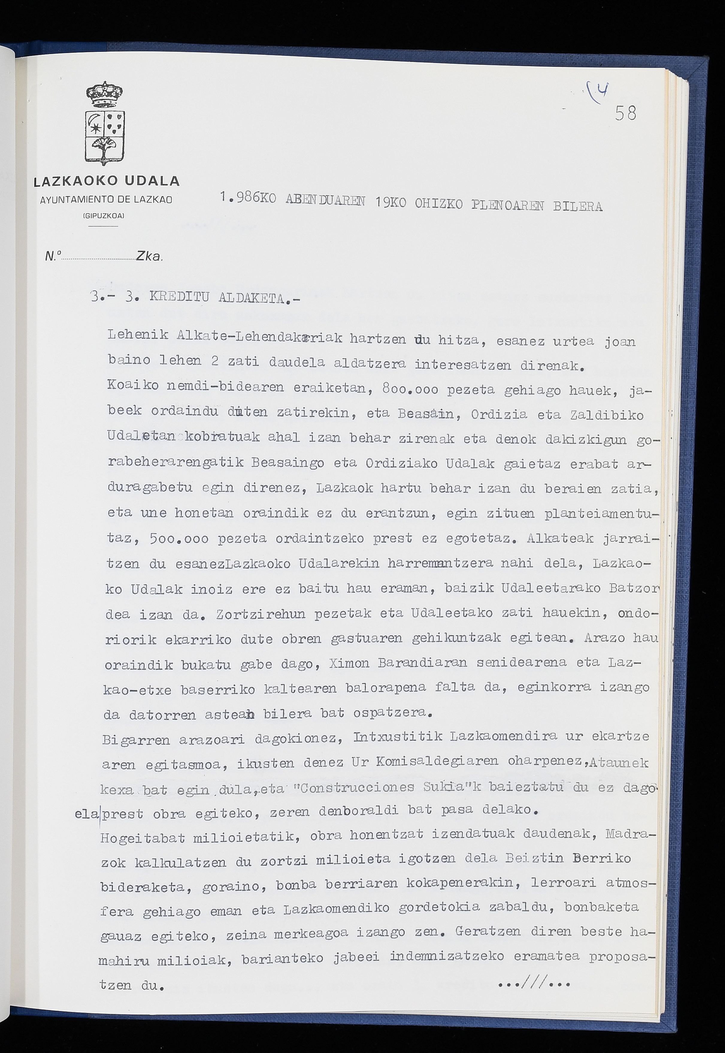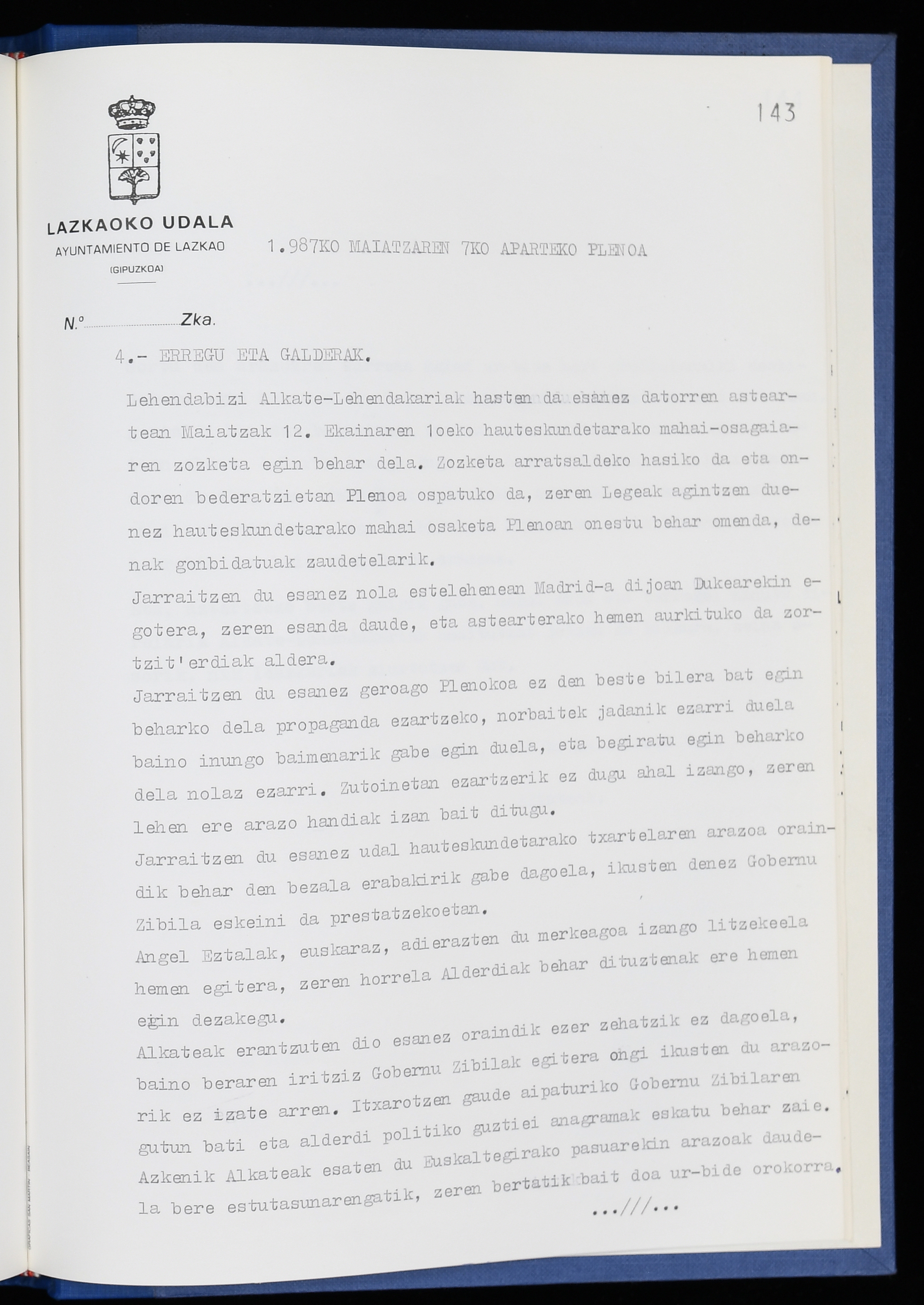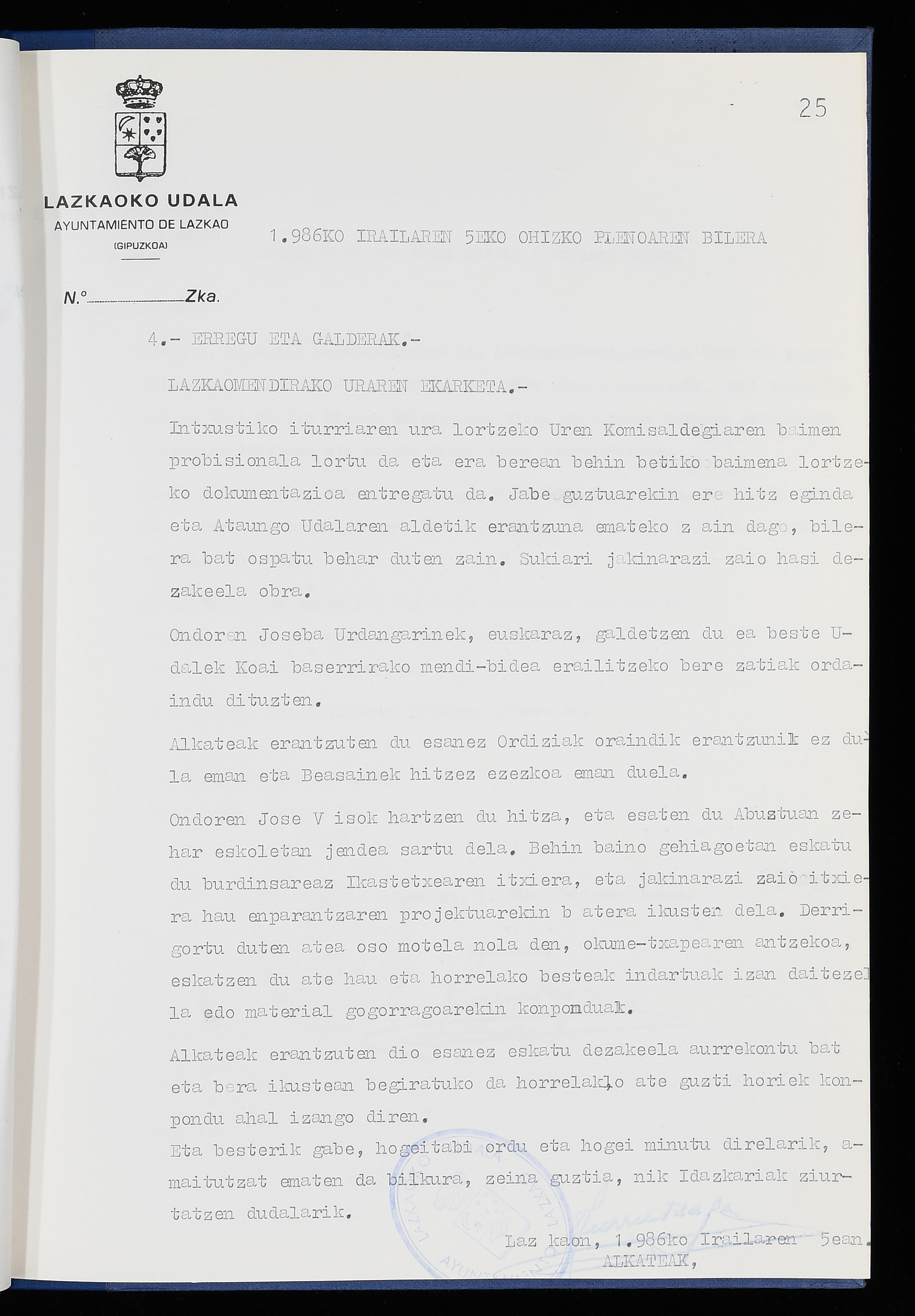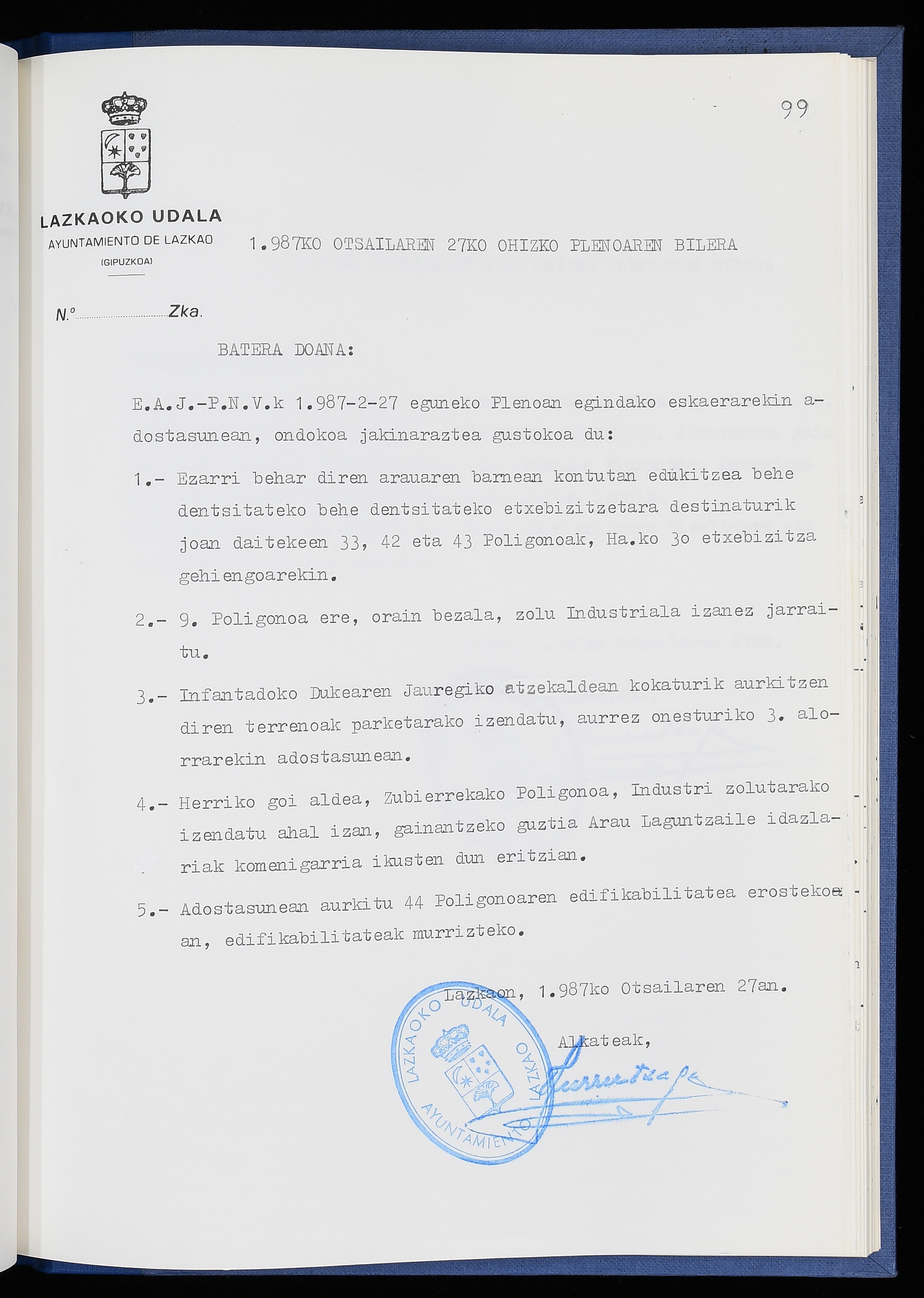 Log in to post commentsEdukiakSailkapenaFuntsaLazkaoko Udal ArtxiboaAtalakUdal AktakSailkapena1.1.4. Osoko Bilkuraren akta liburuakSailkapen berriaOsoko Bilkurako akta liburuakMultimediaIrudiakIdentifikazioaSignaturaakta liburua I-040Hasiera1986-07-18Amaiera1987-06-30AutoritateakTokiaLazkaoLog in to post commentsAkta eratu