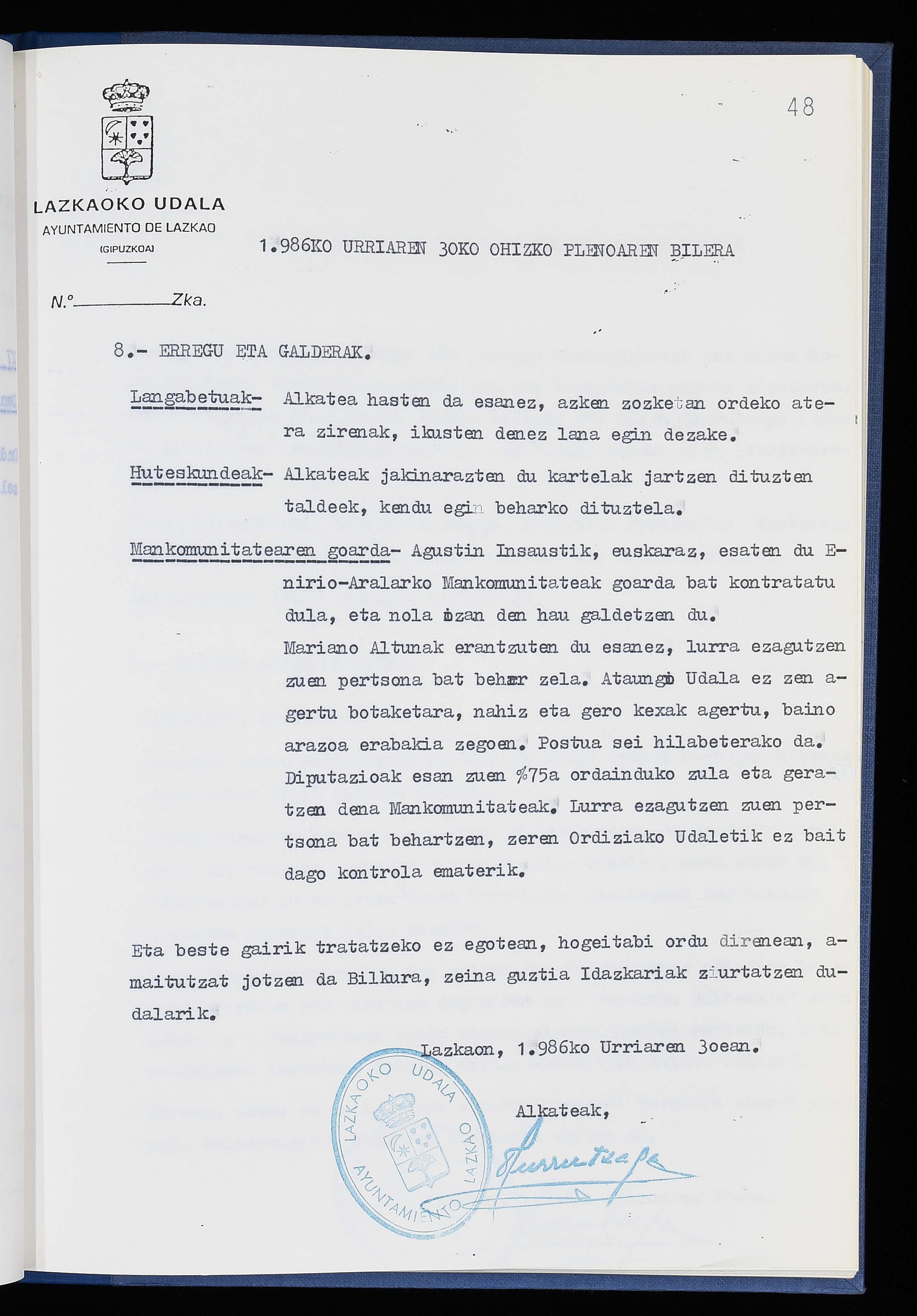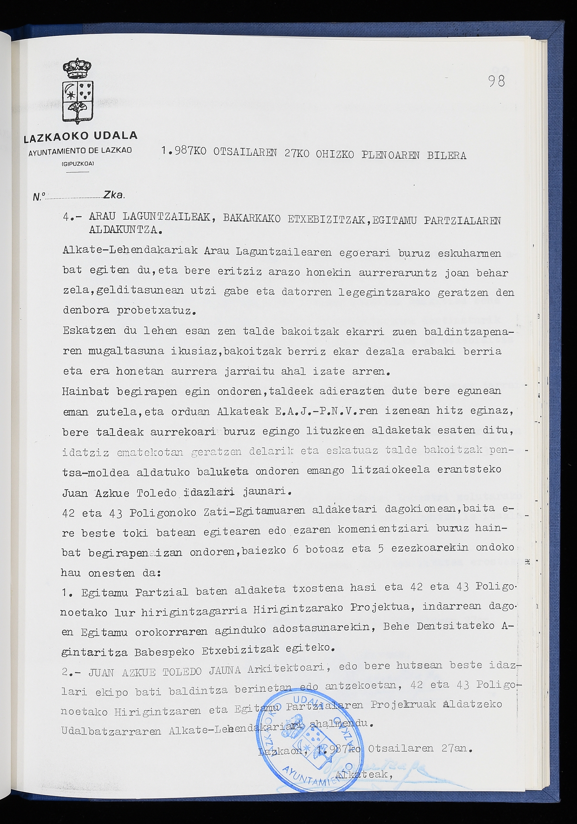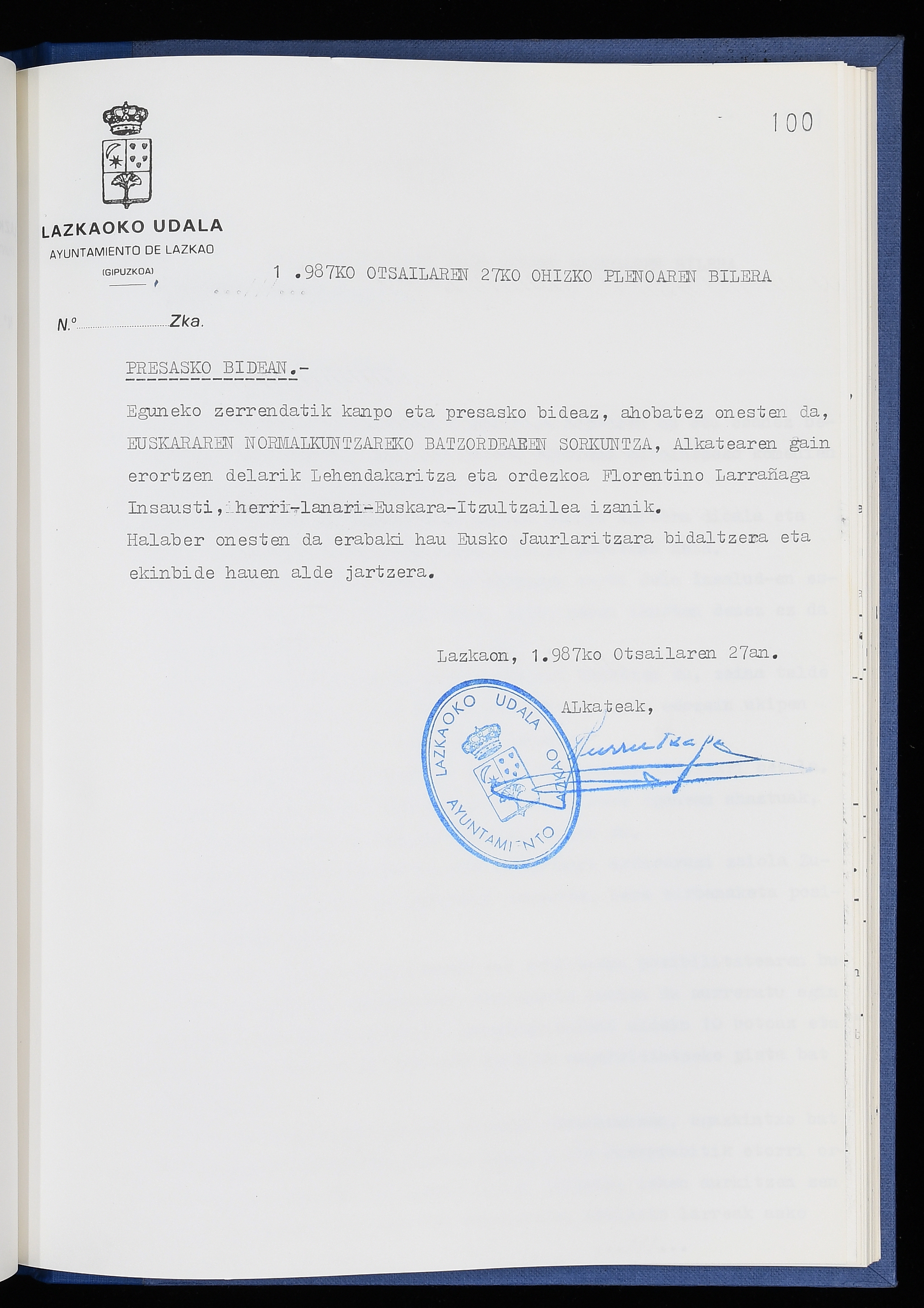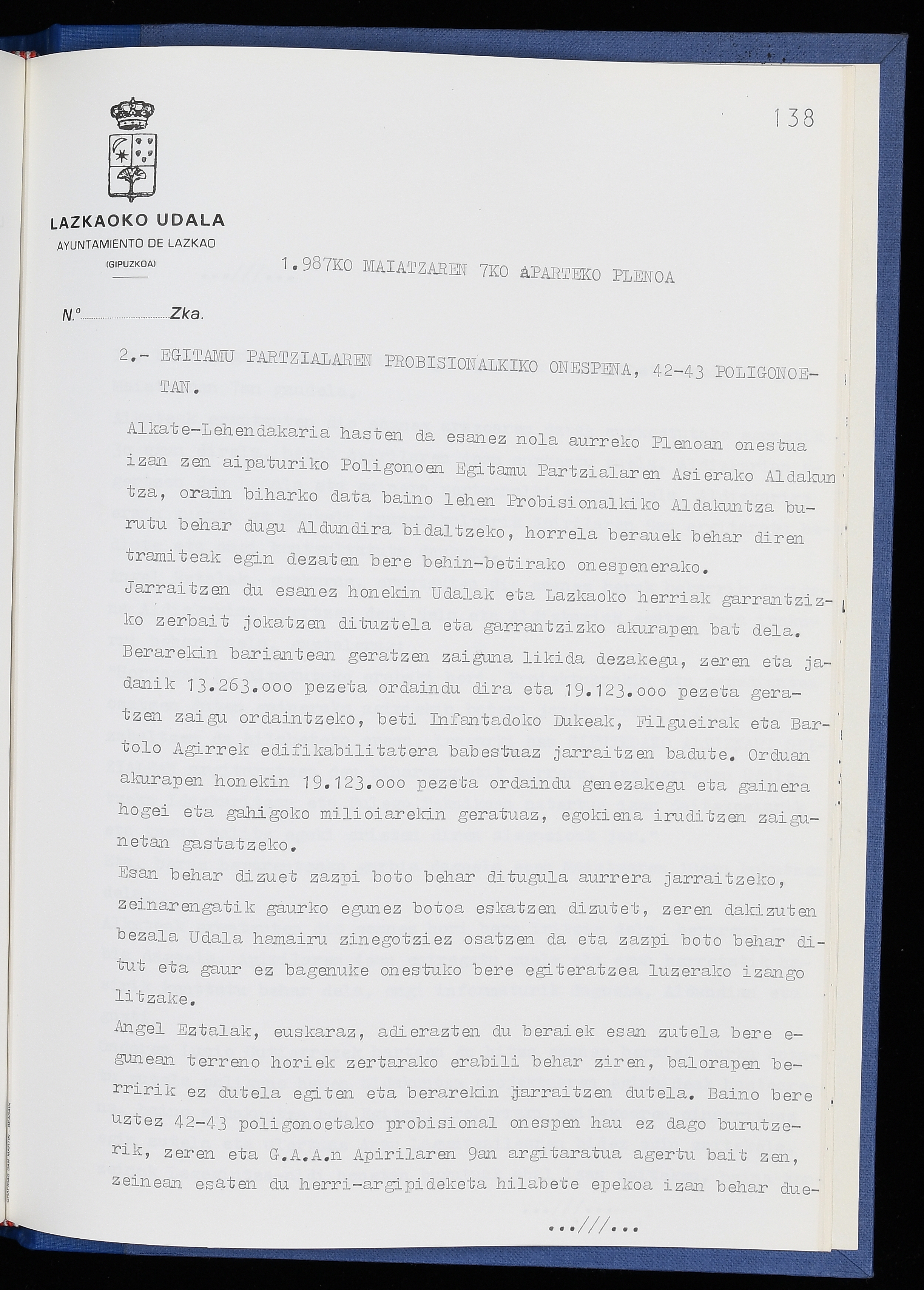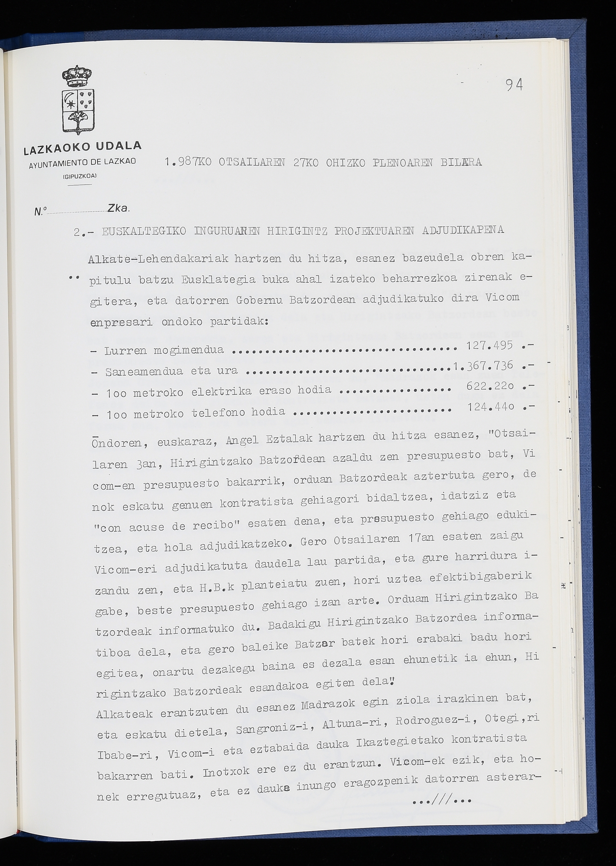 Log in to post commentsEdukiakSailkapenaFuntsaLazkaoko Udal ArtxiboaAtalakUdal AktakSailkapena1.1.4. Osoko Bilkuraren akta liburuakSailkapen berriaOsoko Bilkurako akta liburuakMultimediaIrudiakIdentifikazioaSignaturaakta liburua I-040Hasiera1986-07-18Amaiera1987-06-30AutoritateakTokiaLazkaoLog in to post commentsAkta eratu