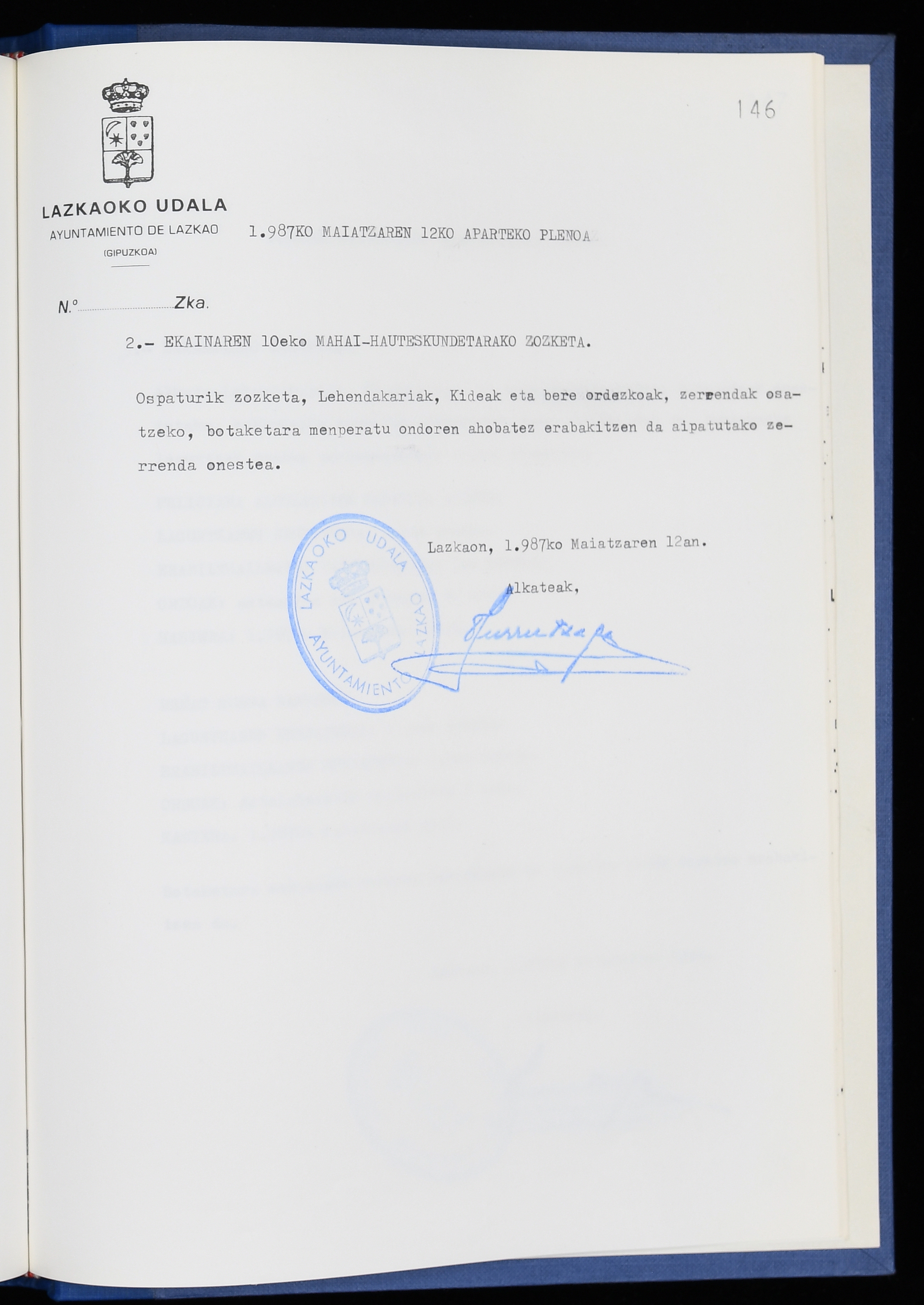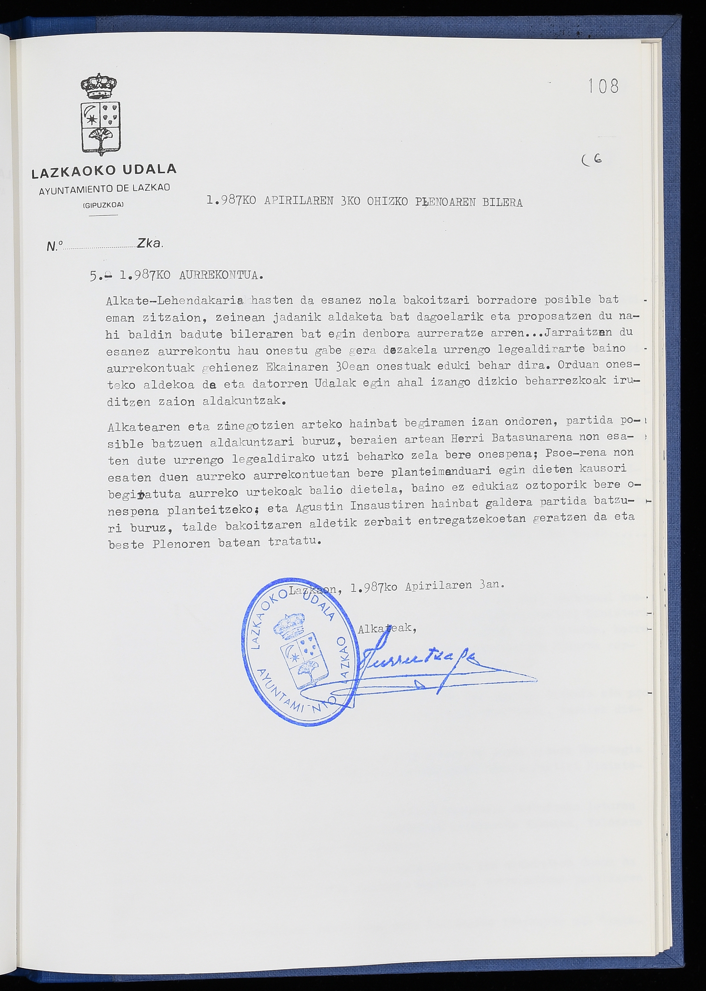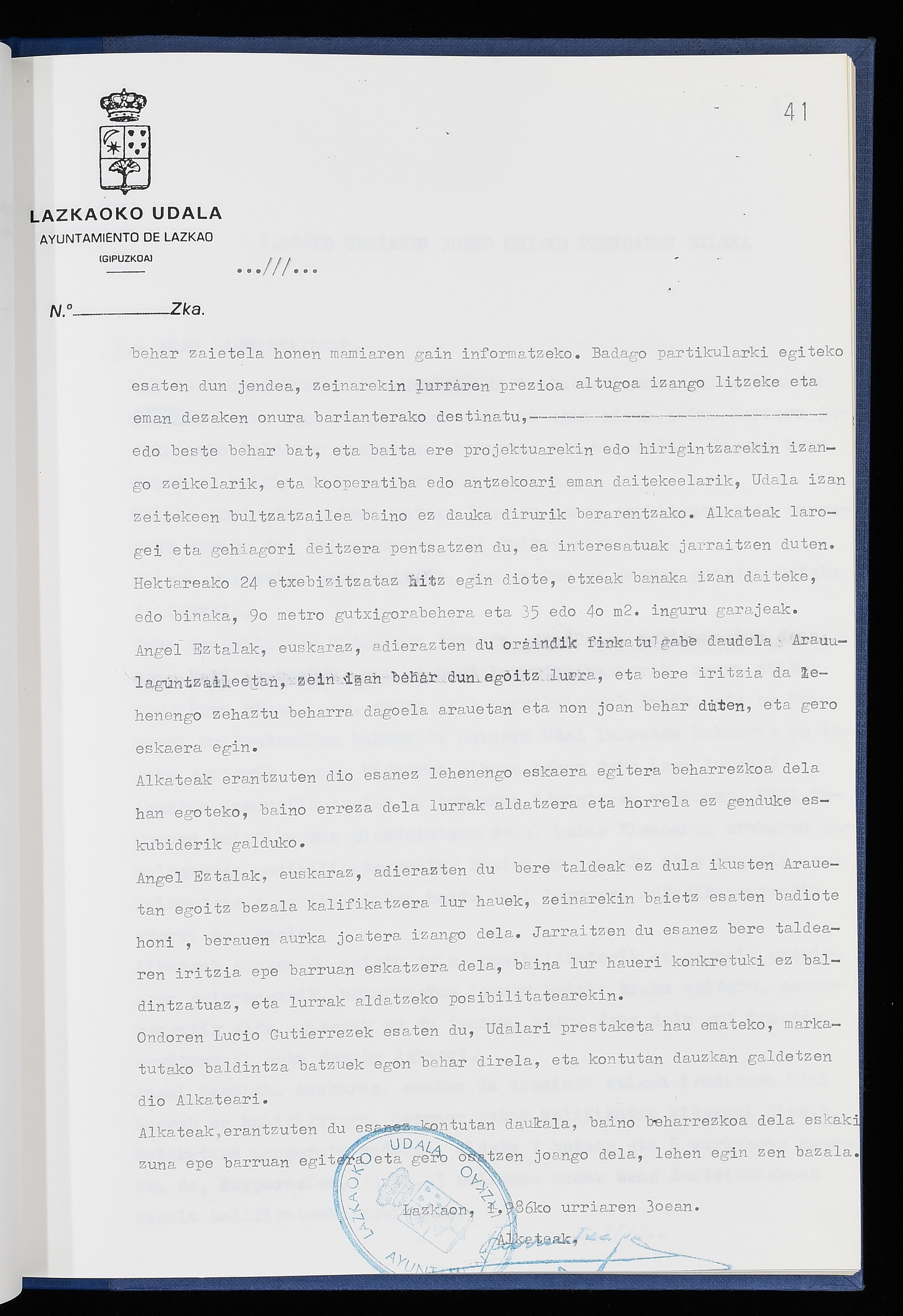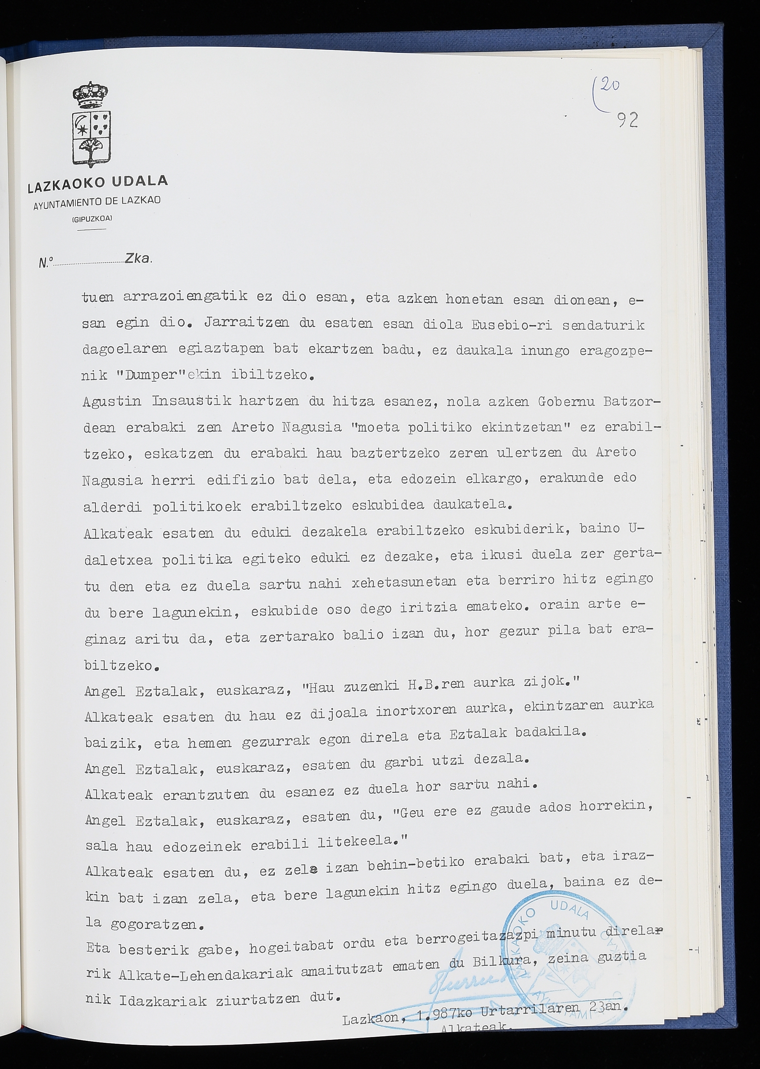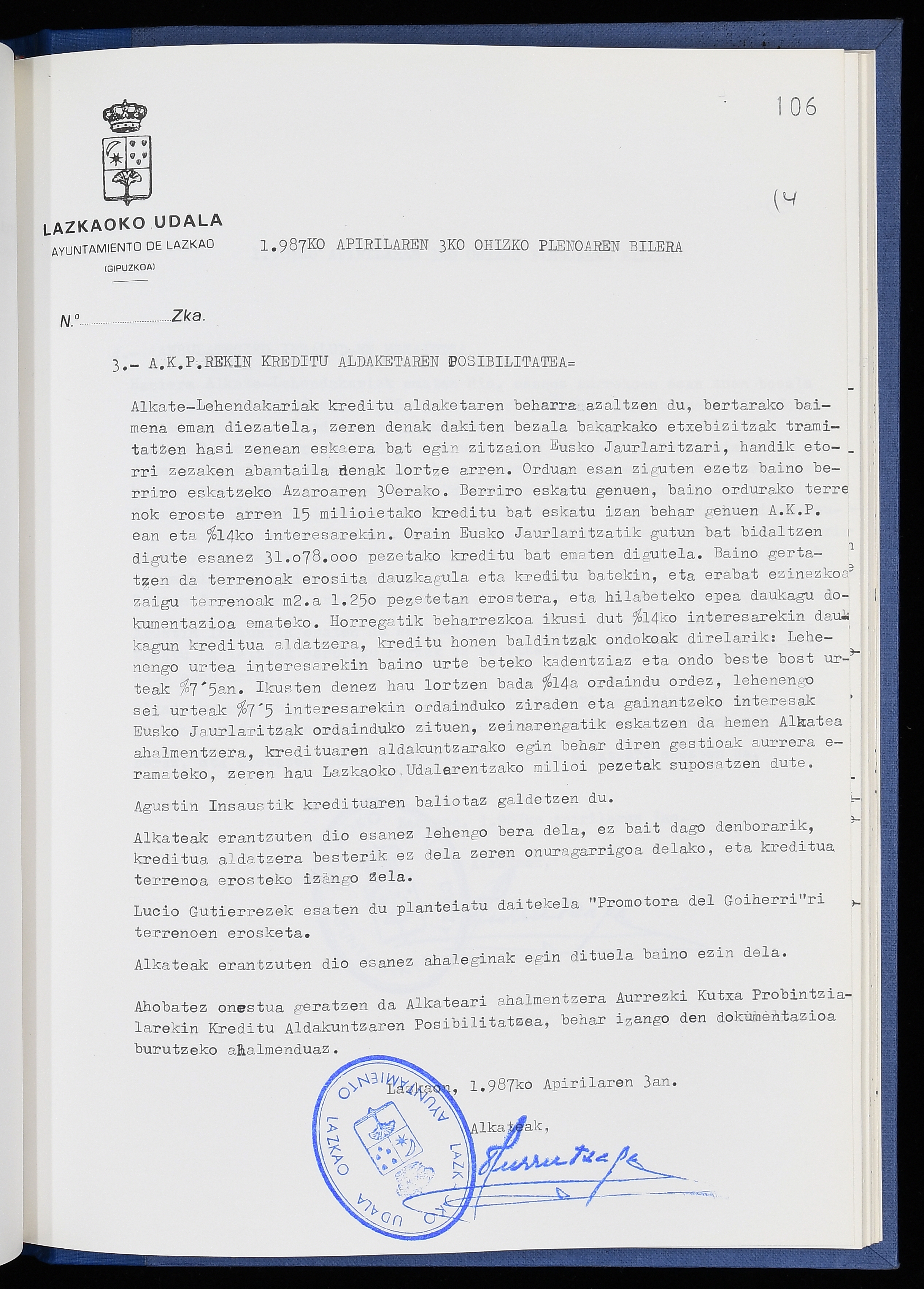 Log in to post commentsEdukiakSailkapenaFuntsaLazkaoko Udal ArtxiboaAtalakUdal AktakSailkapena1.1.4. Osoko Bilkuraren akta liburuakSailkapen berriaOsoko Bilkurako akta liburuakMultimediaIrudiakIdentifikazioaSignaturaakta liburua I-040Hasiera1986-07-18Amaiera1987-06-30AutoritateakTokiaLazkaoLog in to post commentsAkta eratu