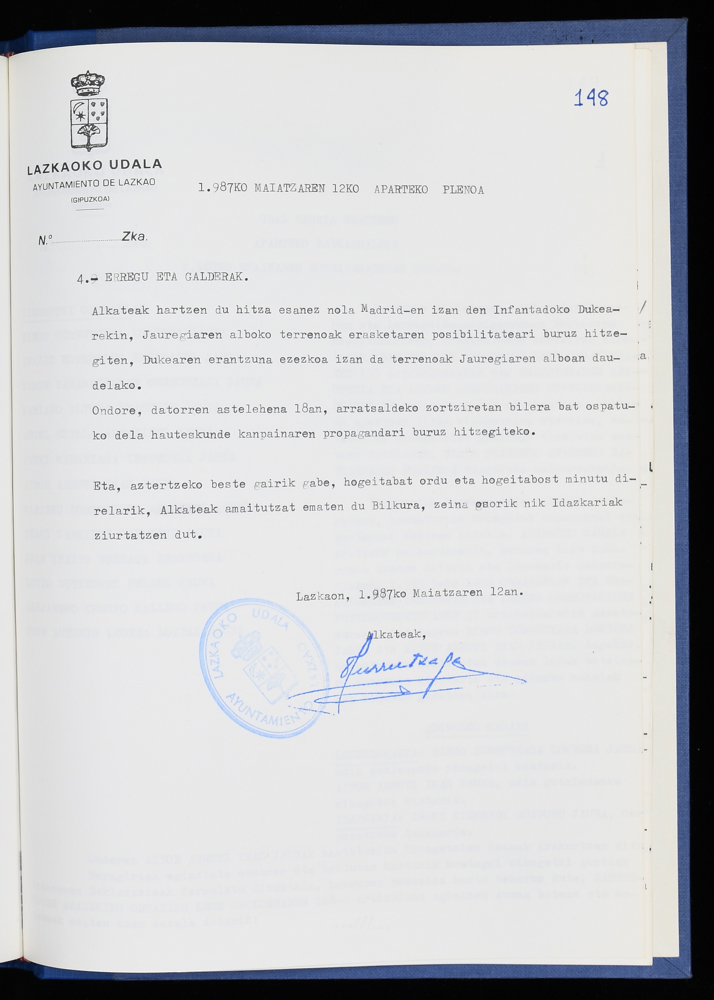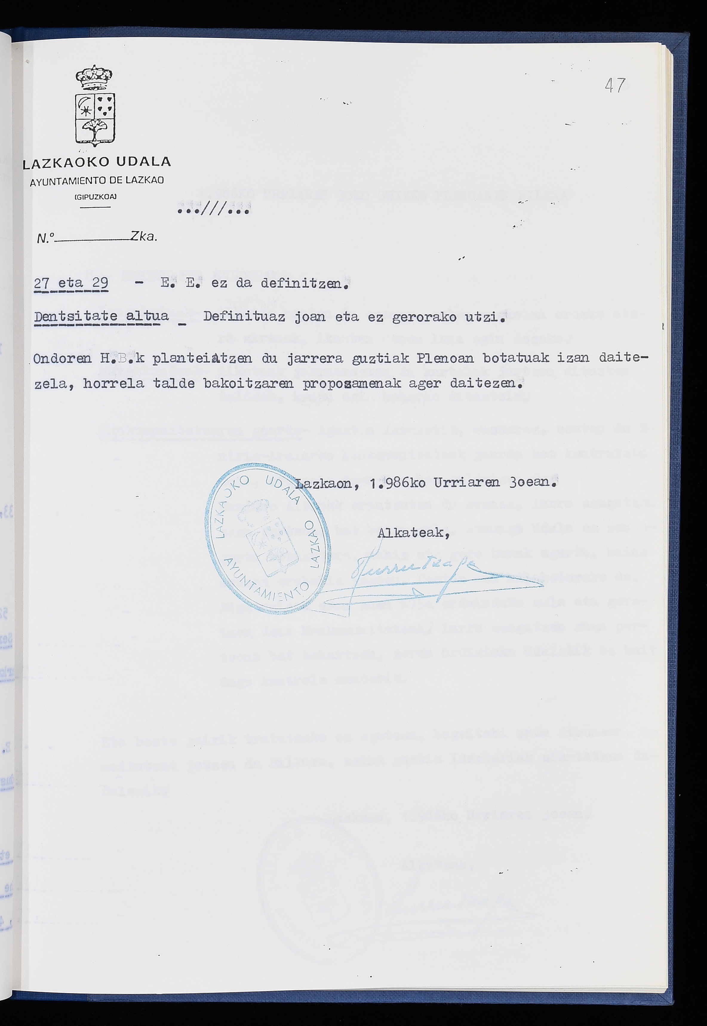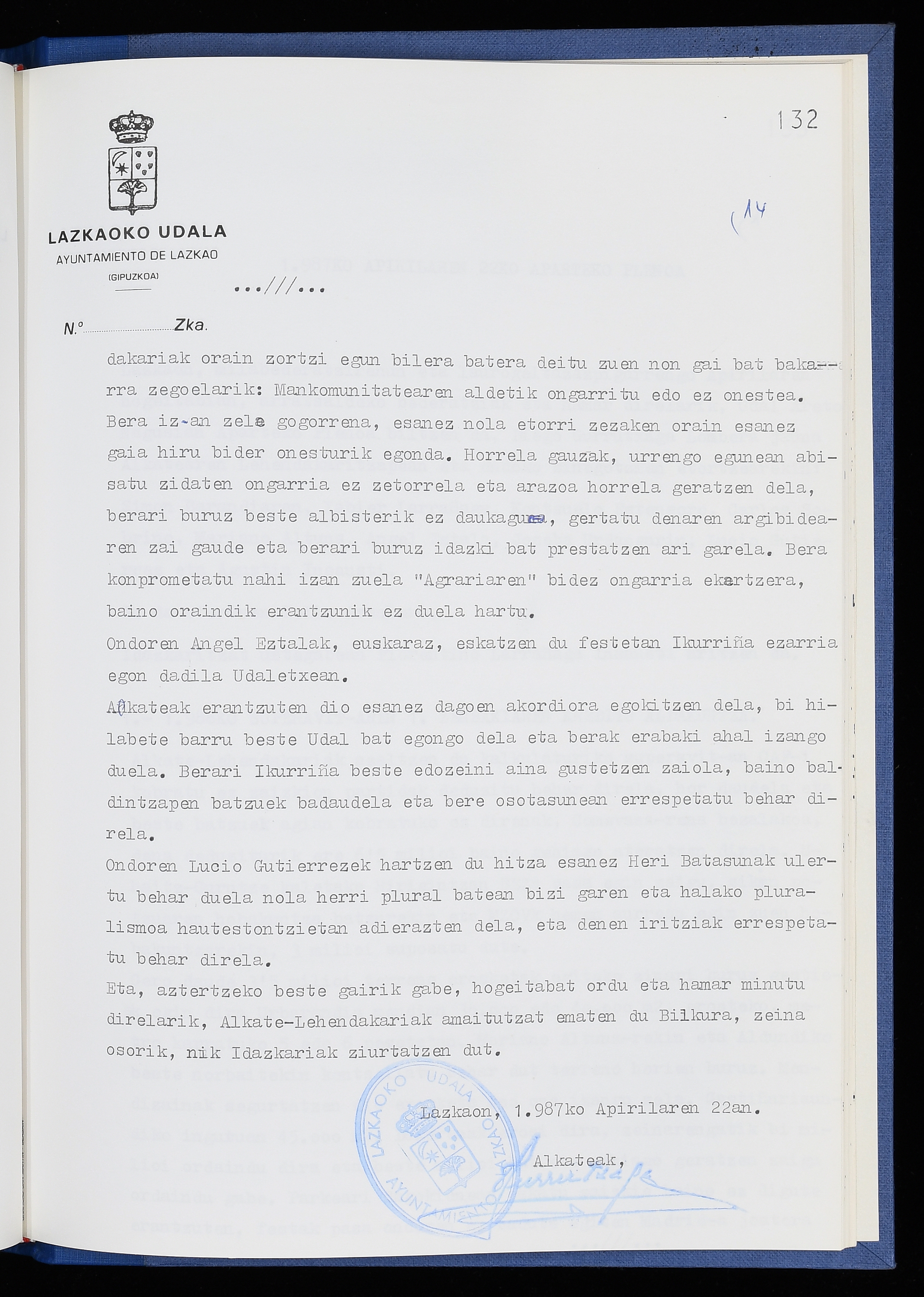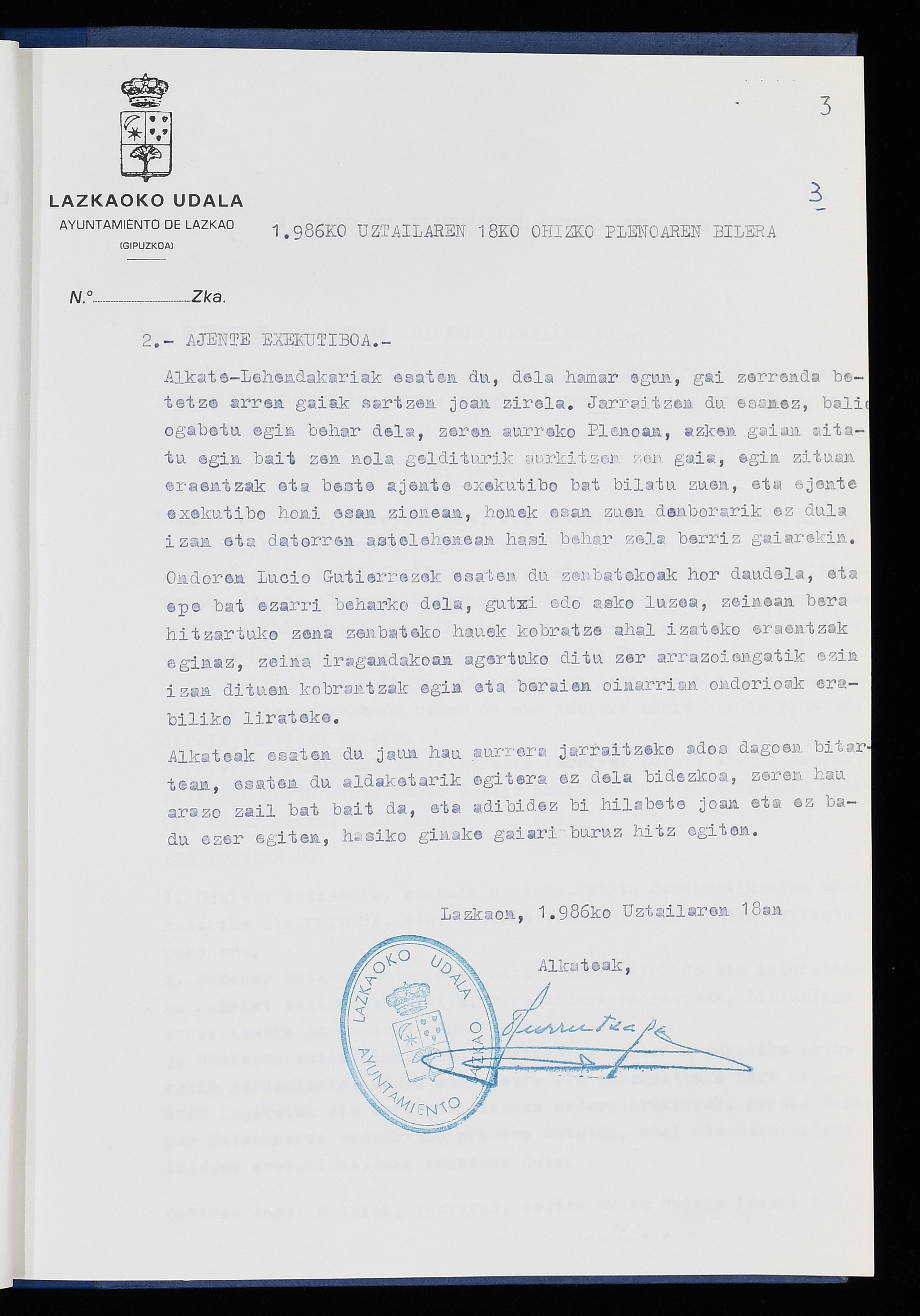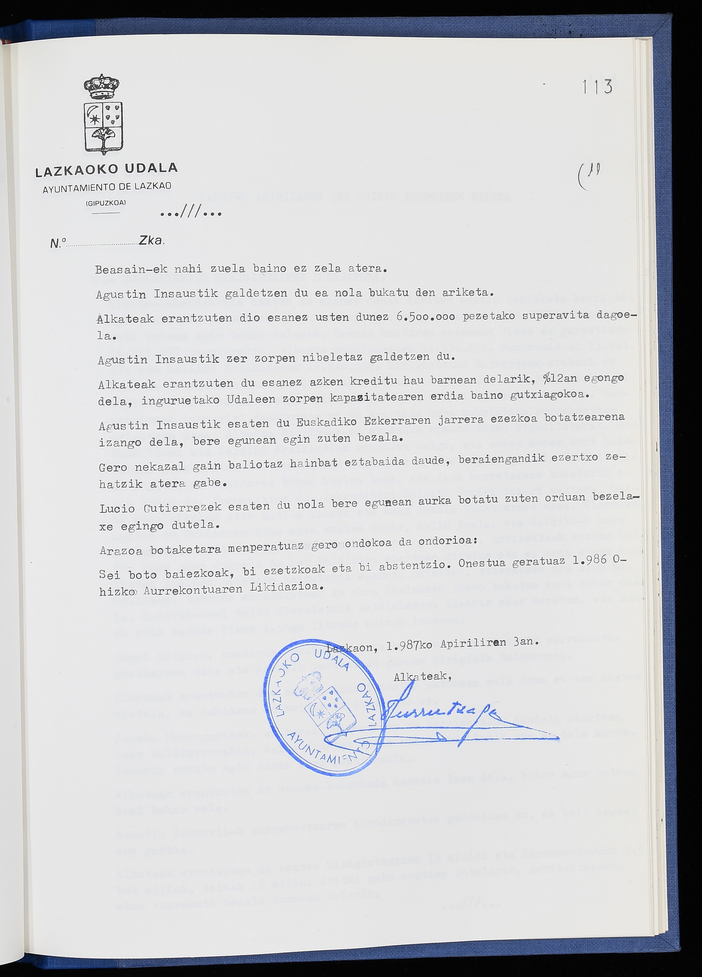 Log in to post commentsEdukiakSailkapenaFuntsaLazkaoko Udal ArtxiboaAtalakUdal AktakSailkapena1.1.4. Osoko Bilkuraren akta liburuakSailkapen berriaOsoko Bilkurako akta liburuakMultimediaIrudiakIdentifikazioaSignaturaakta liburua I-040Hasiera1986-07-18Amaiera1987-06-30AutoritateakTokiaLazkaoLog in to post commentsAkta eratu