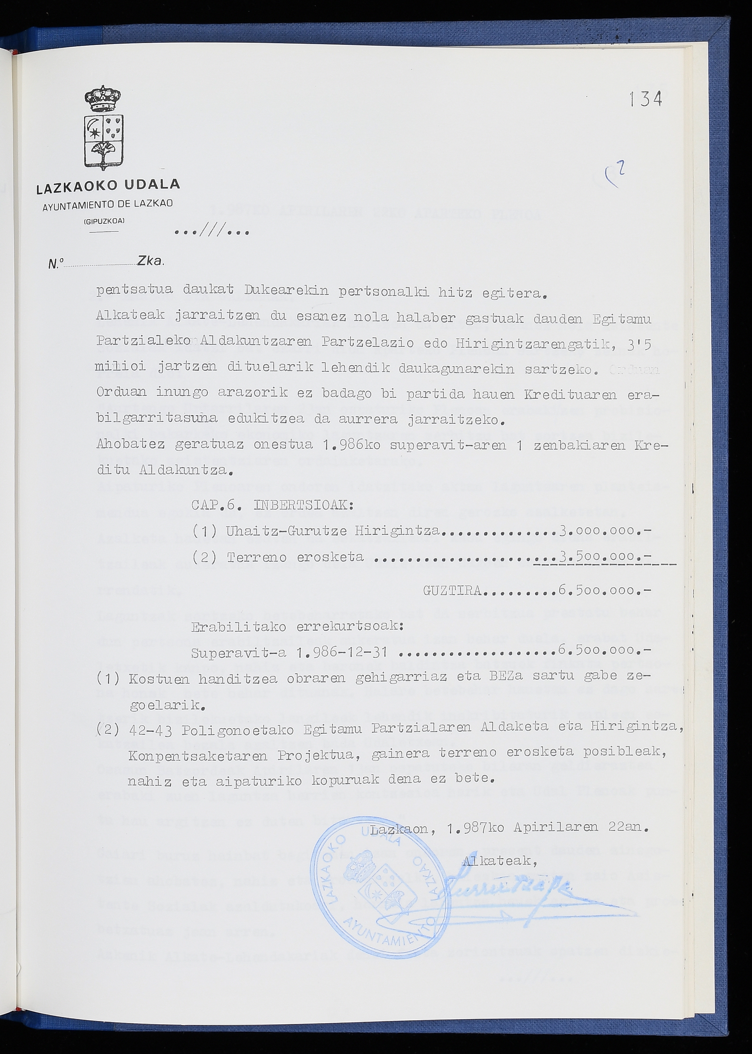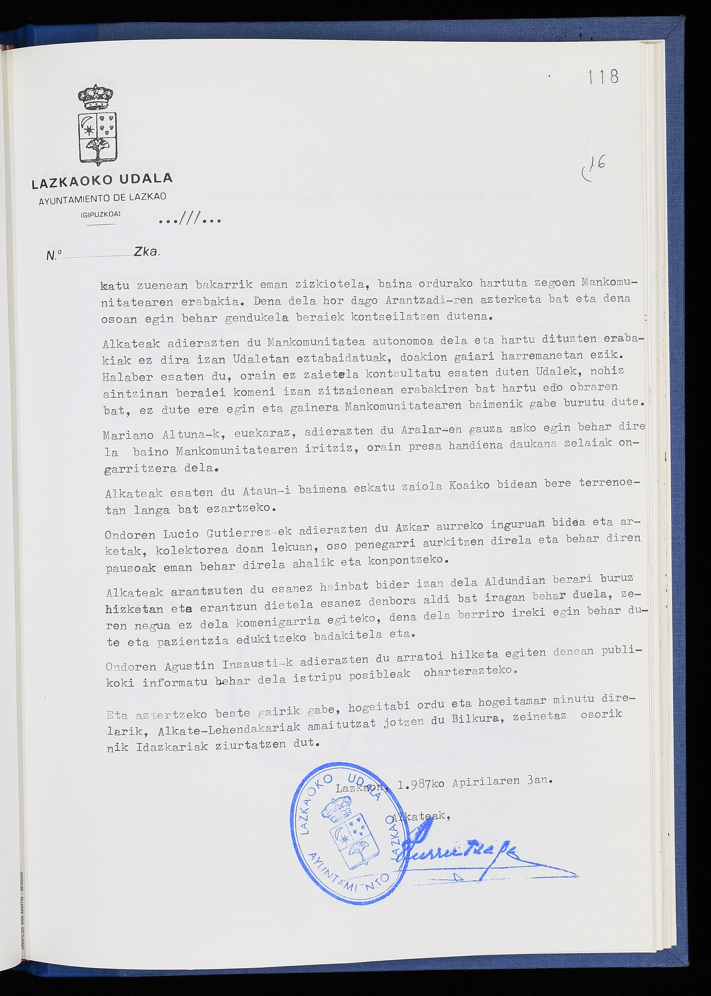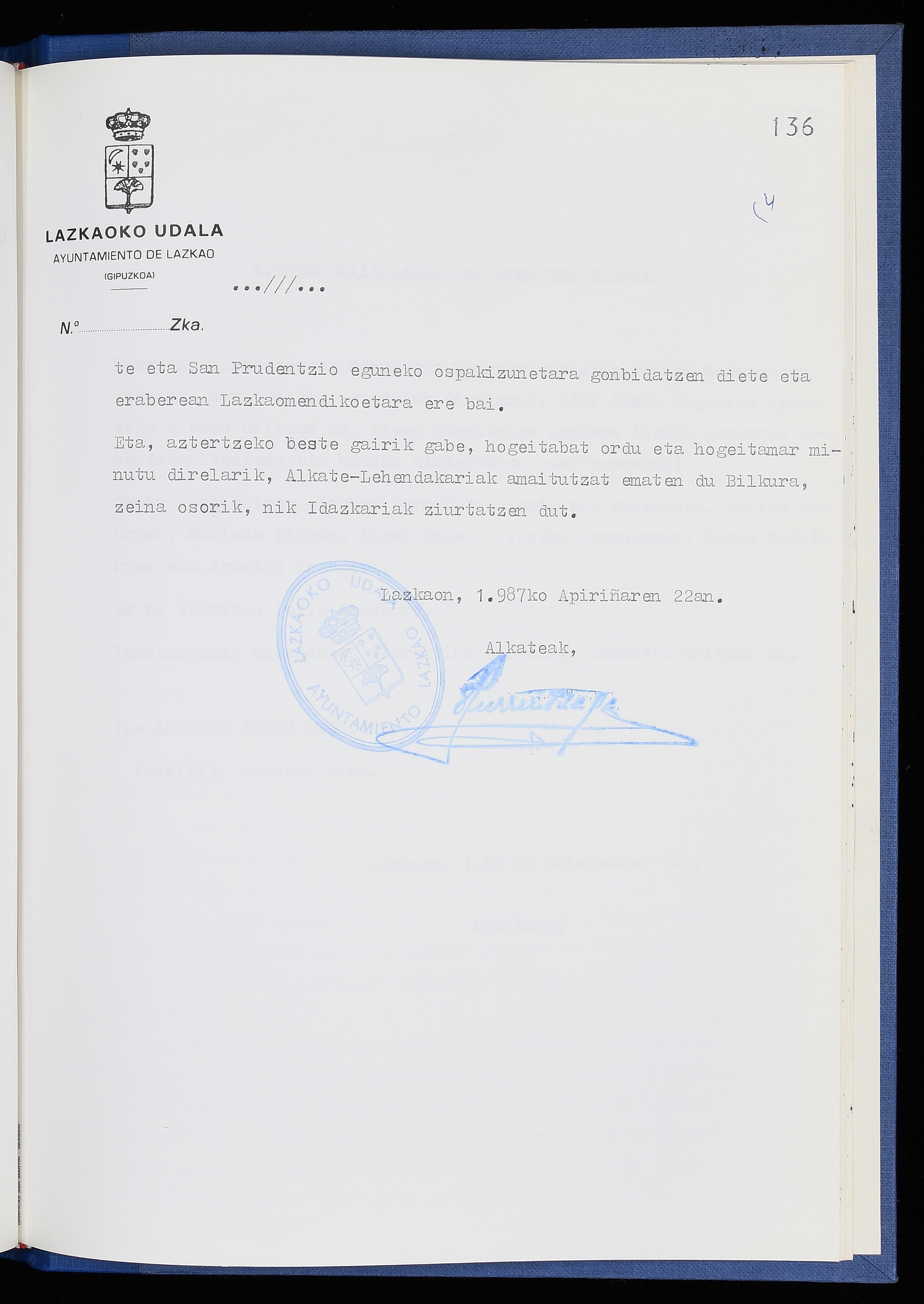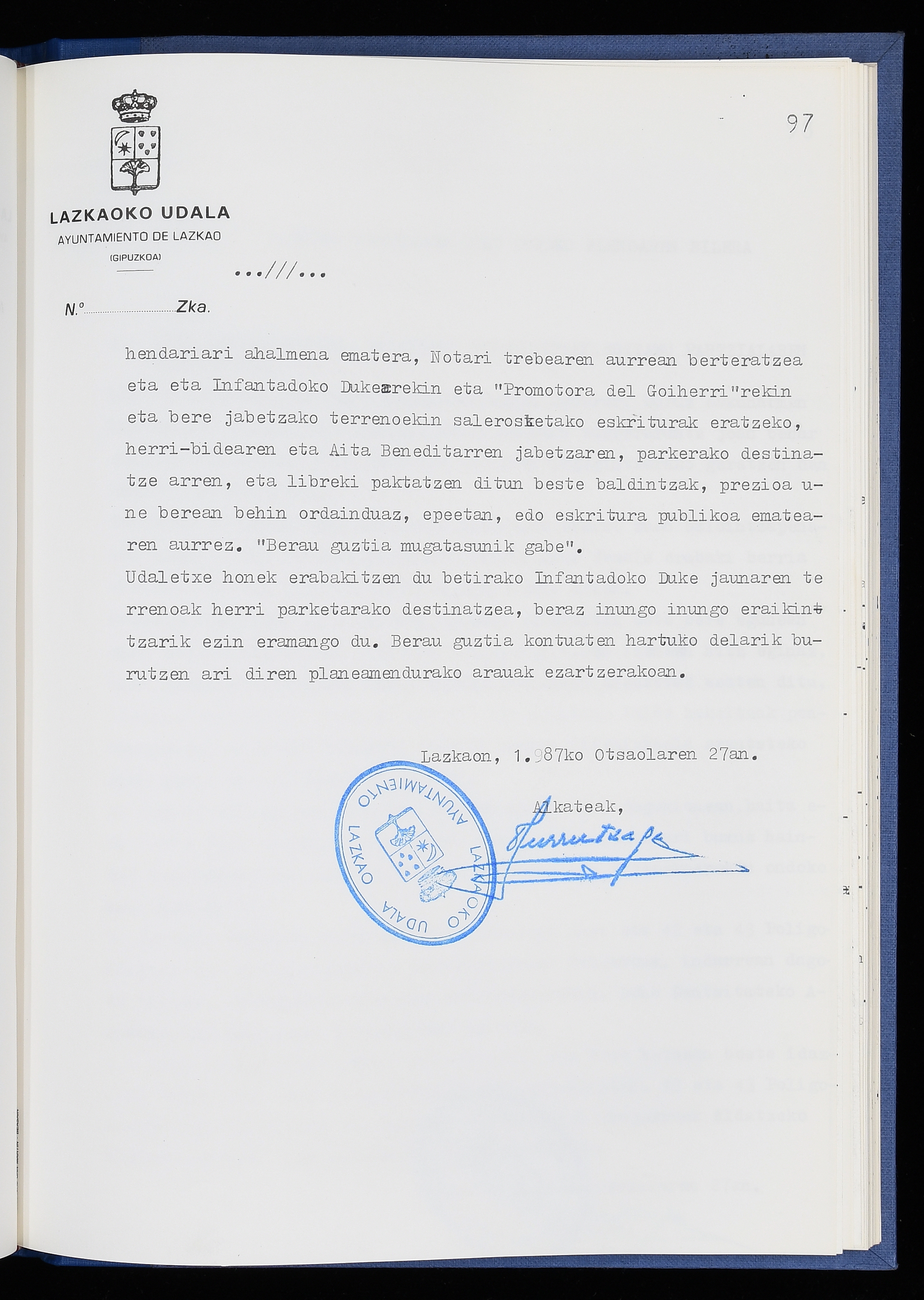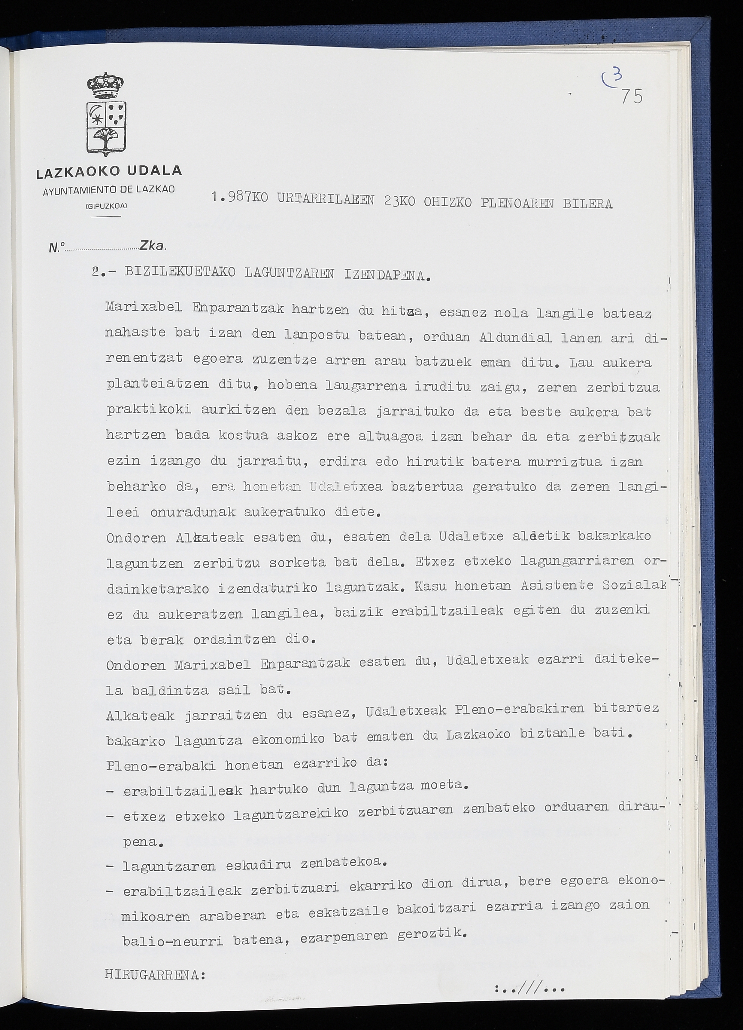 Log in to post commentsEdukiakSailkapenaFuntsaLazkaoko Udal ArtxiboaAtalakUdal AktakSailkapena1.1.4. Osoko Bilkuraren akta liburuakSailkapen berriaOsoko Bilkurako akta liburuakMultimediaIrudiakIdentifikazioaSignaturaakta liburua I-040Hasiera1986-07-18Amaiera1987-06-30AutoritateakTokiaLazkaoLog in to post commentsAkta eratu