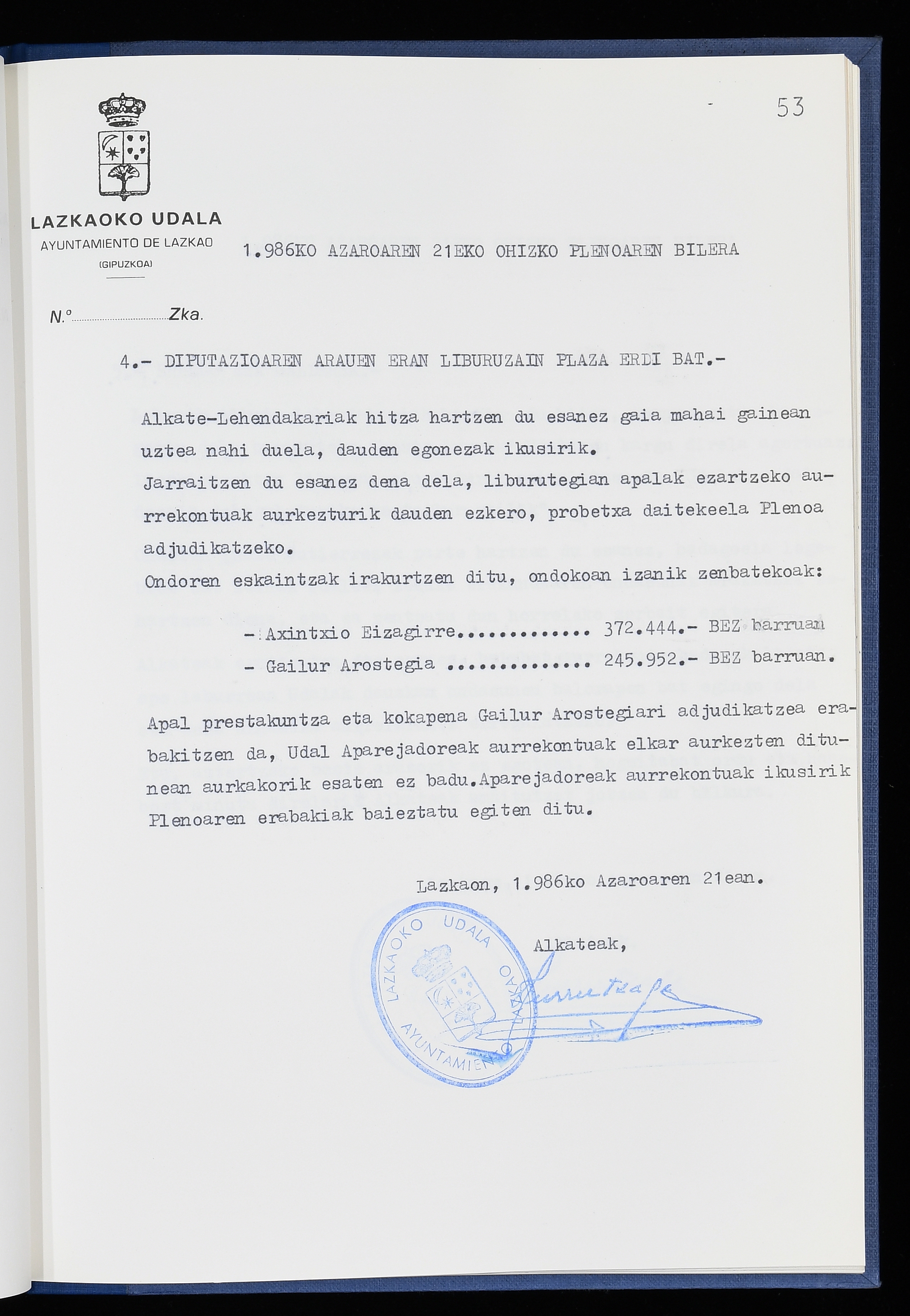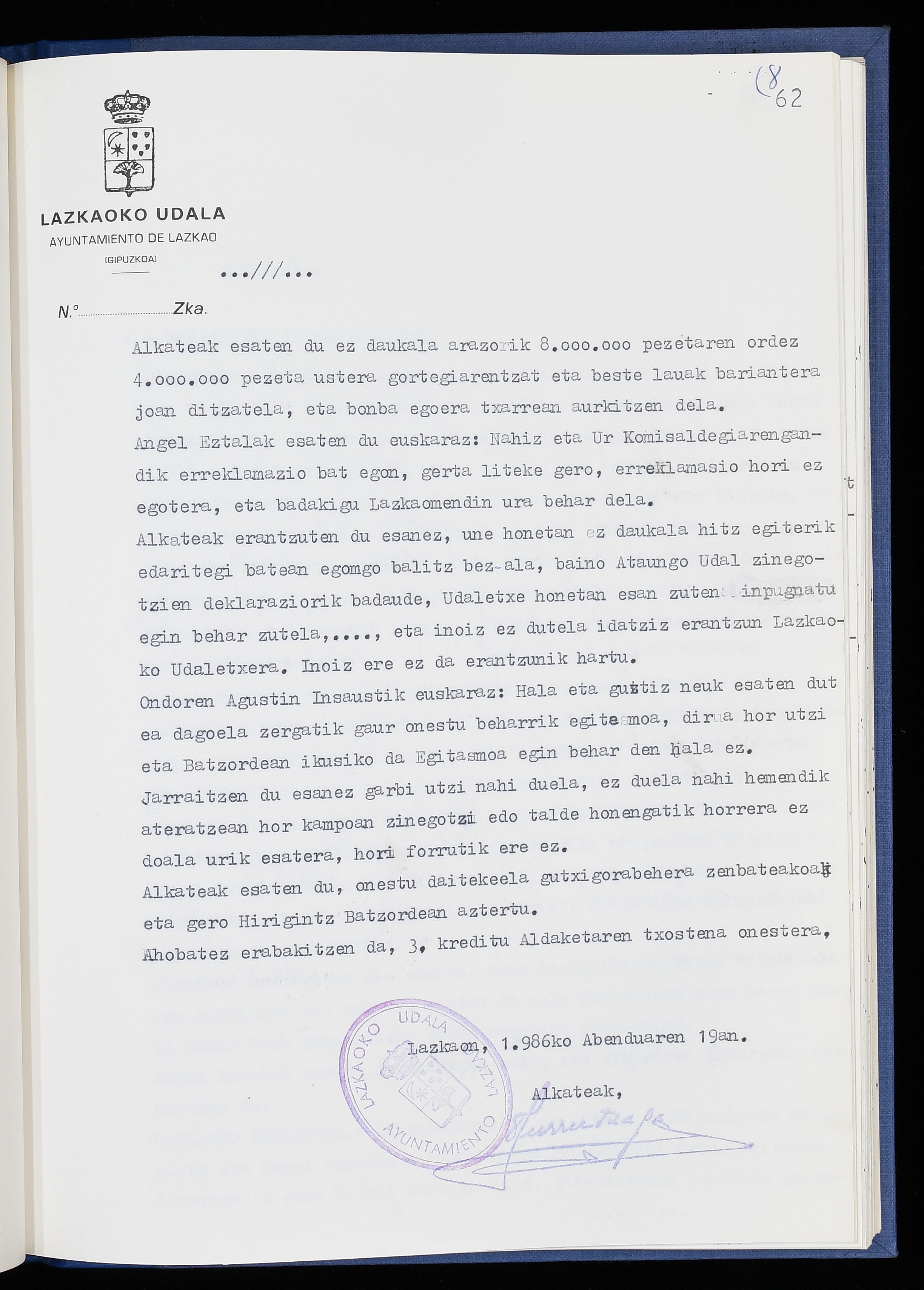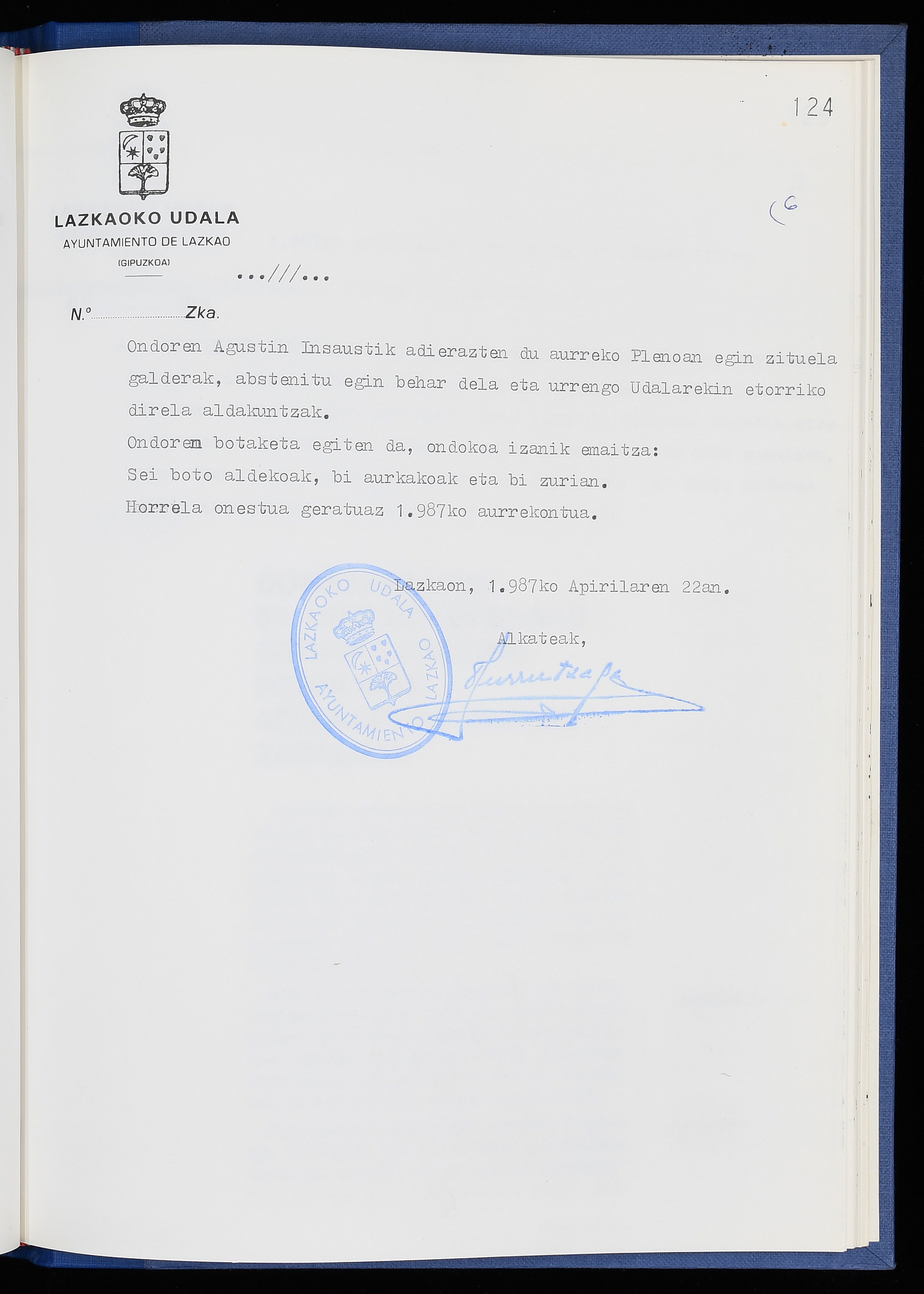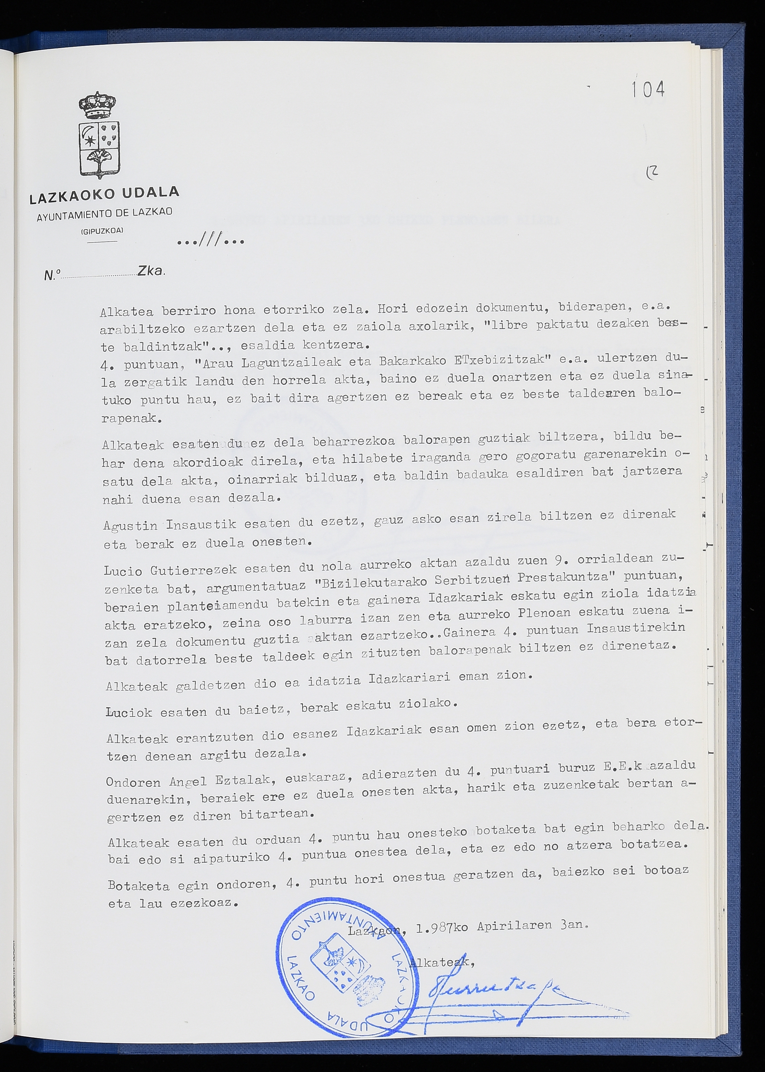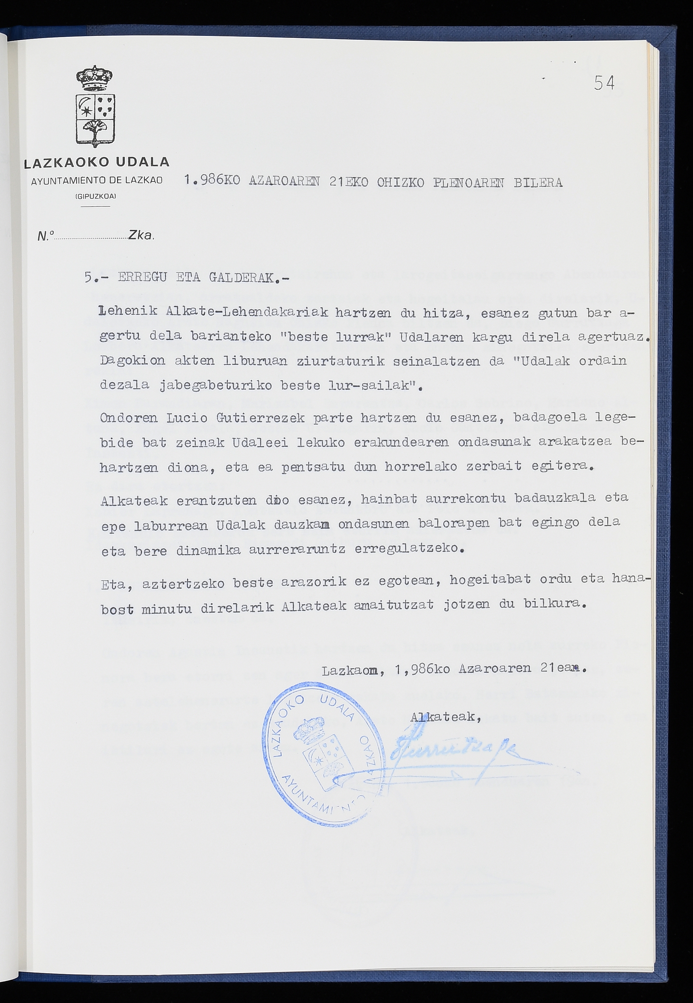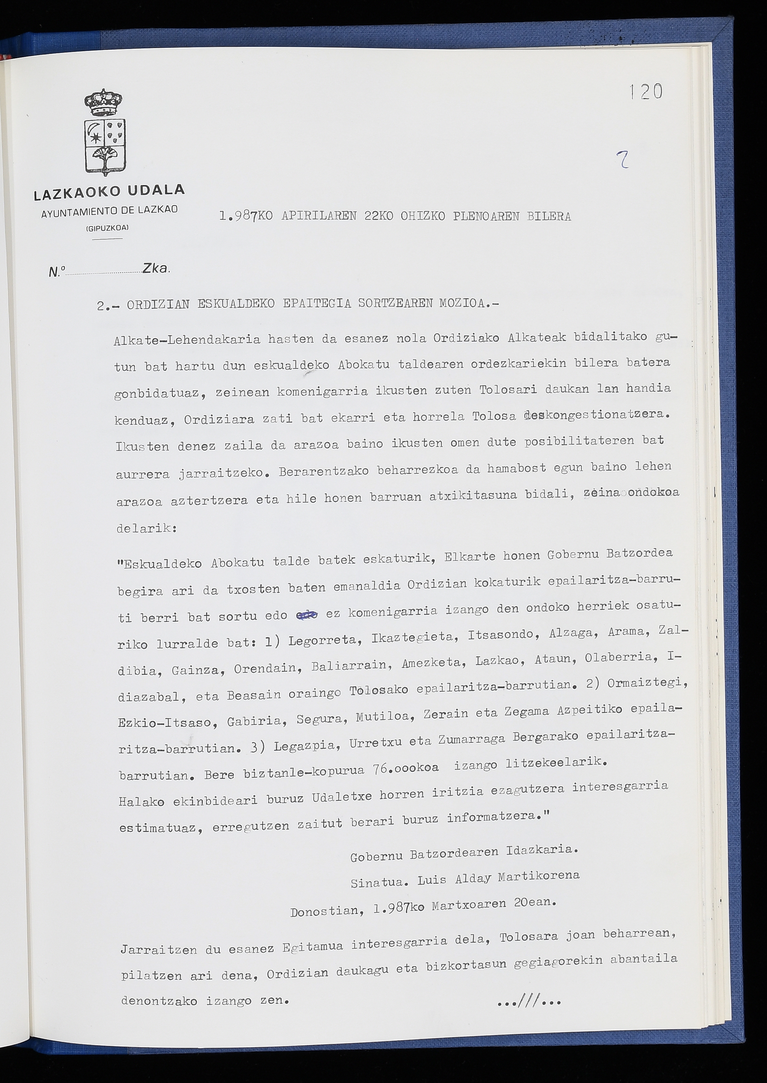 Log in to post commentsEdukiakSailkapenaFuntsaLazkaoko Udal ArtxiboaAtalakUdal AktakSailkapena1.1.4. Osoko Bilkuraren akta liburuakSailkapen berriaOsoko Bilkurako akta liburuakMultimediaIrudiakIdentifikazioaSignaturaakta liburua I-040Hasiera1986-07-18Amaiera1987-06-30AutoritateakTokiaLazkaoLog in to post commentsAkta eratu
