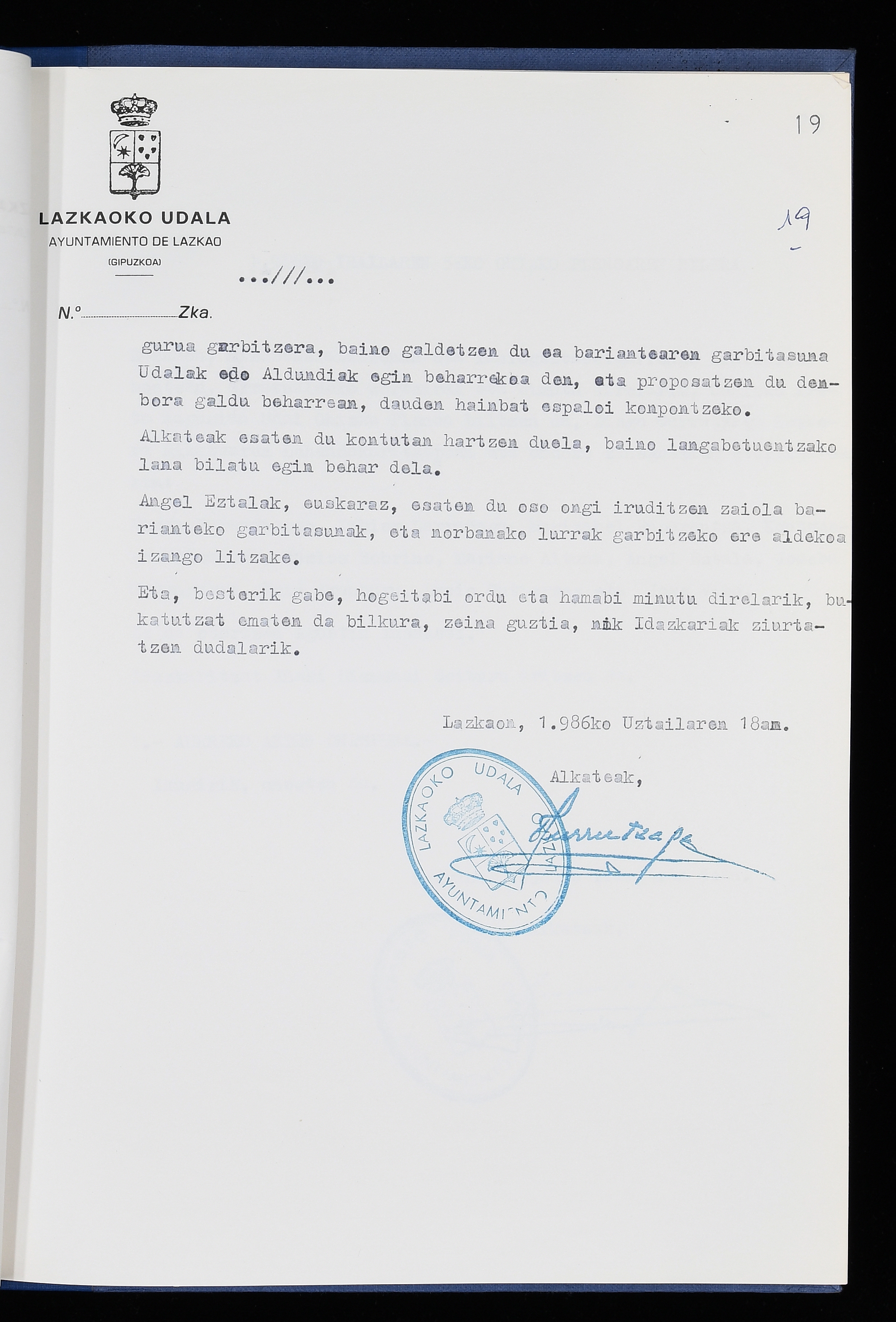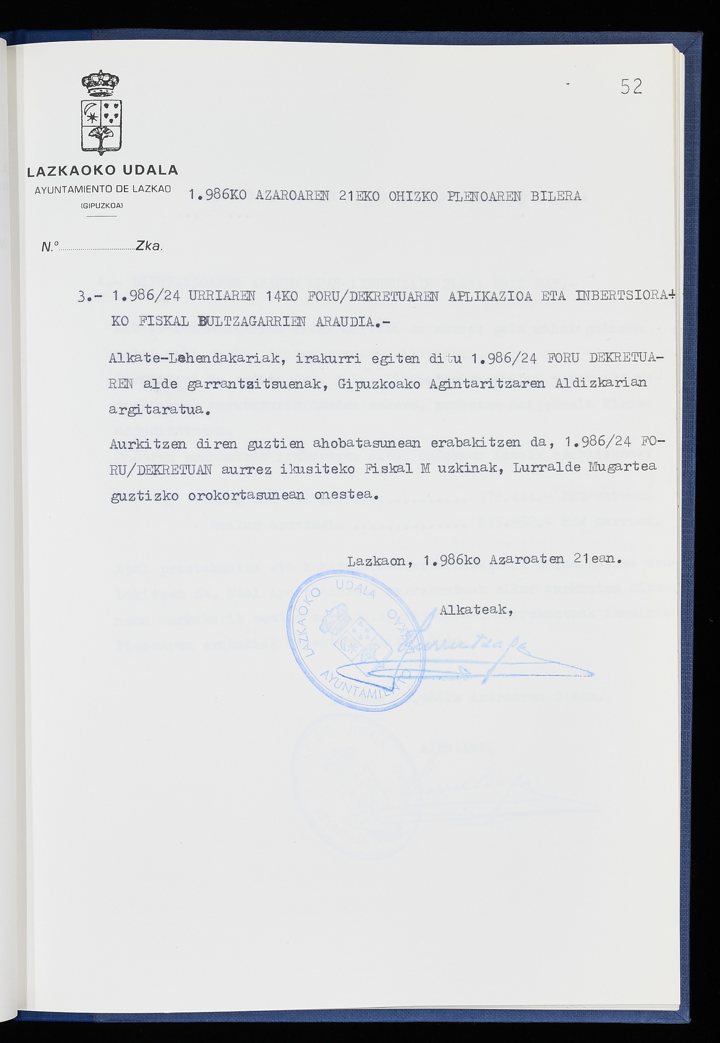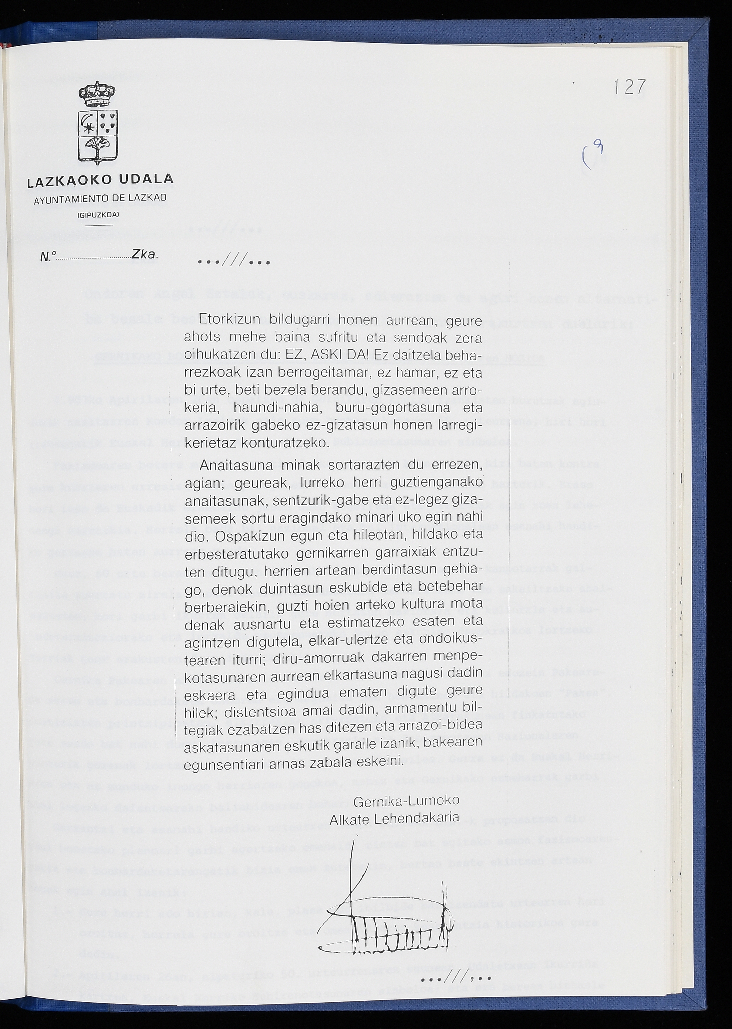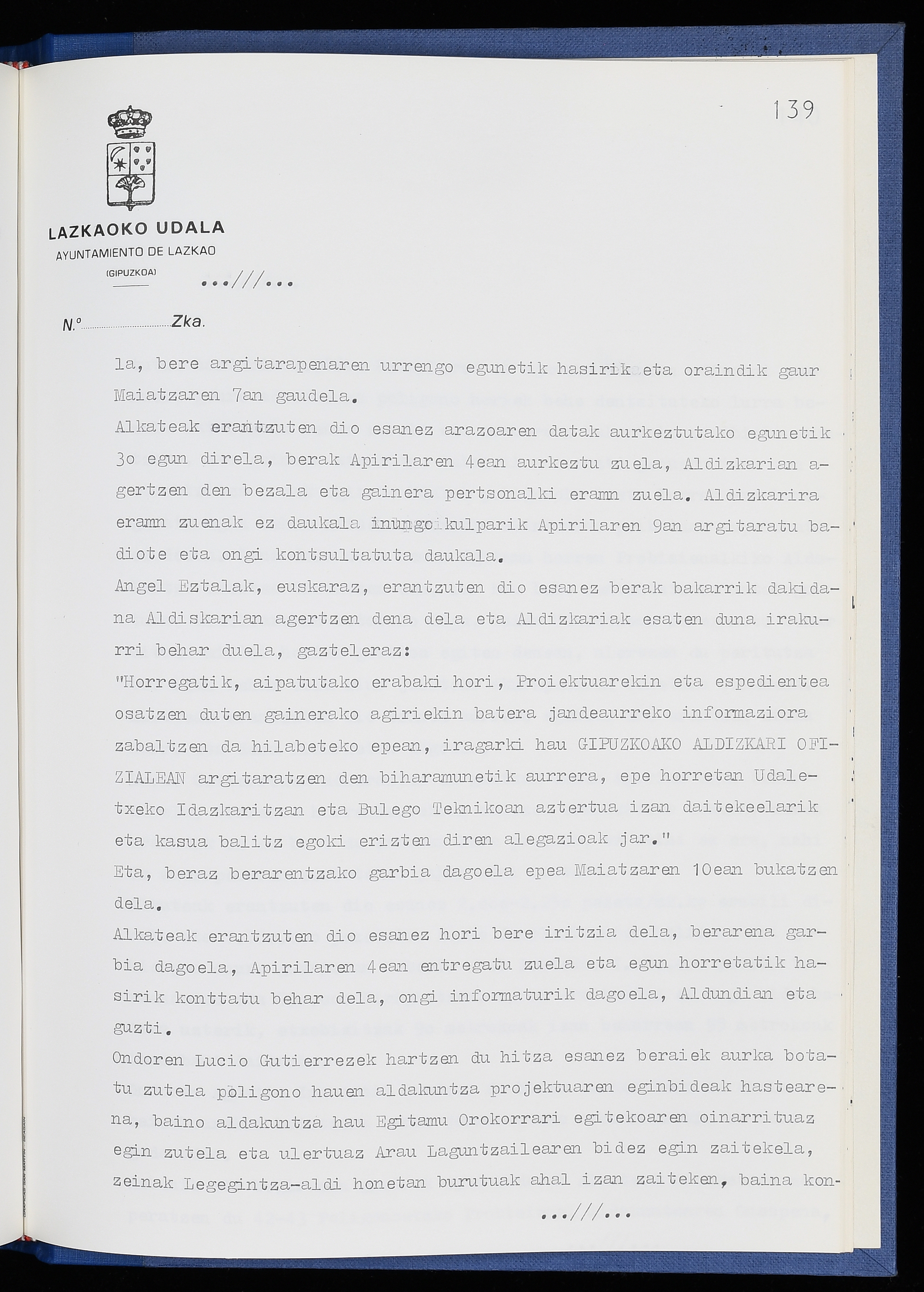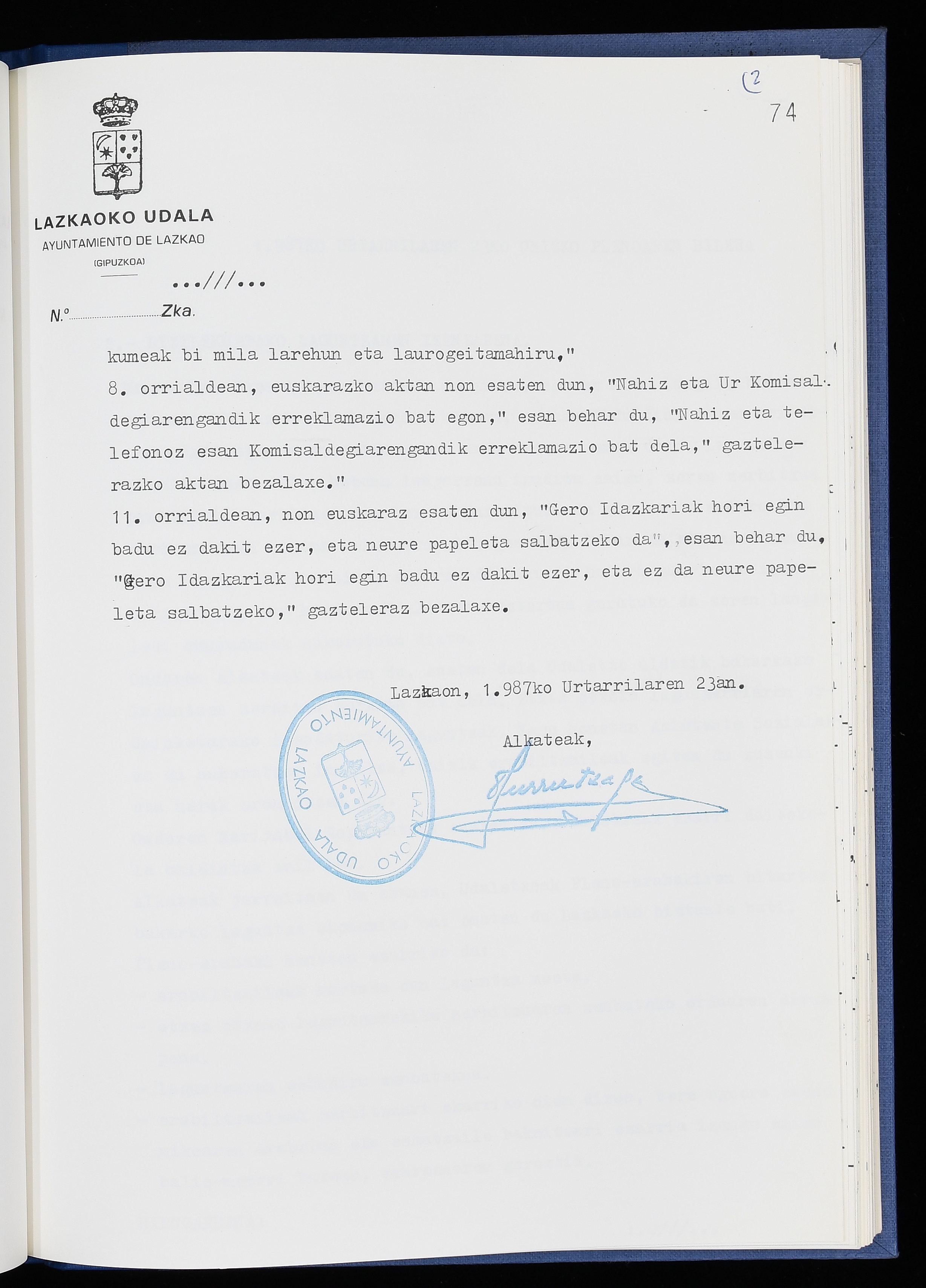 Log in to post commentsEdukiakSailkapenaFuntsaLazkaoko Udal ArtxiboaAtalakUdal AktakSailkapena1.1.4. Osoko Bilkuraren akta liburuakSailkapen berriaOsoko Bilkurako akta liburuakMultimediaIrudiakIdentifikazioaSignaturaakta liburua I-040Hasiera1986-07-18Amaiera1987-06-30AutoritateakTokiaLazkaoLog in to post commentsAkta eratu