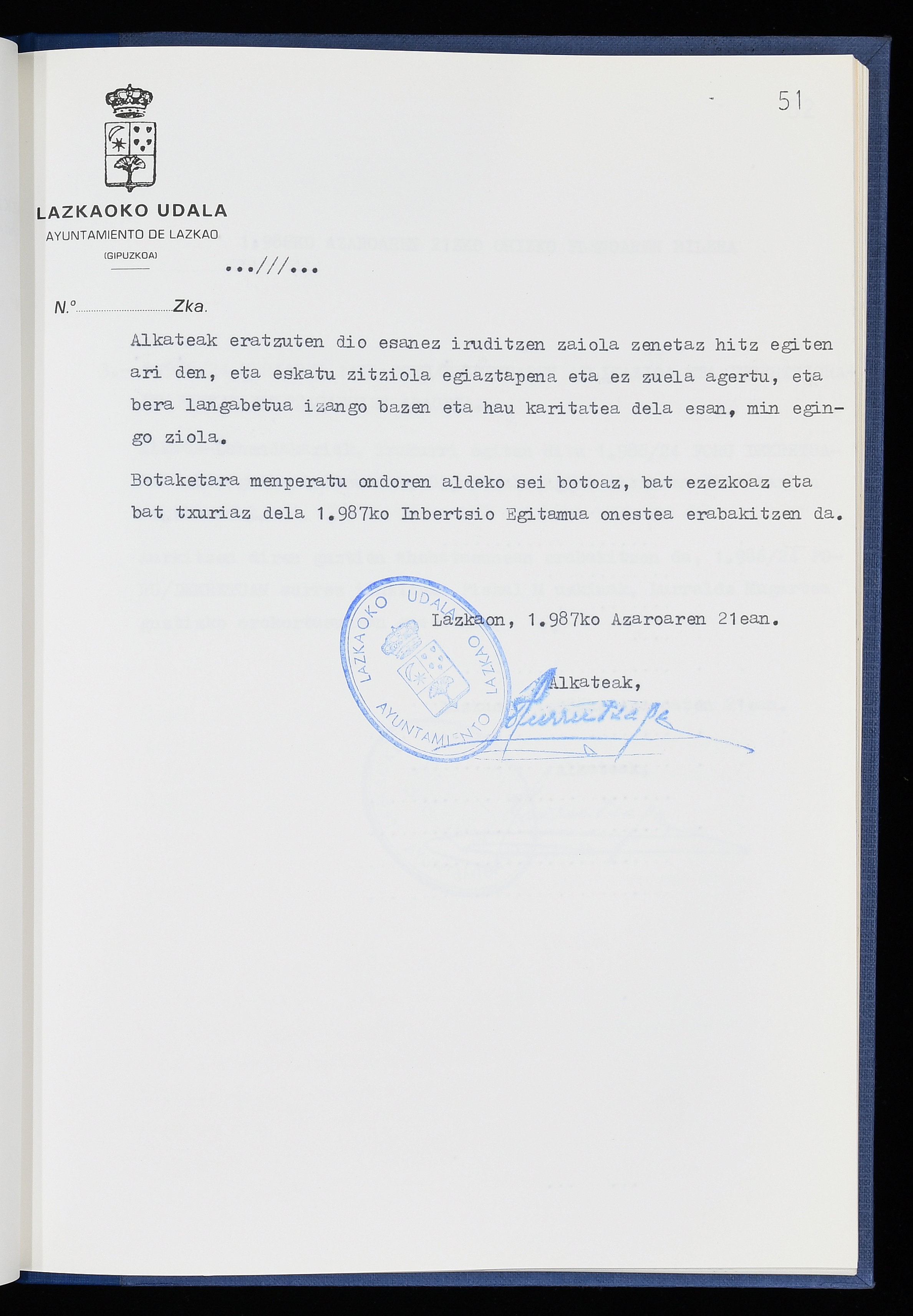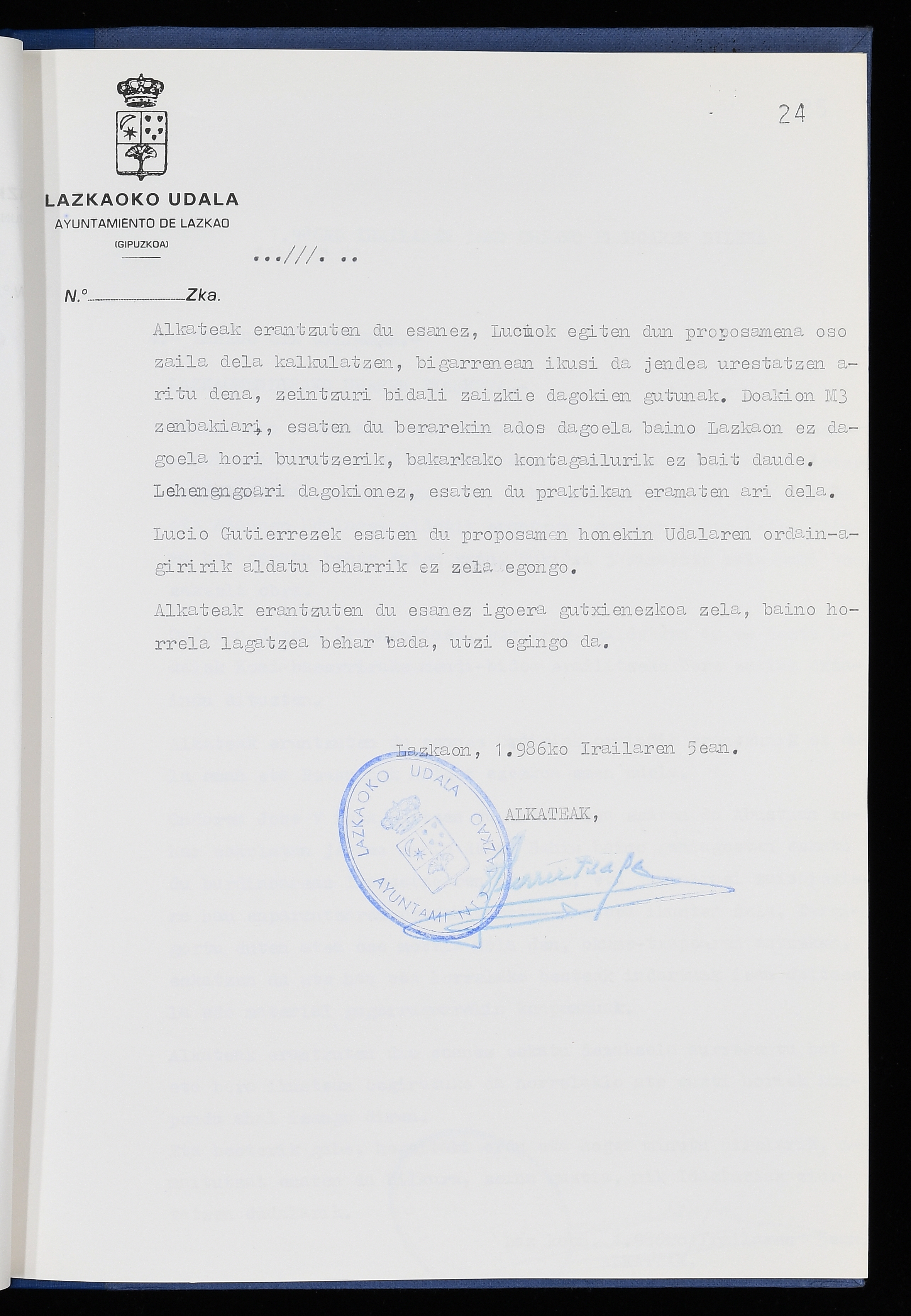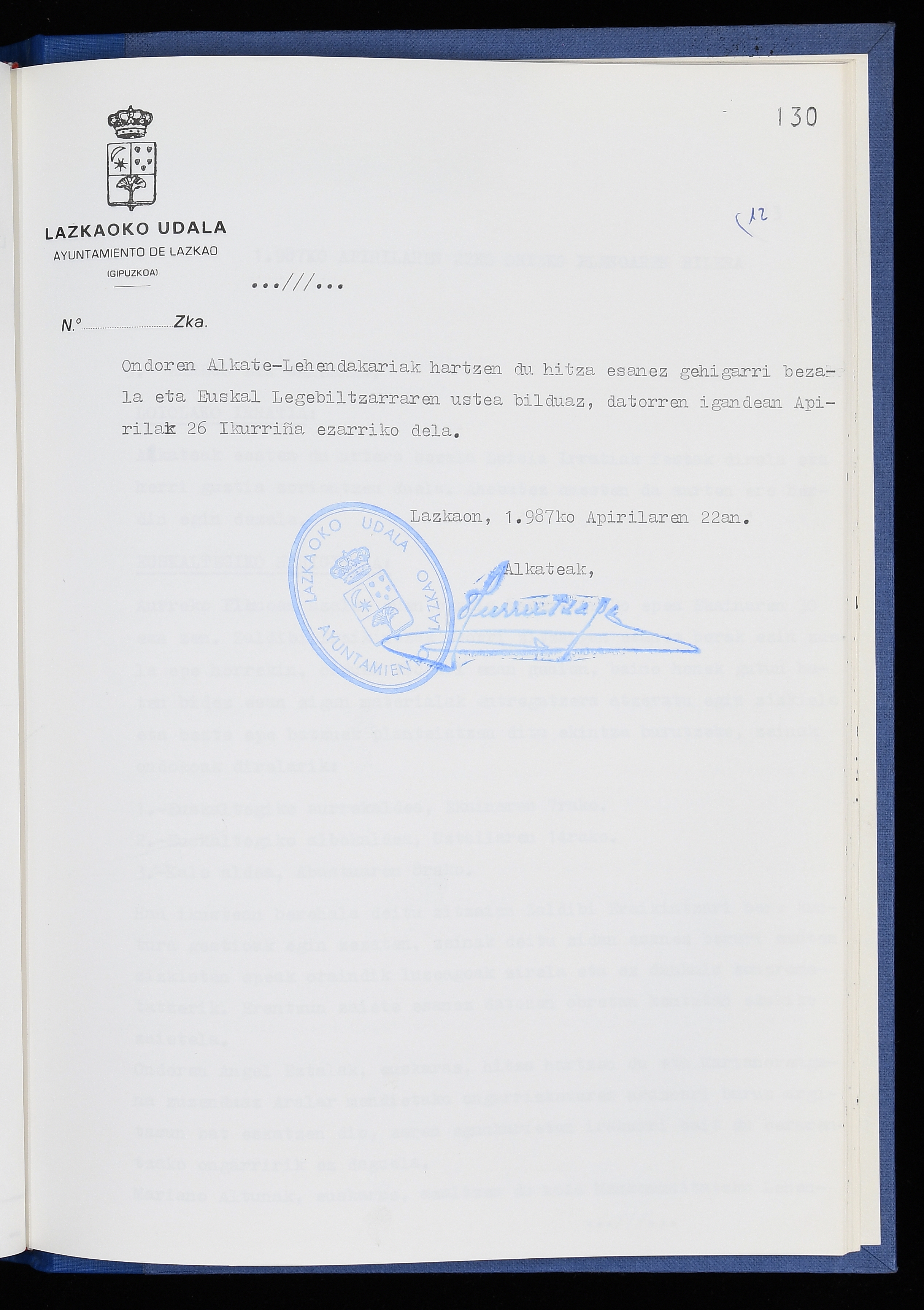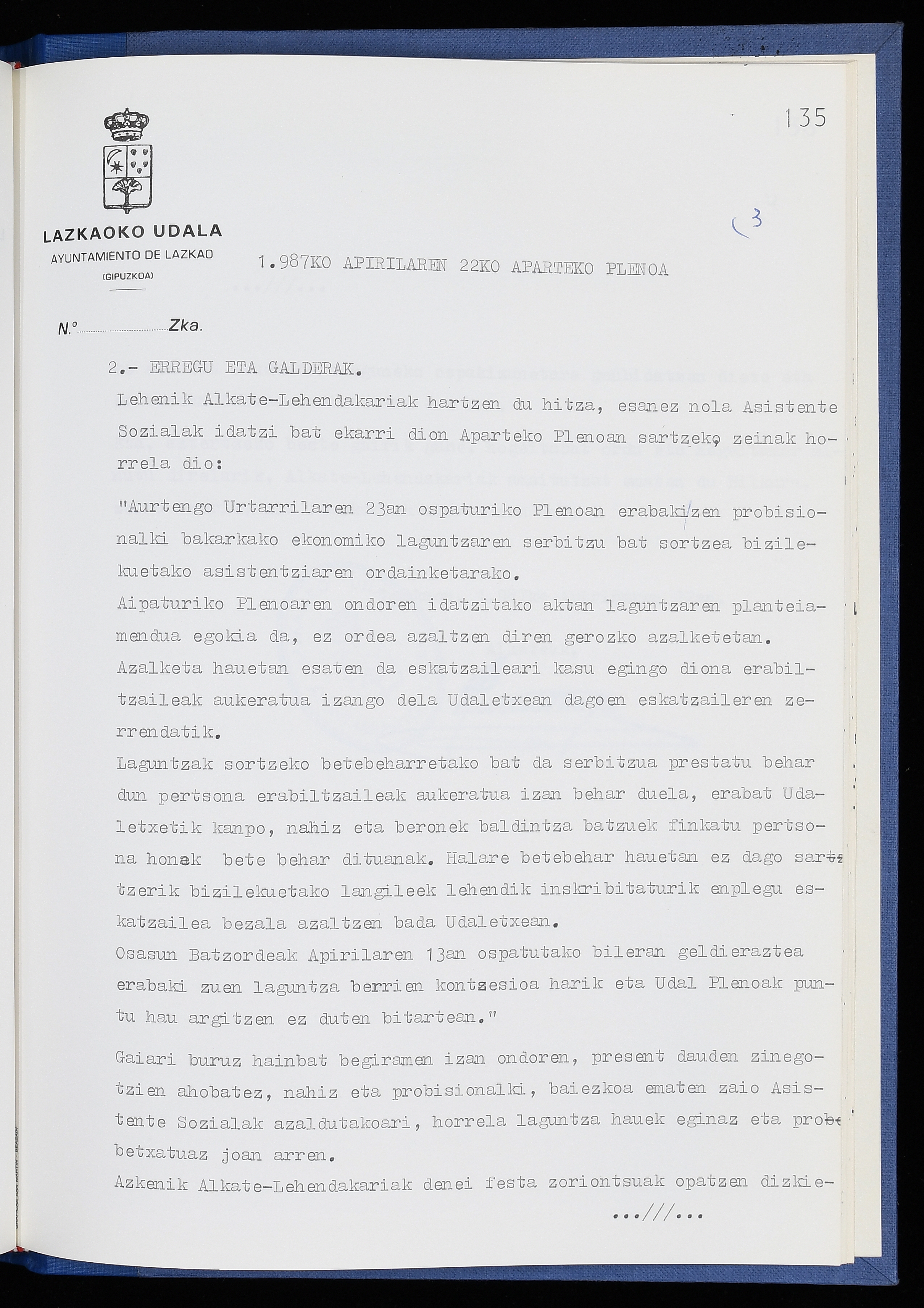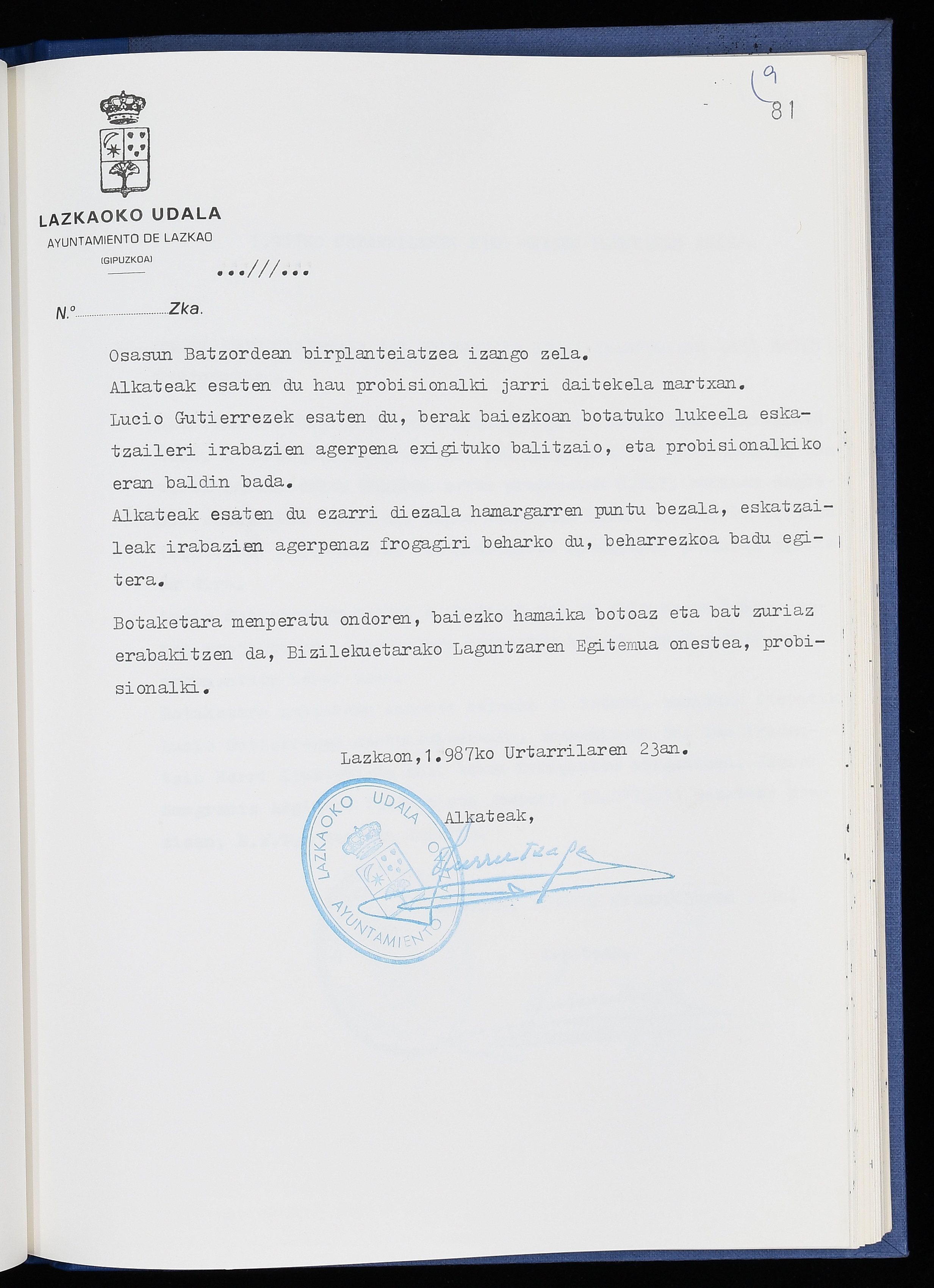 Log in to post commentsEdukiakSailkapenaFuntsaLazkaoko Udal ArtxiboaAtalakUdal AktakSailkapena1.1.4. Osoko Bilkuraren akta liburuakSailkapen berriaOsoko Bilkurako akta liburuakMultimediaIrudiakIdentifikazioaSignaturaakta liburua I-040Hasiera1986-07-18Amaiera1987-06-30AutoritateakTokiaLazkaoLog in to post commentsAkta eratu