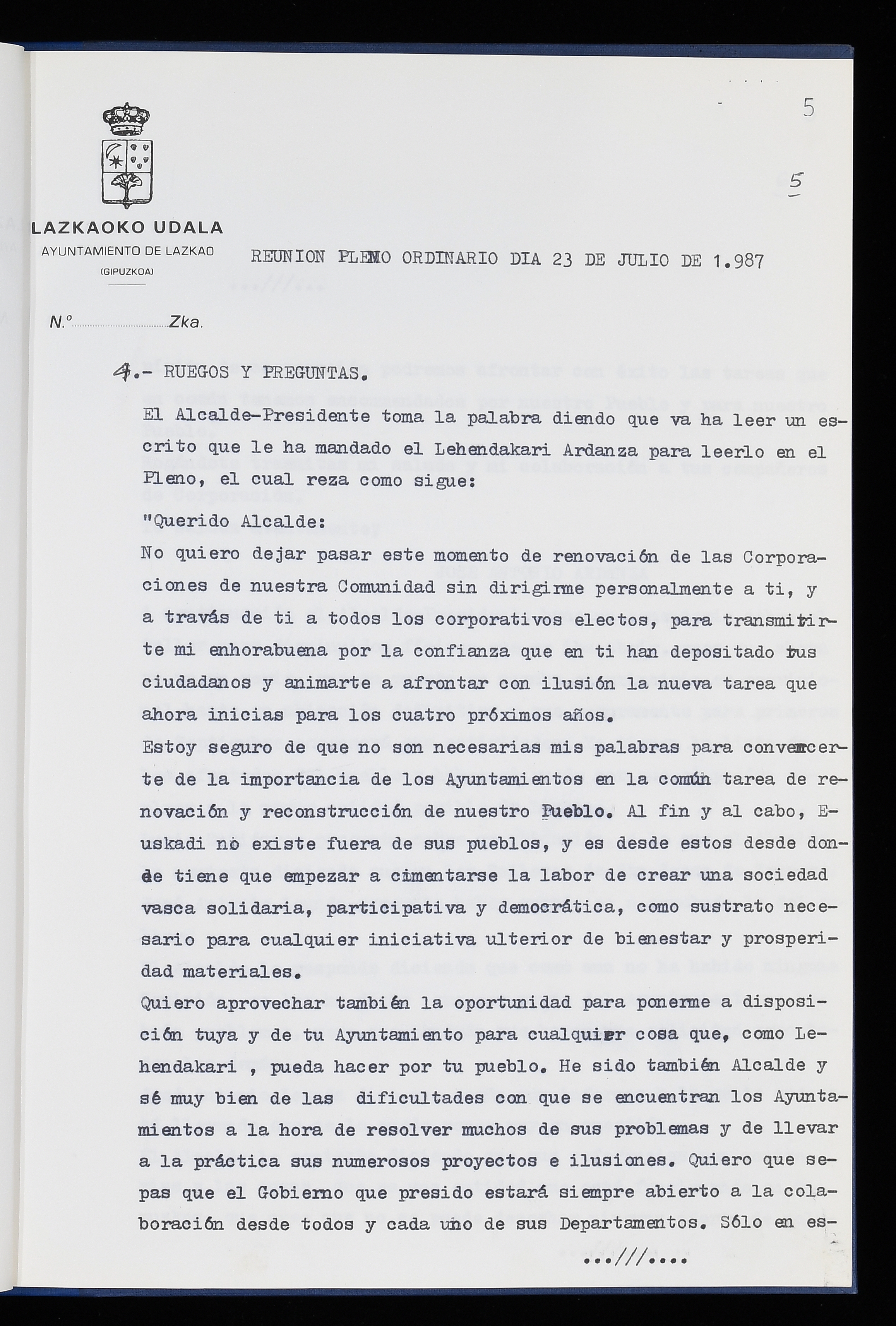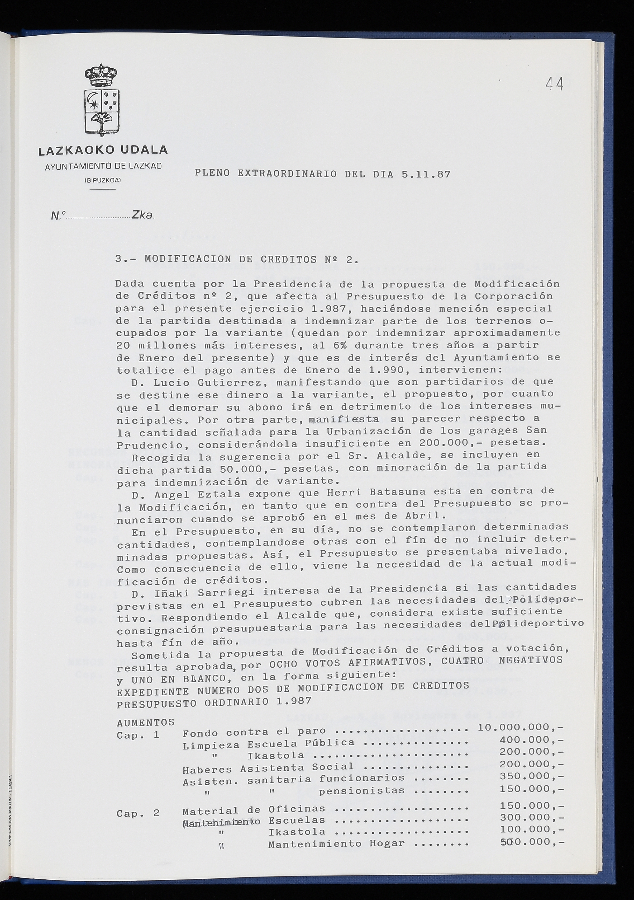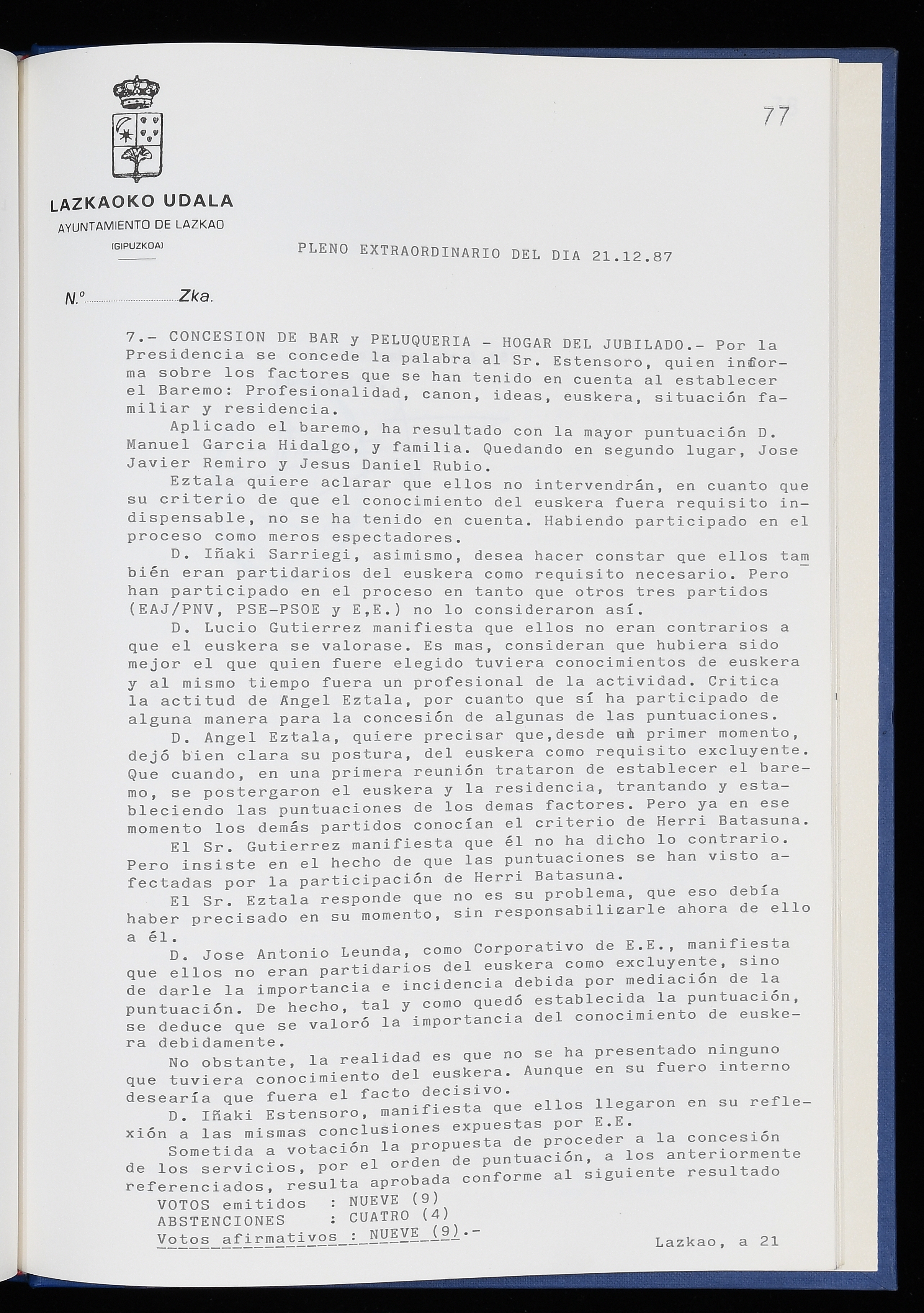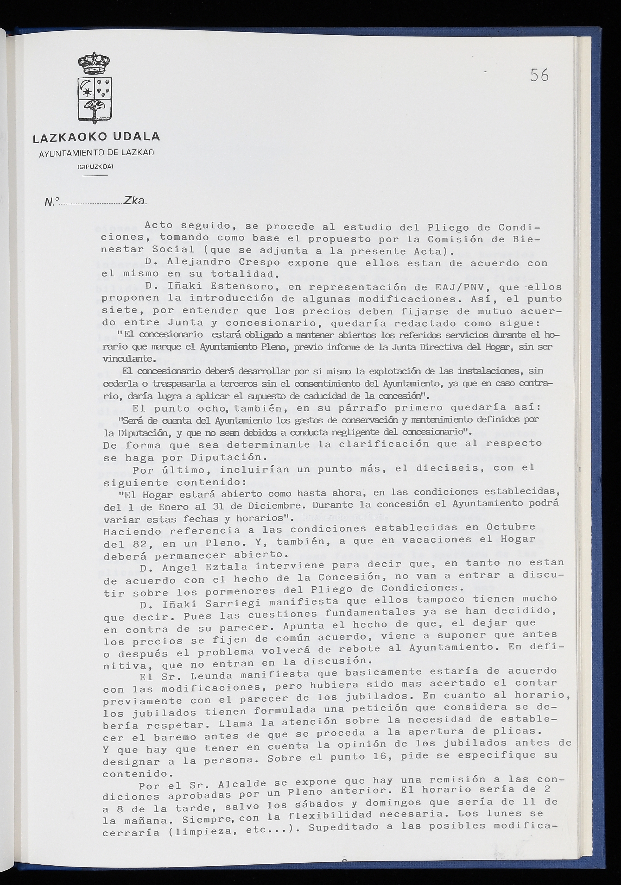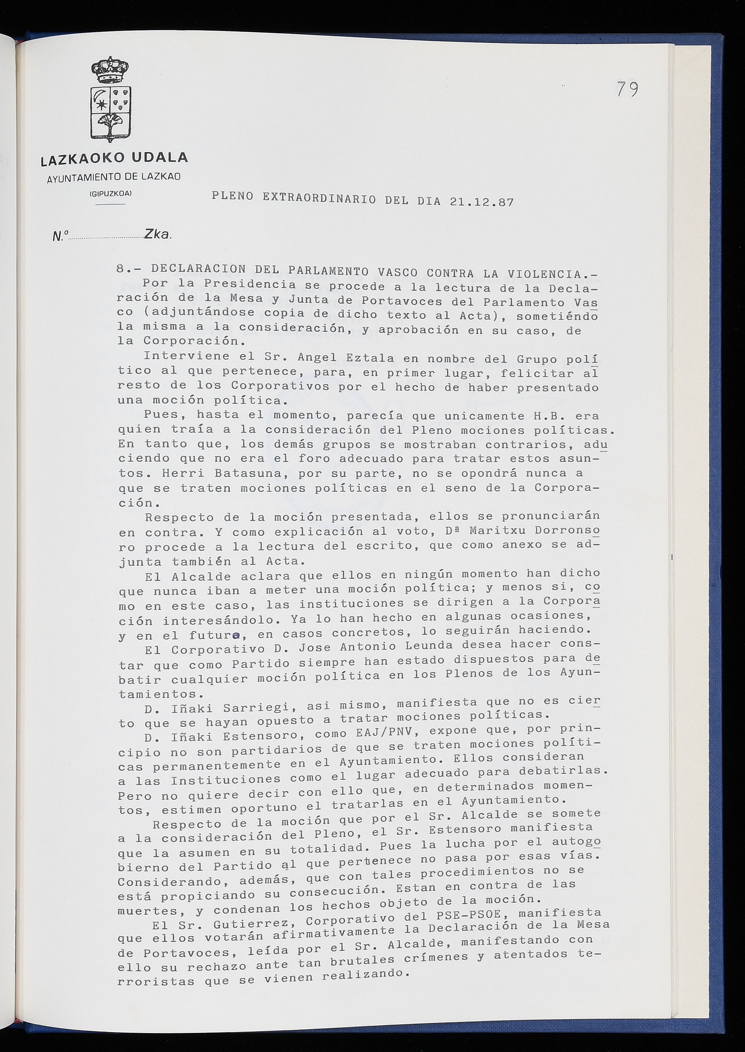 Log in to post commentsEdukiakSailkapenaFuntsaLazkaoko Udal ArtxiboaAtalakUdal AktakSailkapena1.1.4. Osoko Bilkuraren akta liburuakSailkapen berriaOsoko Bilkurako akta liburuakMultimediaIrudiakIdentifikazioaSignaturaakta liburua I-043Hasiera1987-07-23Amaiera1987-12-30AutoritateakTokiaLazkaoLog in to post commentsAkta eratu