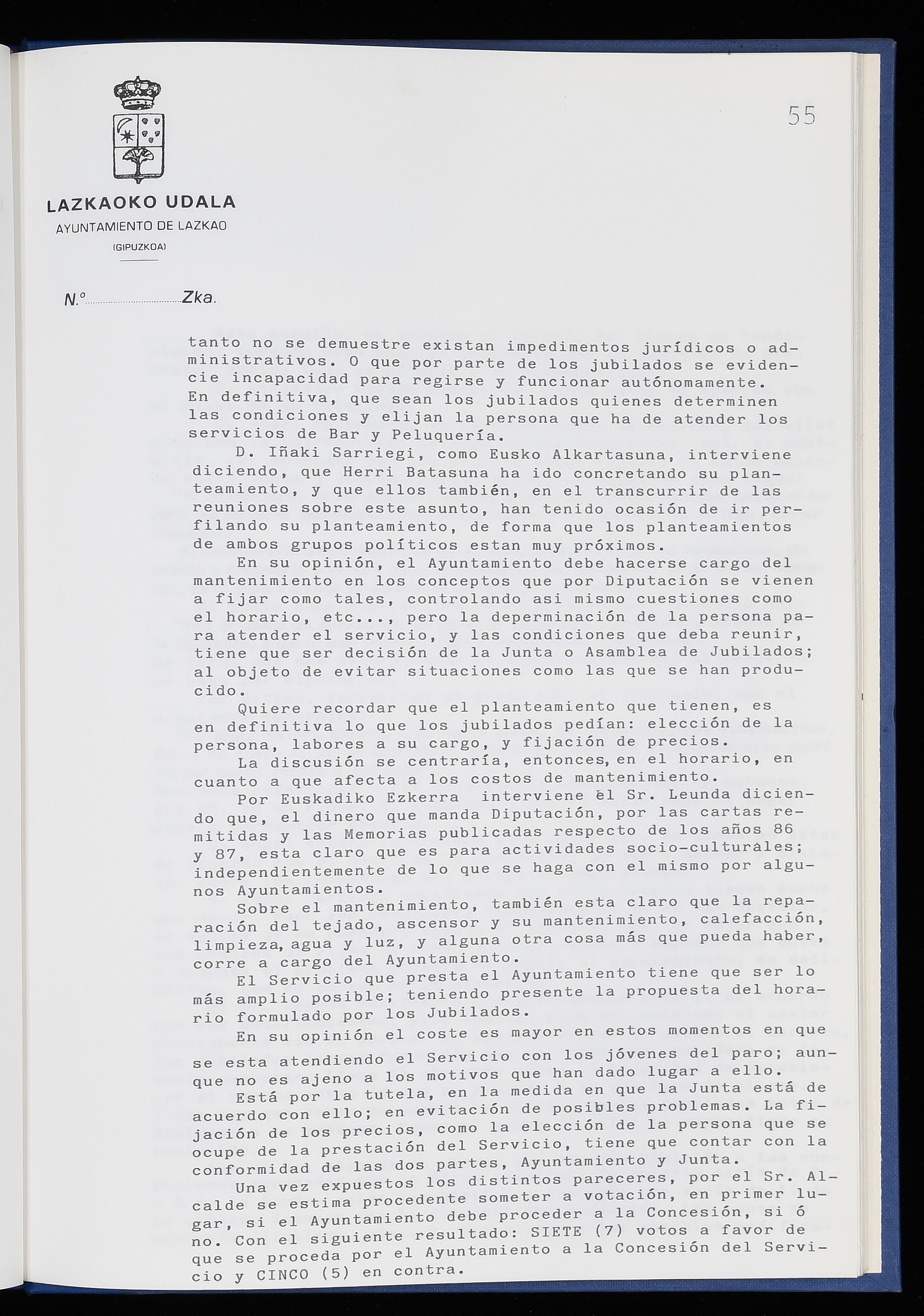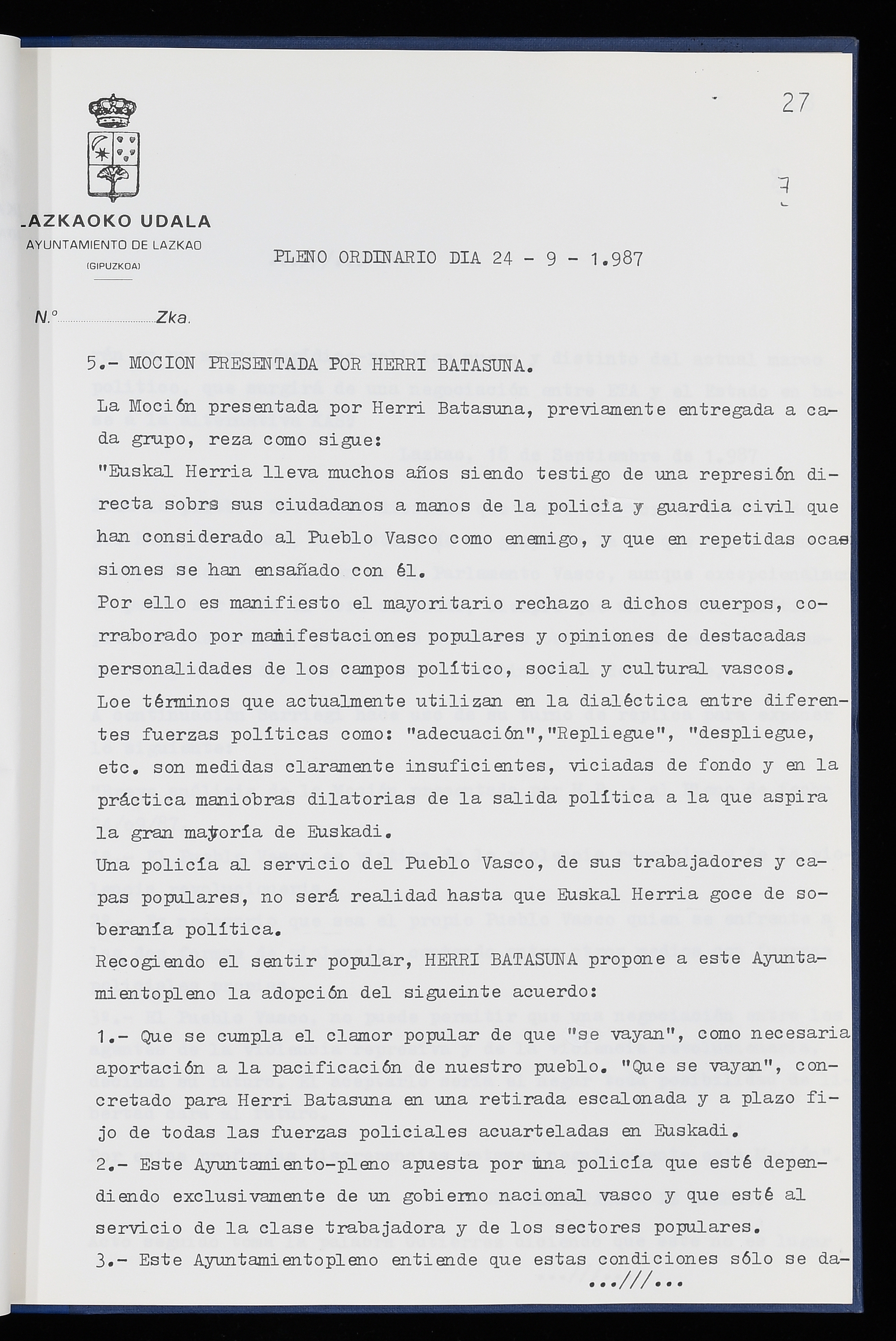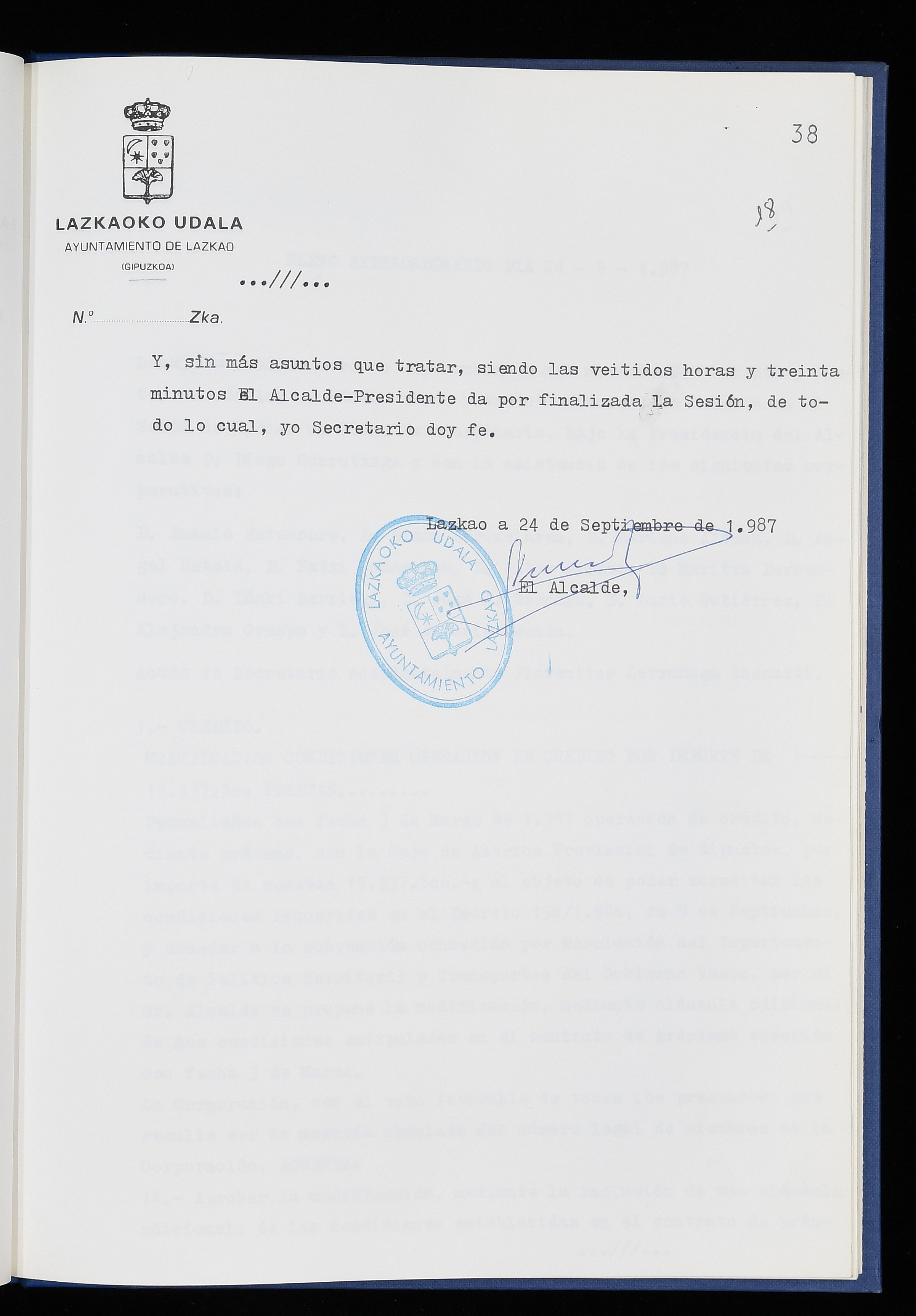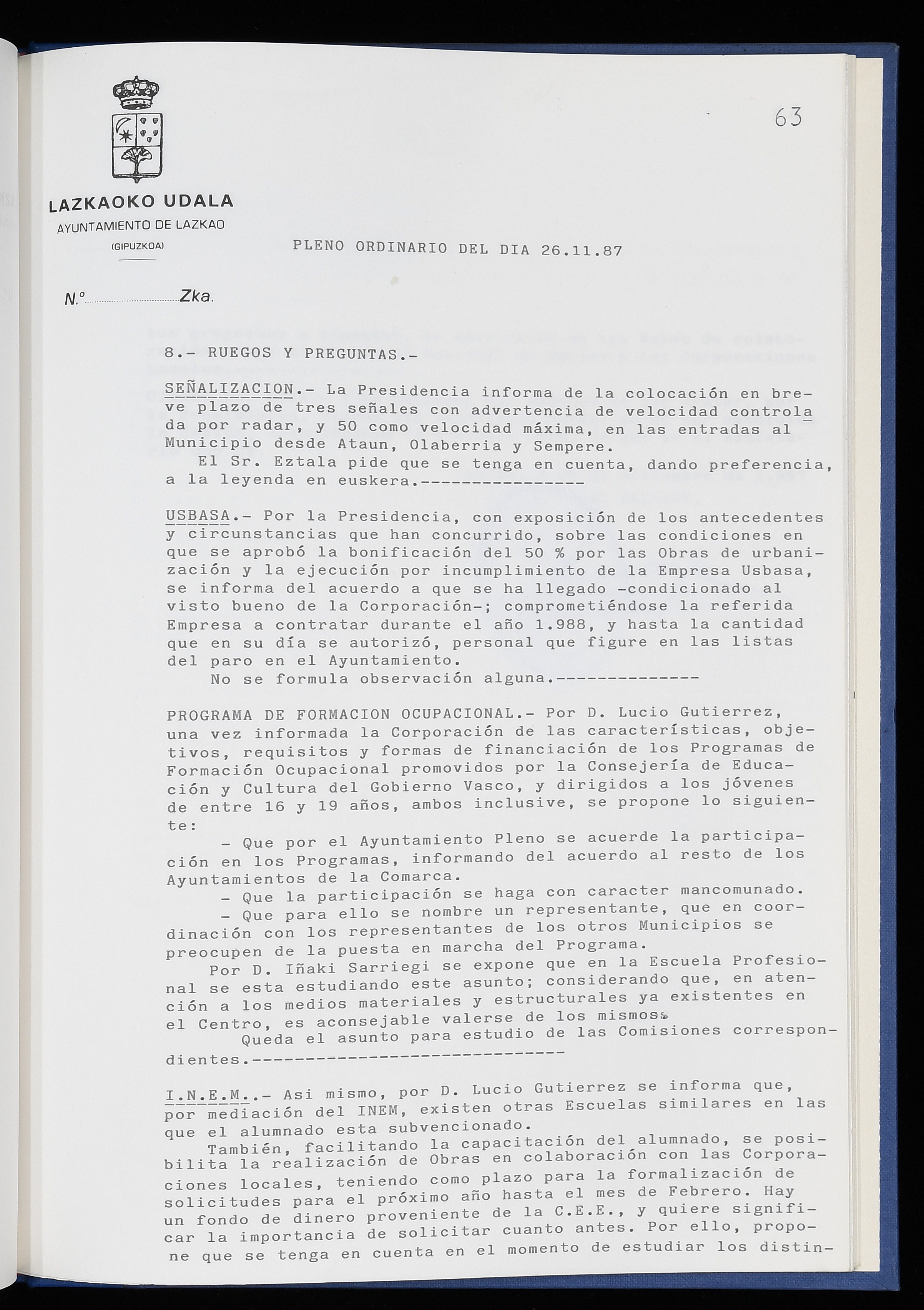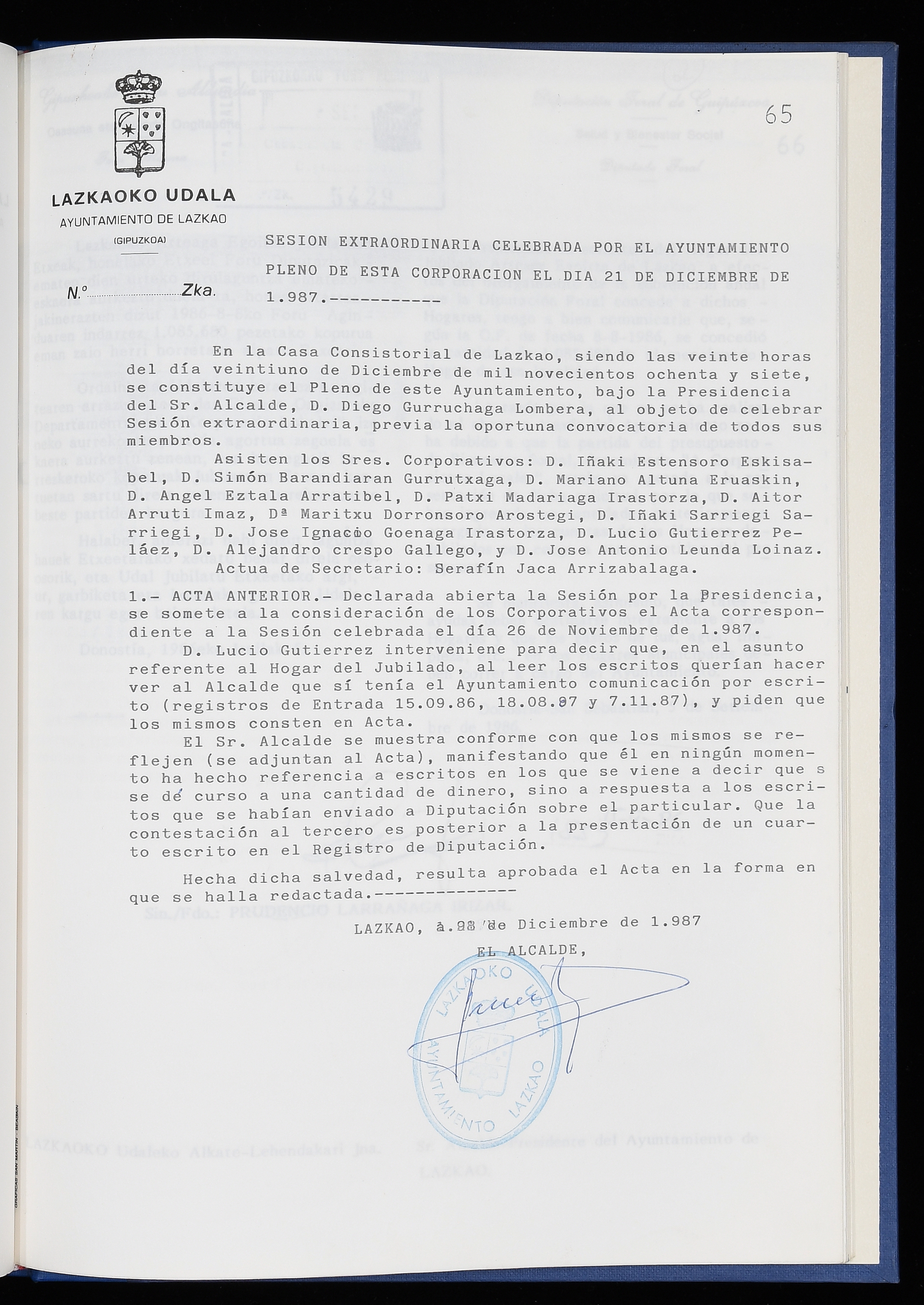 Log in to post commentsEdukiakSailkapenaFuntsaLazkaoko Udal ArtxiboaAtalakUdal AktakSailkapena1.1.4. Osoko Bilkuraren akta liburuakSailkapen berriaOsoko Bilkurako akta liburuakMultimediaIrudiakIdentifikazioaSignaturaakta liburua I-043Hasiera1987-07-23Amaiera1987-12-30AutoritateakTokiaLazkaoLog in to post commentsAkta eratu