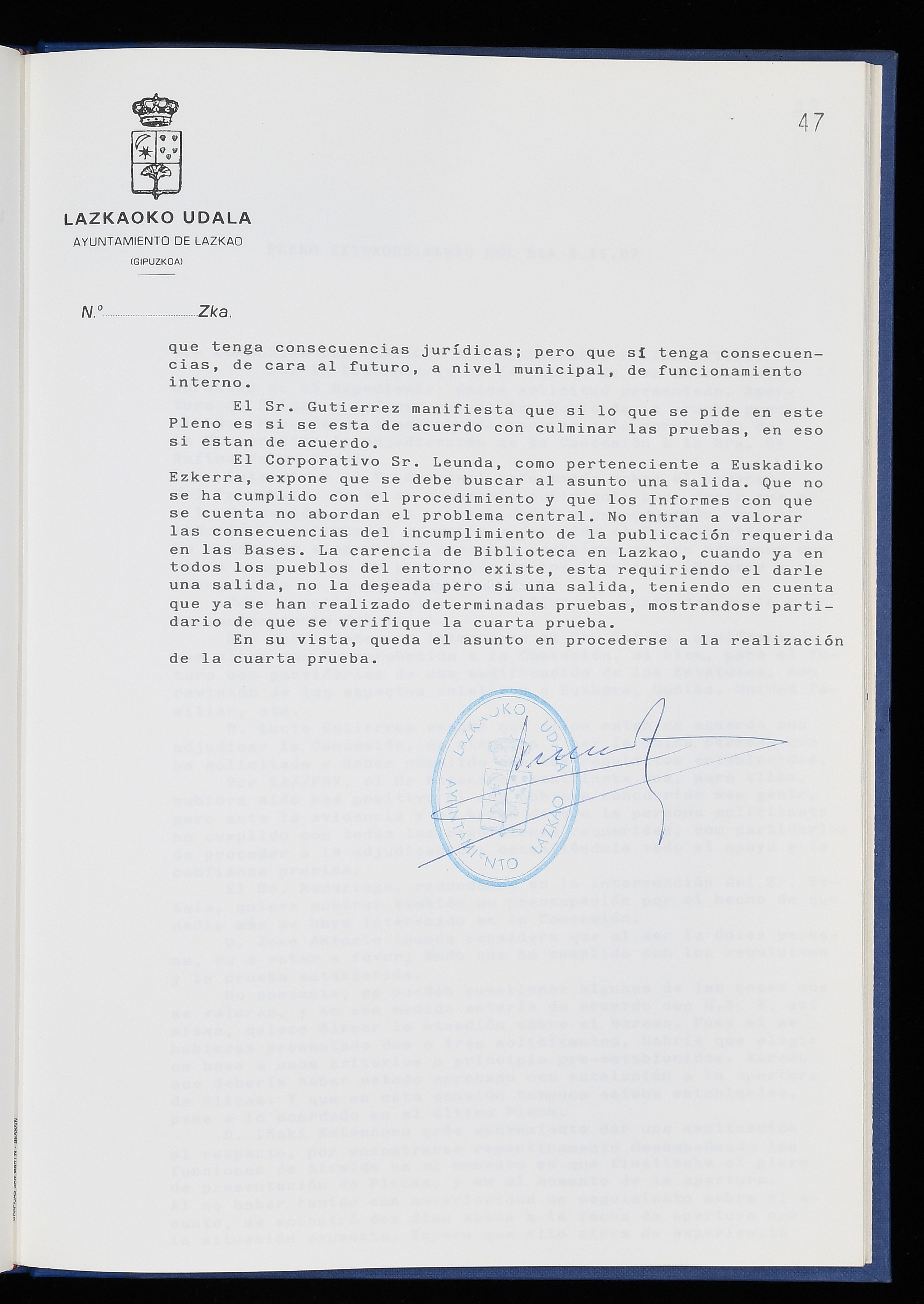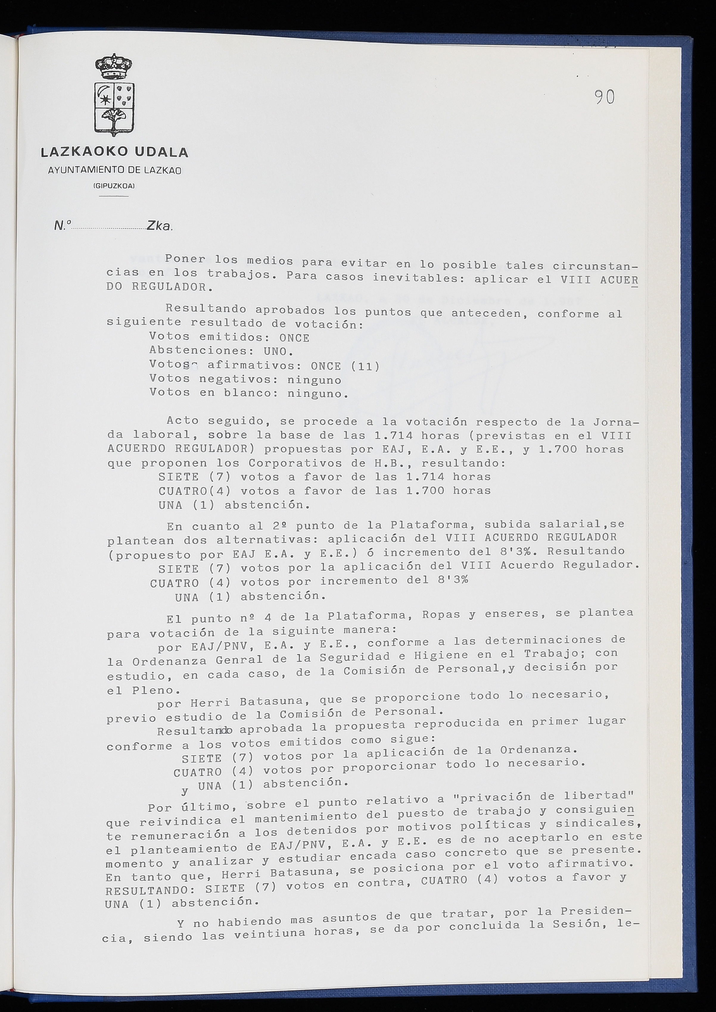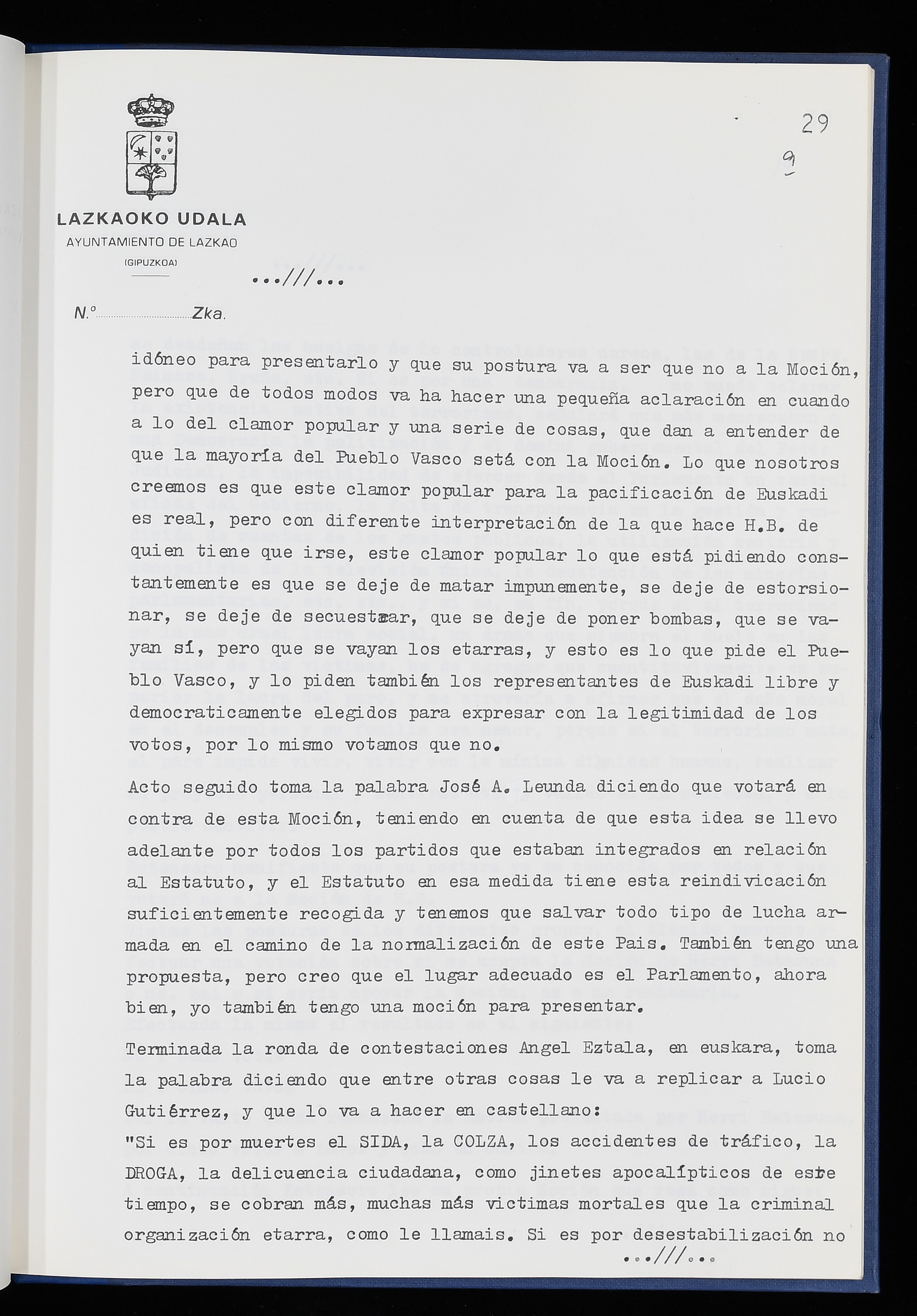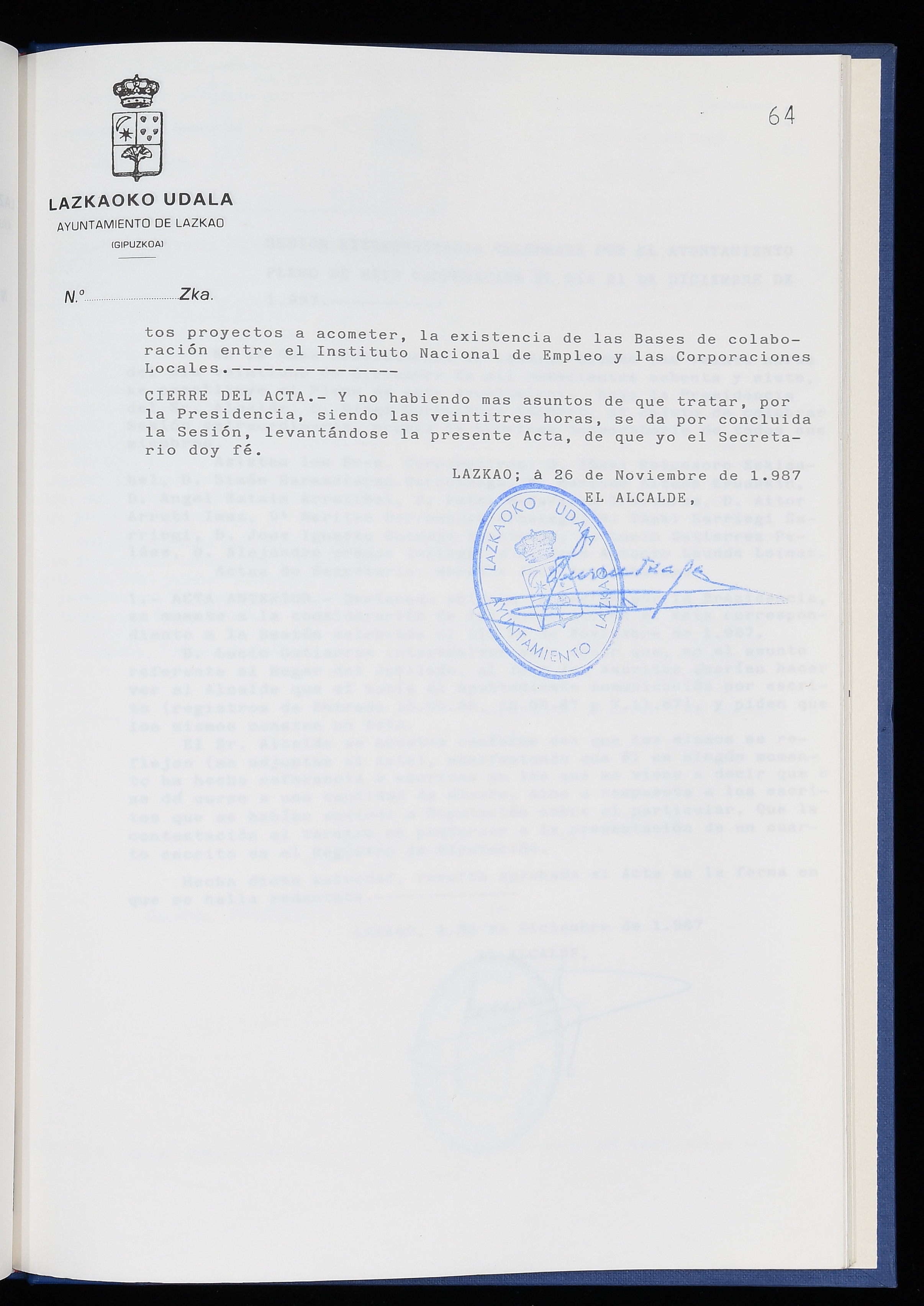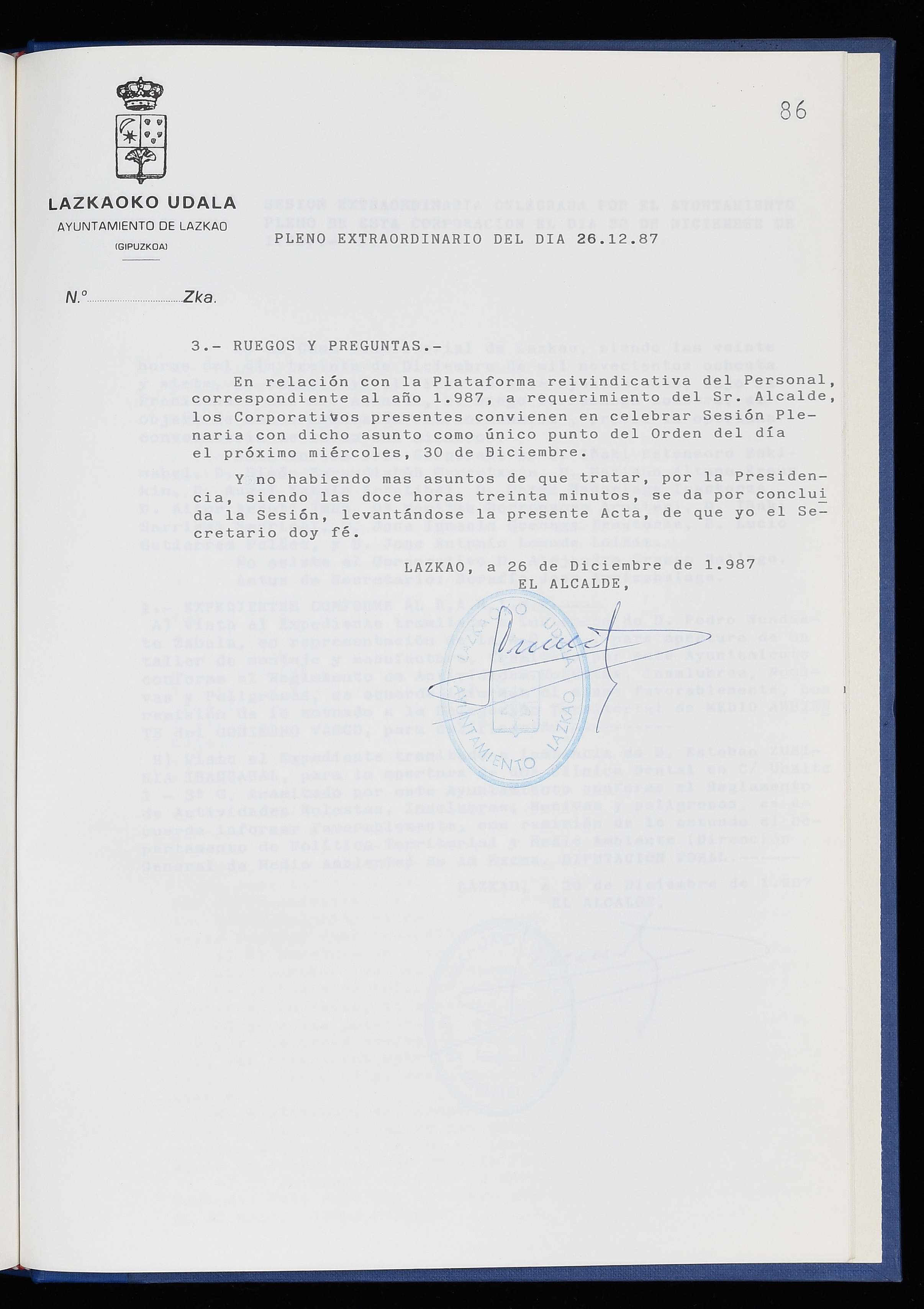 Log in to post commentsEdukiakSailkapenaFuntsaLazkaoko Udal ArtxiboaAtalakUdal AktakSailkapena1.1.4. Osoko Bilkuraren akta liburuakSailkapen berriaOsoko Bilkurako akta liburuakMultimediaIrudiakIdentifikazioaSignaturaakta liburua I-043Hasiera1987-07-23Amaiera1987-12-30AutoritateakTokiaLazkaoLog in to post commentsAkta eratu
