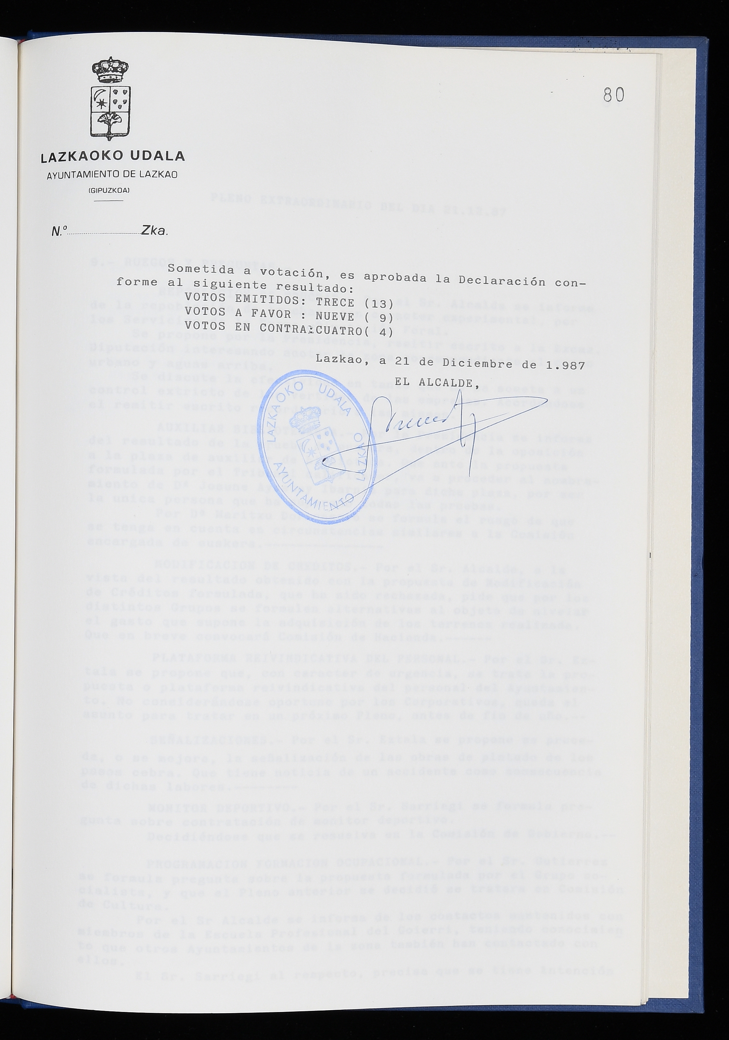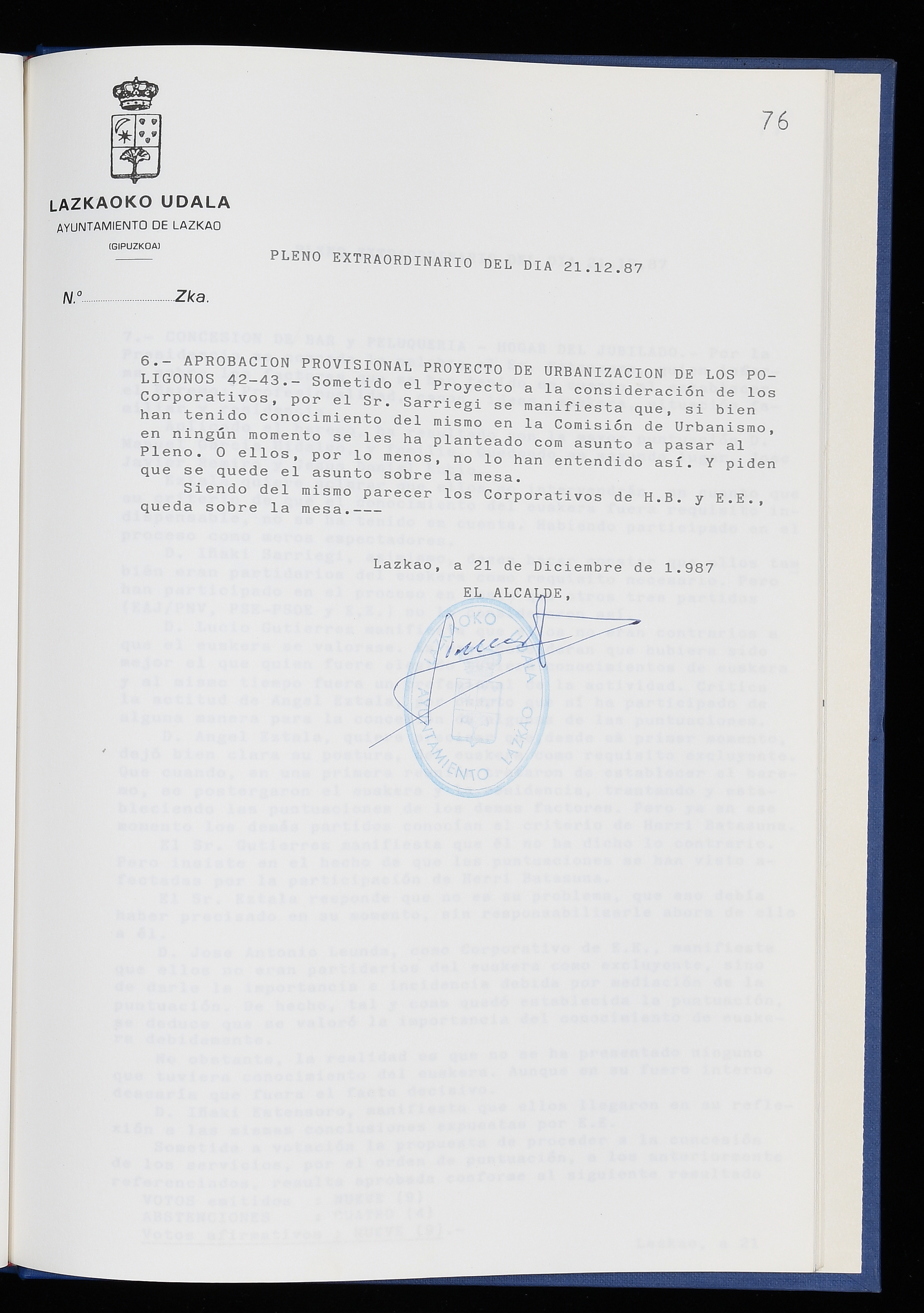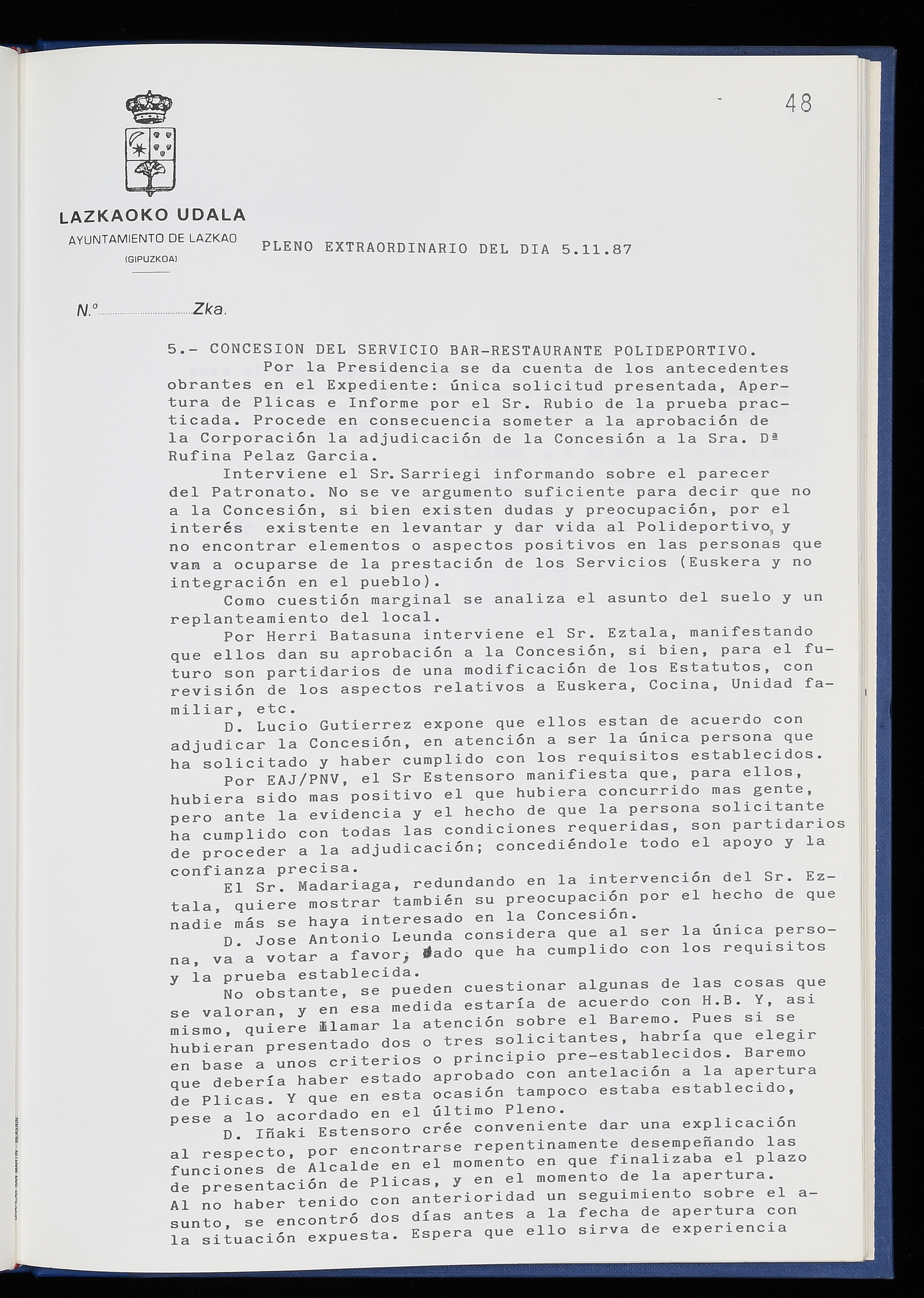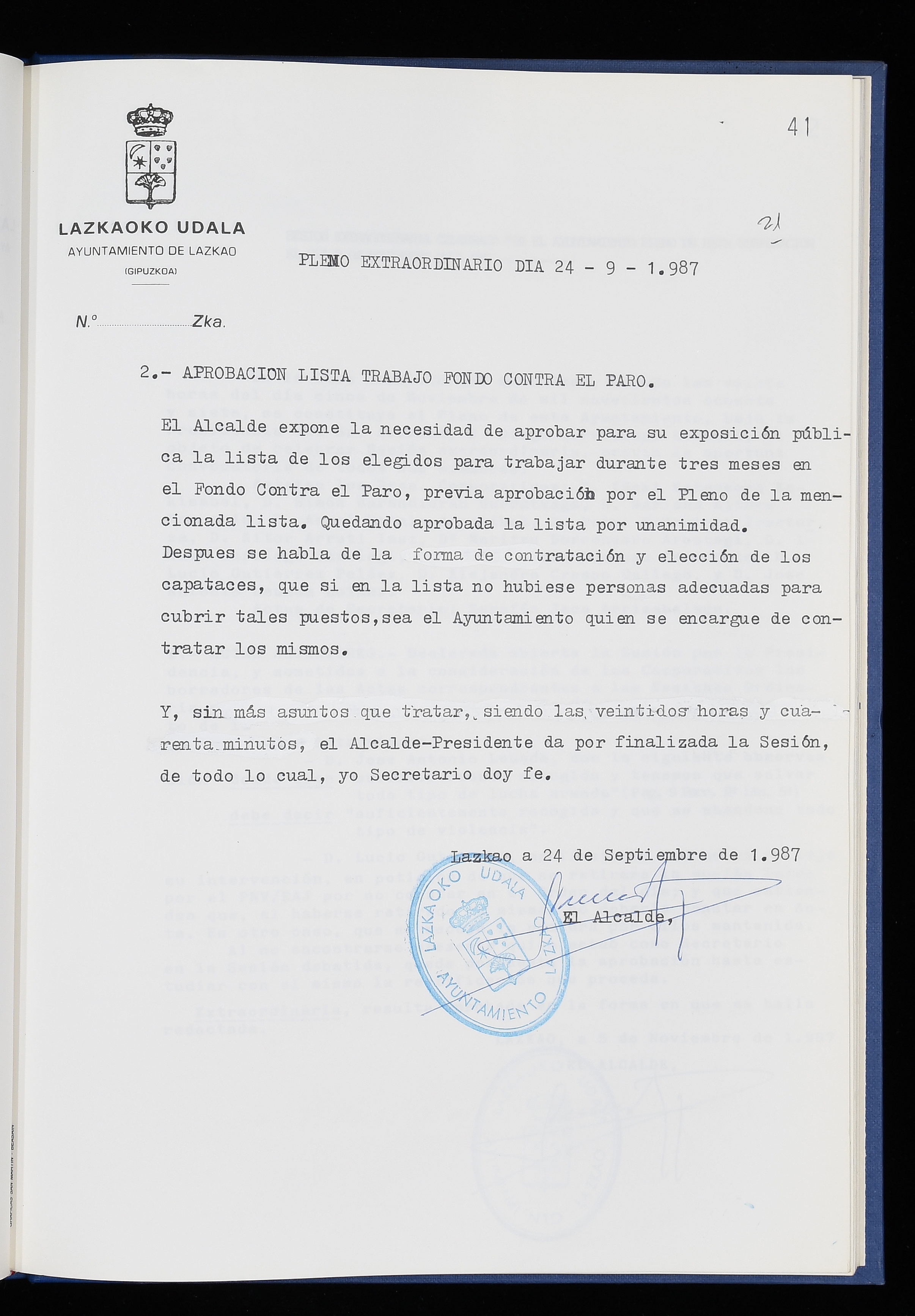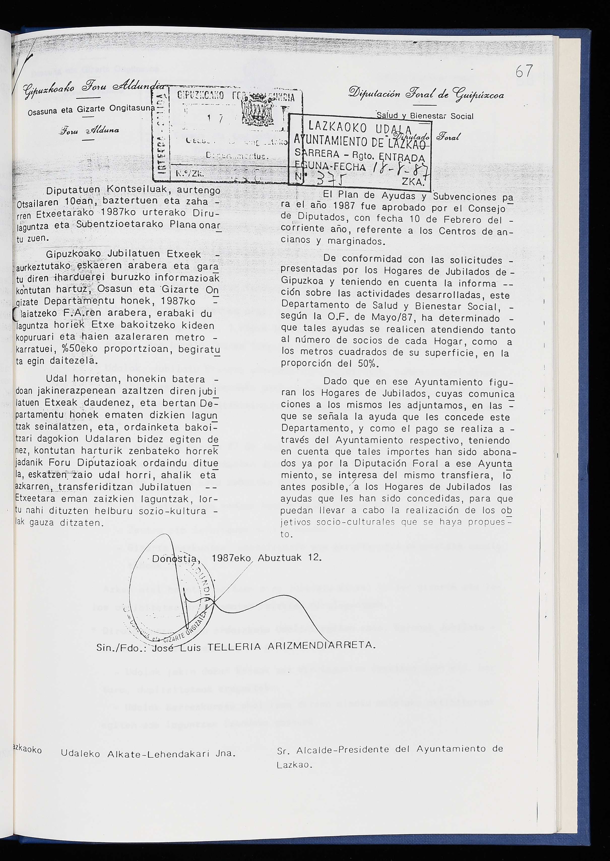 Log in to post commentsEdukiakSailkapenaFuntsaLazkaoko Udal ArtxiboaAtalakUdal AktakSailkapena1.1.4. Osoko Bilkuraren akta liburuakSailkapen berriaOsoko Bilkurako akta liburuakMultimediaIrudiakIdentifikazioaSignaturaakta liburua I-043Hasiera1987-07-23Amaiera1987-12-30AutoritateakTokiaLazkaoLog in to post commentsAkta eratu