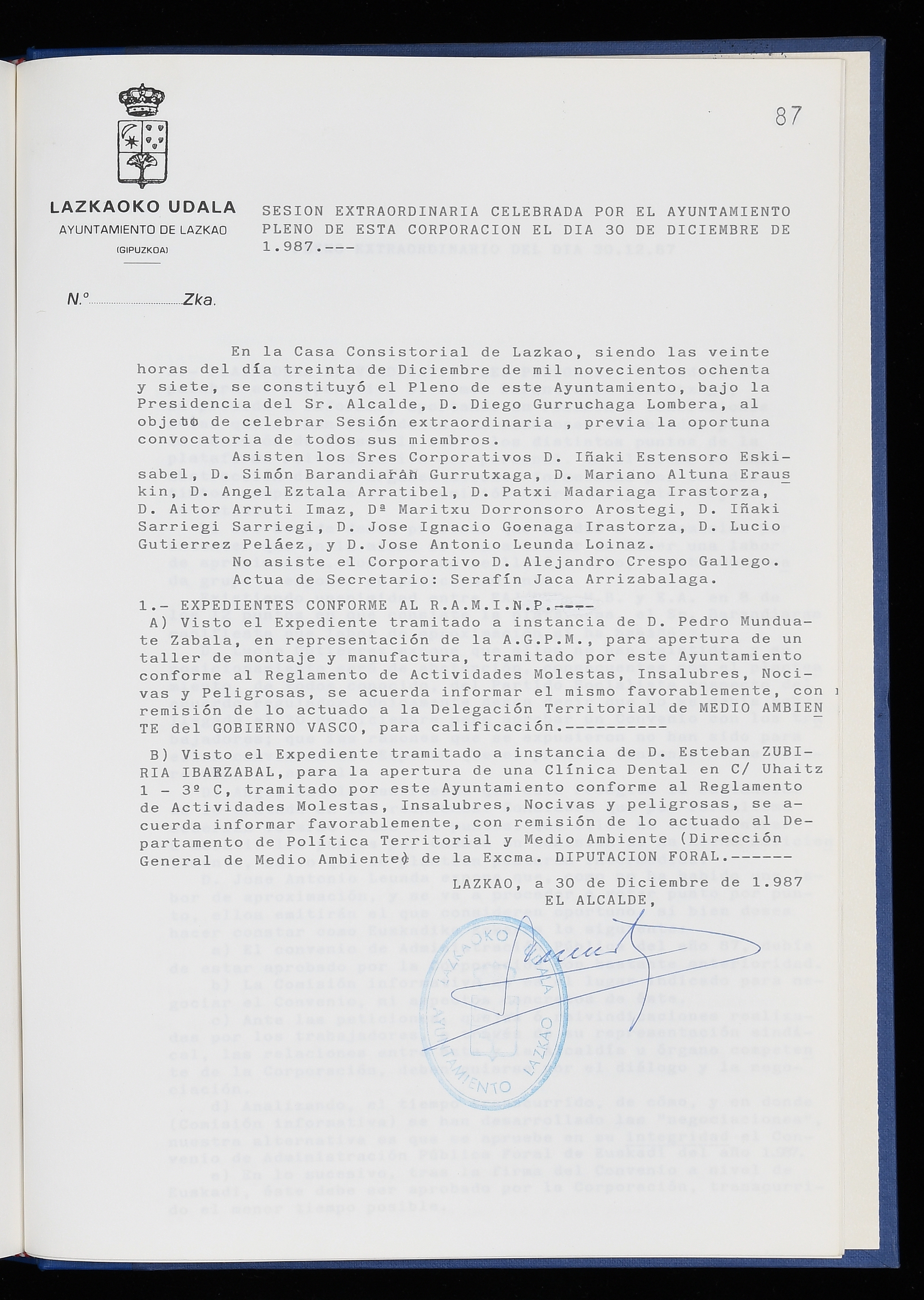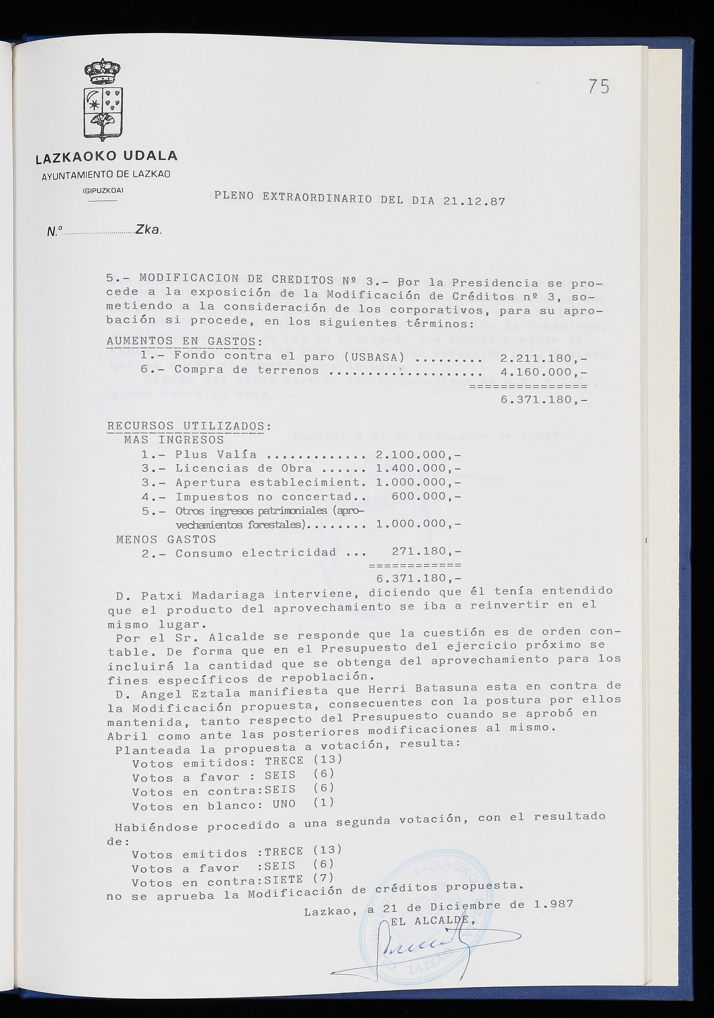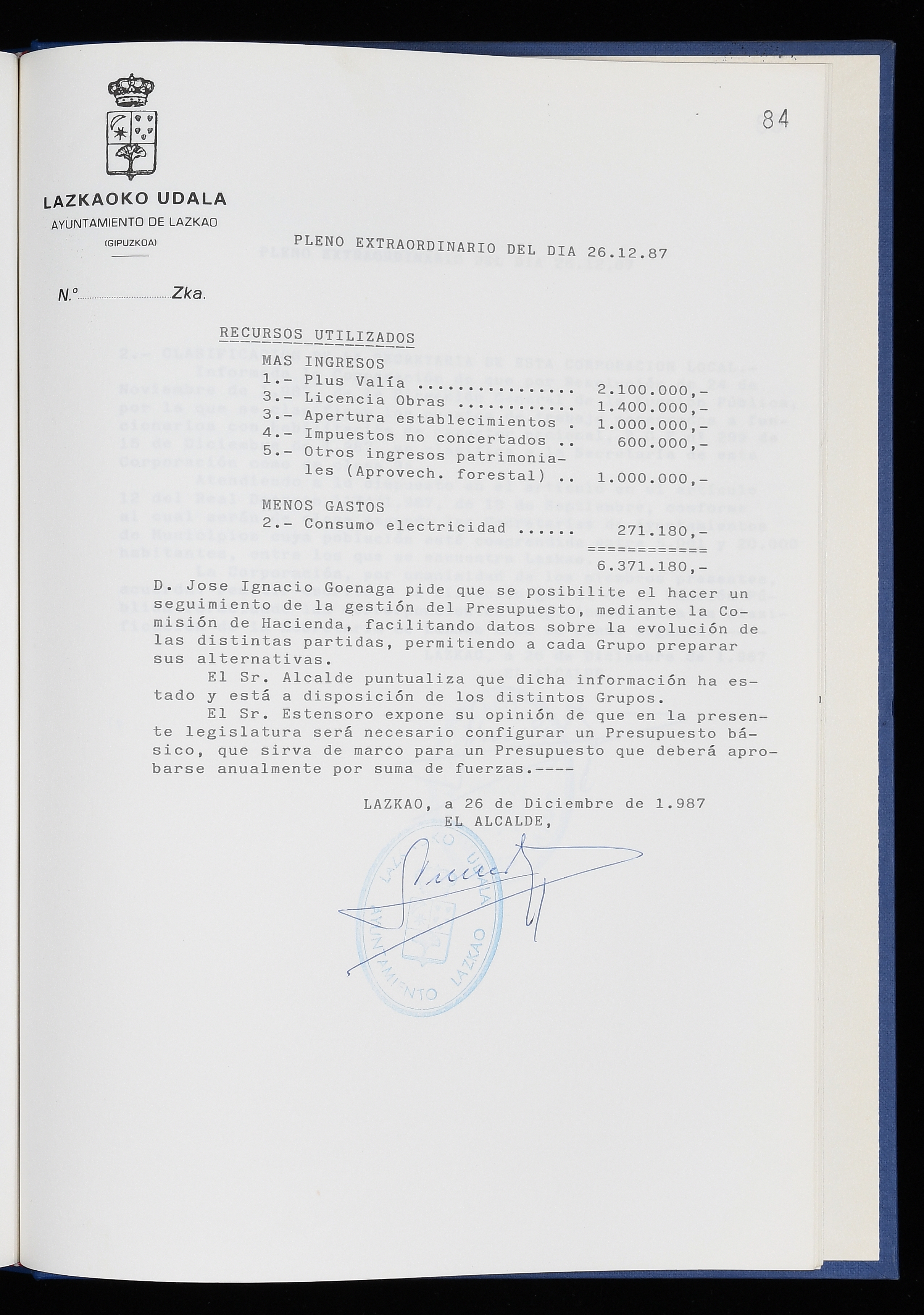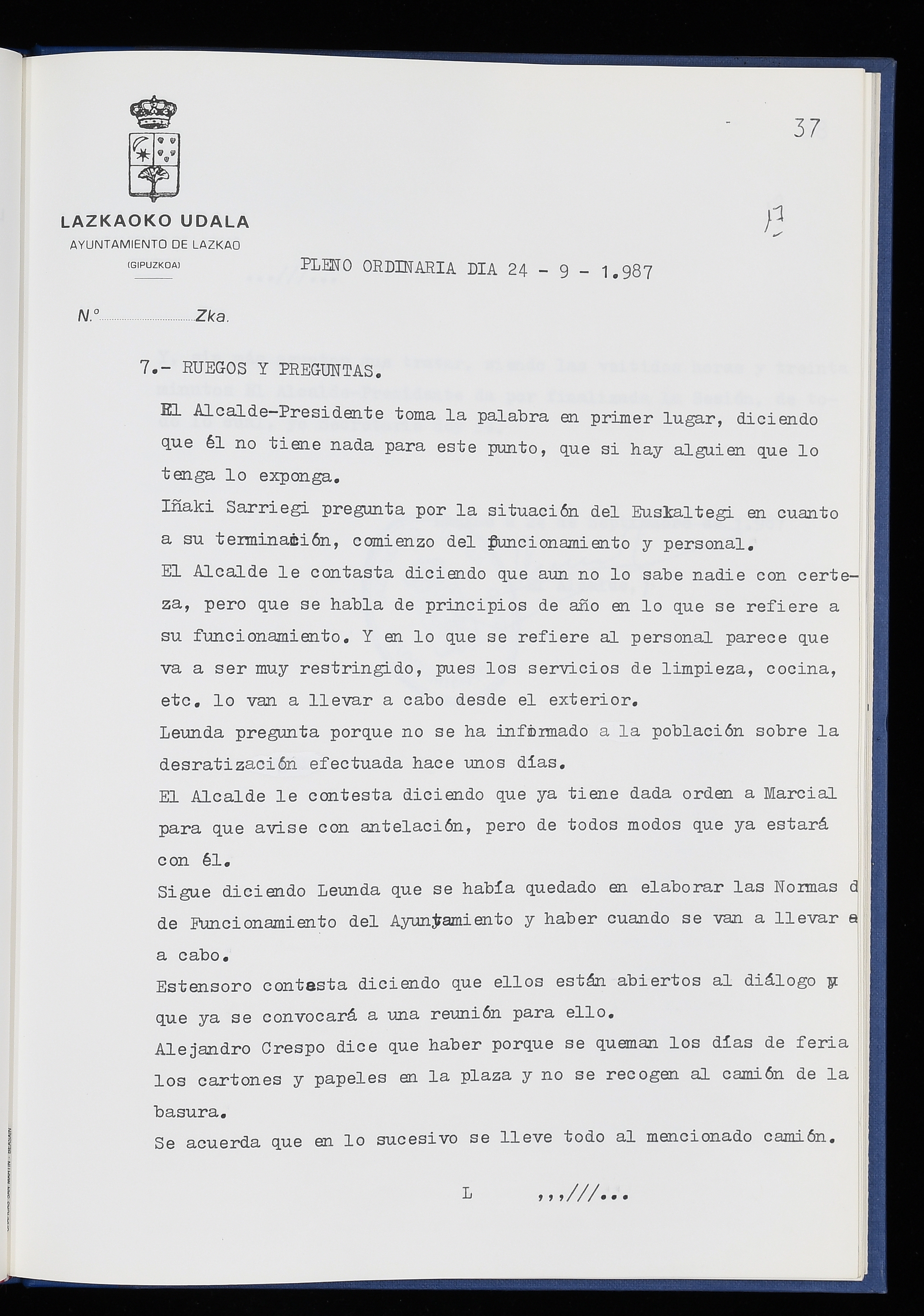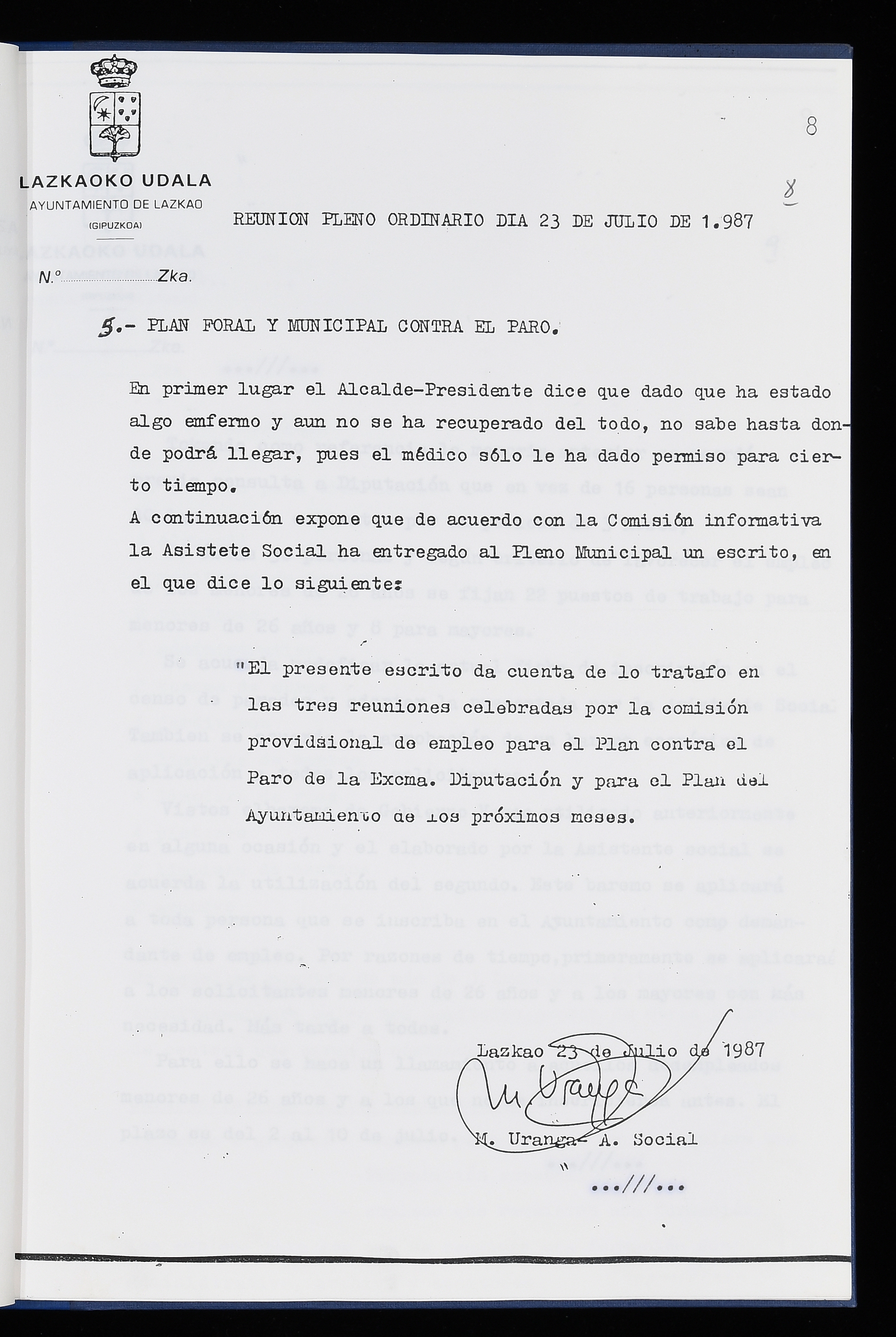 Log in to post commentsEdukiakSailkapenaFuntsaLazkaoko Udal ArtxiboaAtalakUdal AktakSailkapena1.1.4. Osoko Bilkuraren akta liburuakSailkapen berriaOsoko Bilkurako akta liburuakMultimediaIrudiakIdentifikazioaSignaturaakta liburua I-043Hasiera1987-07-23Amaiera1987-12-30AutoritateakTokiaLazkaoLog in to post commentsAkta eratu