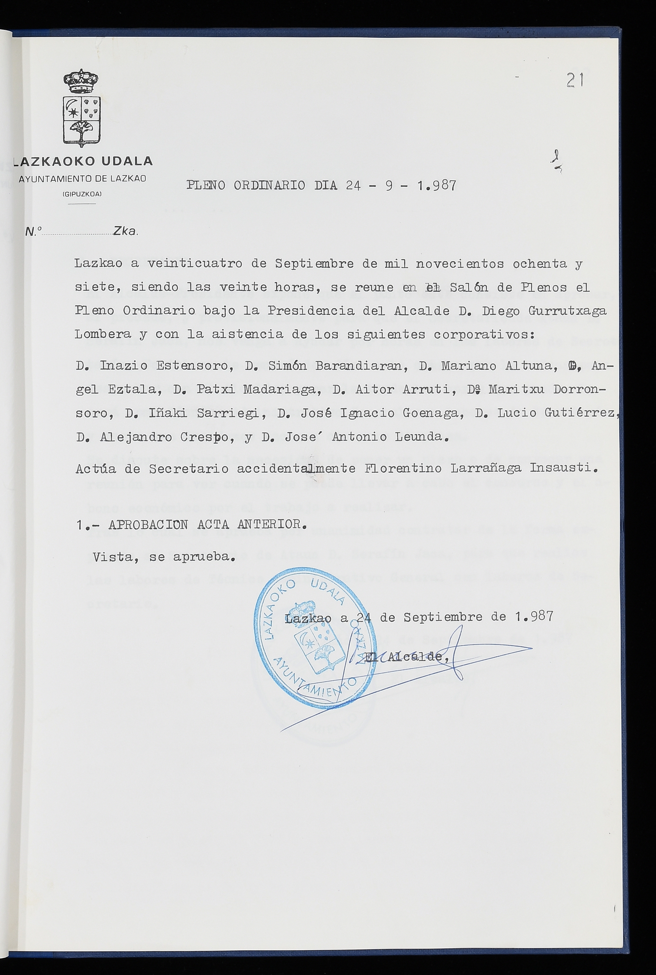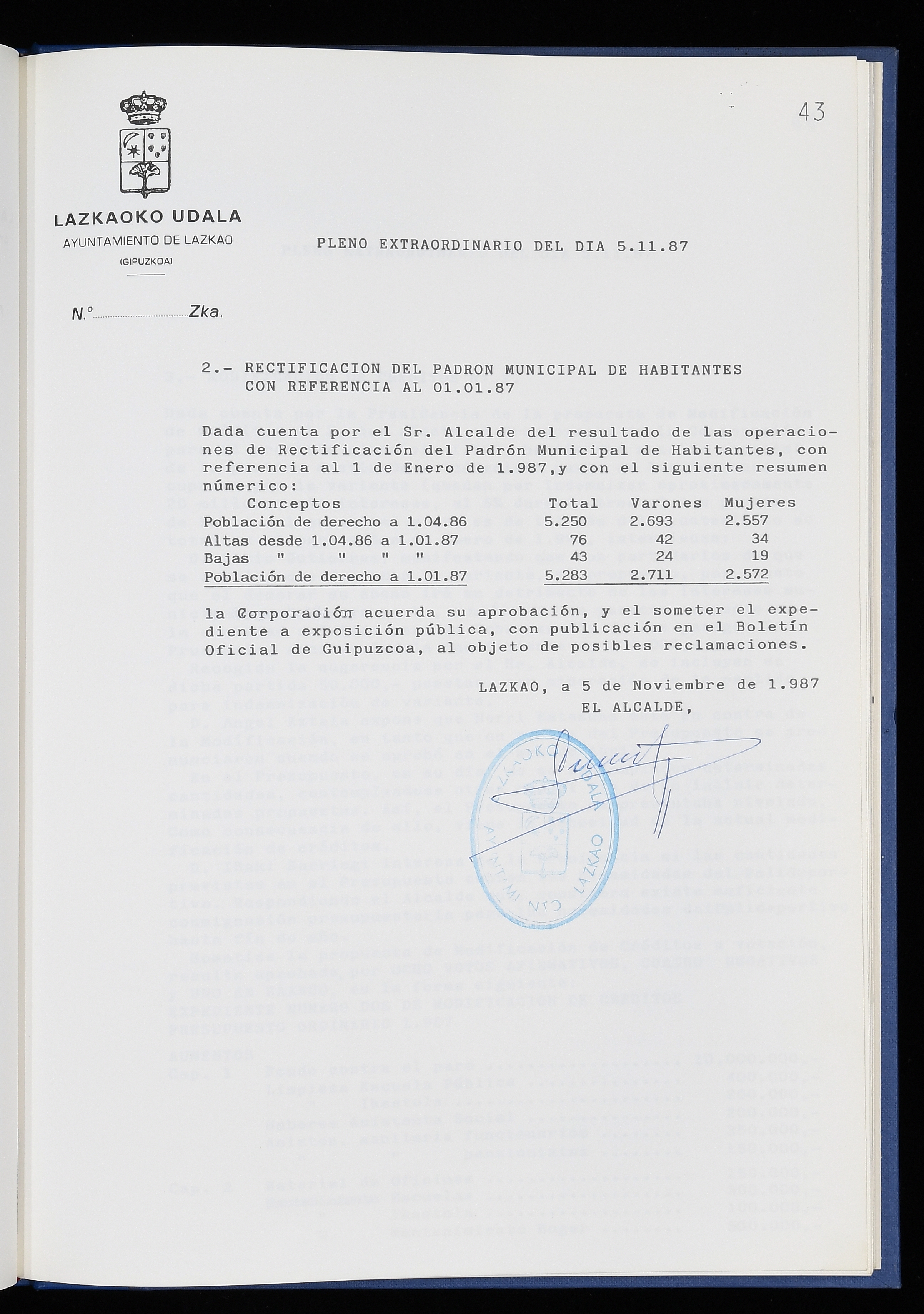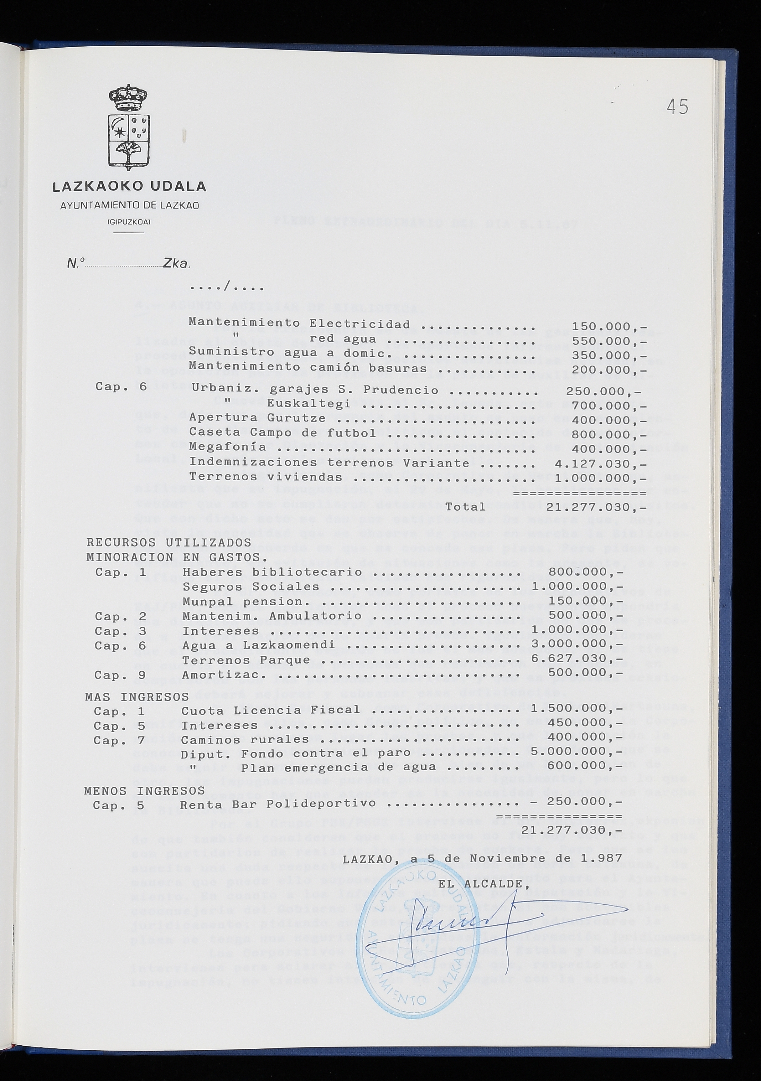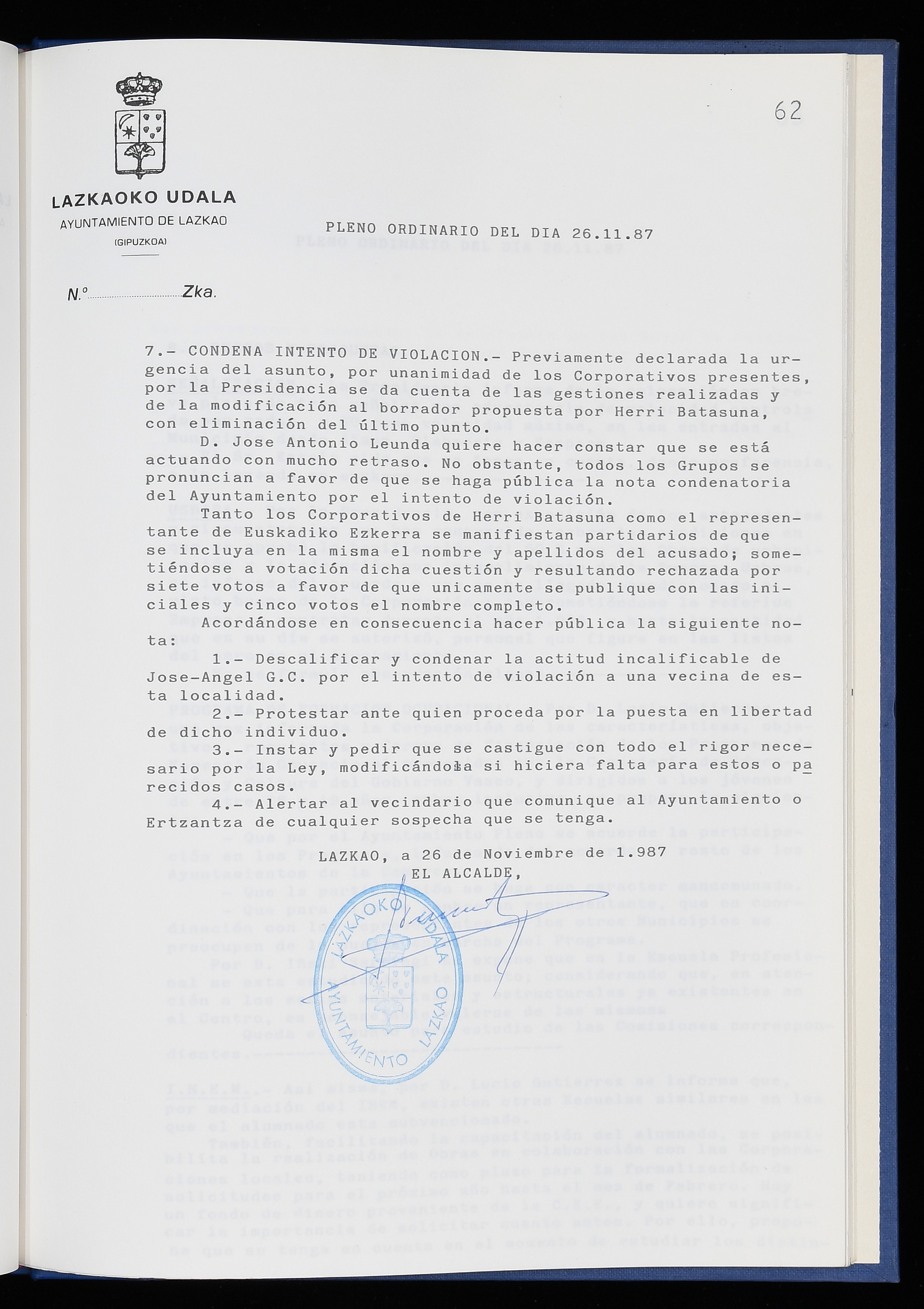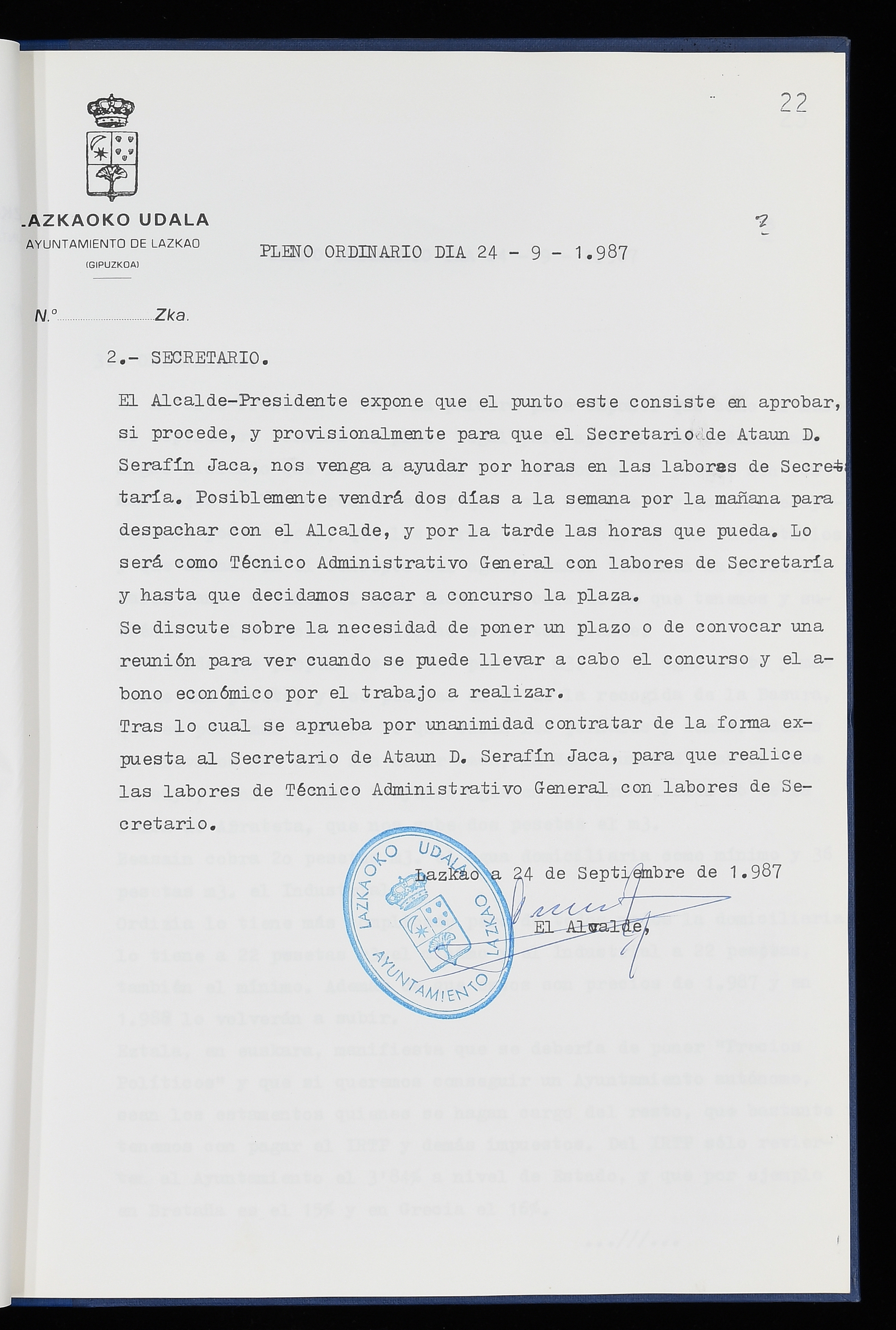 Log in to post commentsEdukiakSailkapenaFuntsaLazkaoko Udal ArtxiboaAtalakUdal AktakSailkapena1.1.4. Osoko Bilkuraren akta liburuakSailkapen berriaOsoko Bilkurako akta liburuakMultimediaIrudiakIdentifikazioaSignaturaakta liburua I-043Hasiera1987-07-23Amaiera1987-12-30AutoritateakTokiaLazkaoLog in to post commentsAkta eratu