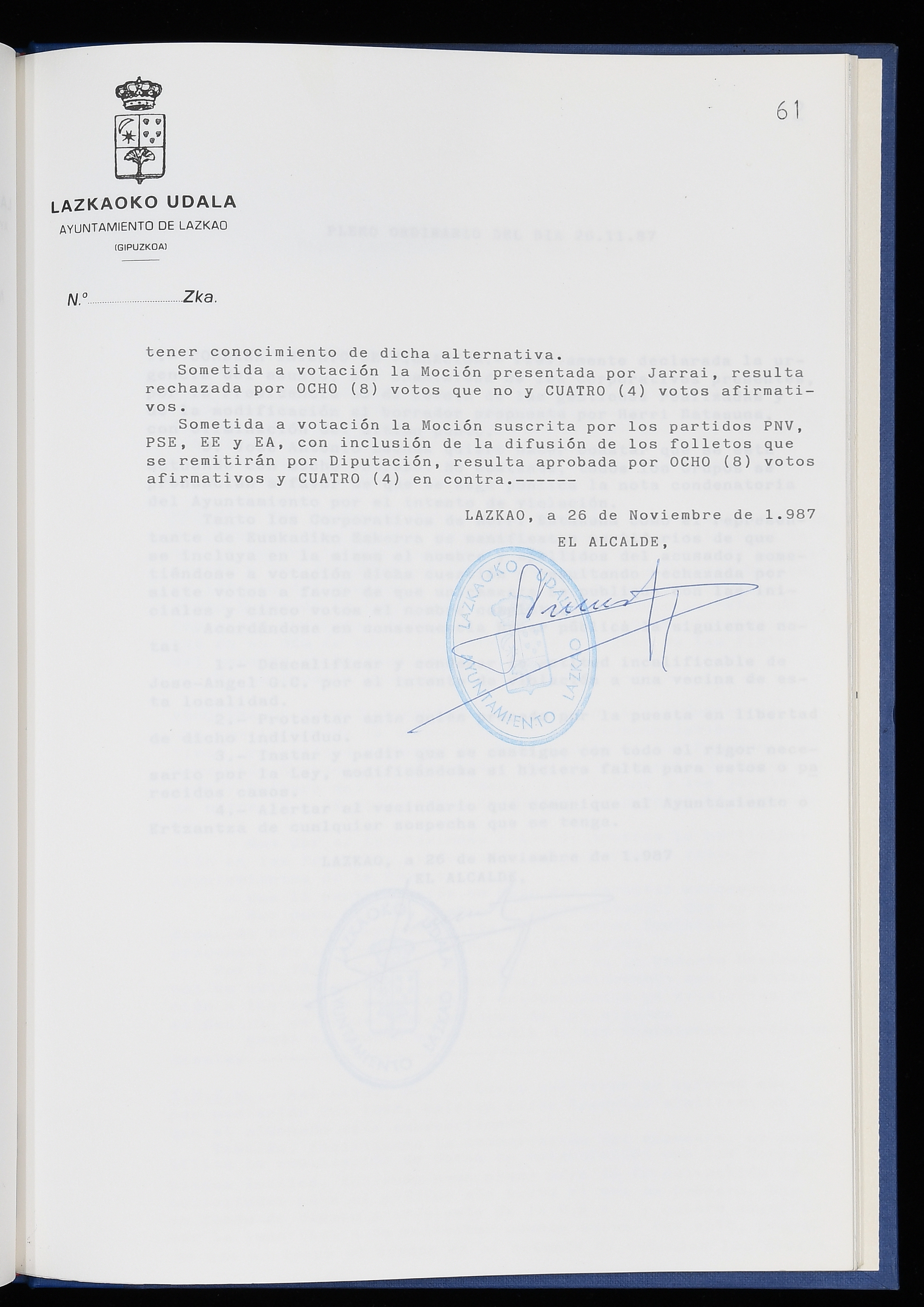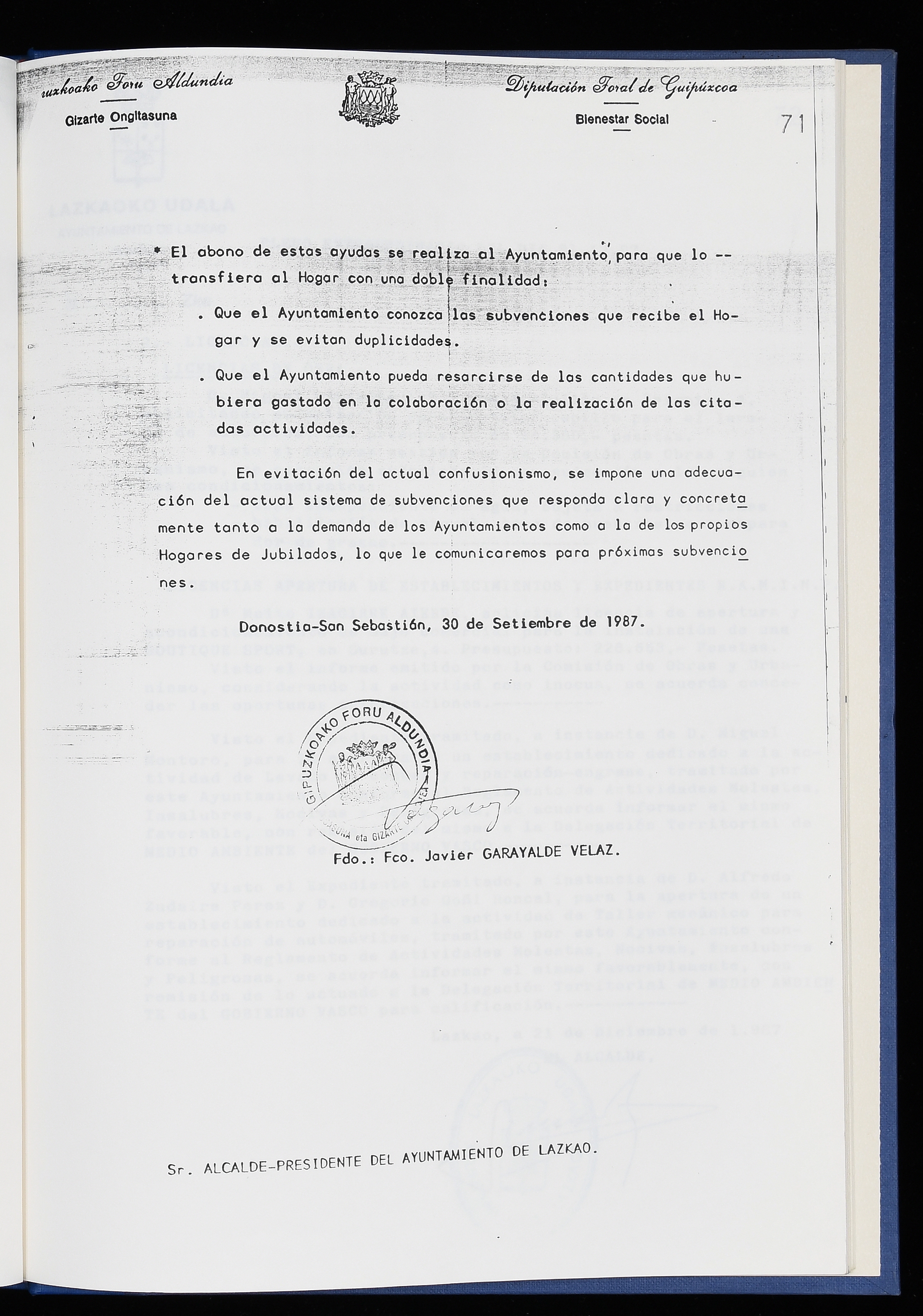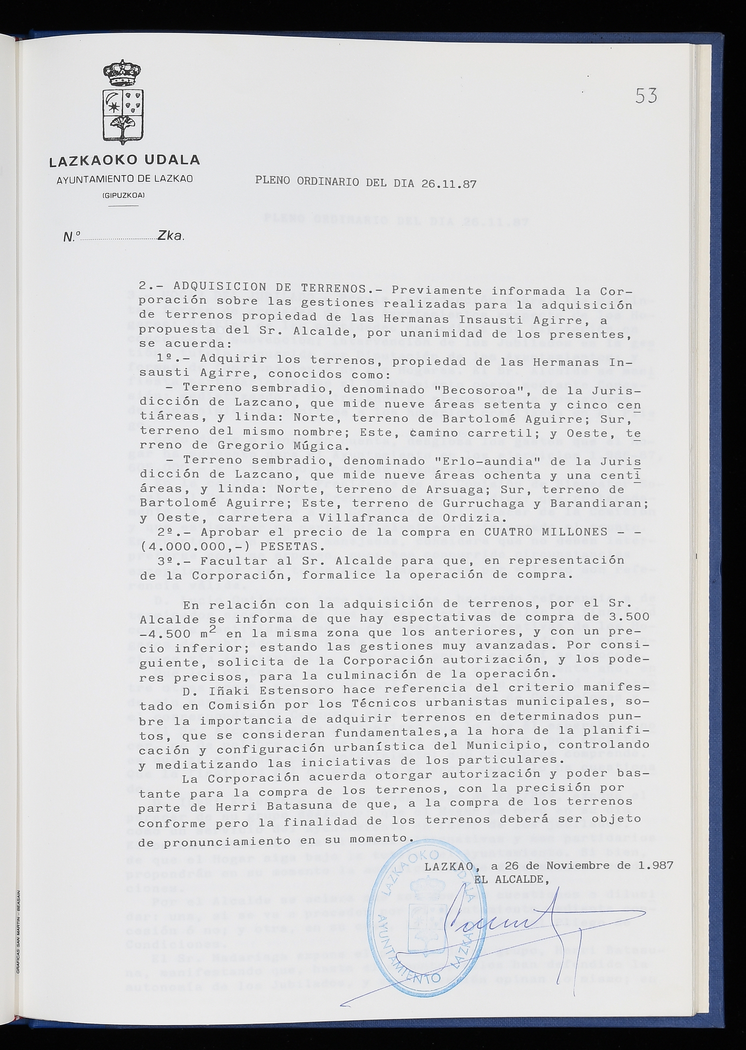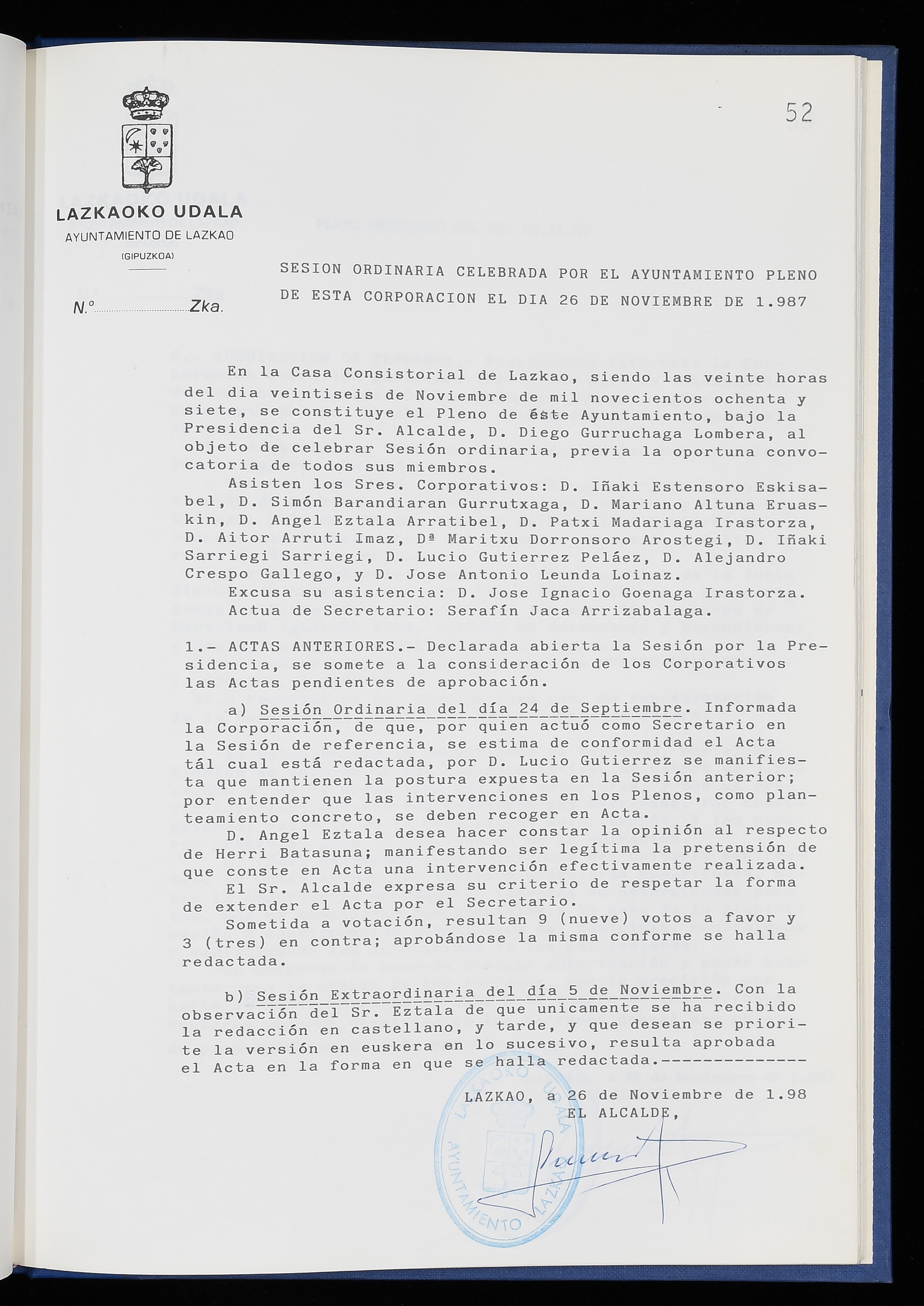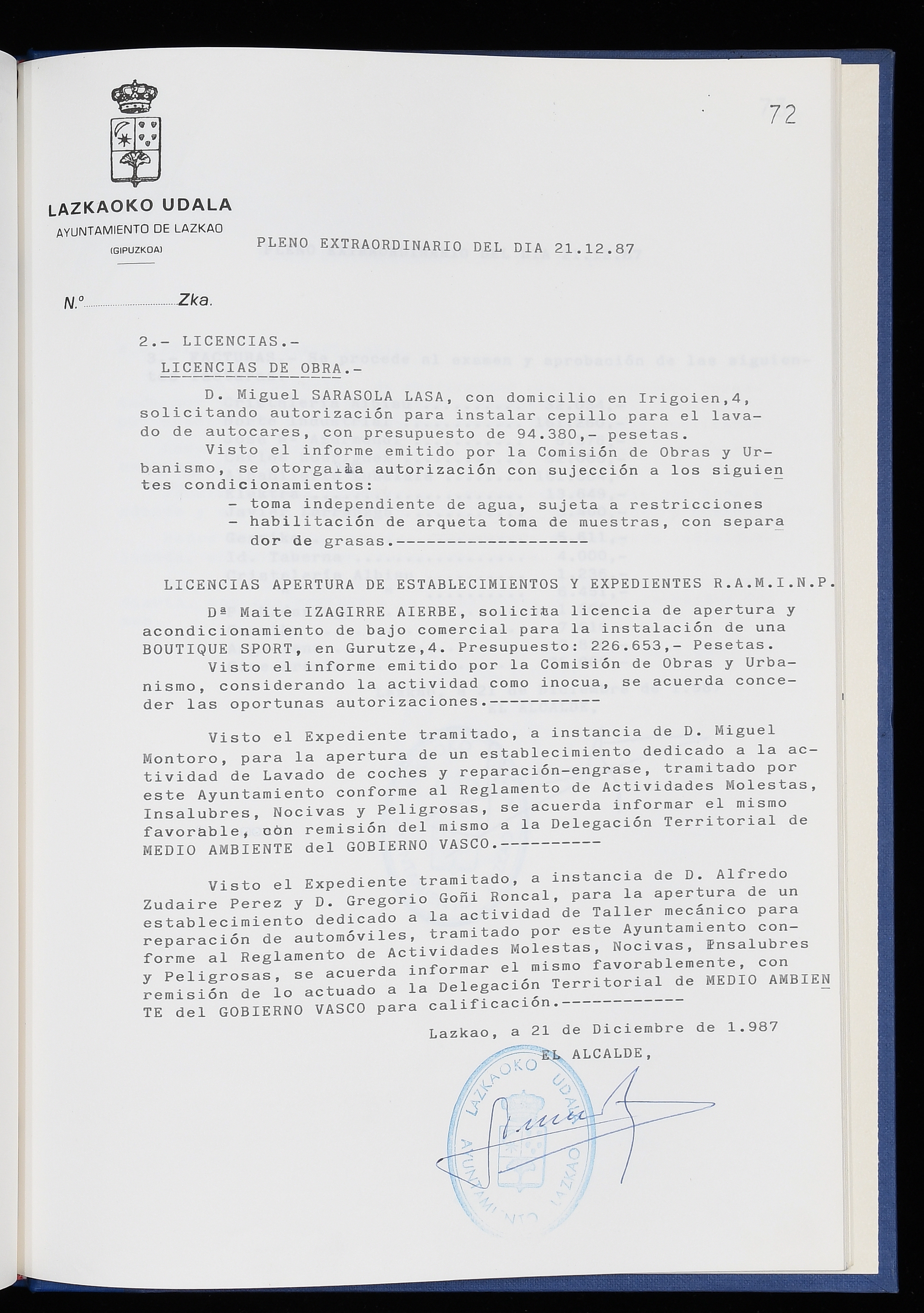 Log in to post commentsEdukiakSailkapenaFuntsaLazkaoko Udal ArtxiboaAtalakUdal AktakSailkapena1.1.4. Osoko Bilkuraren akta liburuakSailkapen berriaOsoko Bilkurako akta liburuakMultimediaIrudiakIdentifikazioaSignaturaakta liburua I-043Hasiera1987-07-23Amaiera1987-12-30AutoritateakTokiaLazkaoLog in to post commentsAkta eratu