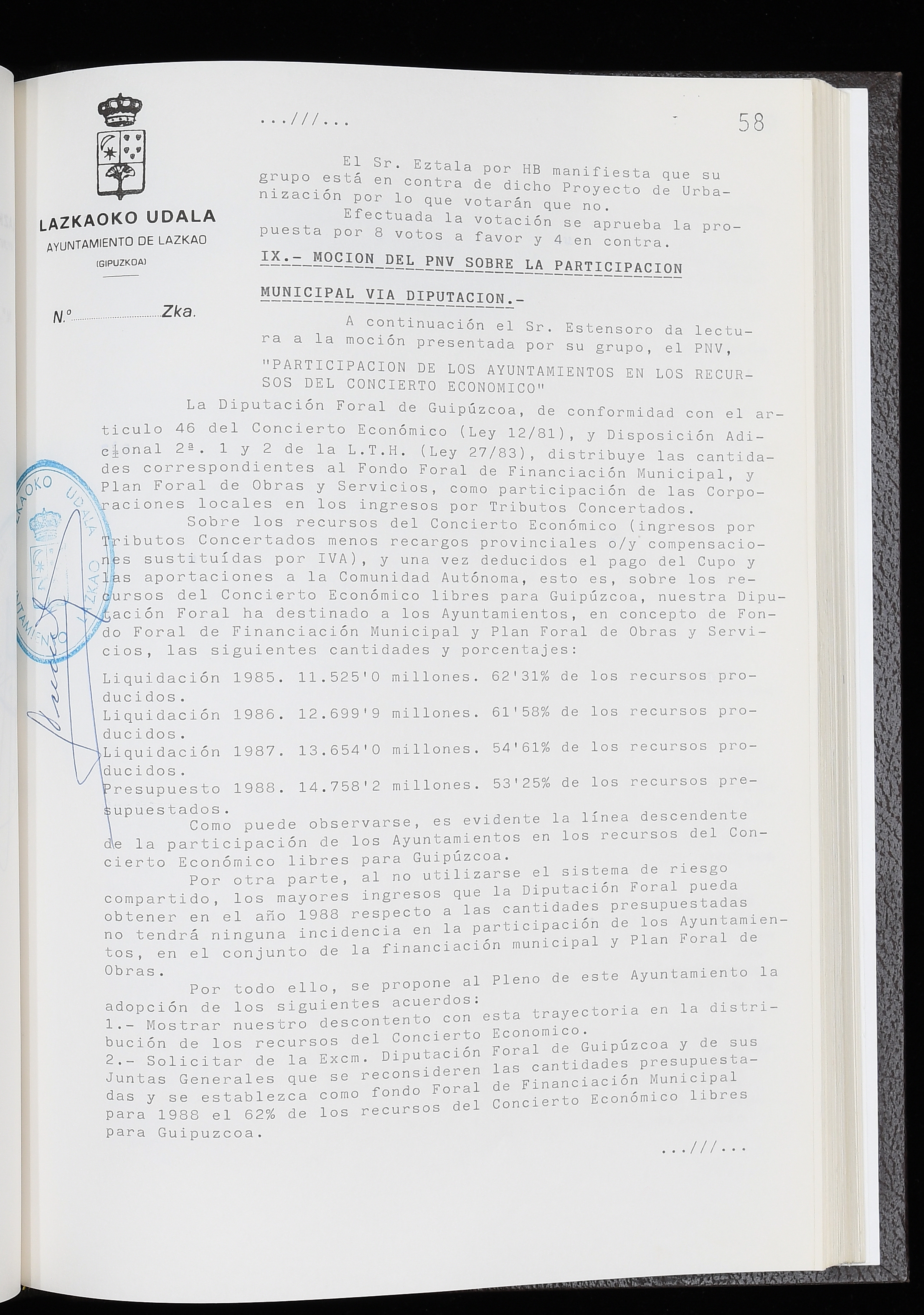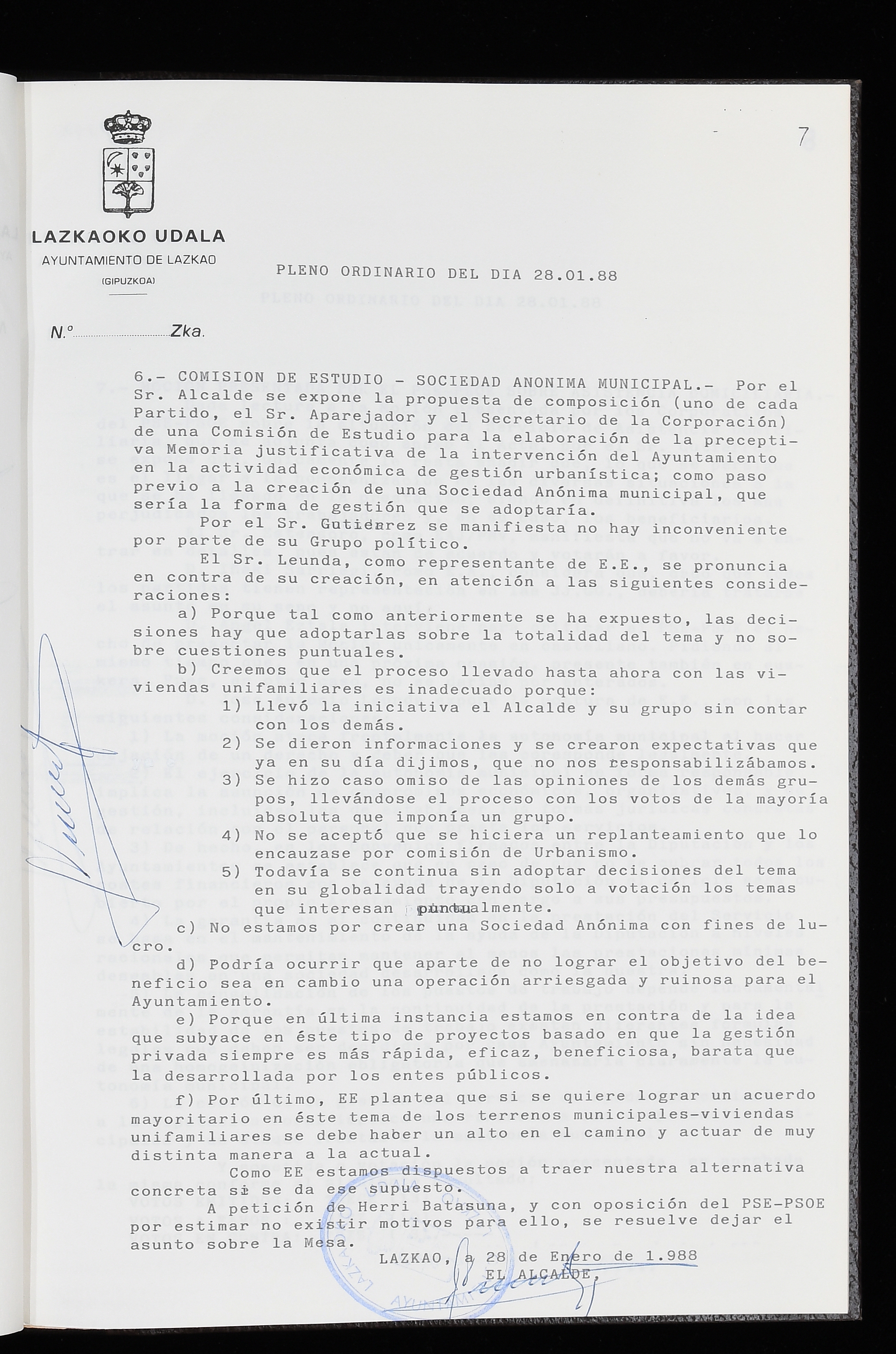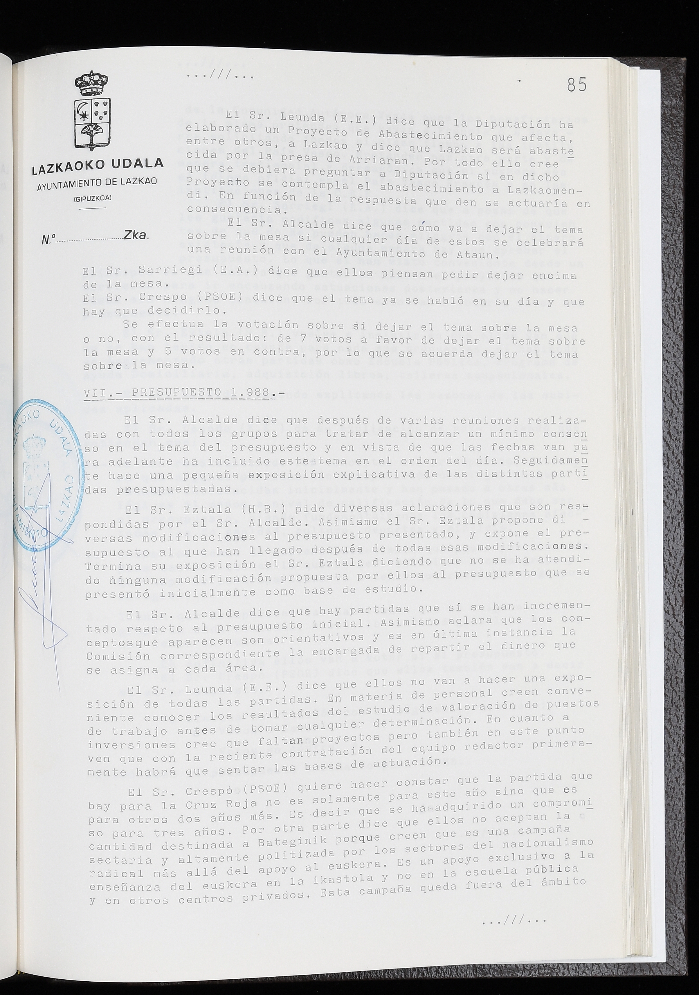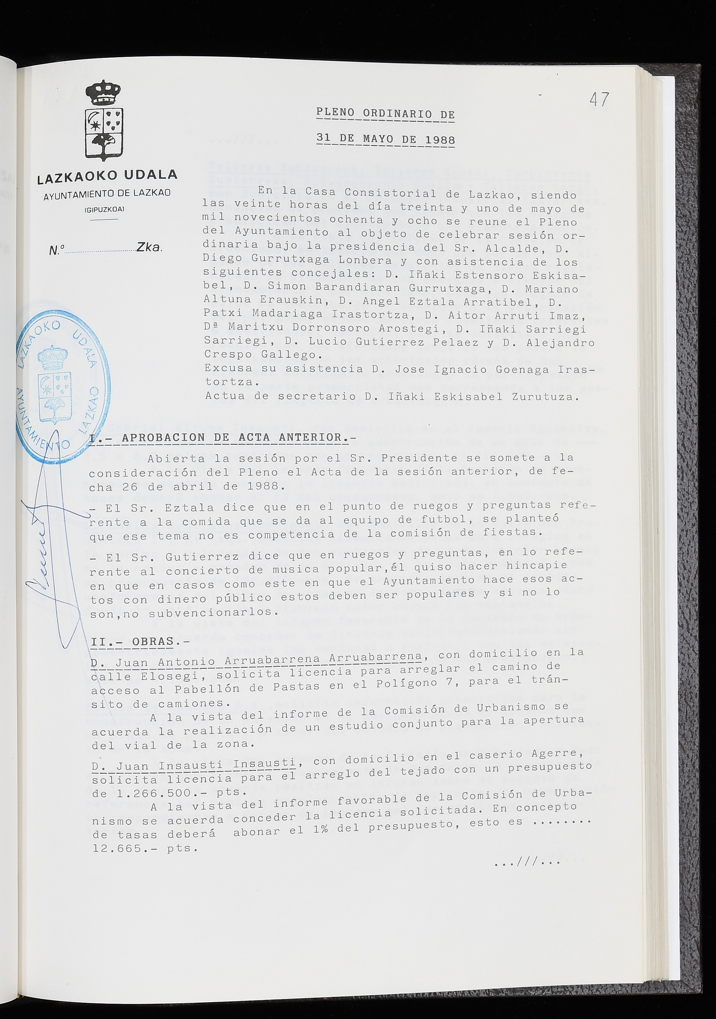 Log in to post commentsEdukiakSailkapenaFuntsaLazkaoko Udal ArtxiboaAtalakUdal AktakSailkapena1.1.4. Osoko Bilkuraren akta liburuakSailkapen berriaOsoko Bilkurako akta liburuakMultimediaIrudiakIdentifikazioaSignaturaakta liburua I-045Hasiera1988-01-28Amaiera1988-12-22AutoritateakTokiaLazkaoLog in to post commentsAkta eratu