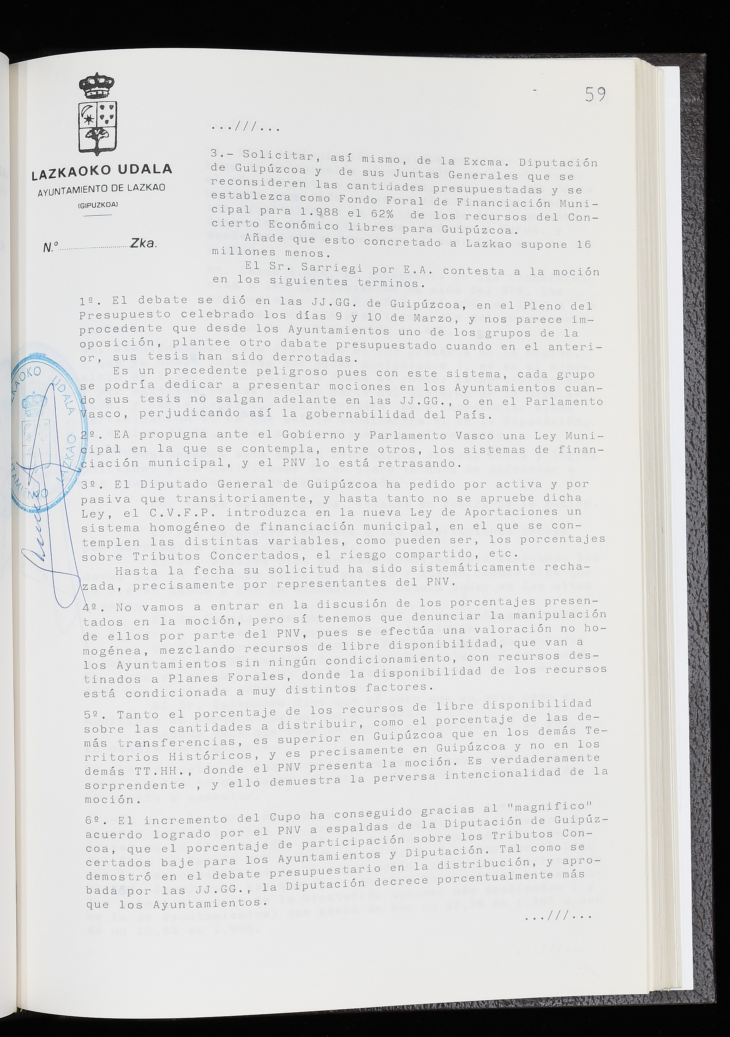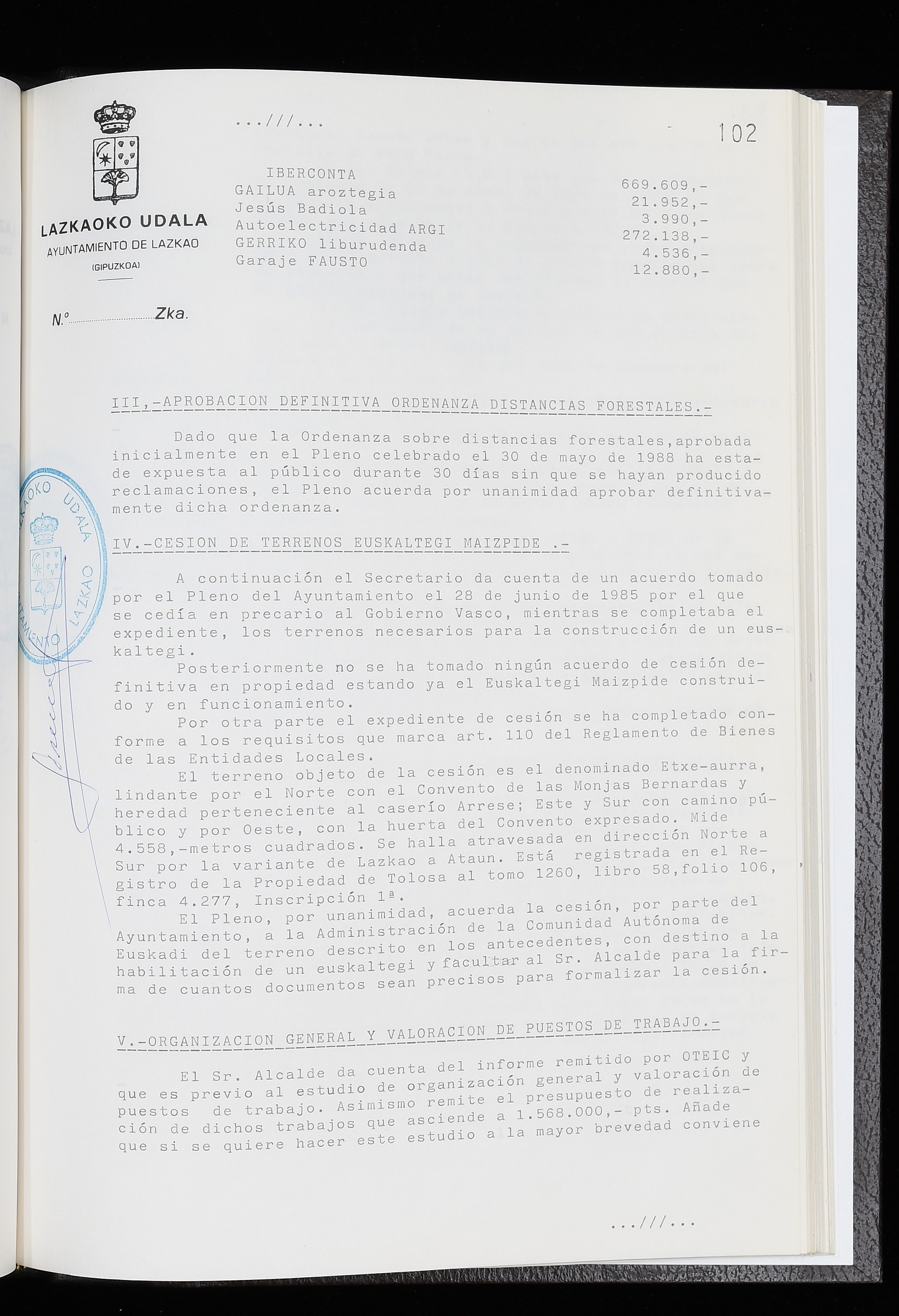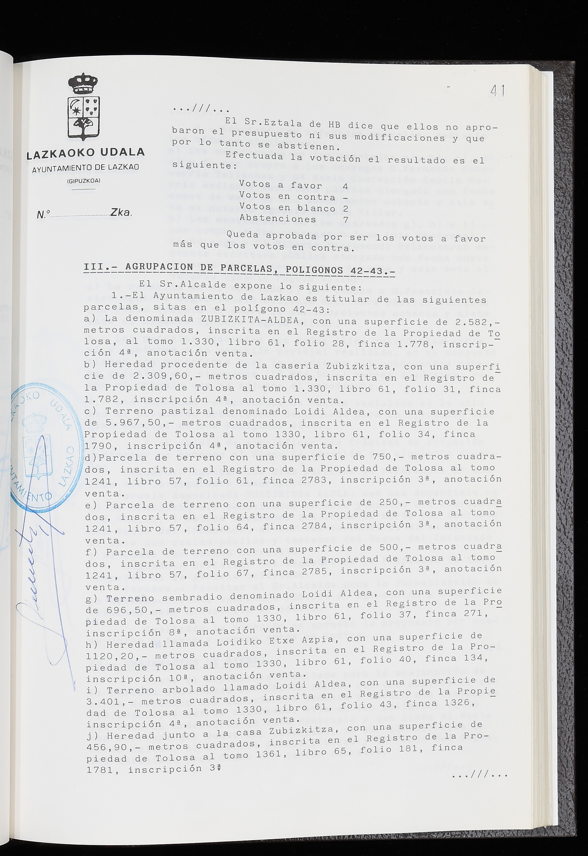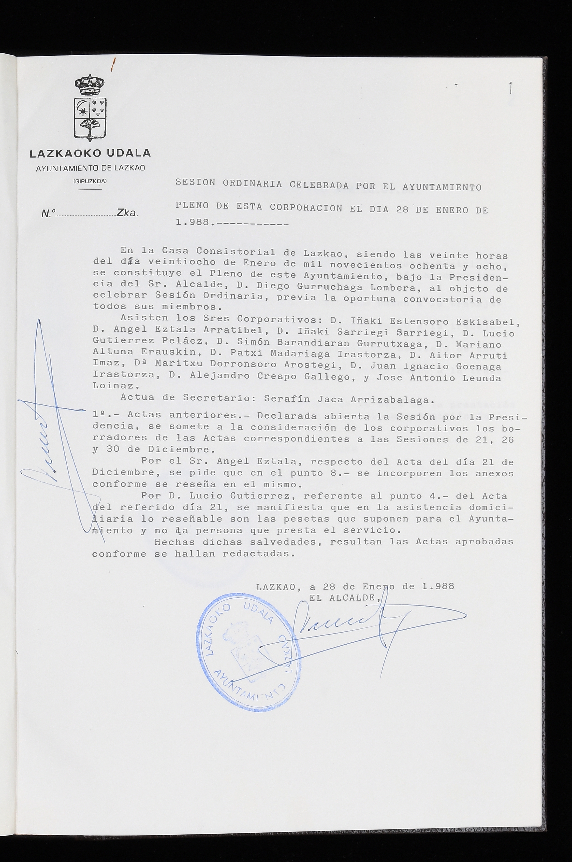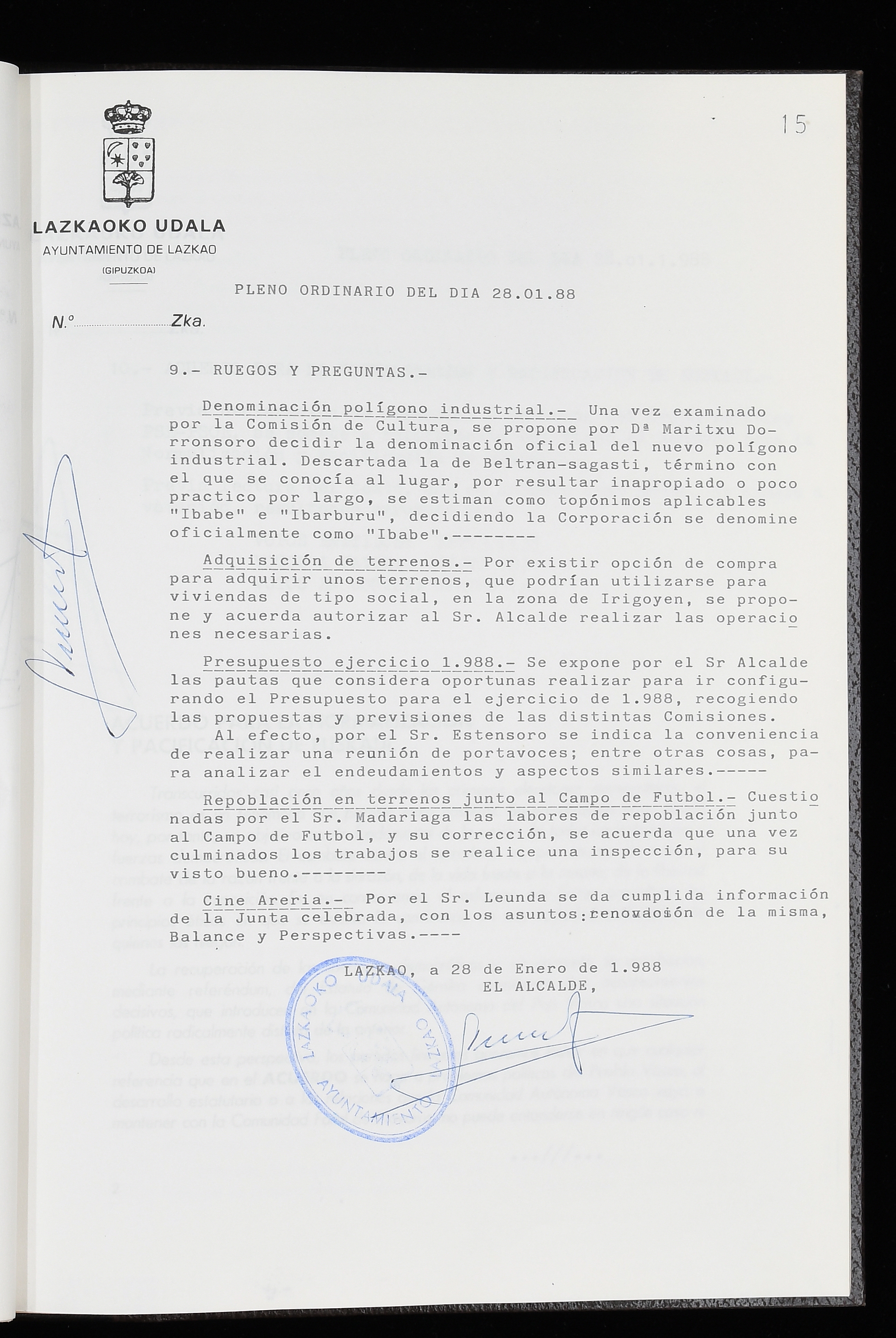 Log in to post commentsEdukiakSailkapenaFuntsaLazkaoko Udal ArtxiboaAtalakUdal AktakSailkapena1.1.4. Osoko Bilkuraren akta liburuakSailkapen berriaOsoko Bilkurako akta liburuakMultimediaIrudiakIdentifikazioaSignaturaakta liburua I-045Hasiera1988-01-28Amaiera1988-12-22AutoritateakTokiaLazkaoLog in to post commentsAkta eratu