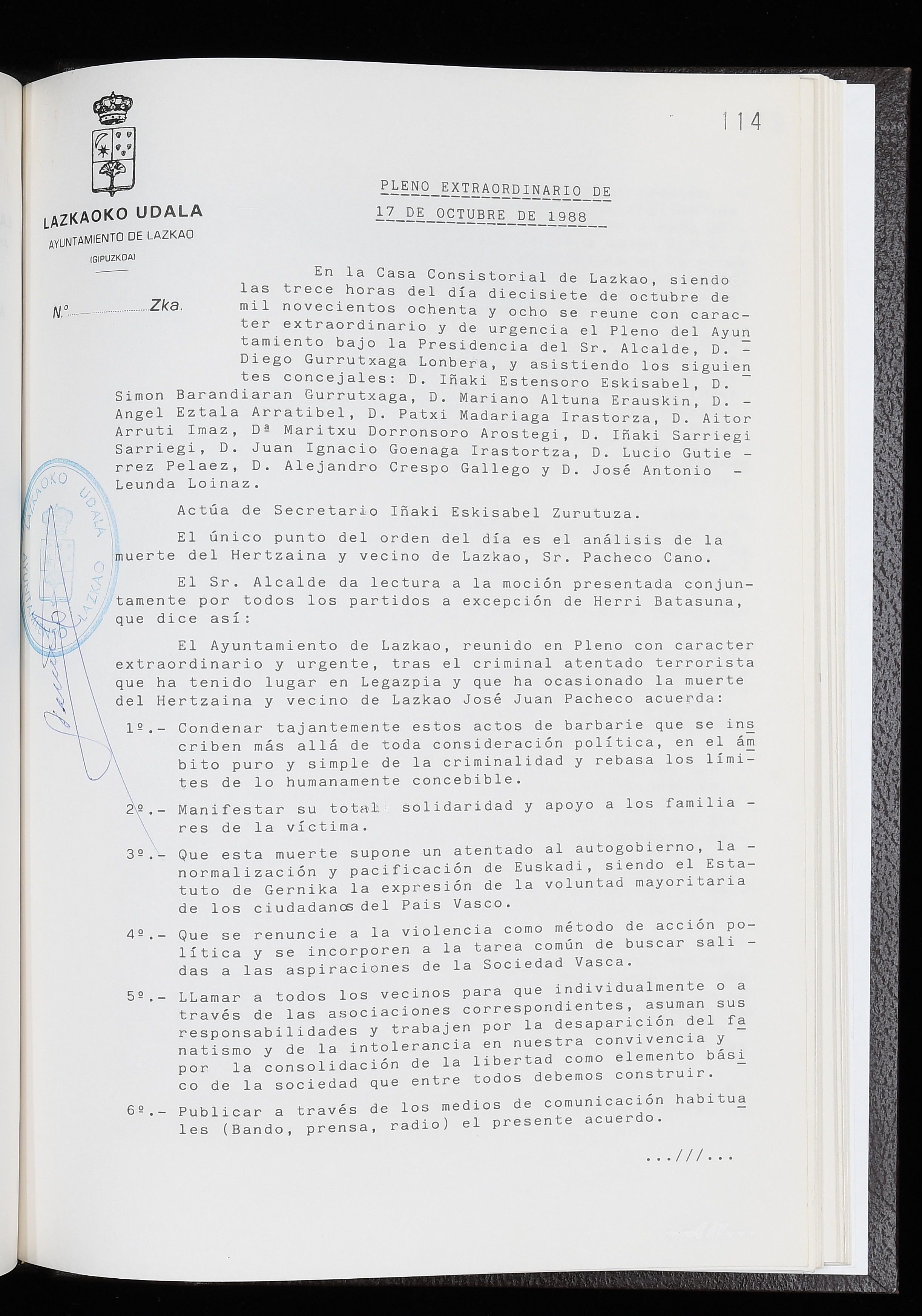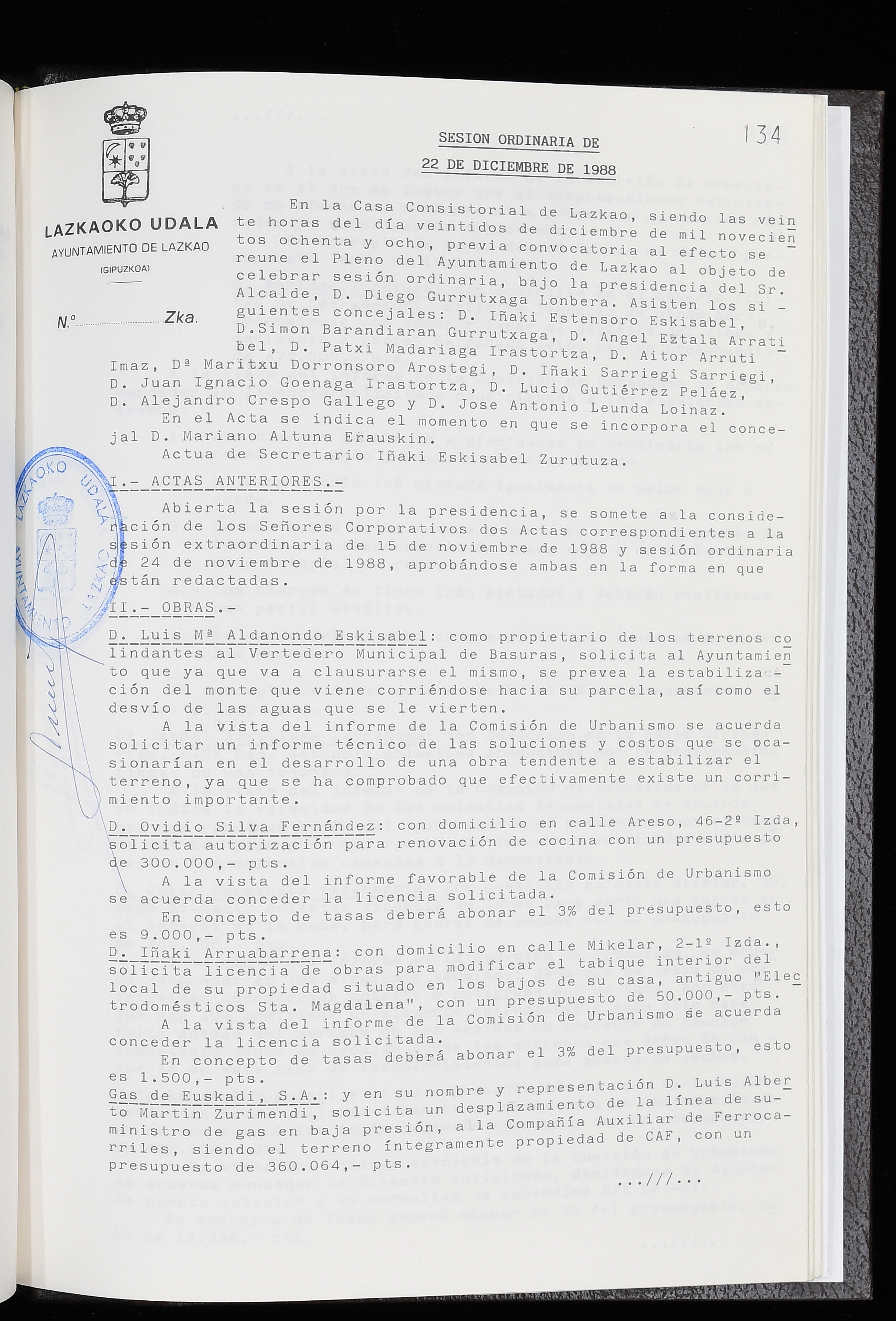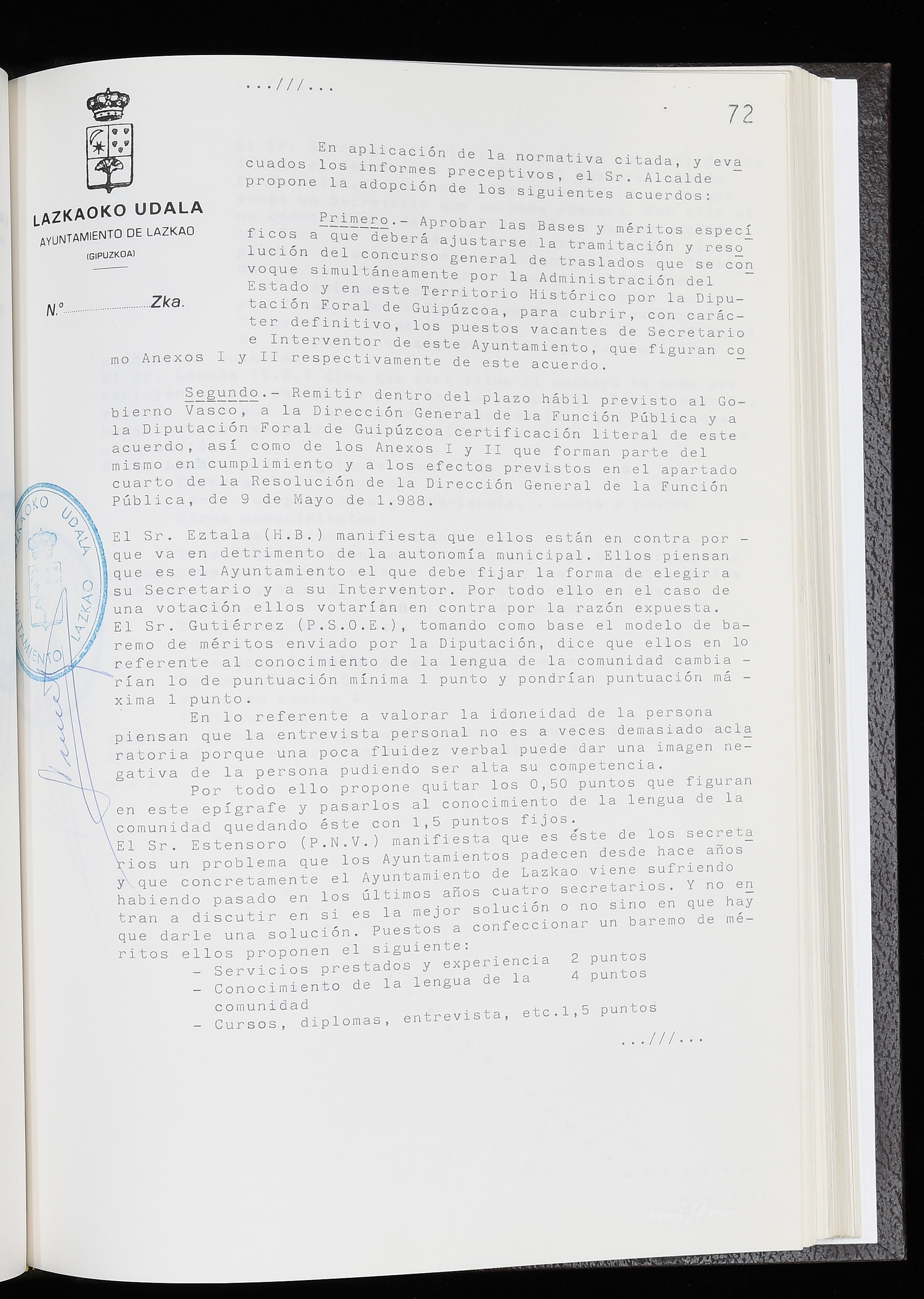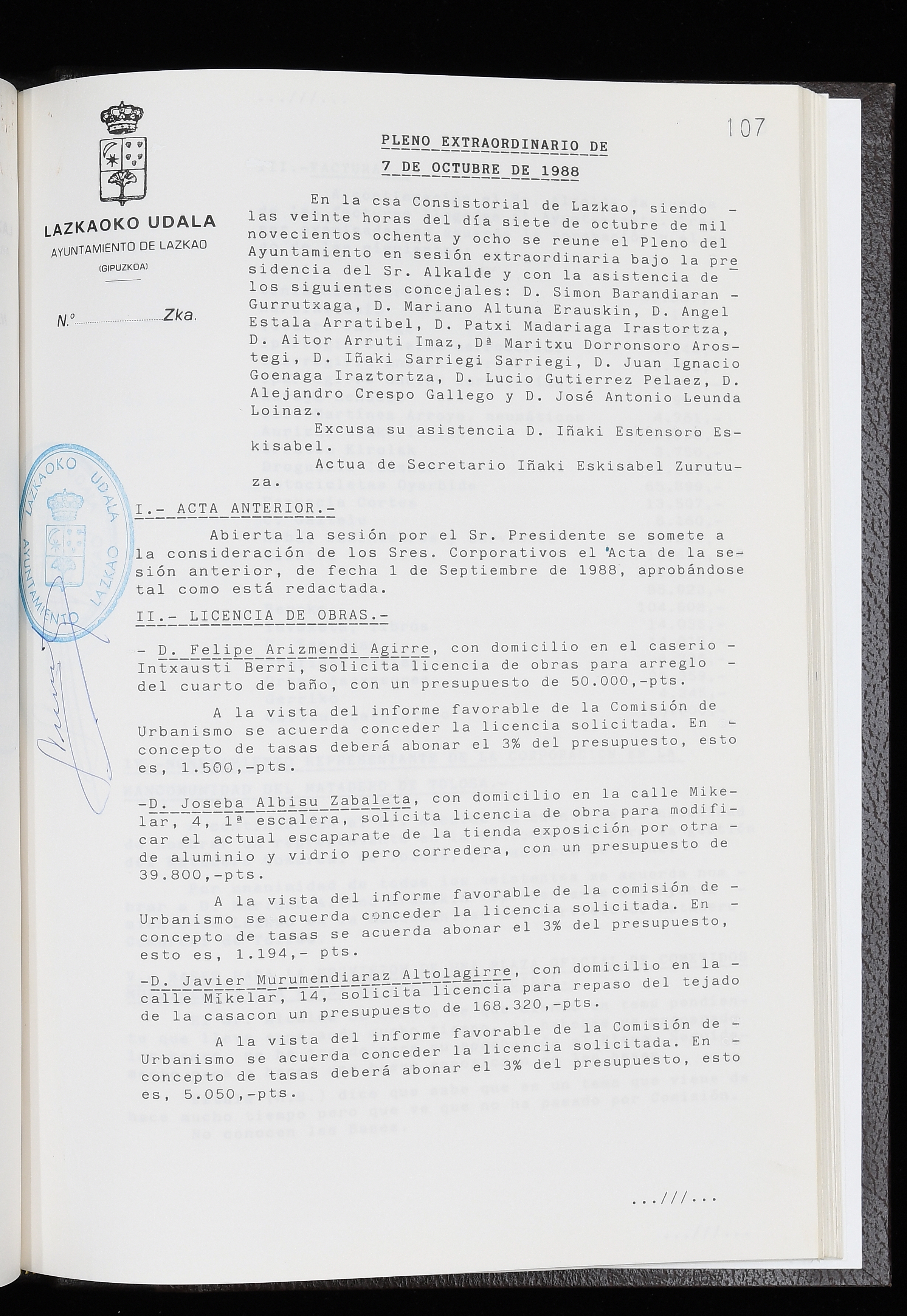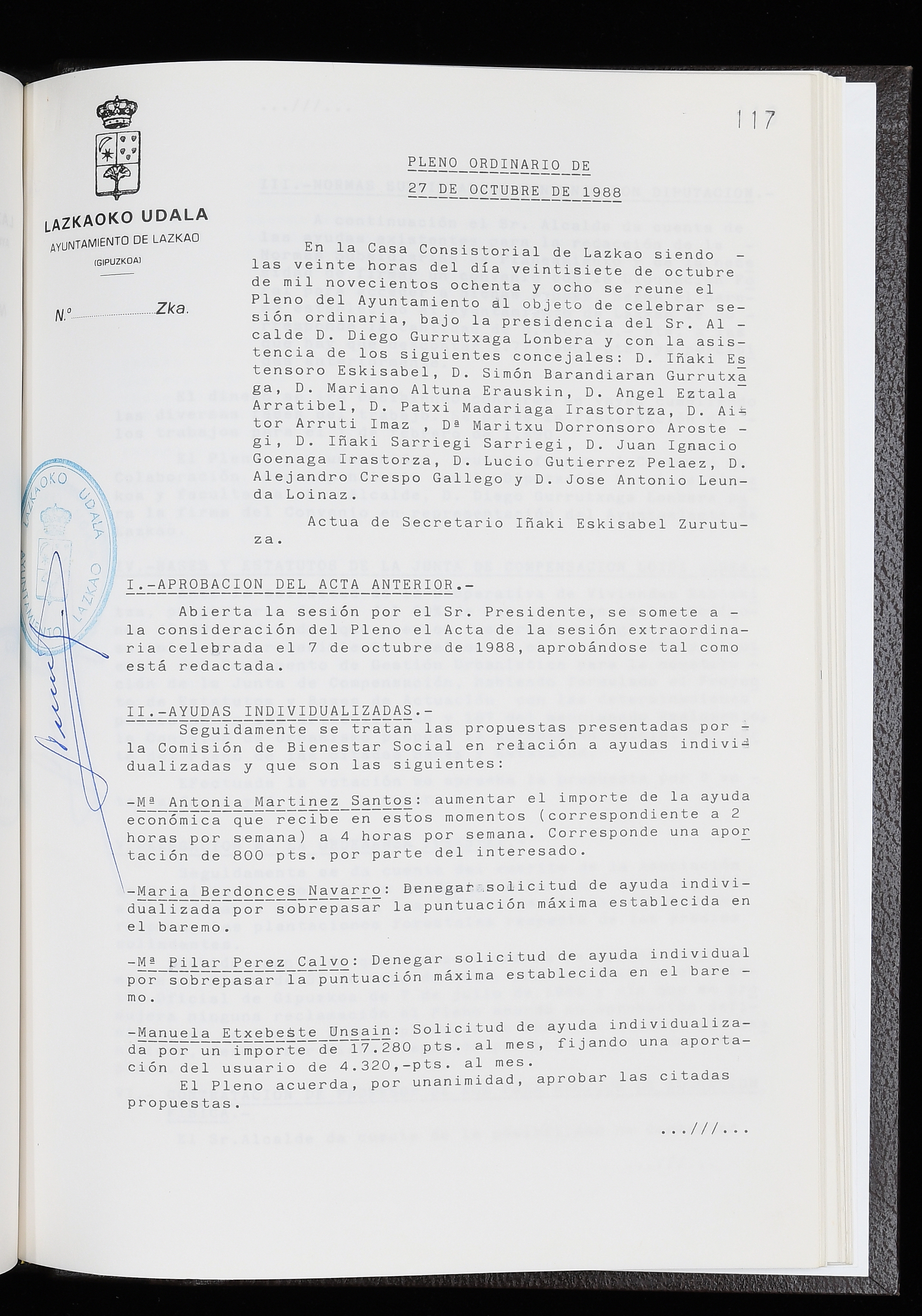 Log in to post commentsEdukiakSailkapenaFuntsaLazkaoko Udal ArtxiboaAtalakUdal AktakSailkapena1.1.4. Osoko Bilkuraren akta liburuakSailkapen berriaOsoko Bilkurako akta liburuakMultimediaIrudiakIdentifikazioaSignaturaakta liburua I-045Hasiera1988-01-28Amaiera1988-12-22AutoritateakTokiaLazkaoLog in to post commentsAkta eratu