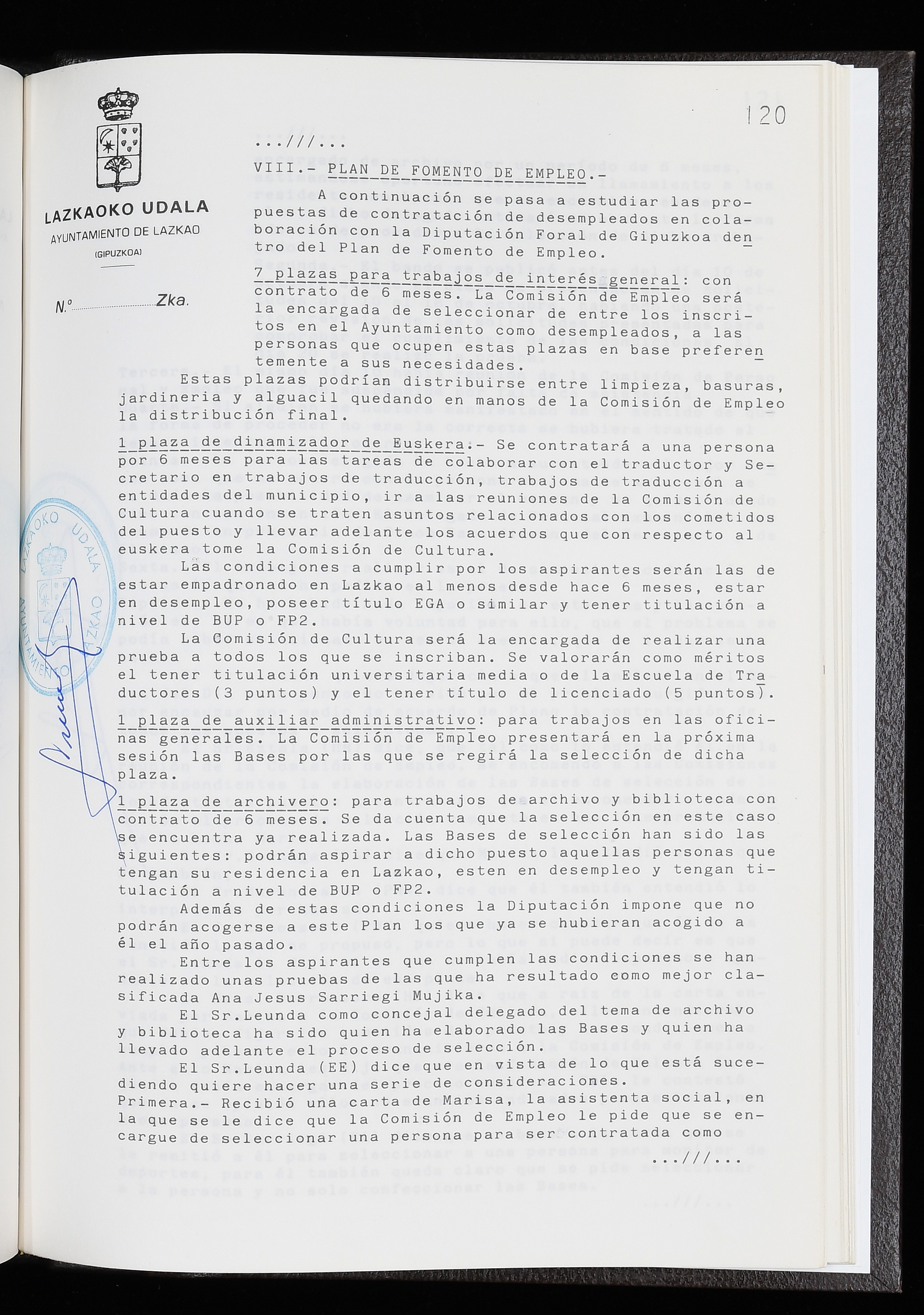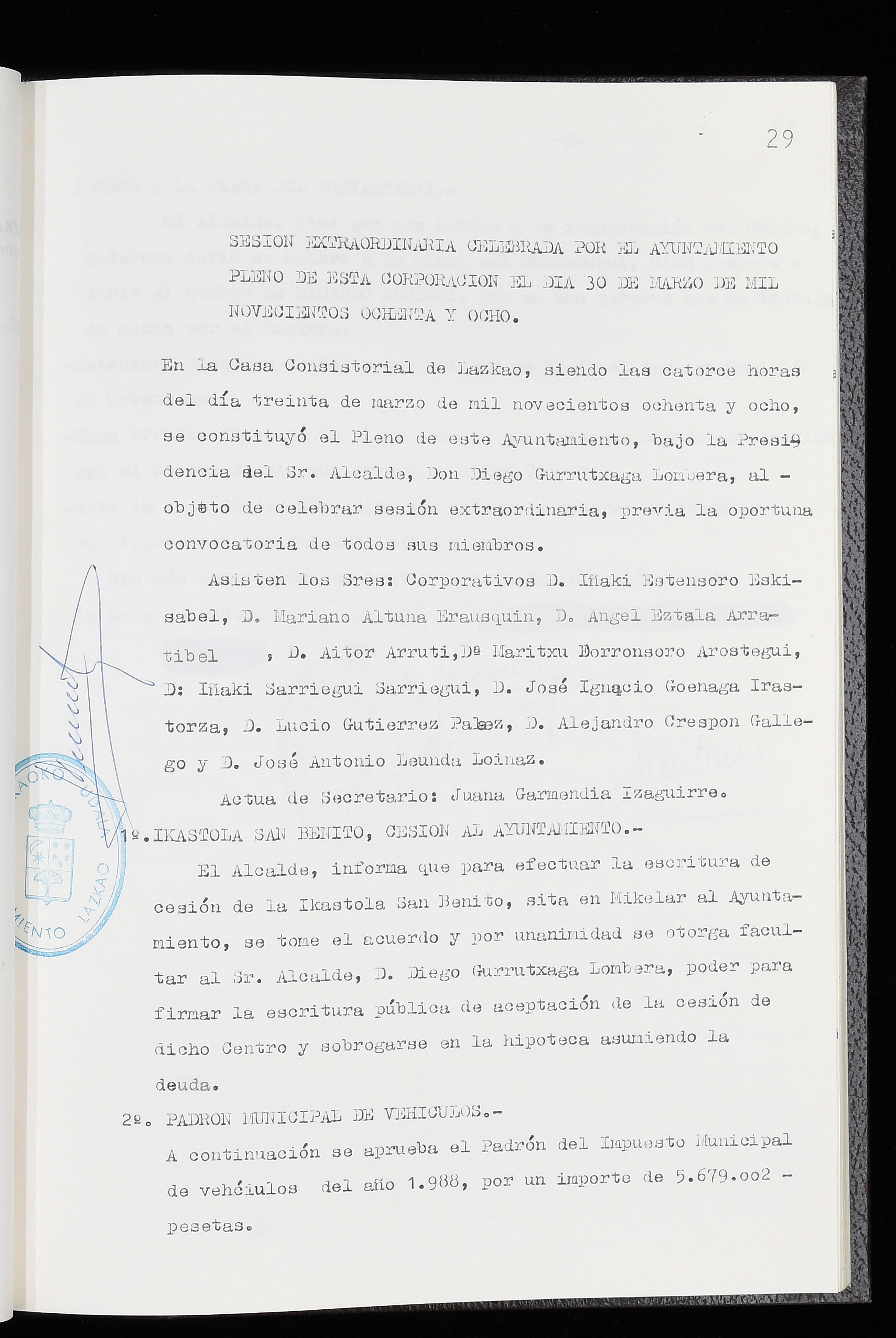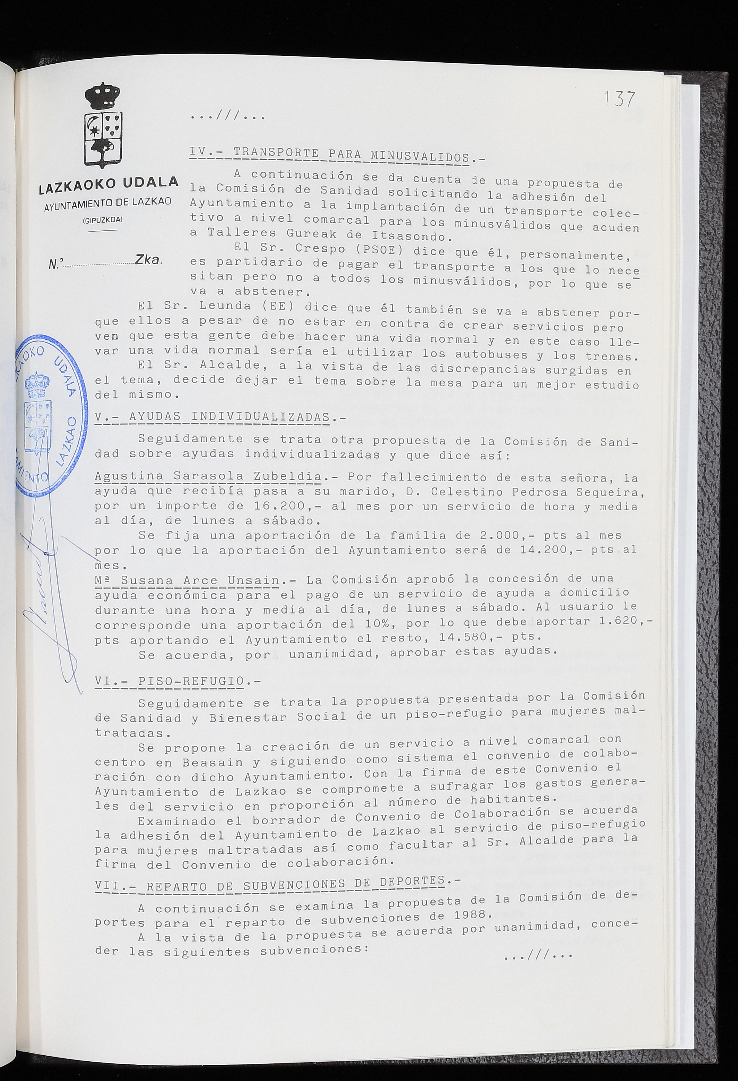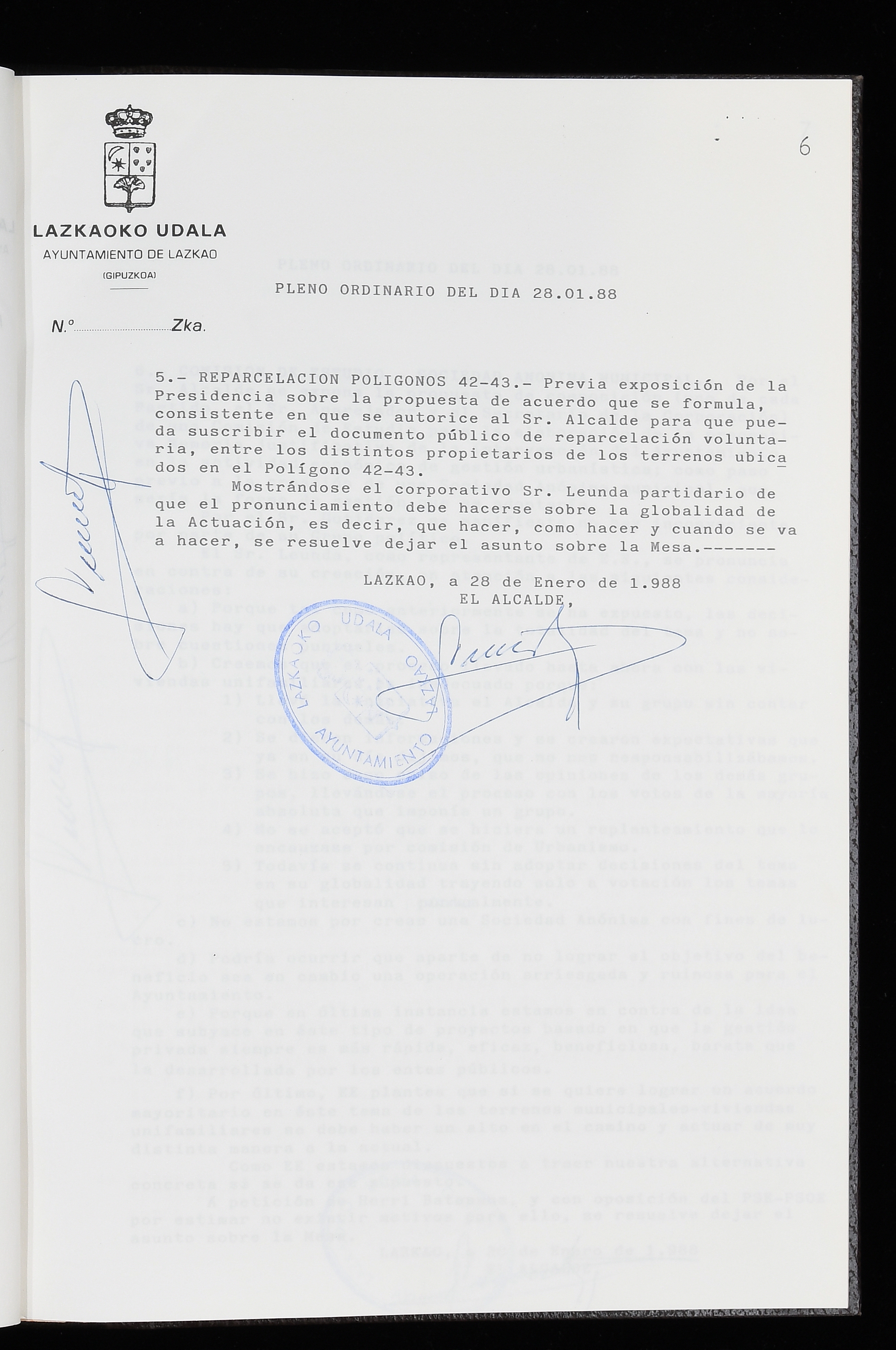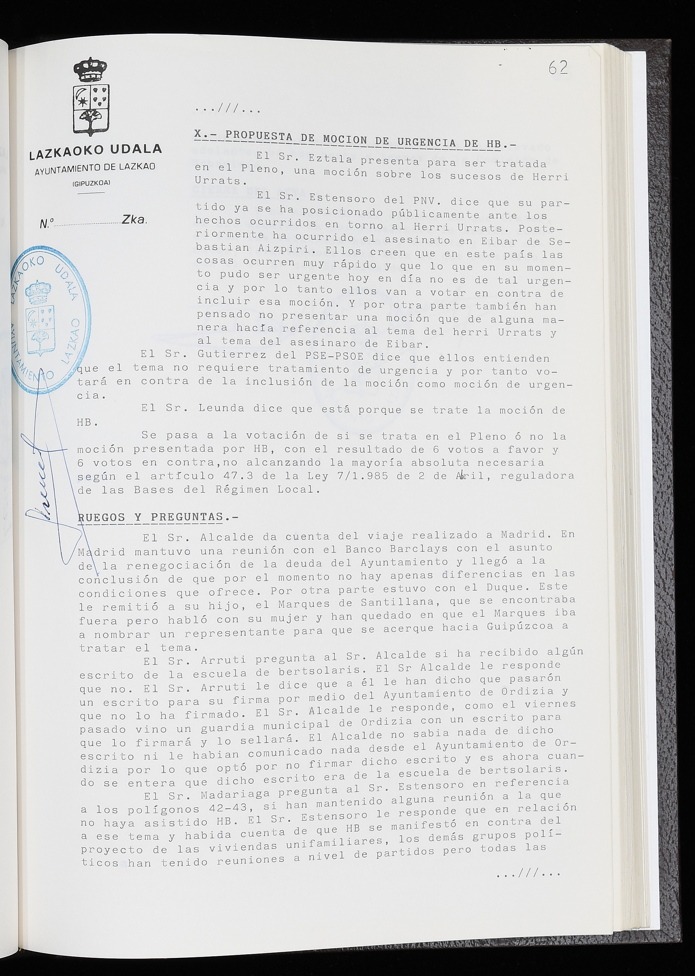 Log in to post commentsEdukiakSailkapenaFuntsaLazkaoko Udal ArtxiboaAtalakUdal AktakSailkapena1.1.4. Osoko Bilkuraren akta liburuakSailkapen berriaOsoko Bilkurako akta liburuakMultimediaIrudiakIdentifikazioaSignaturaakta liburua I-045Hasiera1988-01-28Amaiera1988-12-22AutoritateakTokiaLazkaoLog in to post commentsAkta eratu