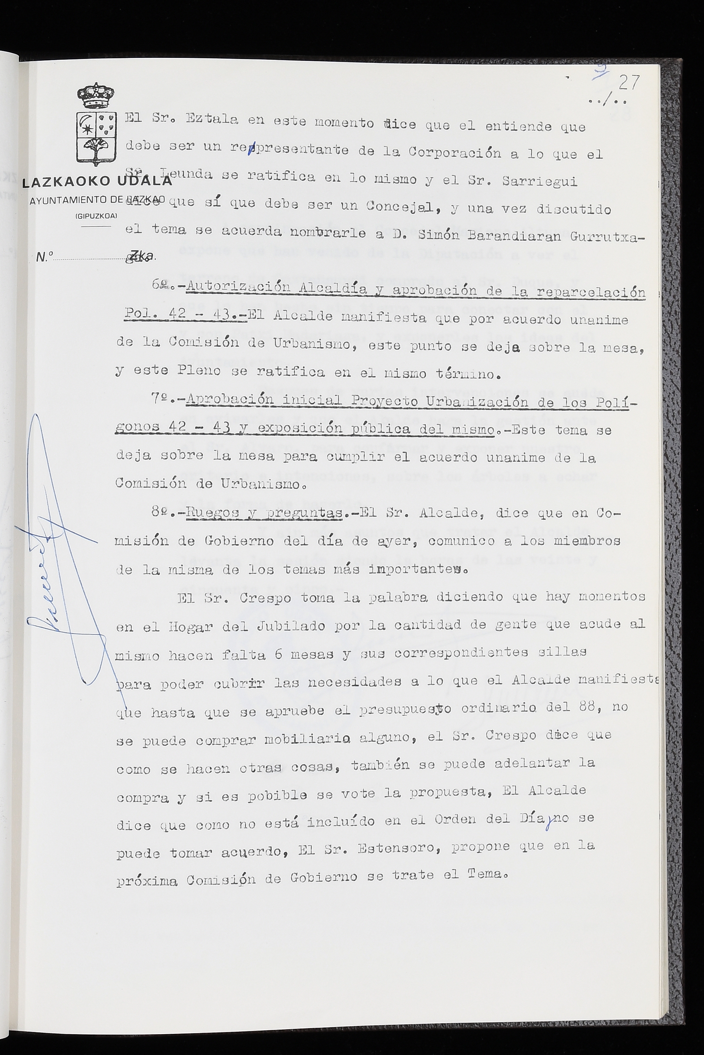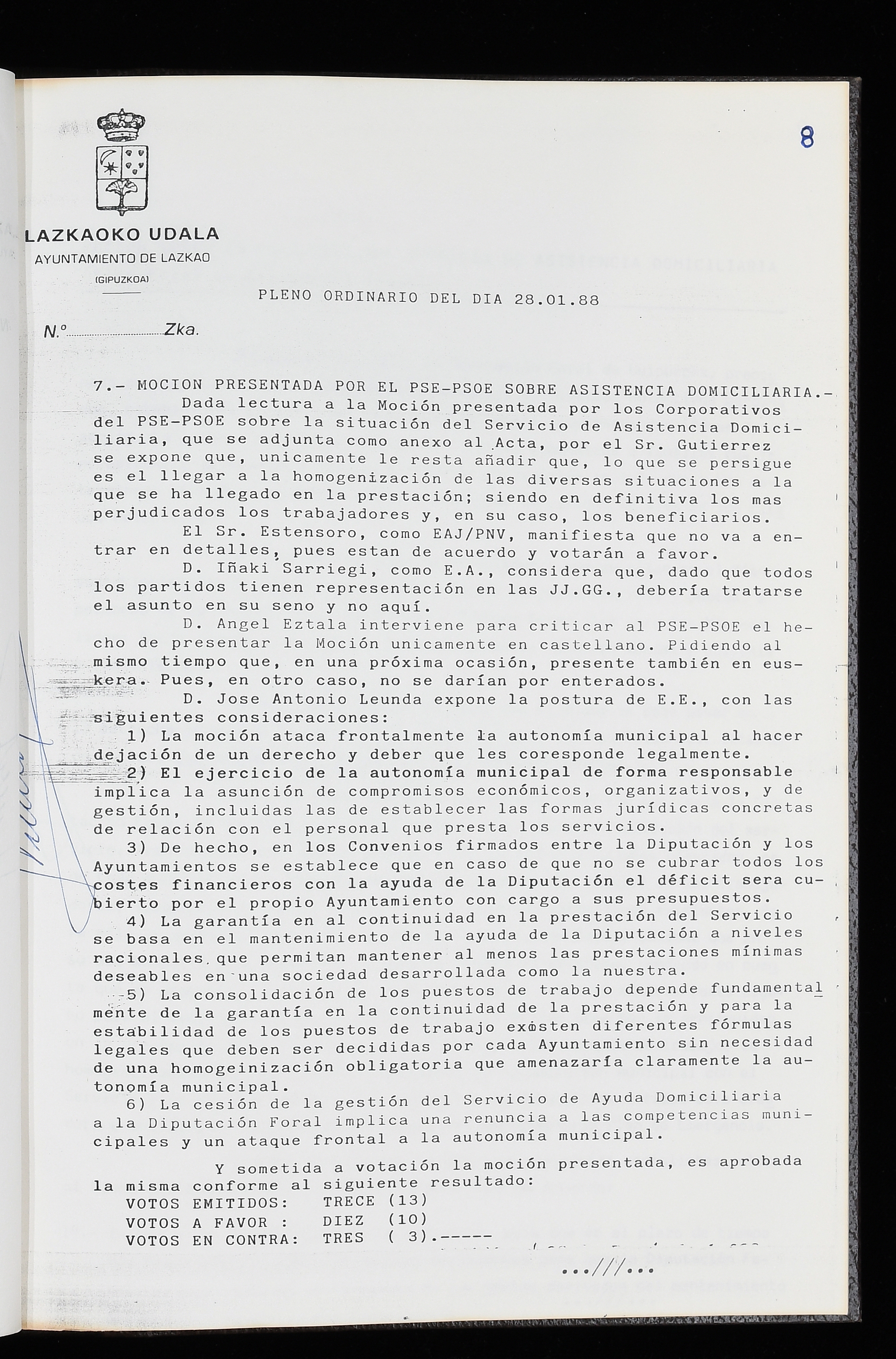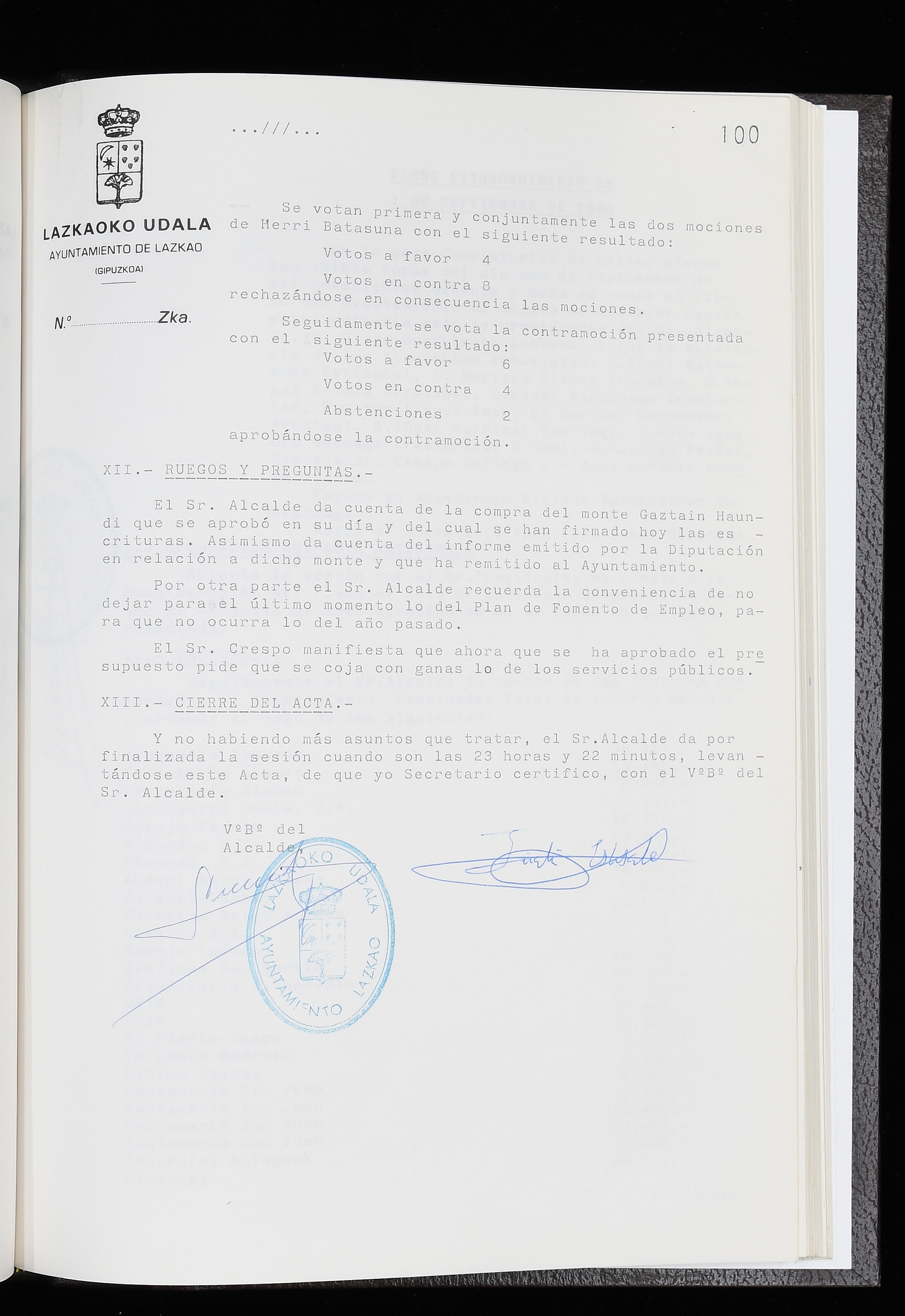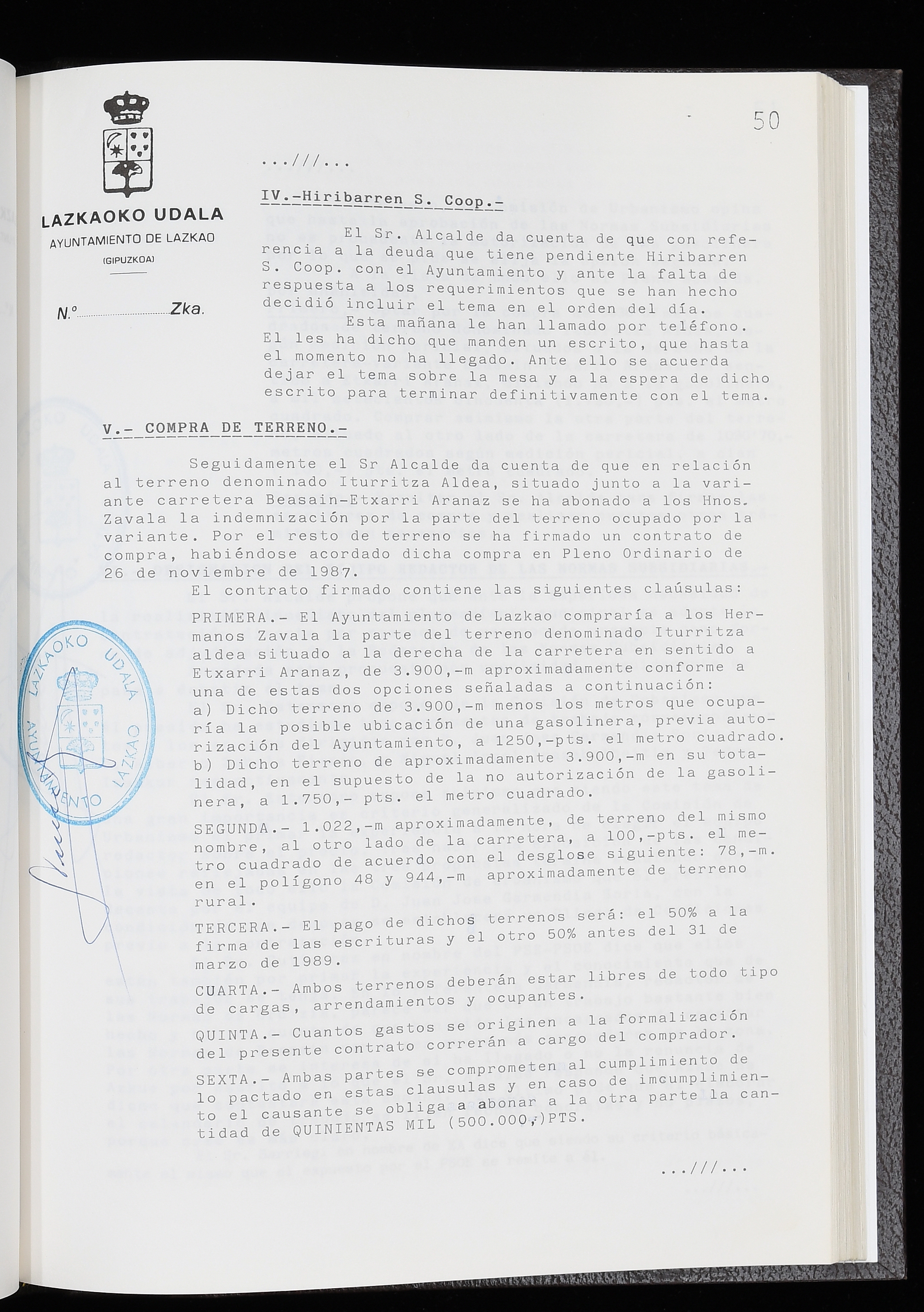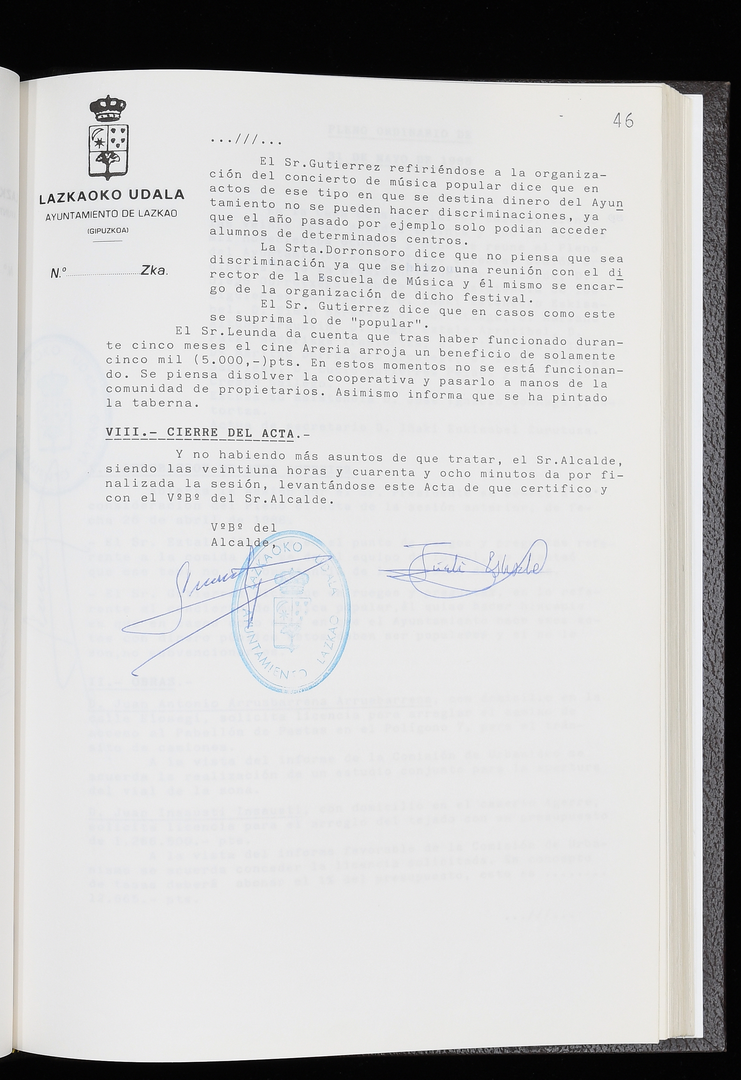 Log in to post commentsEdukiakSailkapenaFuntsaLazkaoko Udal ArtxiboaAtalakUdal AktakSailkapena1.1.4. Osoko Bilkuraren akta liburuakSailkapen berriaOsoko Bilkurako akta liburuakMultimediaIrudiakIdentifikazioaSignaturaakta liburua I-045Hasiera1988-01-28Amaiera1988-12-22AutoritateakTokiaLazkaoLog in to post commentsAkta eratu