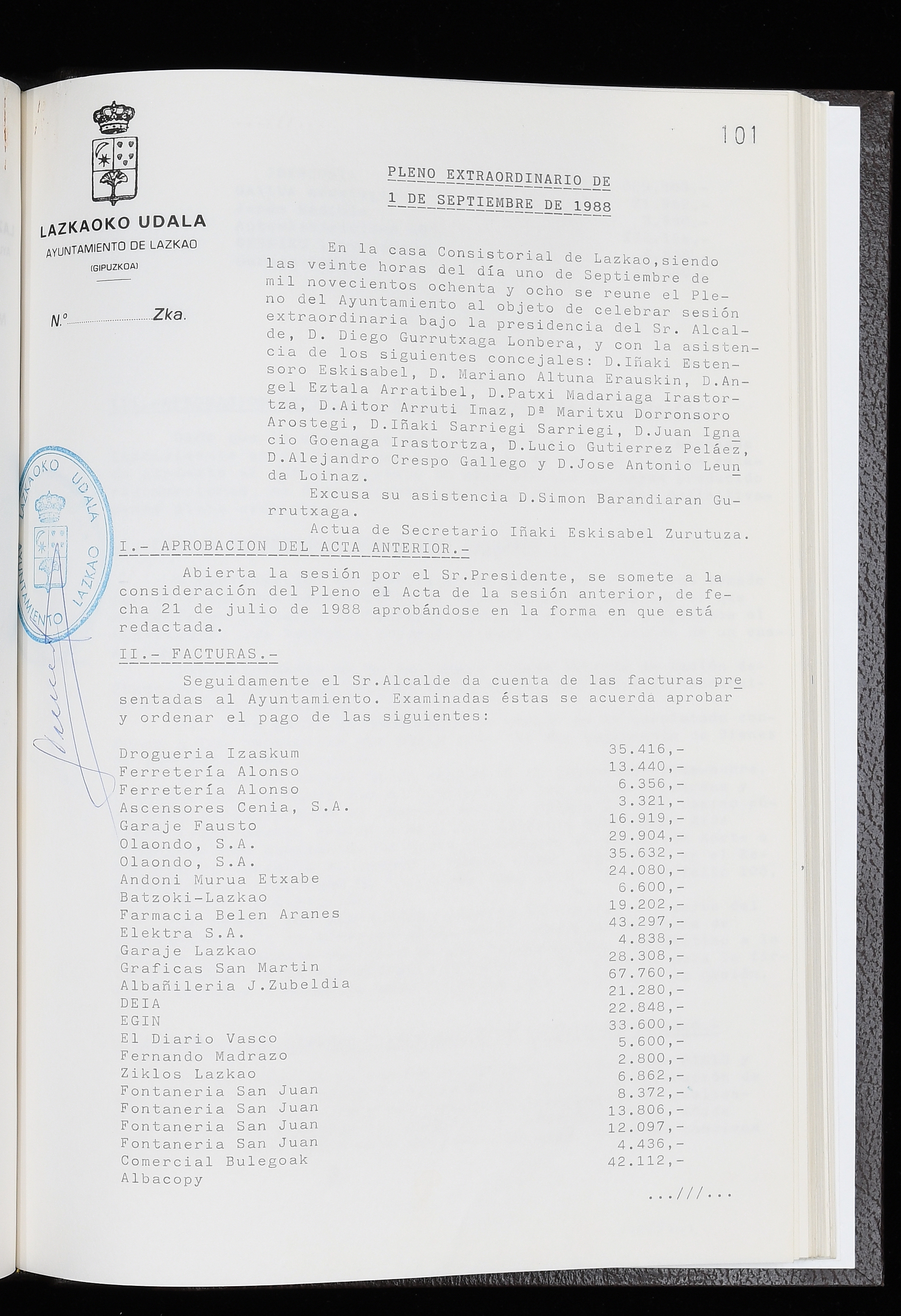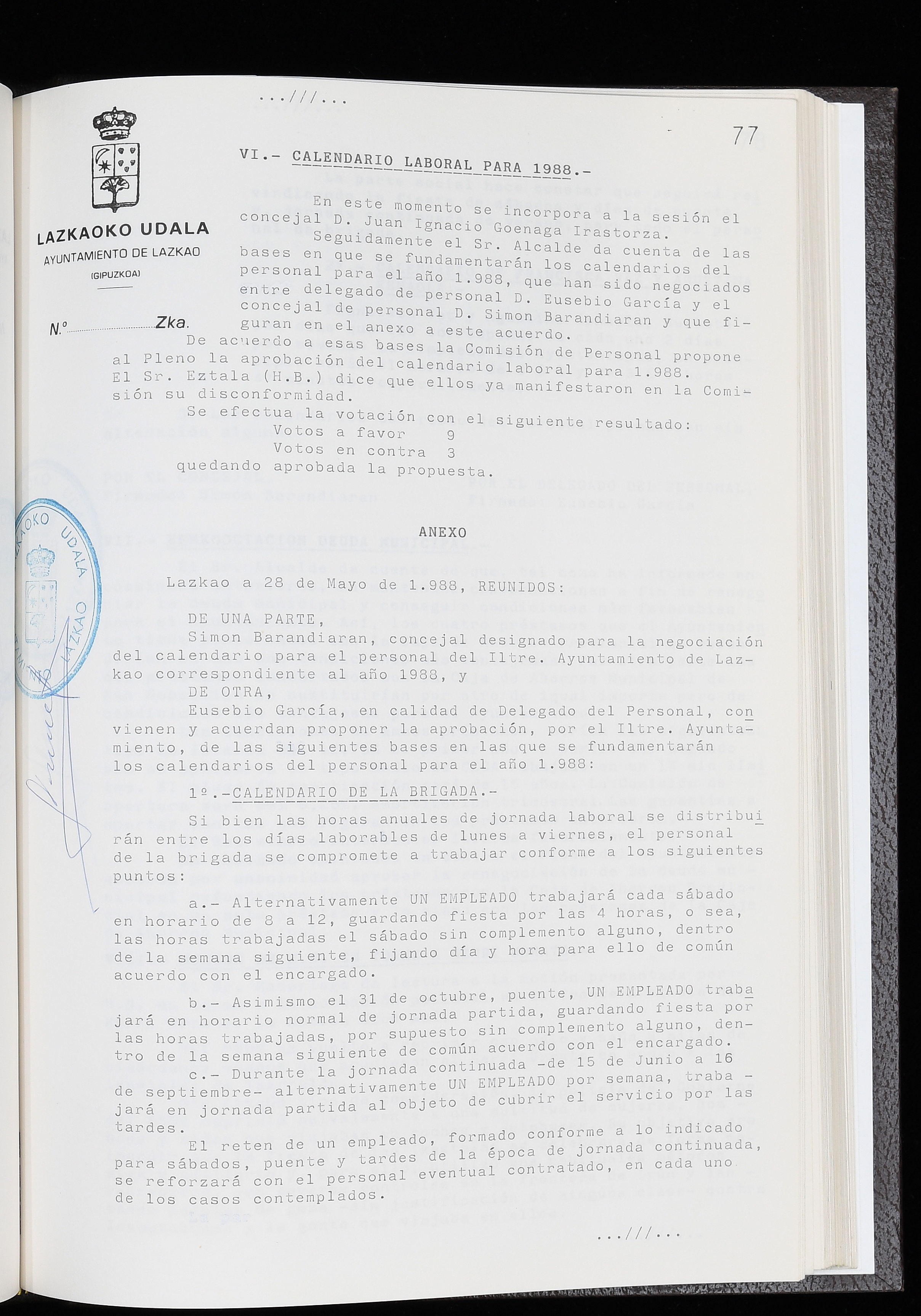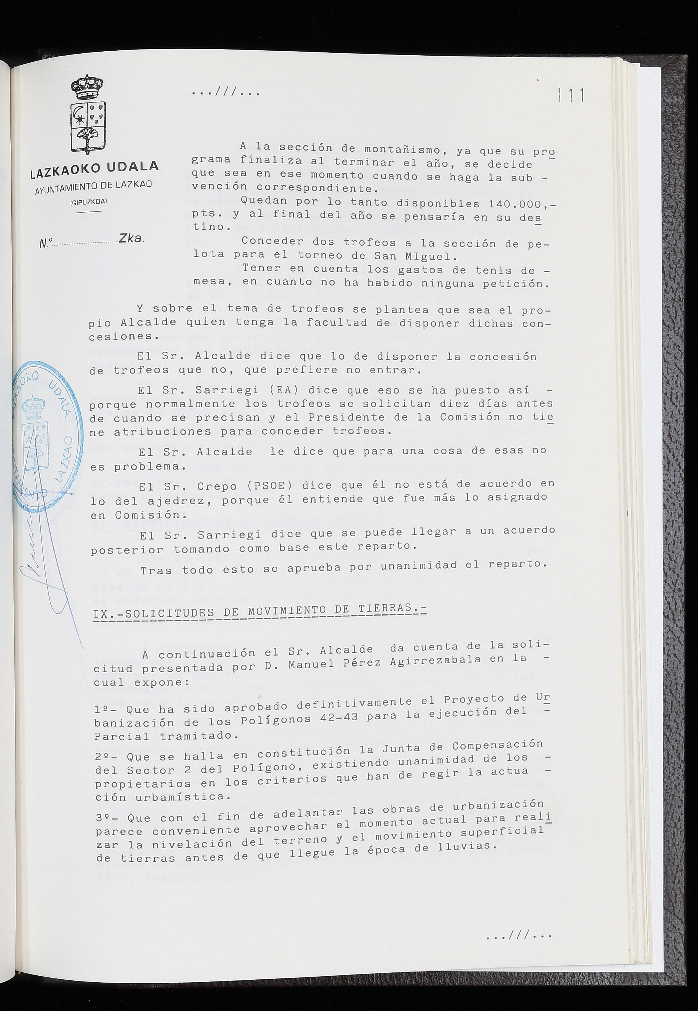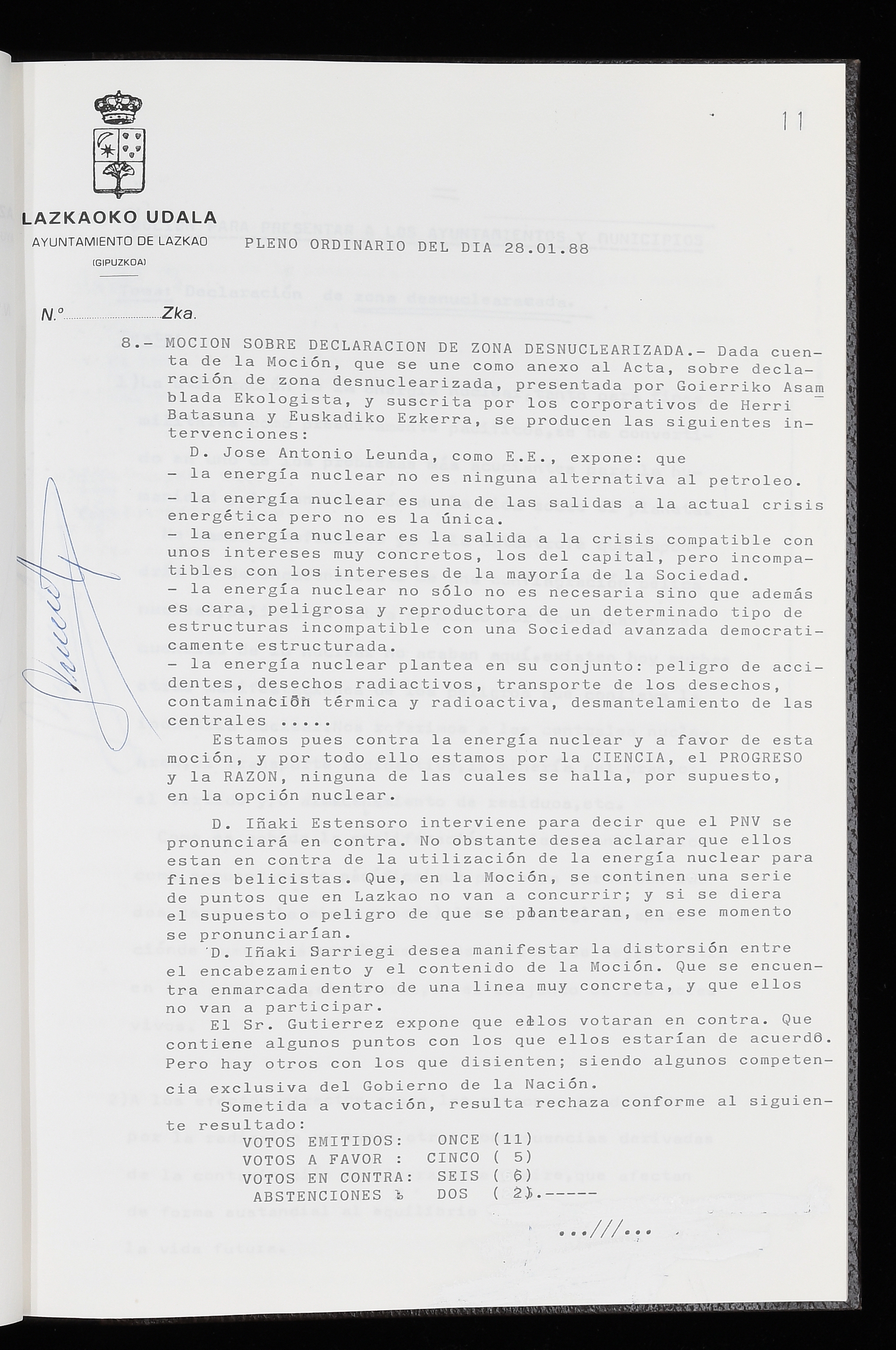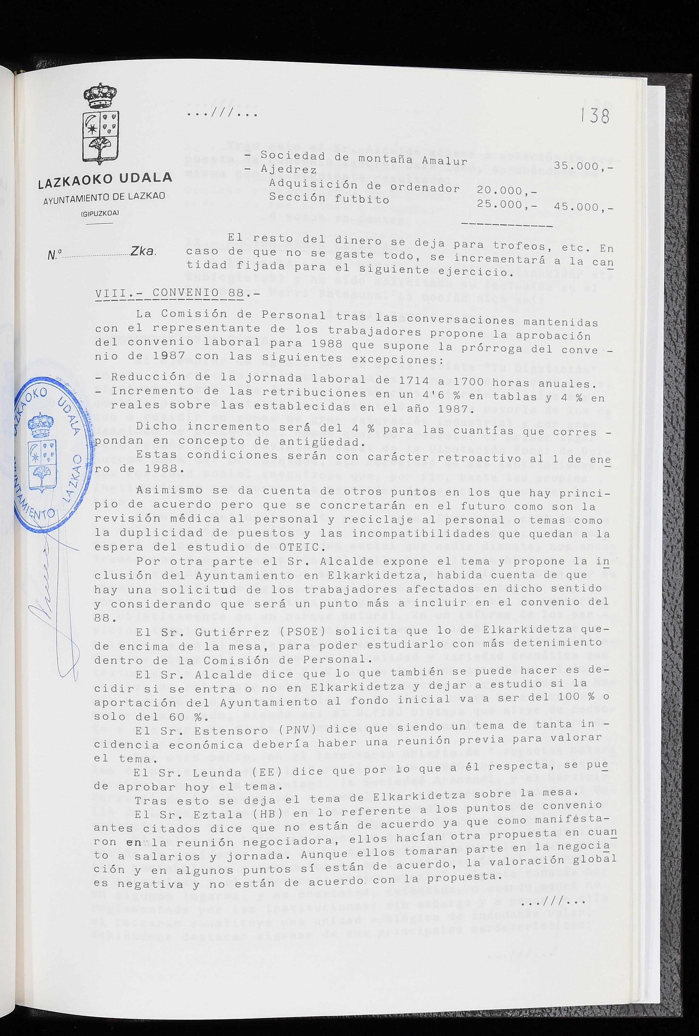 Log in to post commentsEdukiakSailkapenaFuntsaLazkaoko Udal ArtxiboaAtalakUdal AktakSailkapena1.1.4. Osoko Bilkuraren akta liburuakSailkapen berriaOsoko Bilkurako akta liburuakMultimediaIrudiakIdentifikazioaSignaturaakta liburua I-045Hasiera1988-01-28Amaiera1988-12-22AutoritateakTokiaLazkaoLog in to post commentsAkta eratu