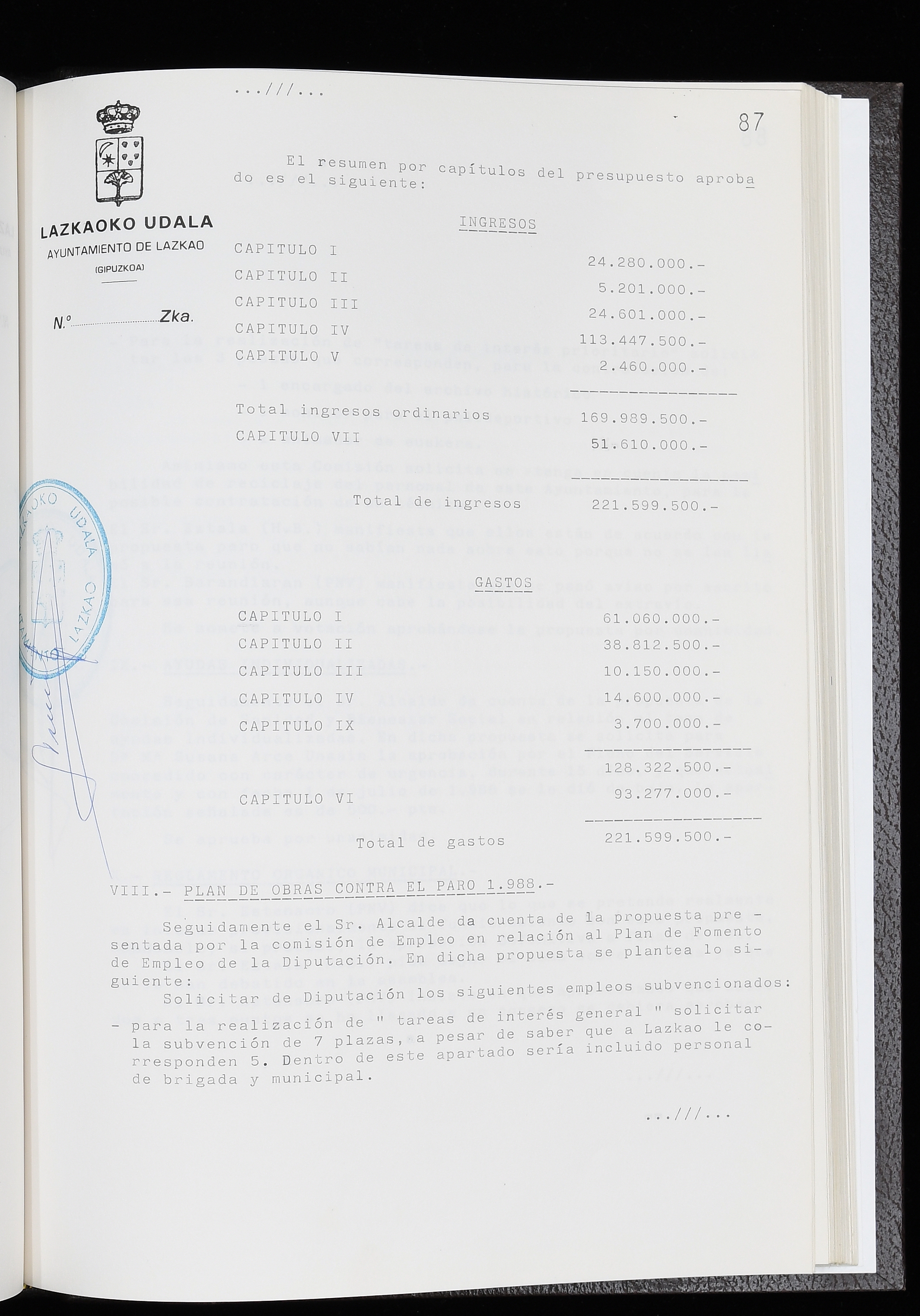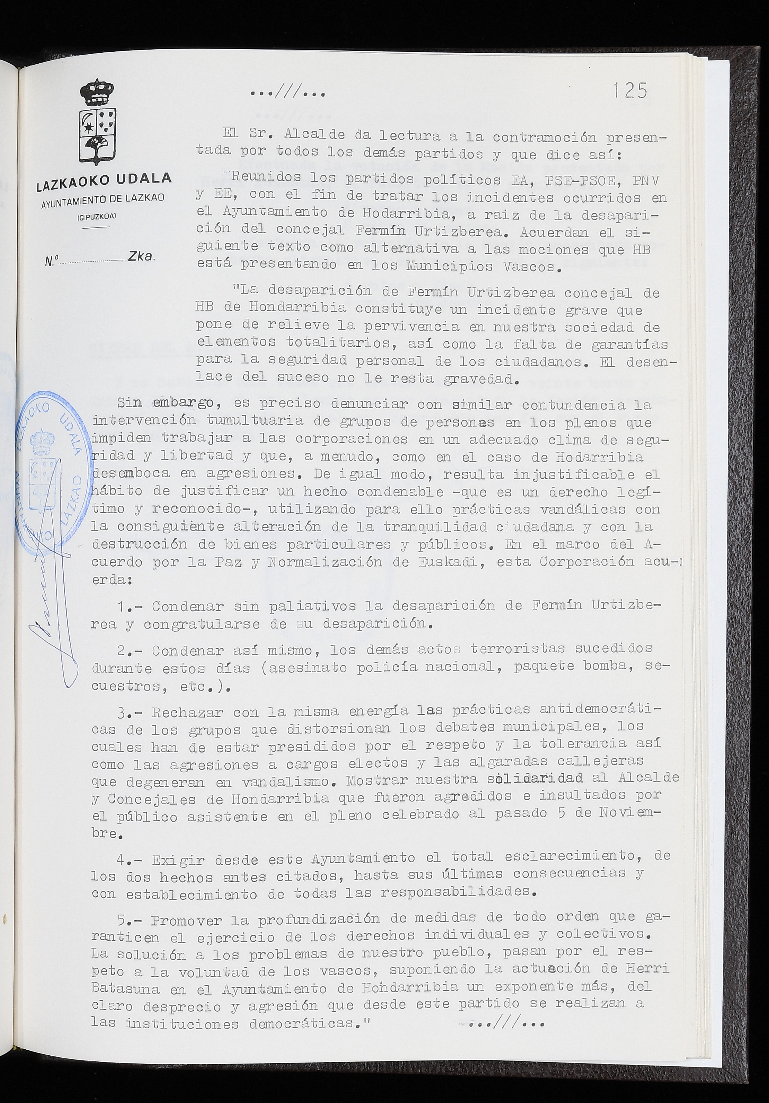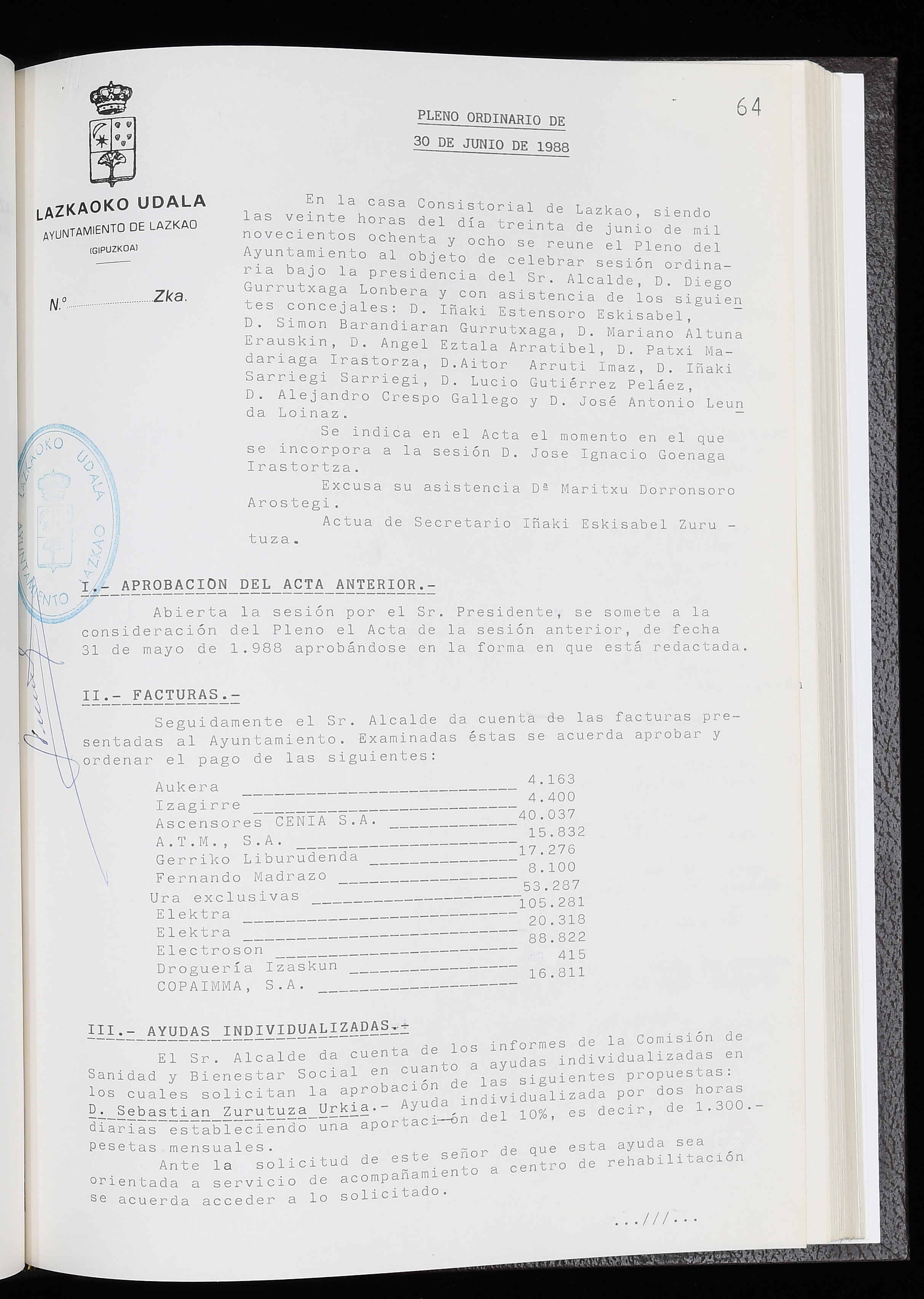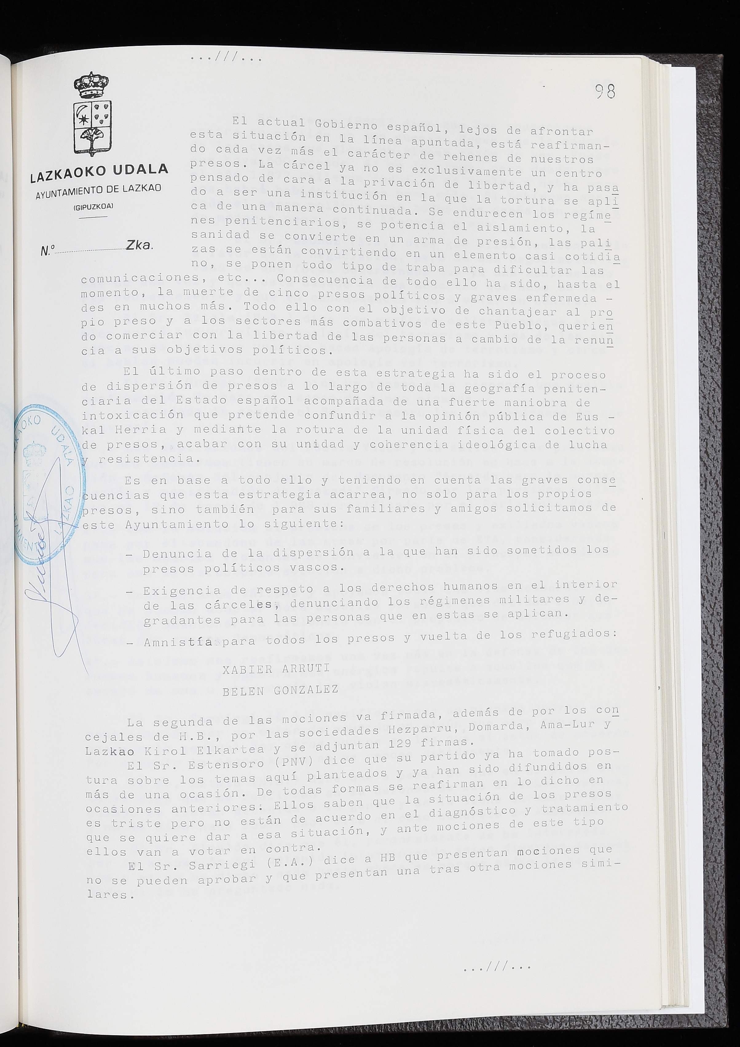 Log in to post commentsEdukiakSailkapenaFuntsaLazkaoko Udal ArtxiboaAtalakUdal AktakSailkapena1.1.4. Osoko Bilkuraren akta liburuakSailkapen berriaOsoko Bilkurako akta liburuakMultimediaIrudiakIdentifikazioaSignaturaakta liburua I-045Hasiera1988-01-28Amaiera1988-12-22AutoritateakTokiaLazkaoLog in to post commentsAkta eratu